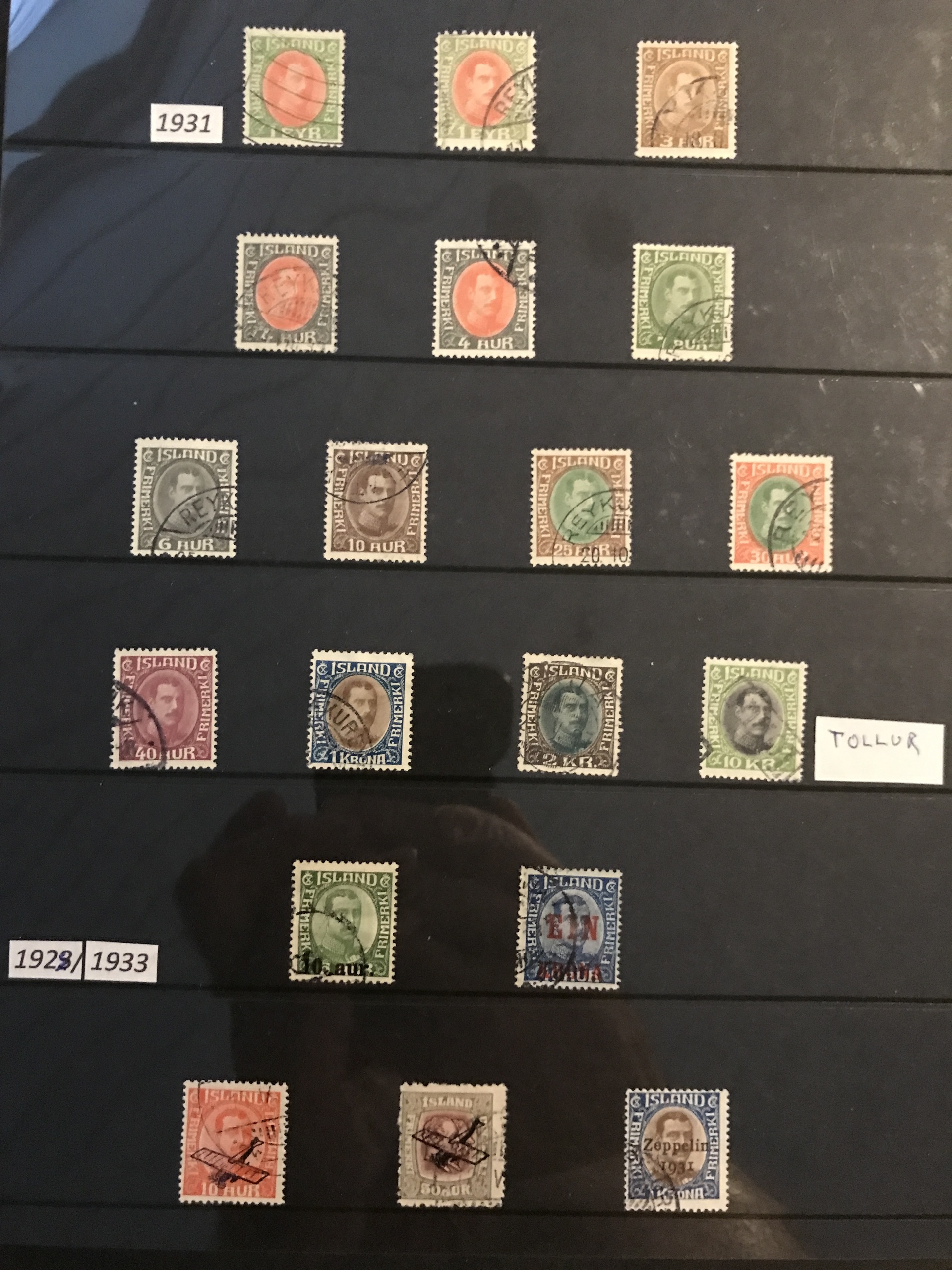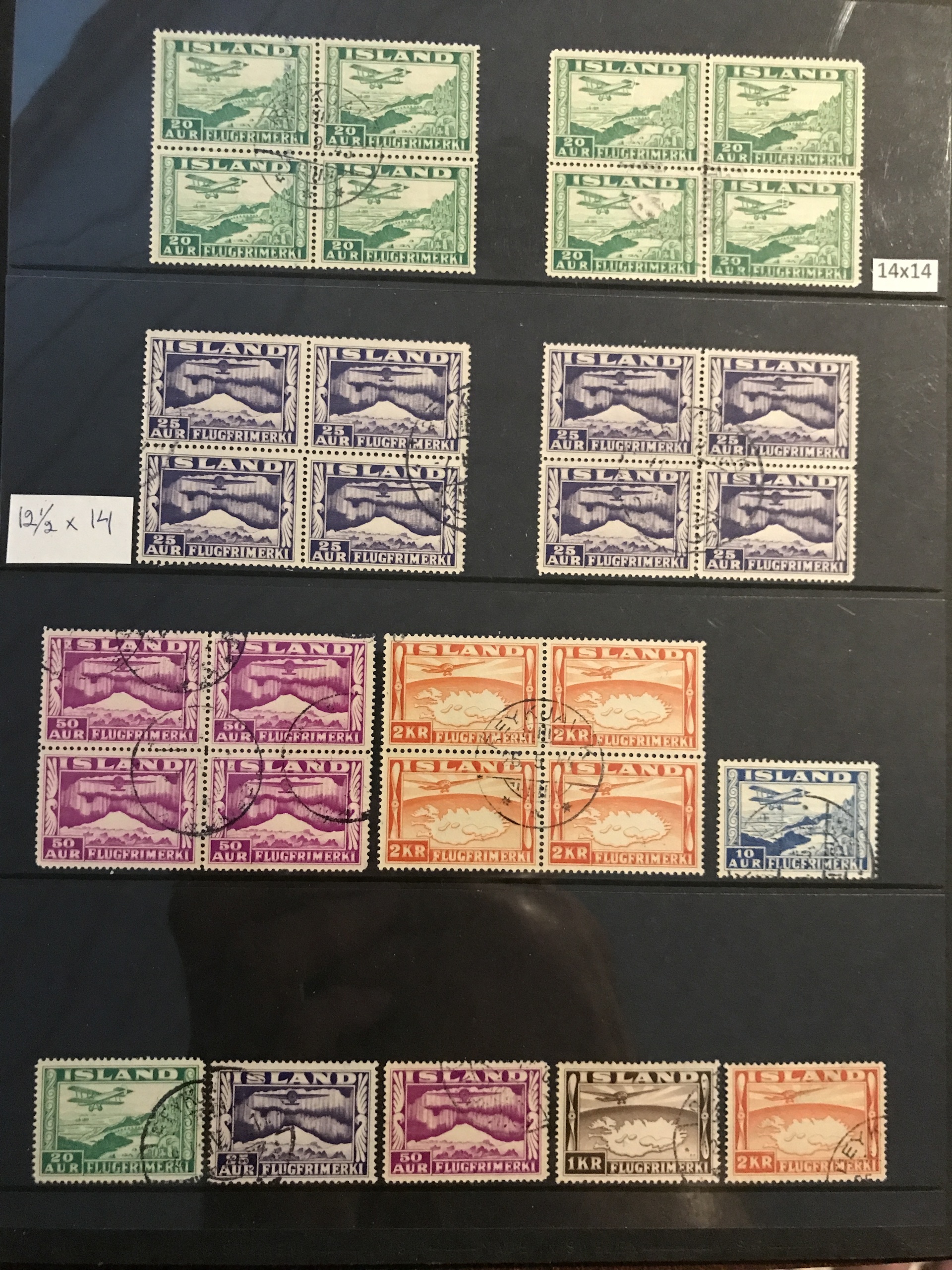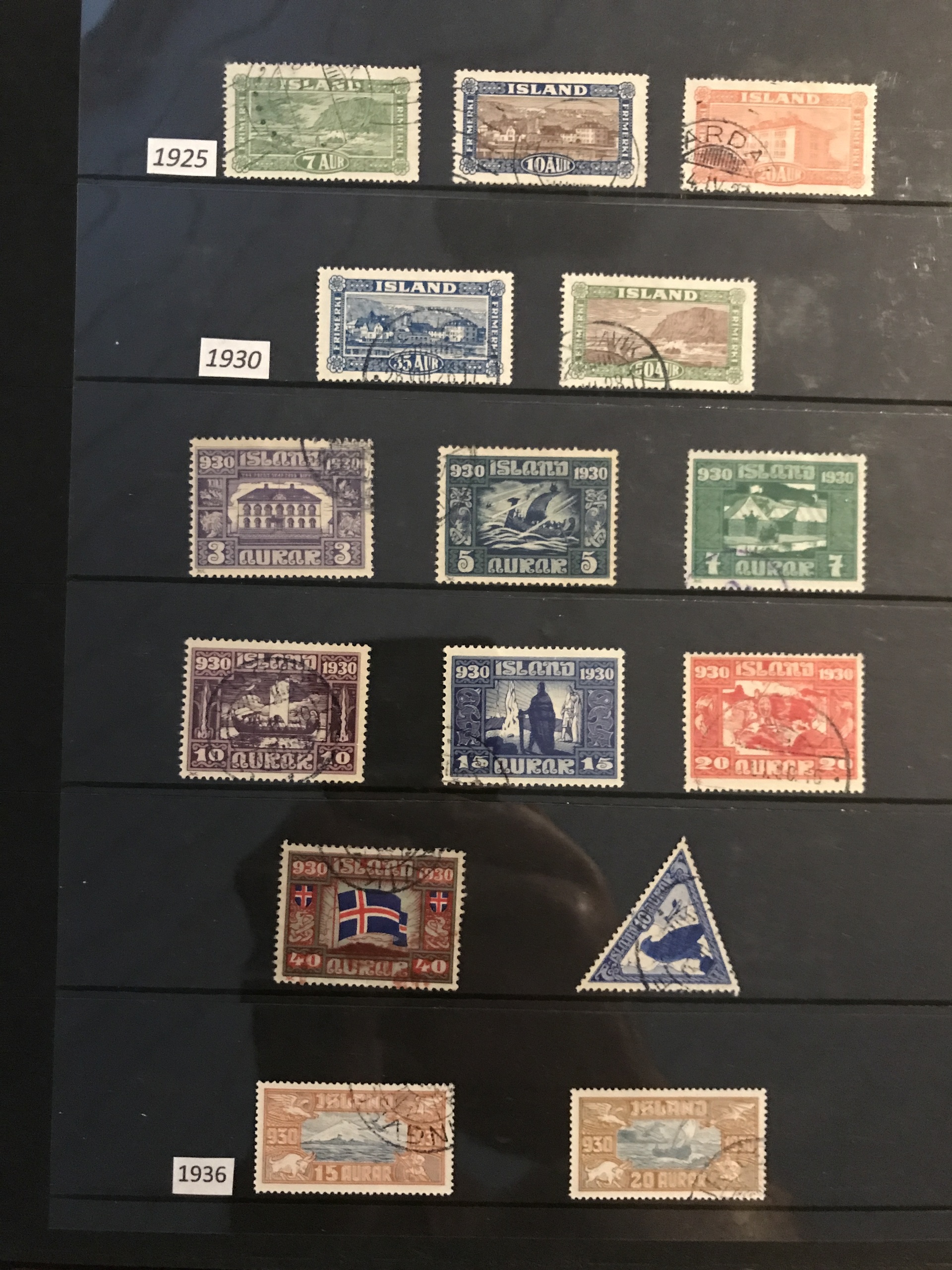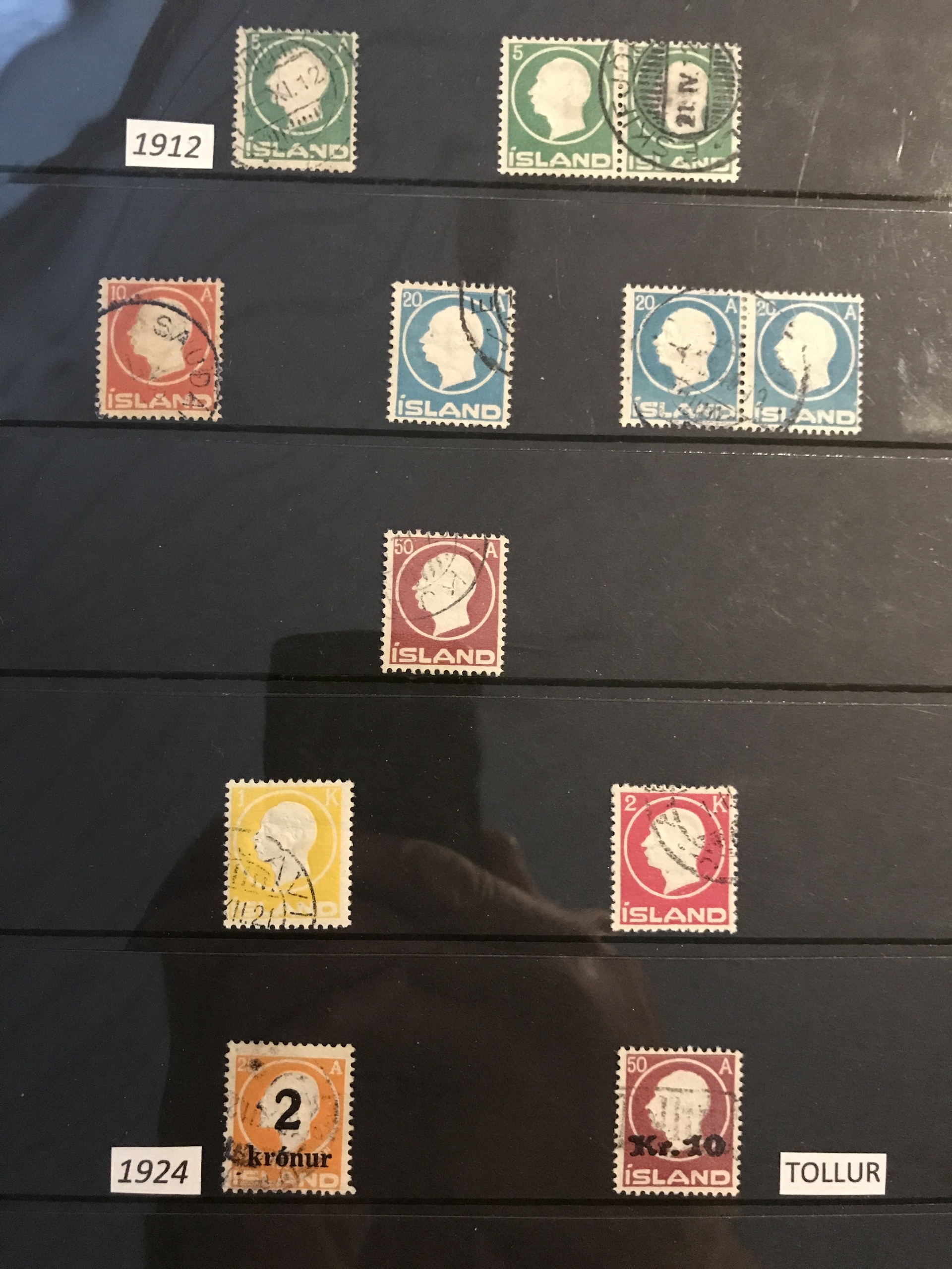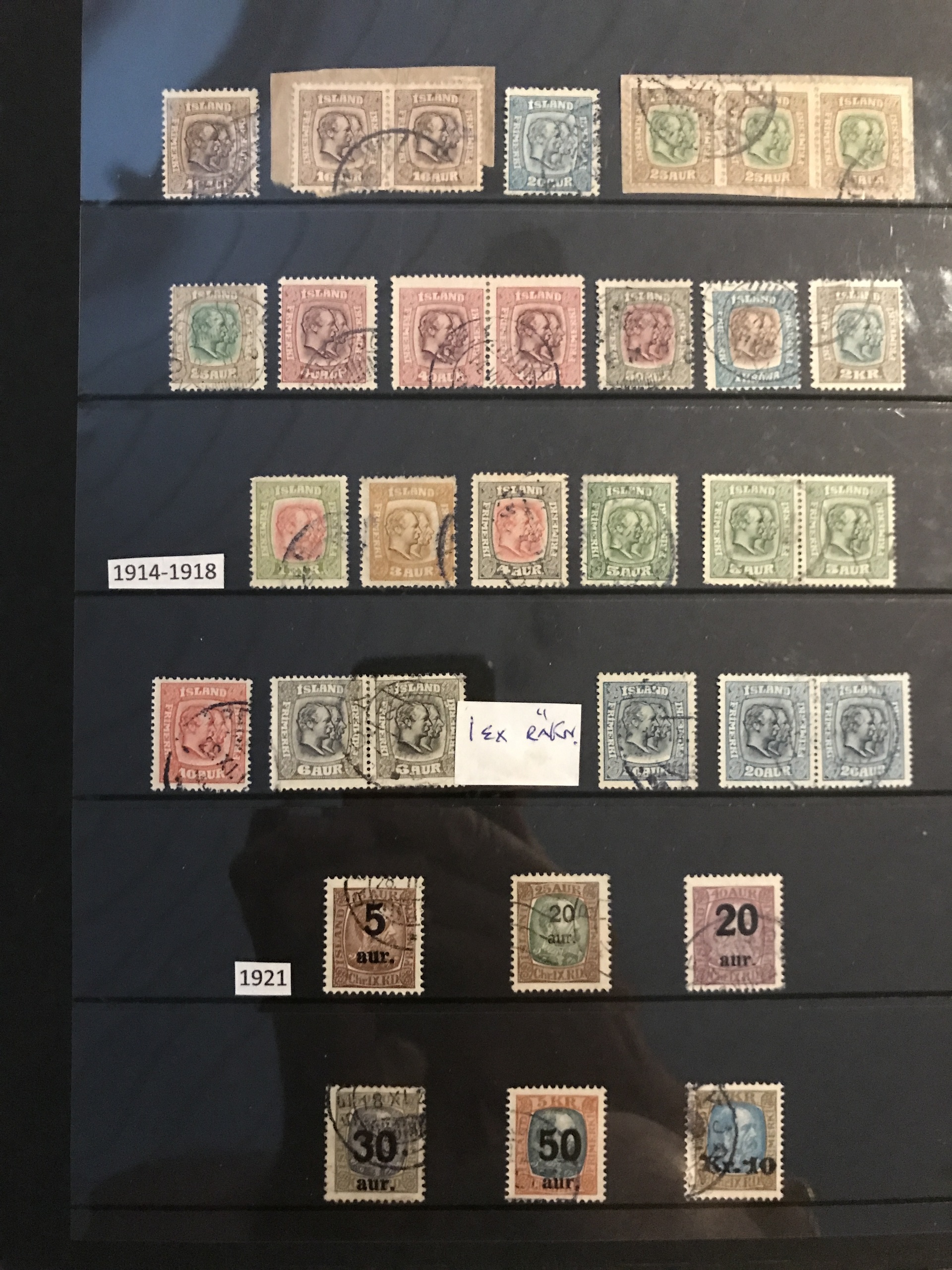 Iceland. Used. Nice selection 1873–1950 in visir binder incl. singles, strips and blocks-of-four. Containing e.g. F7, 16, pair F27, nice official stamps incl. TJ54, TJ58 in block-of-four, etc. Facit 80000++. Please see a selection of scans at www.philea.se. (360)