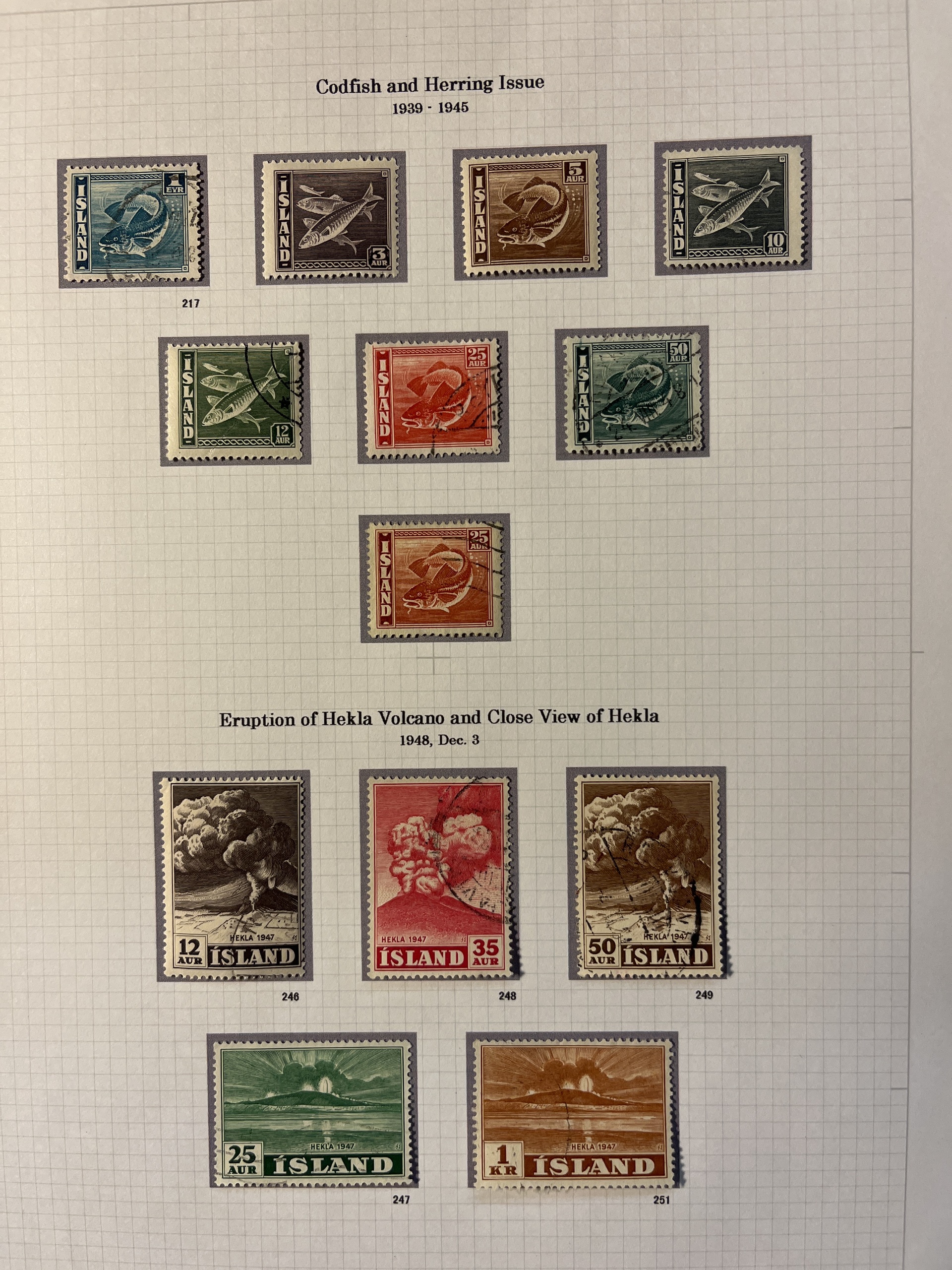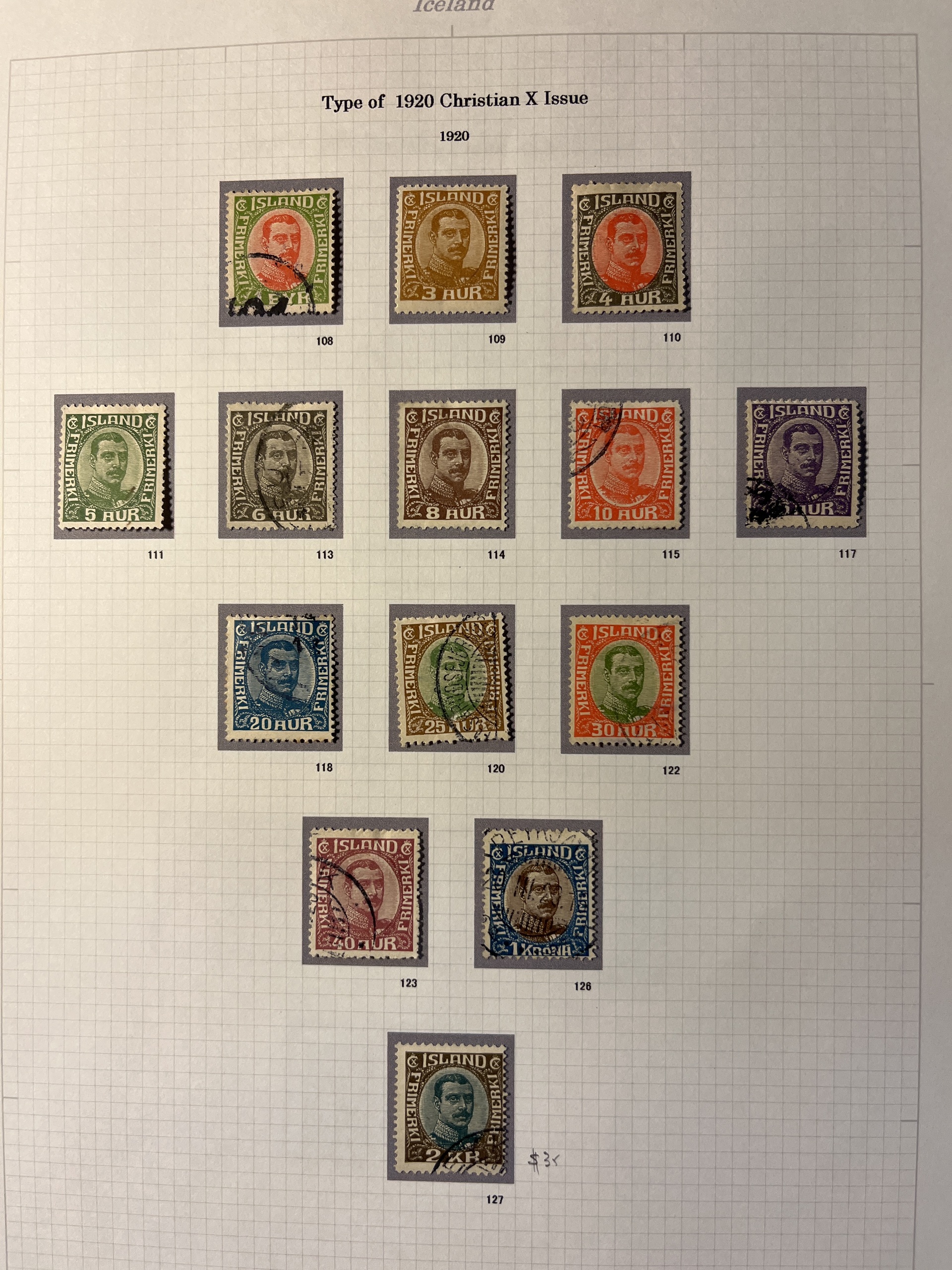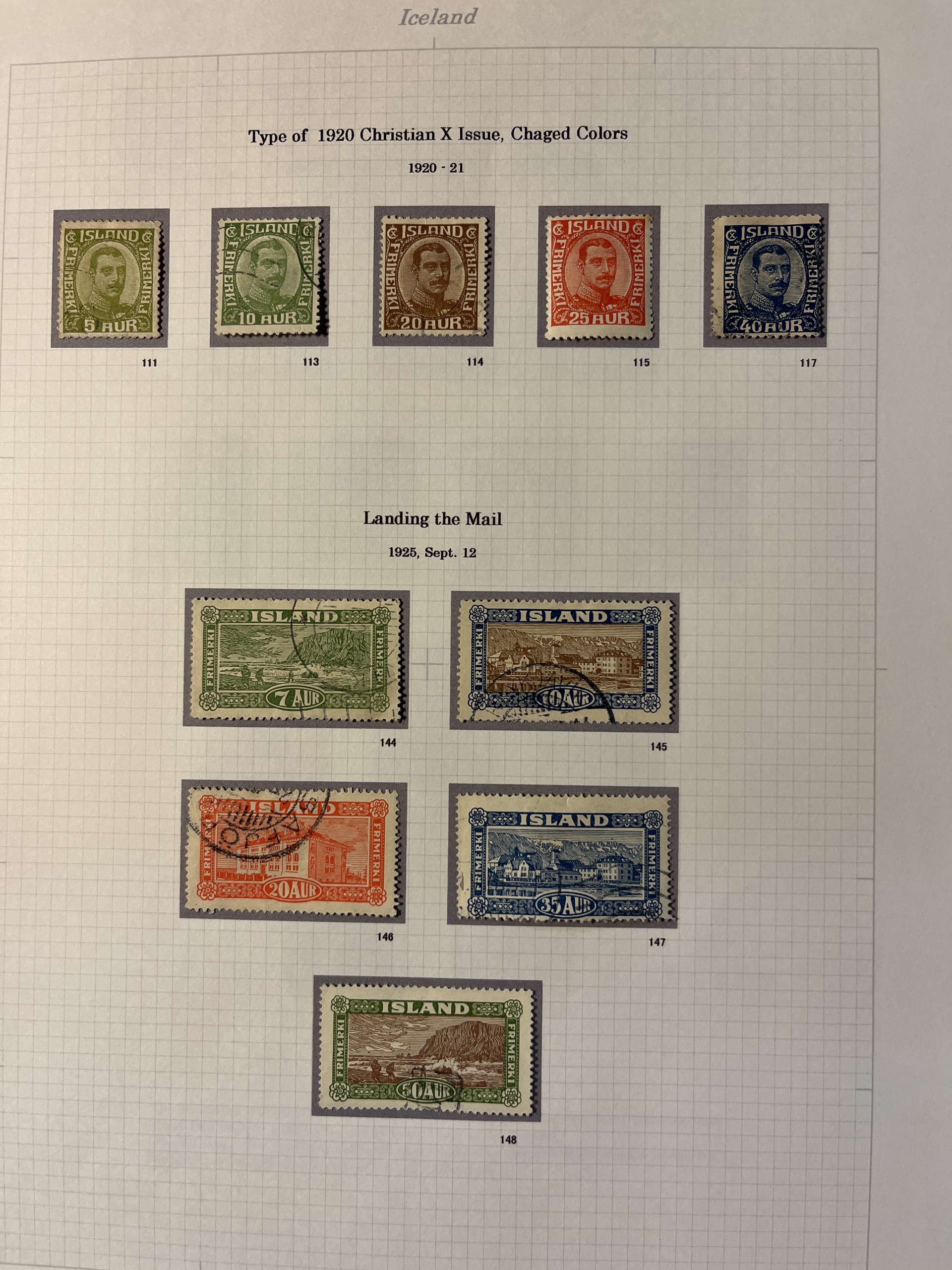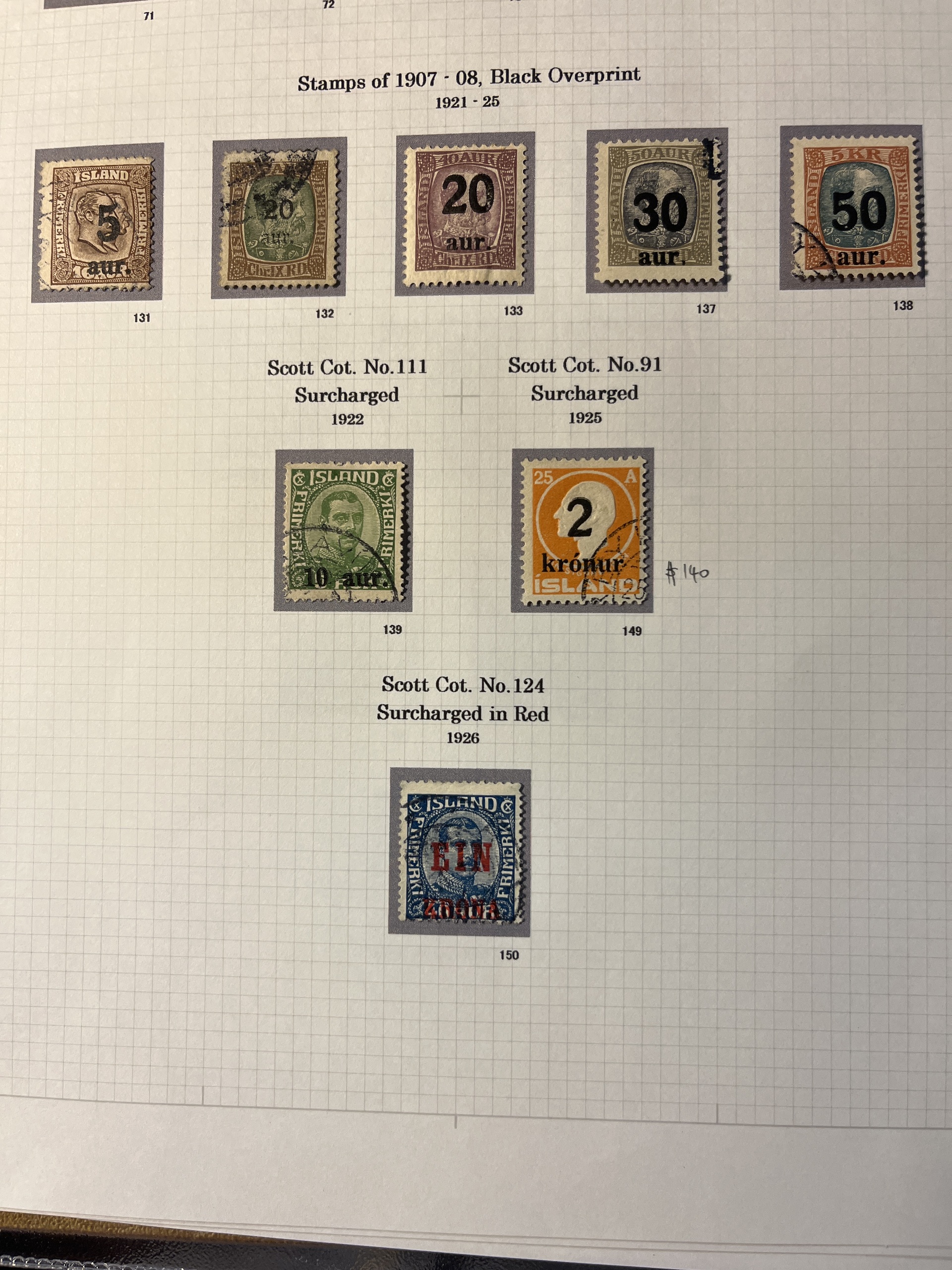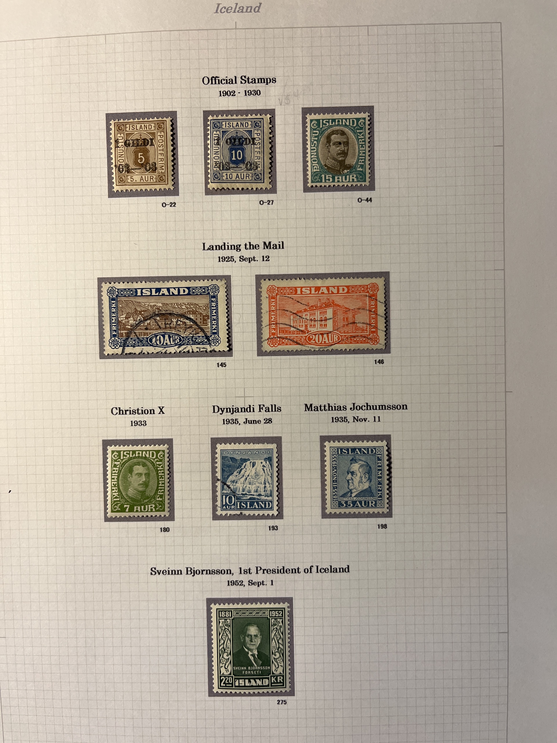 Iceland. Collection used 1876–1954 on home made leaves. Several better as 40 aur perf 14 x13½ * and 10 Kr Christian X used 1931. The entire lot is presented at www.philea.se. Mostly fine quality.