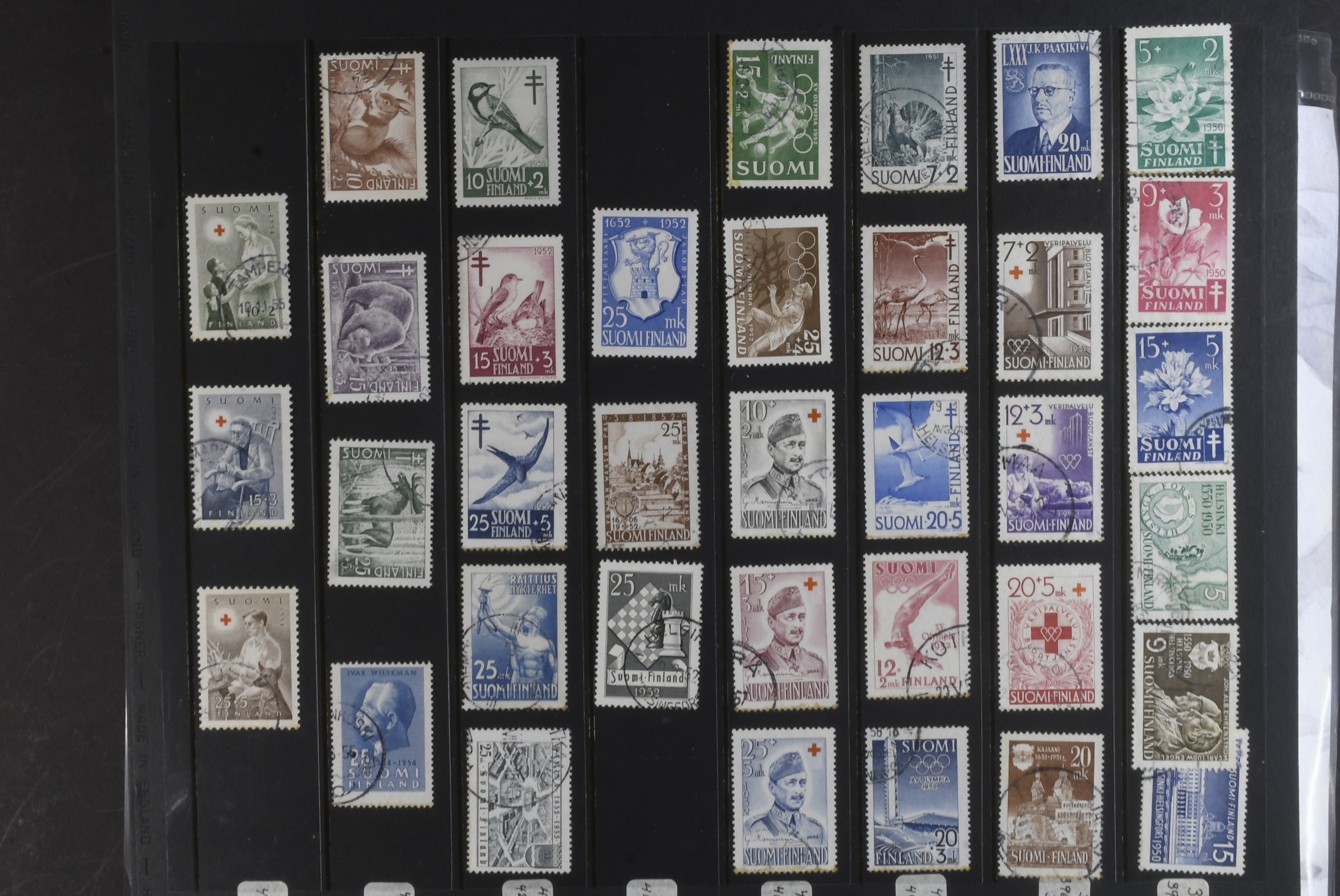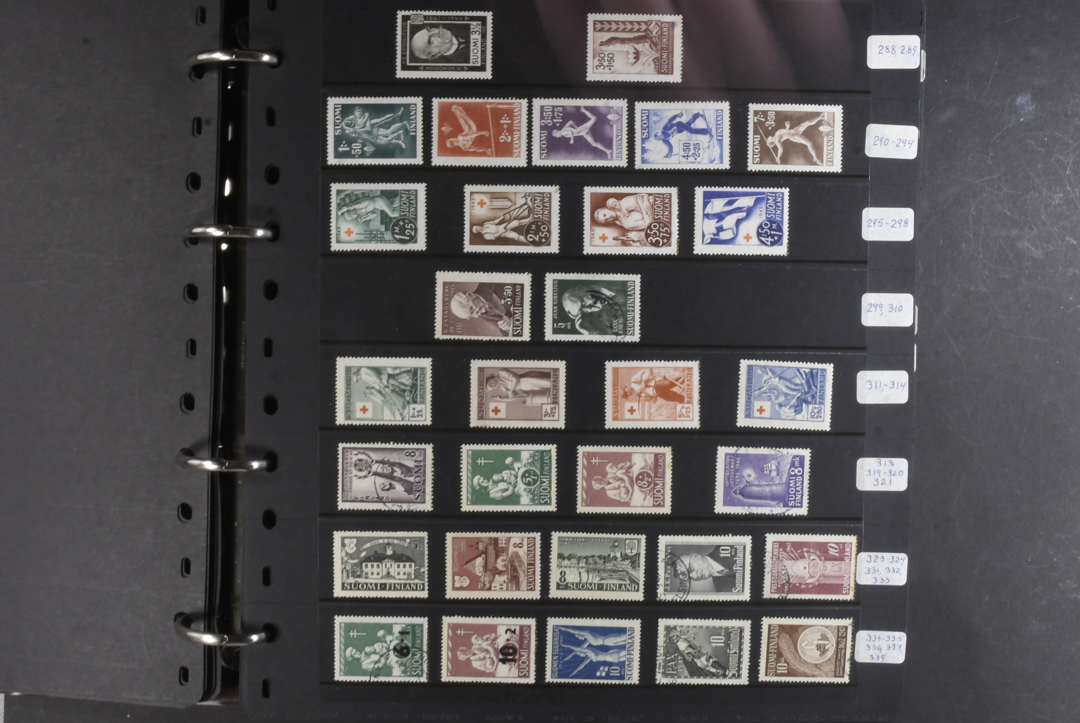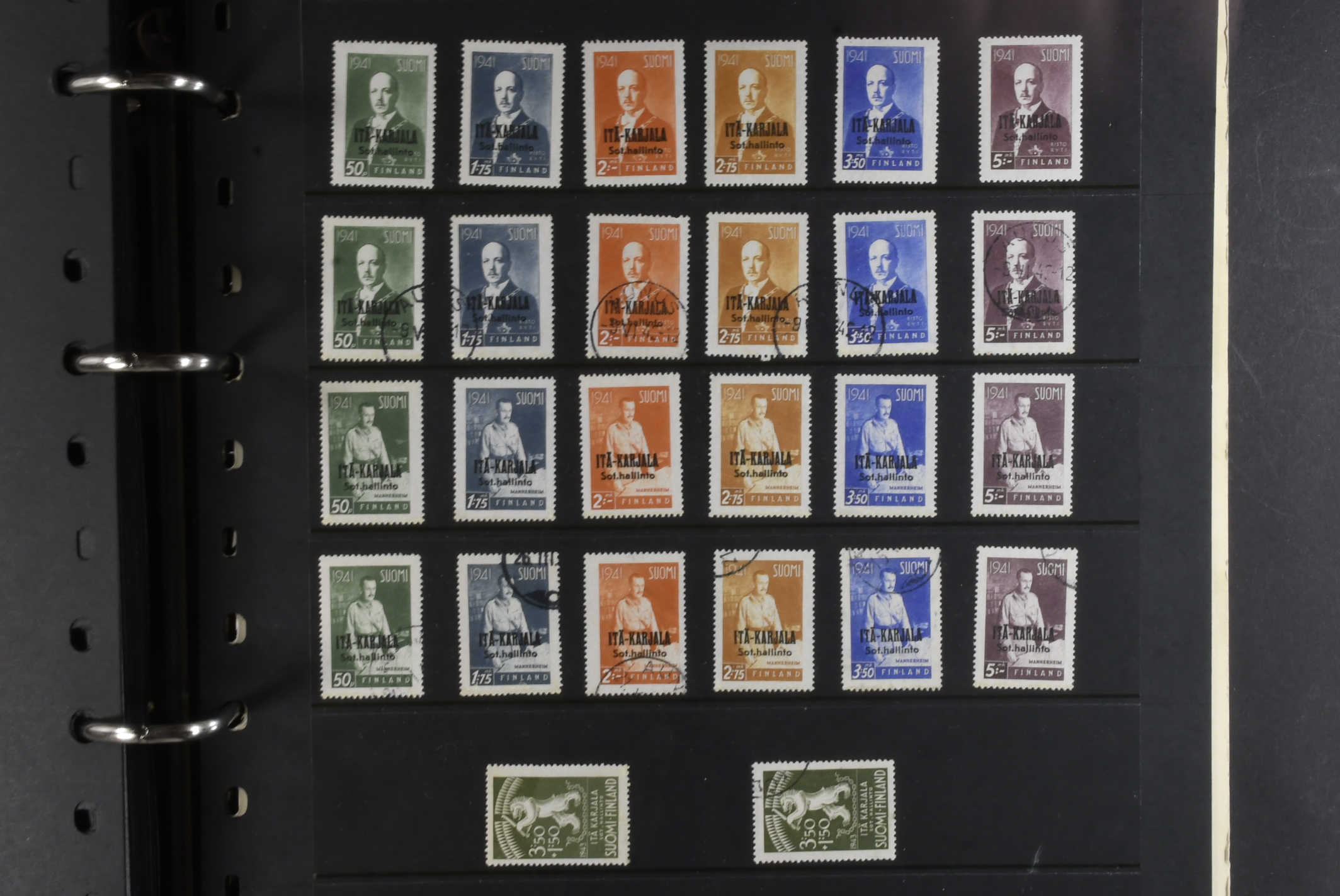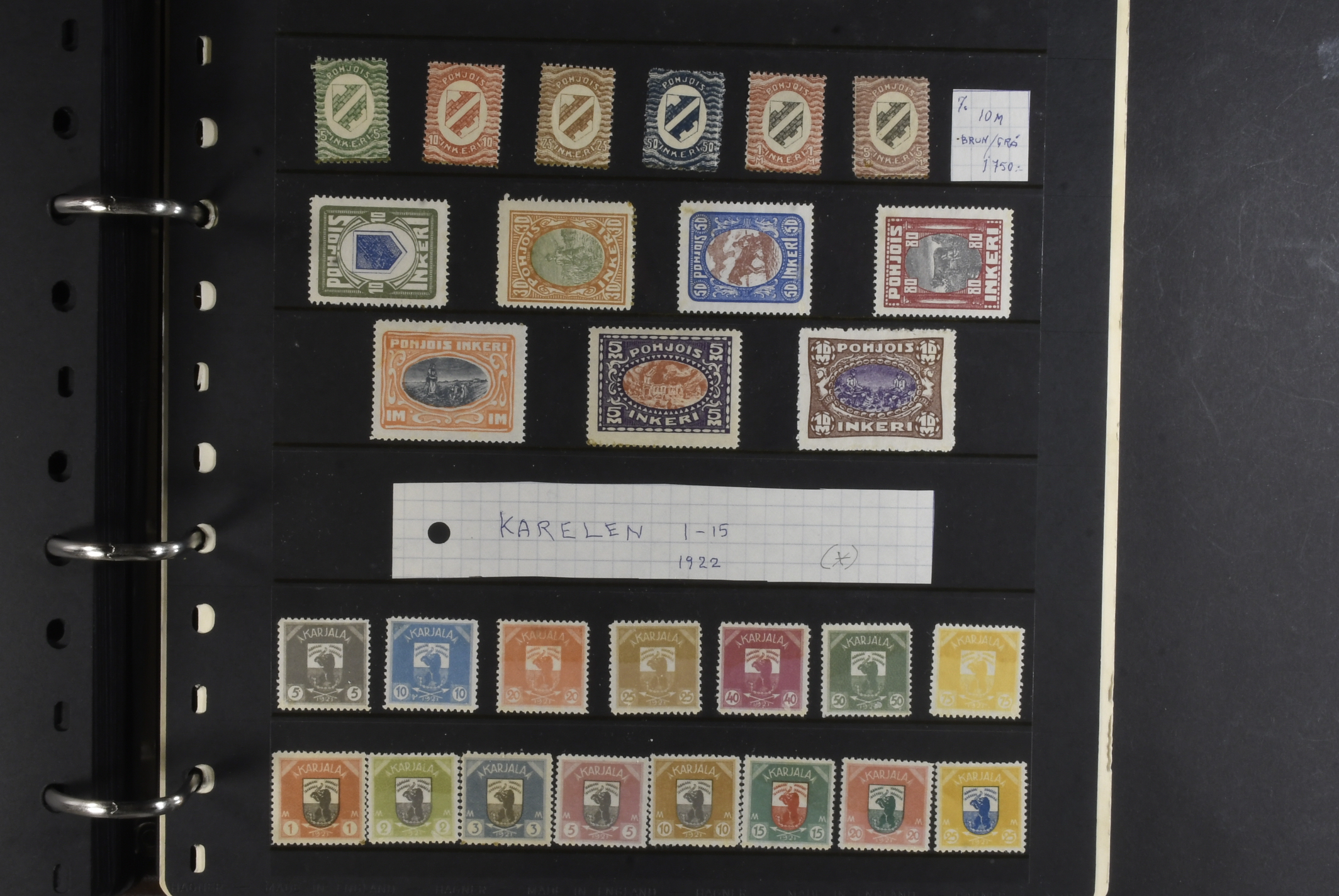 Finland. Collection ★★/★/⊙ 1856–2007 in album. Well filled collection with many better stamp. Condition is a bit mixed with some stamps with brown spots and some of the mint are with no gum e.g. Zeppelin and Karelen set. Uncounted € face value in the last few years and at the end a section of Aland is. Viewing is recommended. Please see a selection of scans at www.philea.se. Mixed quality. (1000+)
