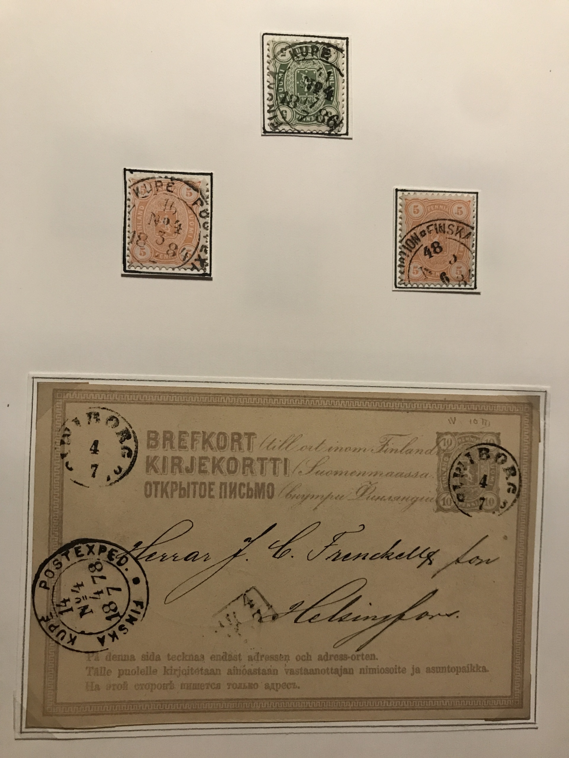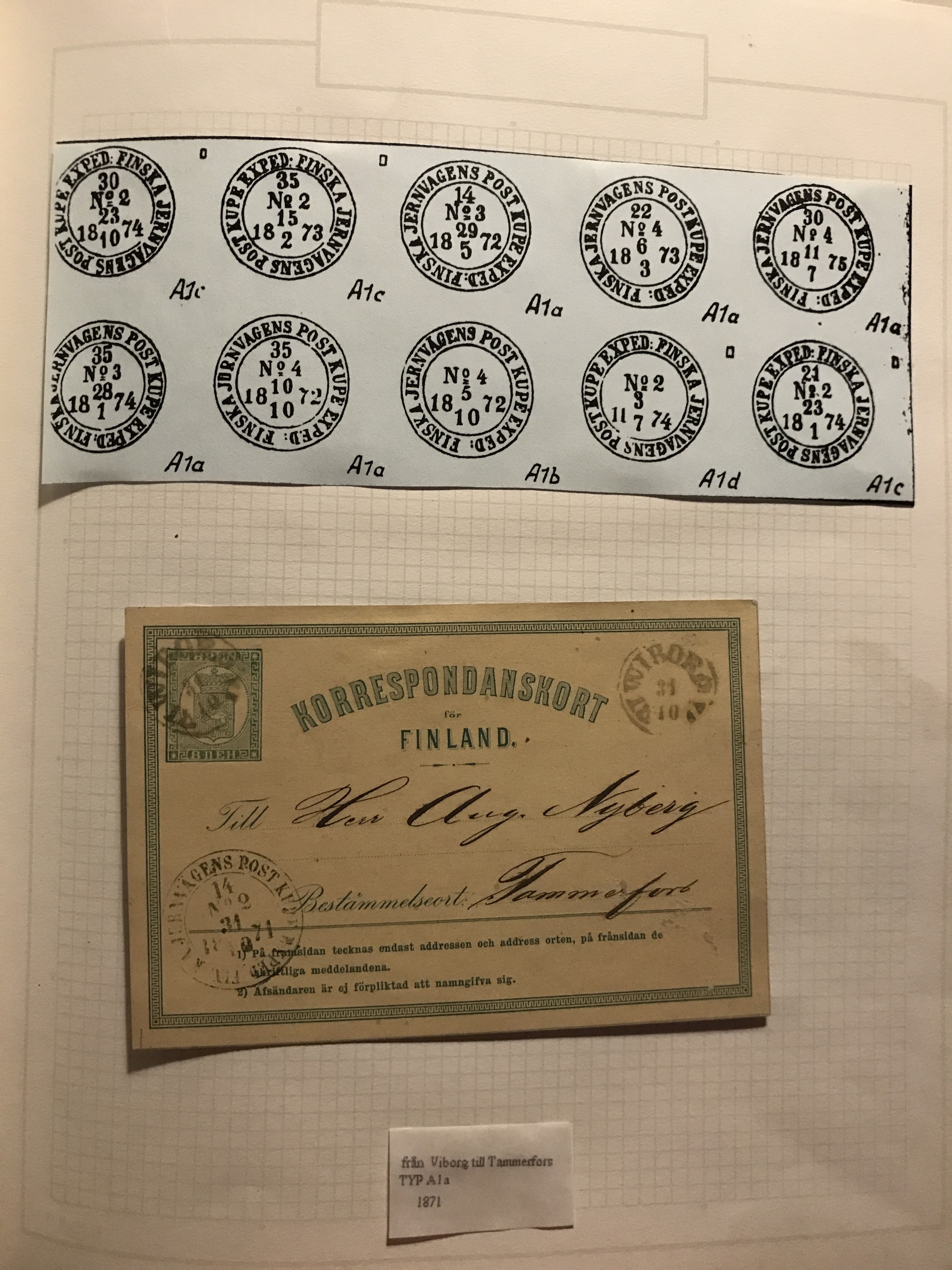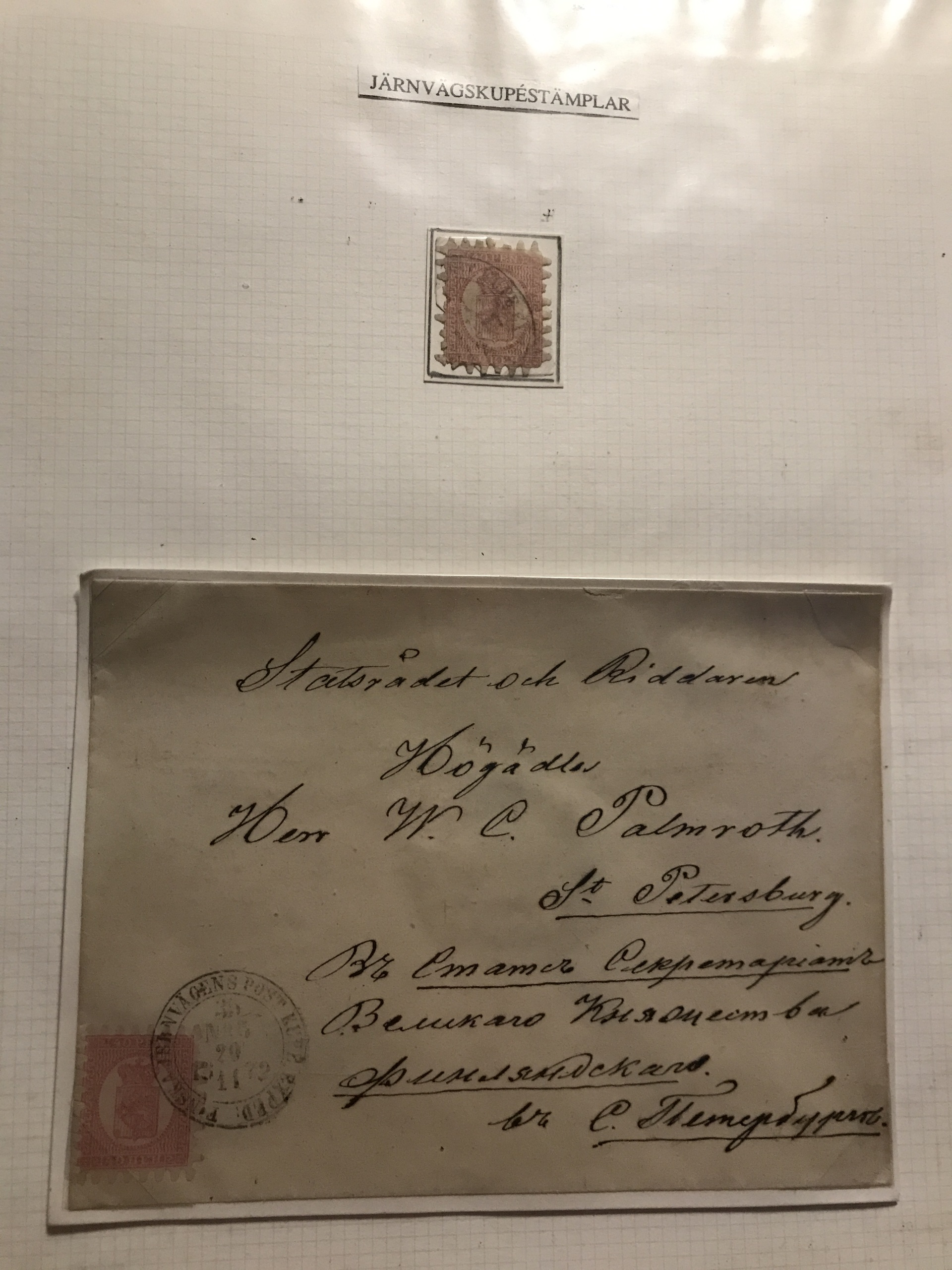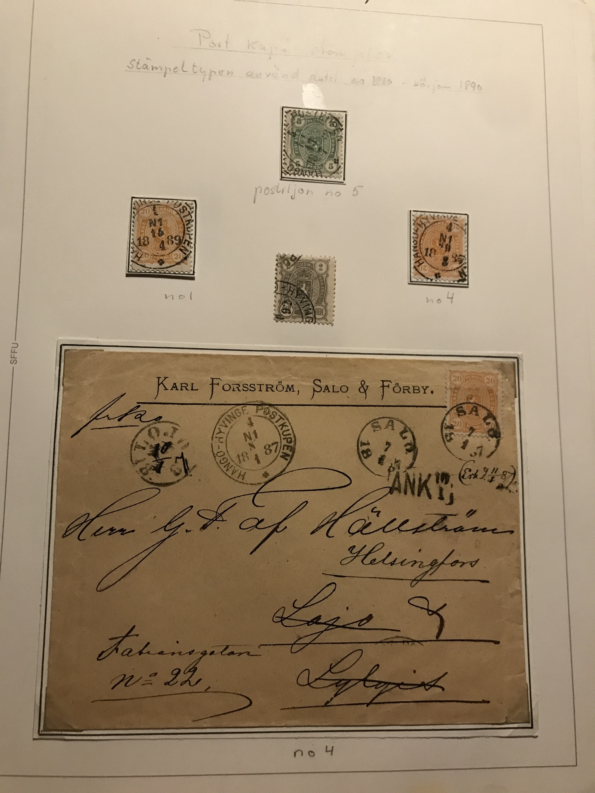 Finland. Cancellations. Collection Finnish railway post 1860s–ca. 1900 in two binders. Containing about 85 stamps and 95 covers/postal stationeries incl. many better ones. Please see a selection of scans at www.philea.se.