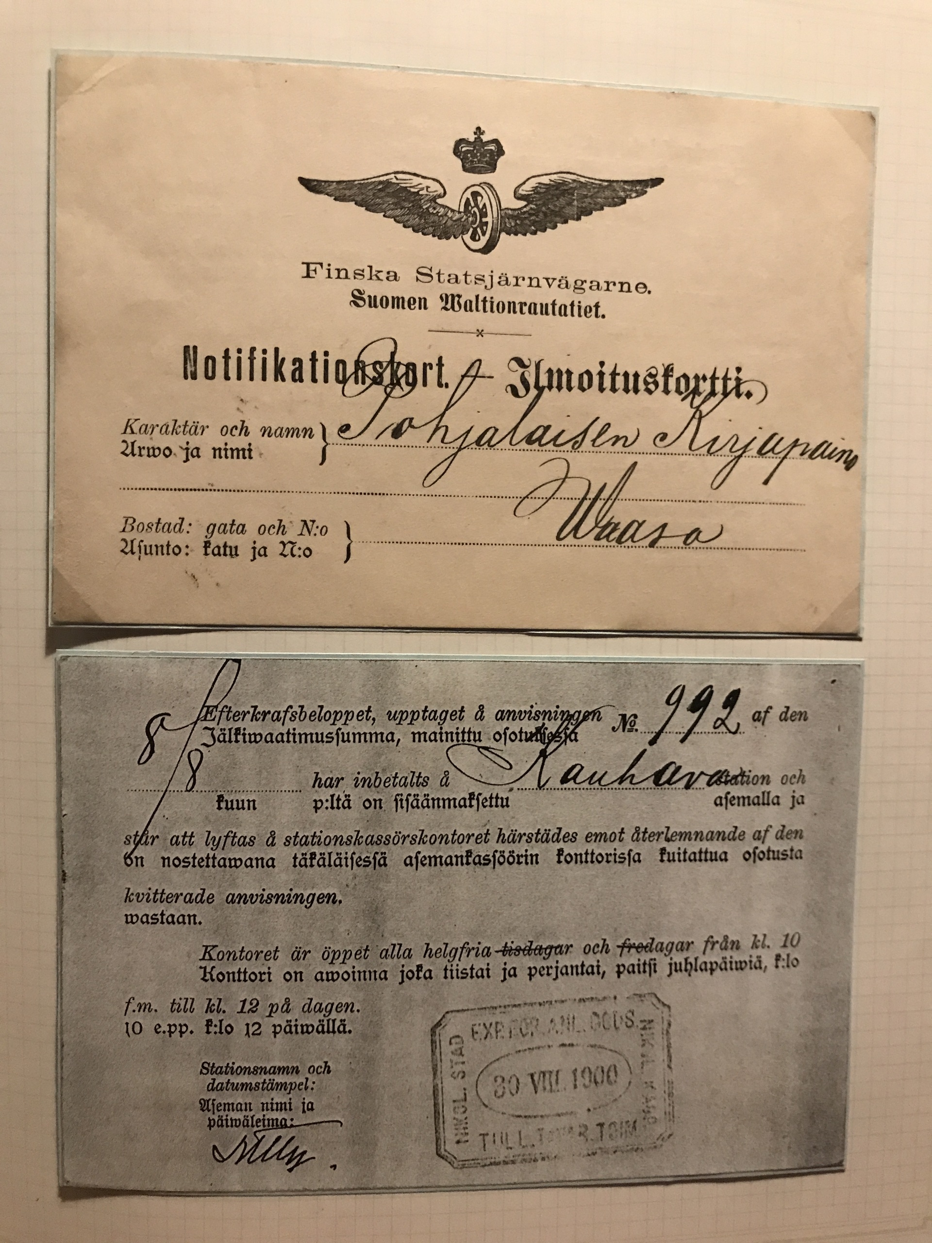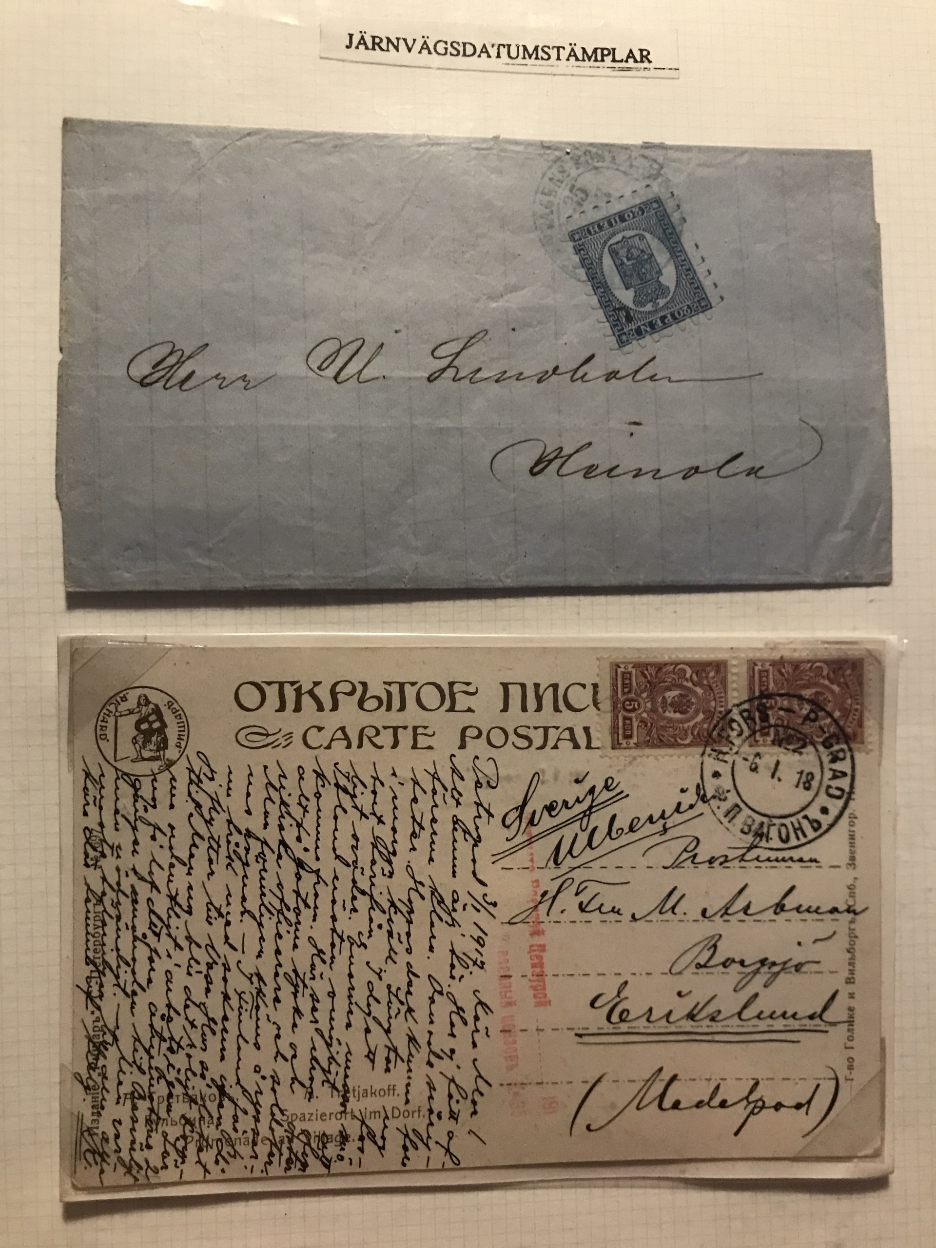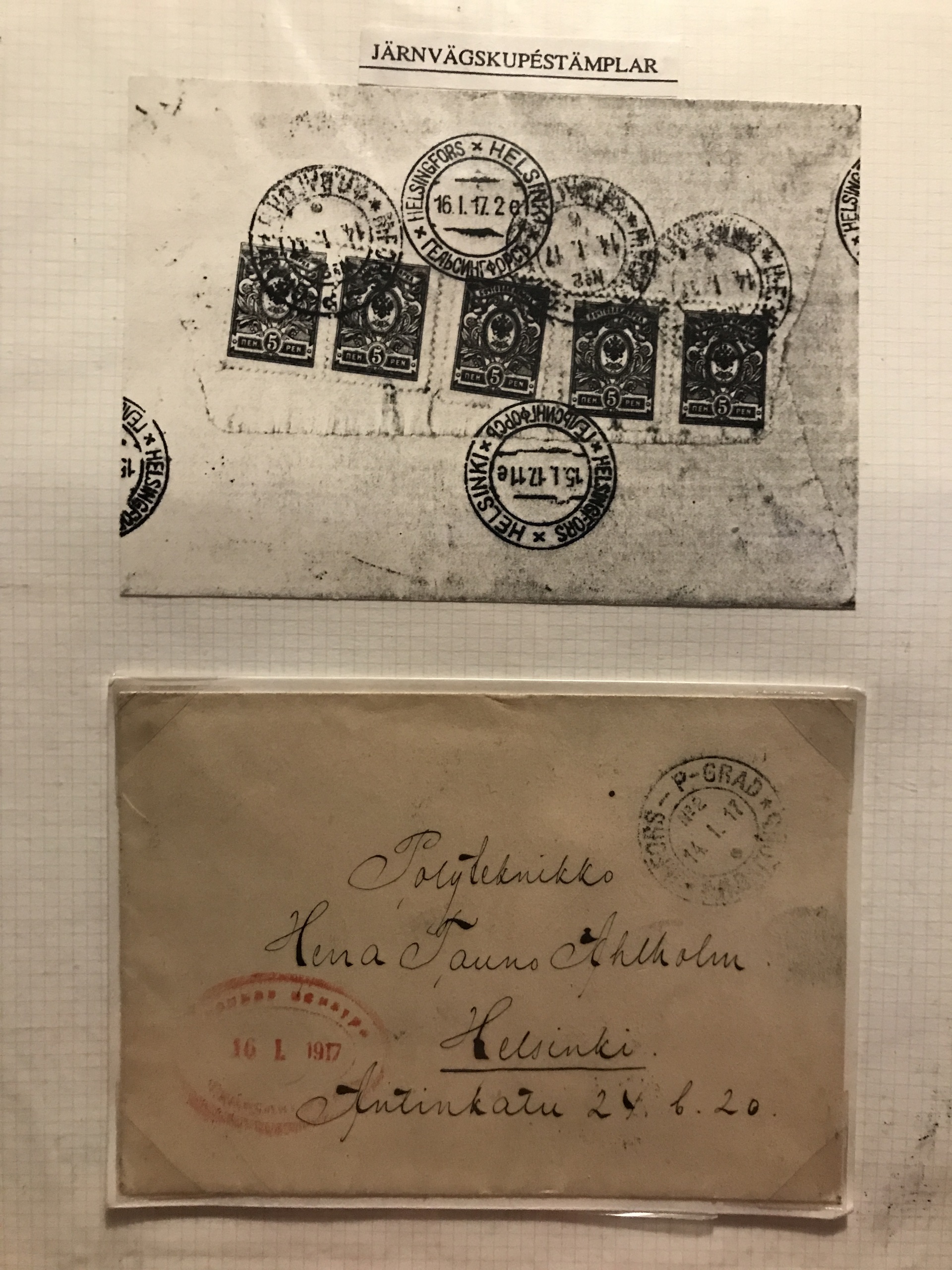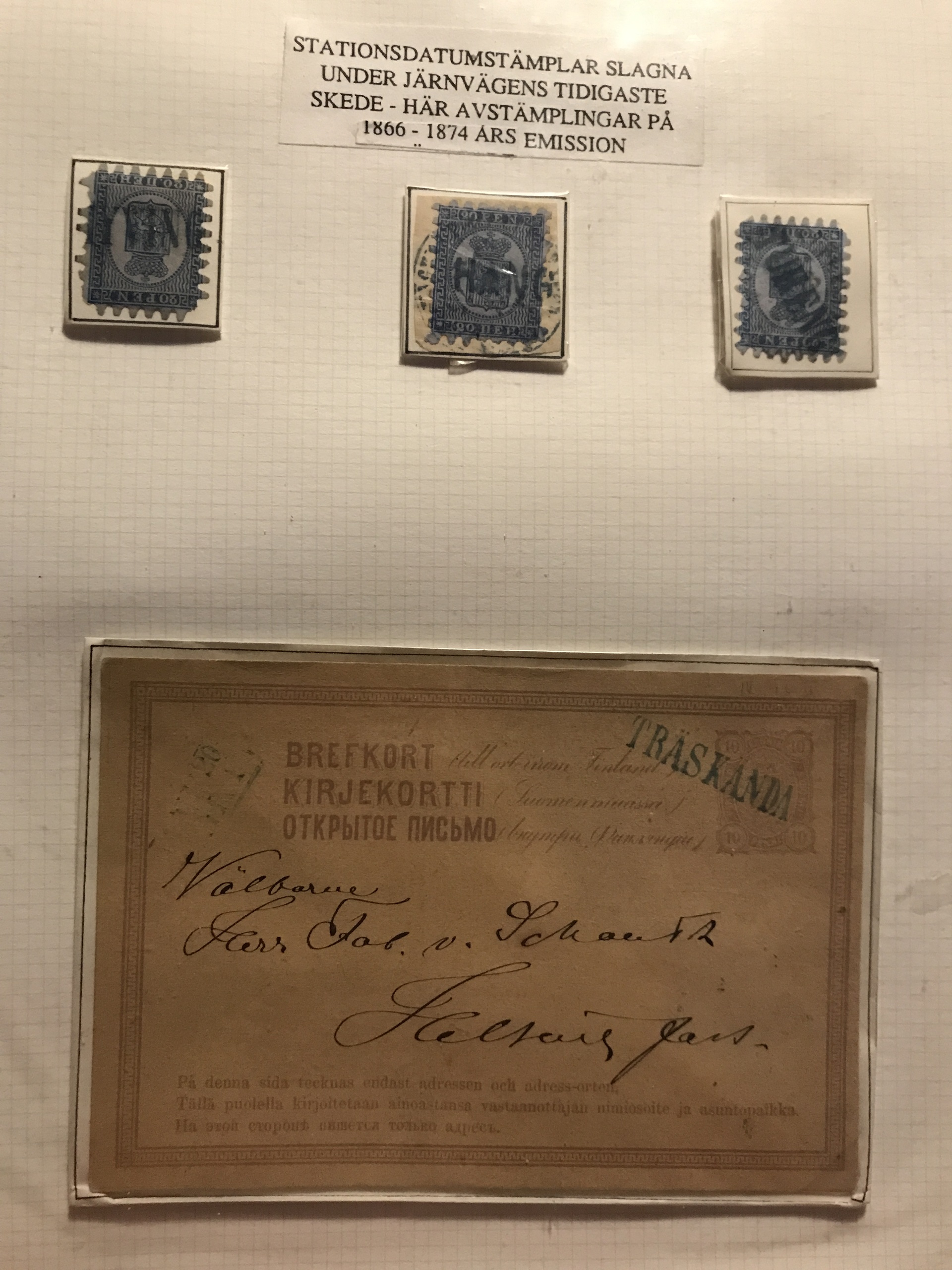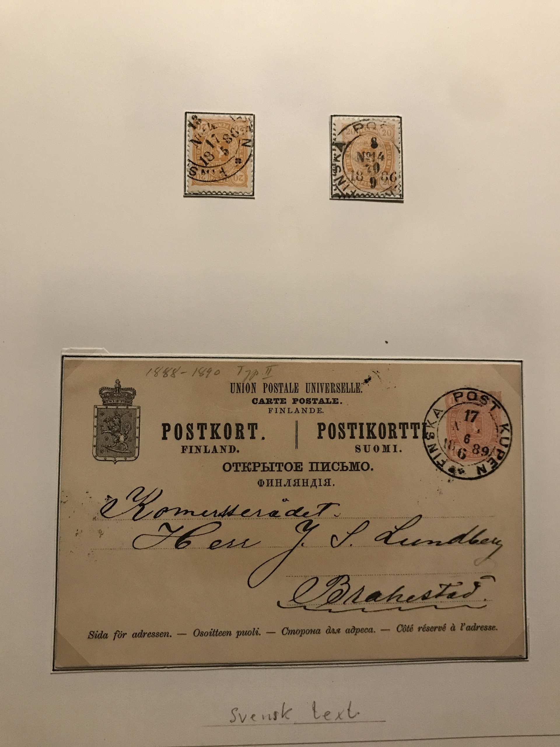 Finland. Cancellations. Collection Finnish railway post 1860s–ca. 1900 in two binders. Containing about 85 stamps and 95 covers/postal stationeries incl. many better ones. Please see a selection of scans at www.philea.se.