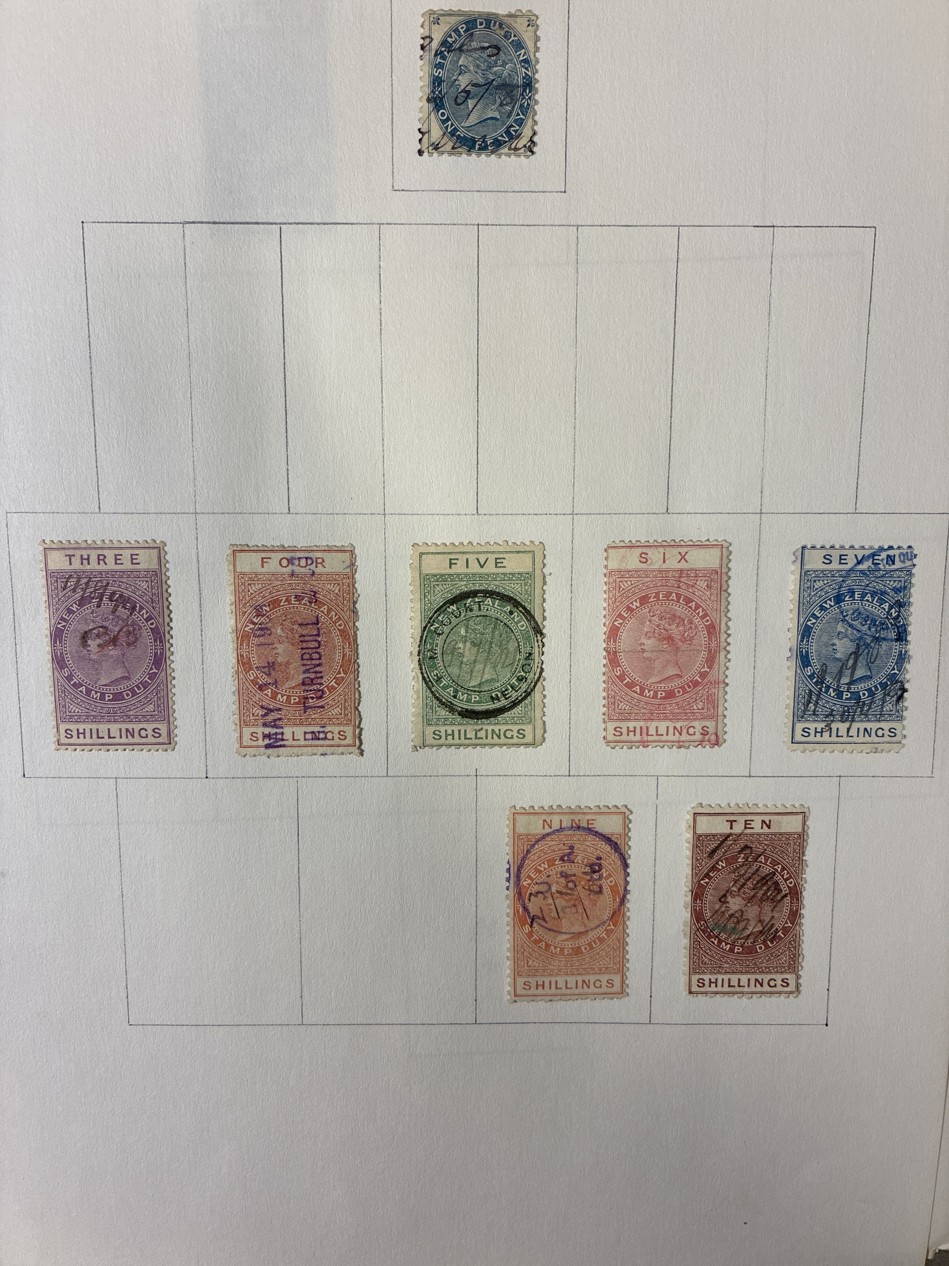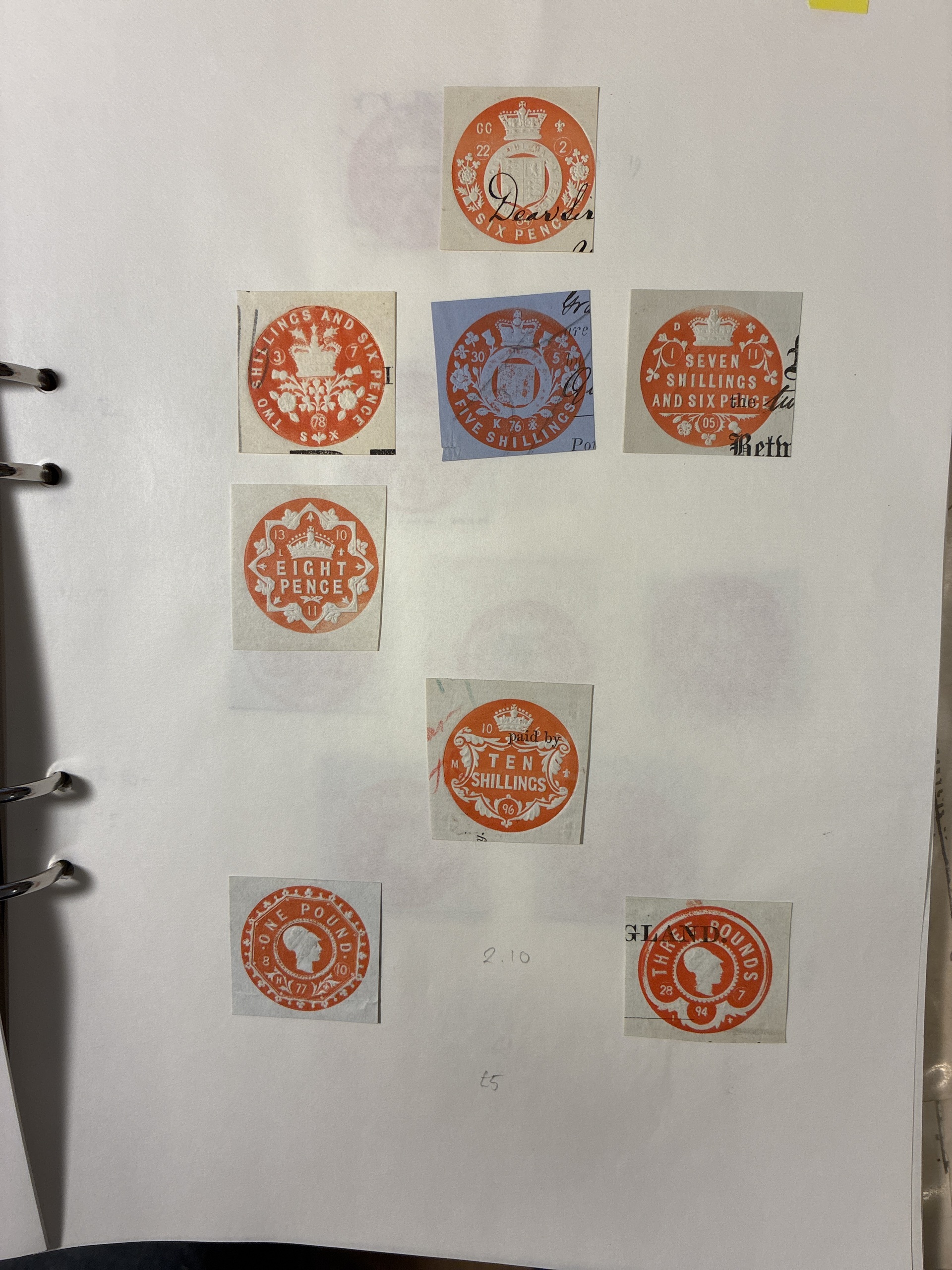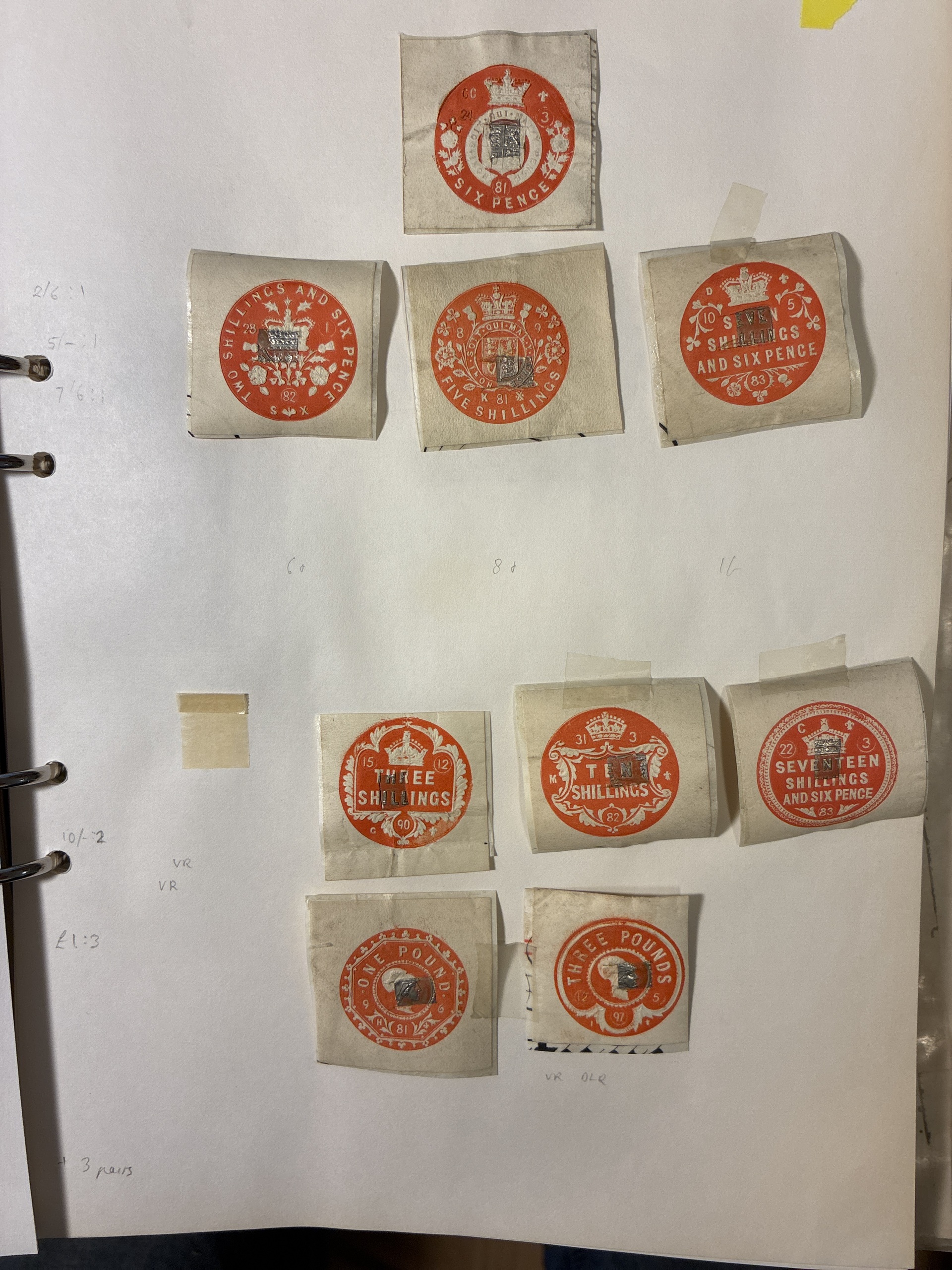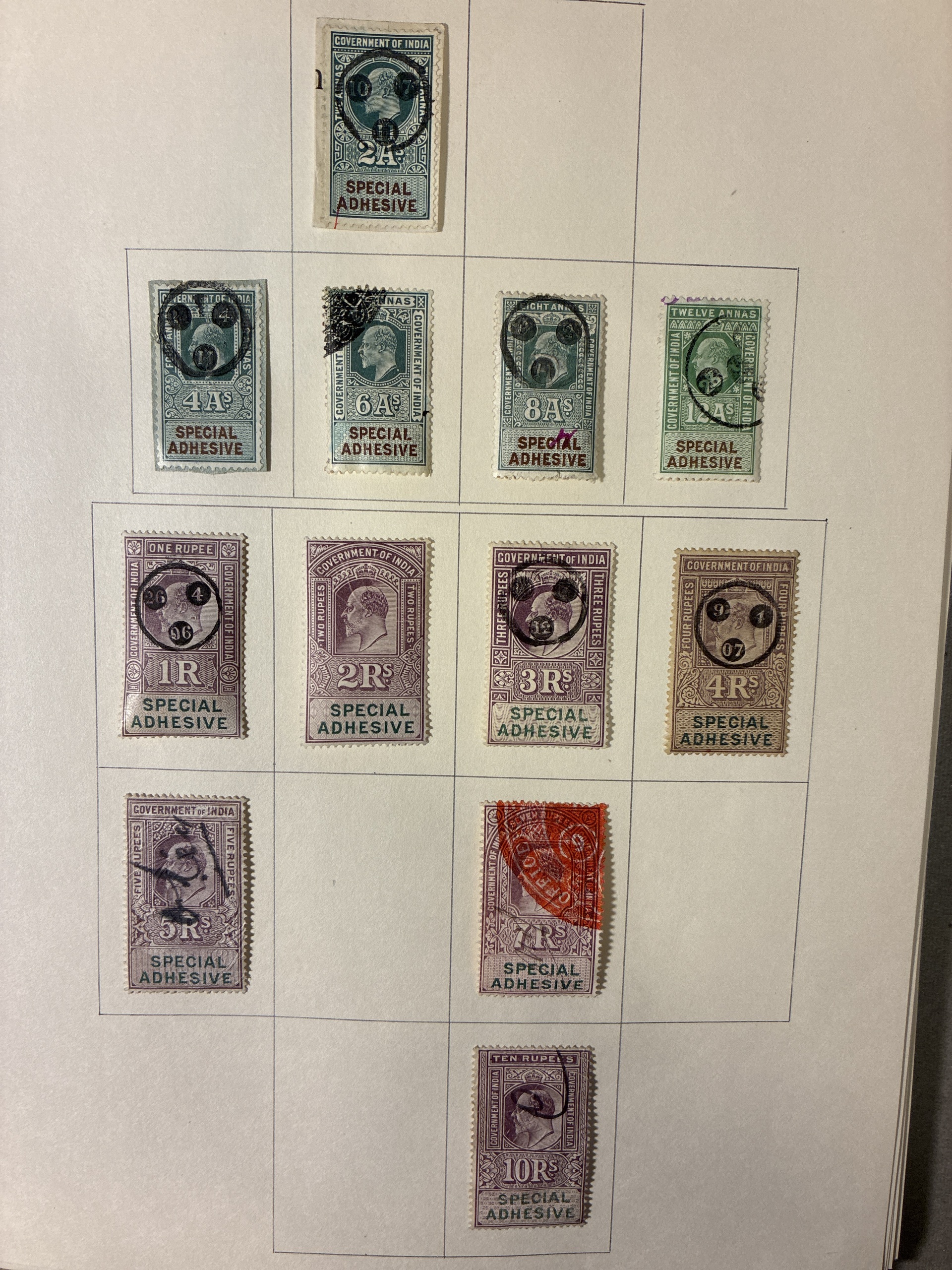 ALL WORLD. Revenues, collection 1750–1930s in box. Revenue stamps GB, Empire, USA in seven albums. Nice collection. Please see a selection of scans at www.philea.se. Somewhat mixed quality. Approx. 7 kg. (>1000)