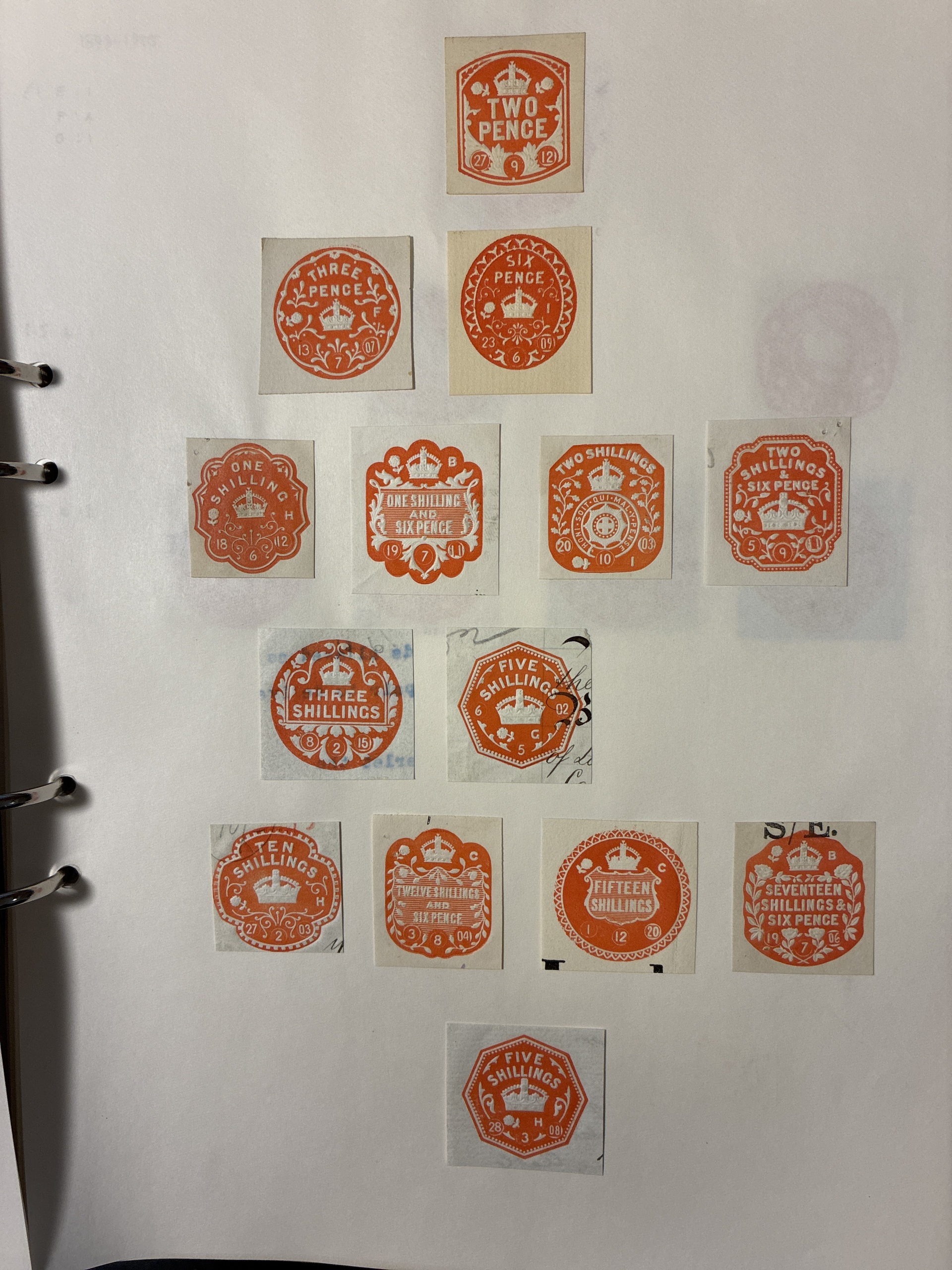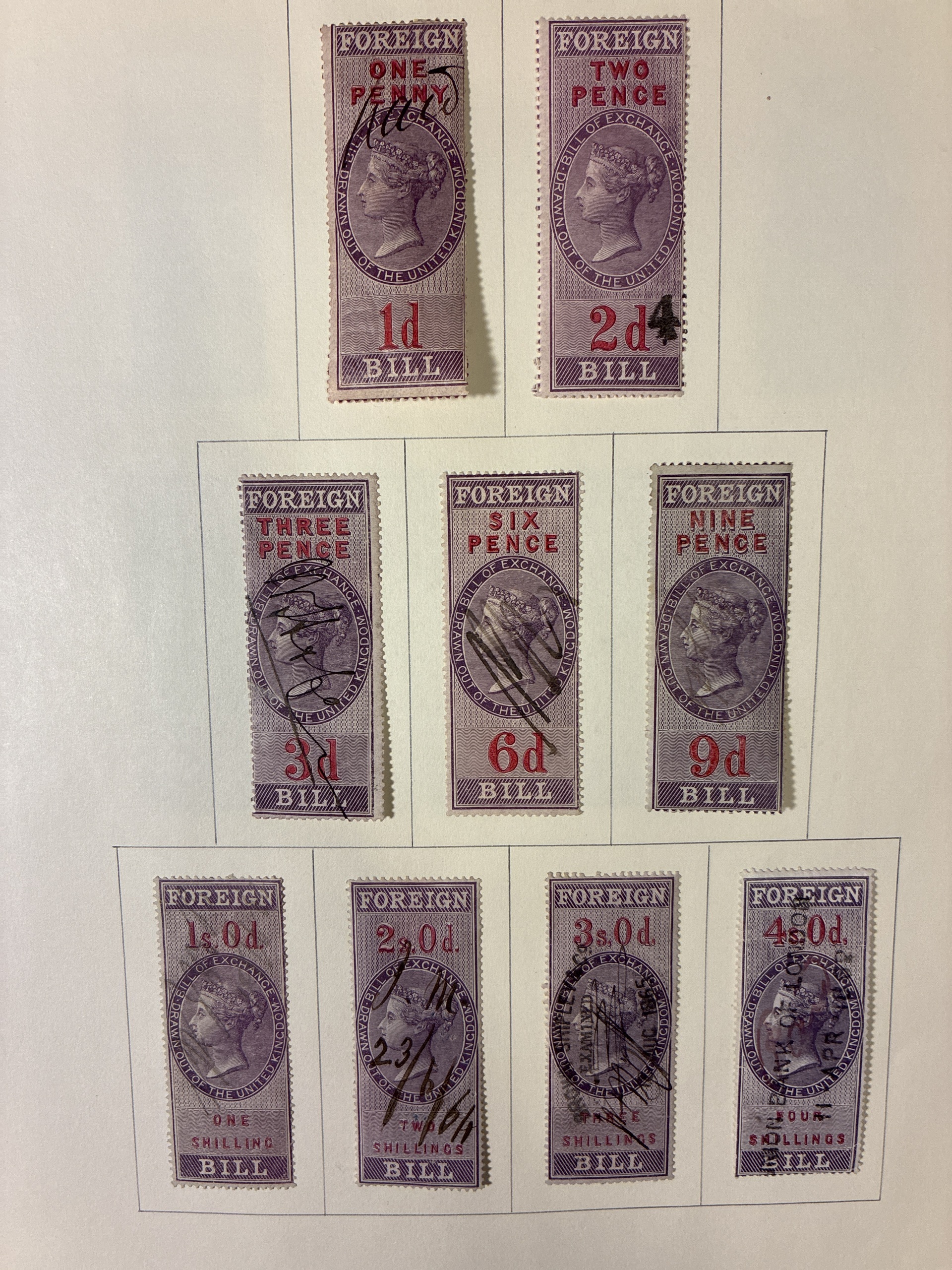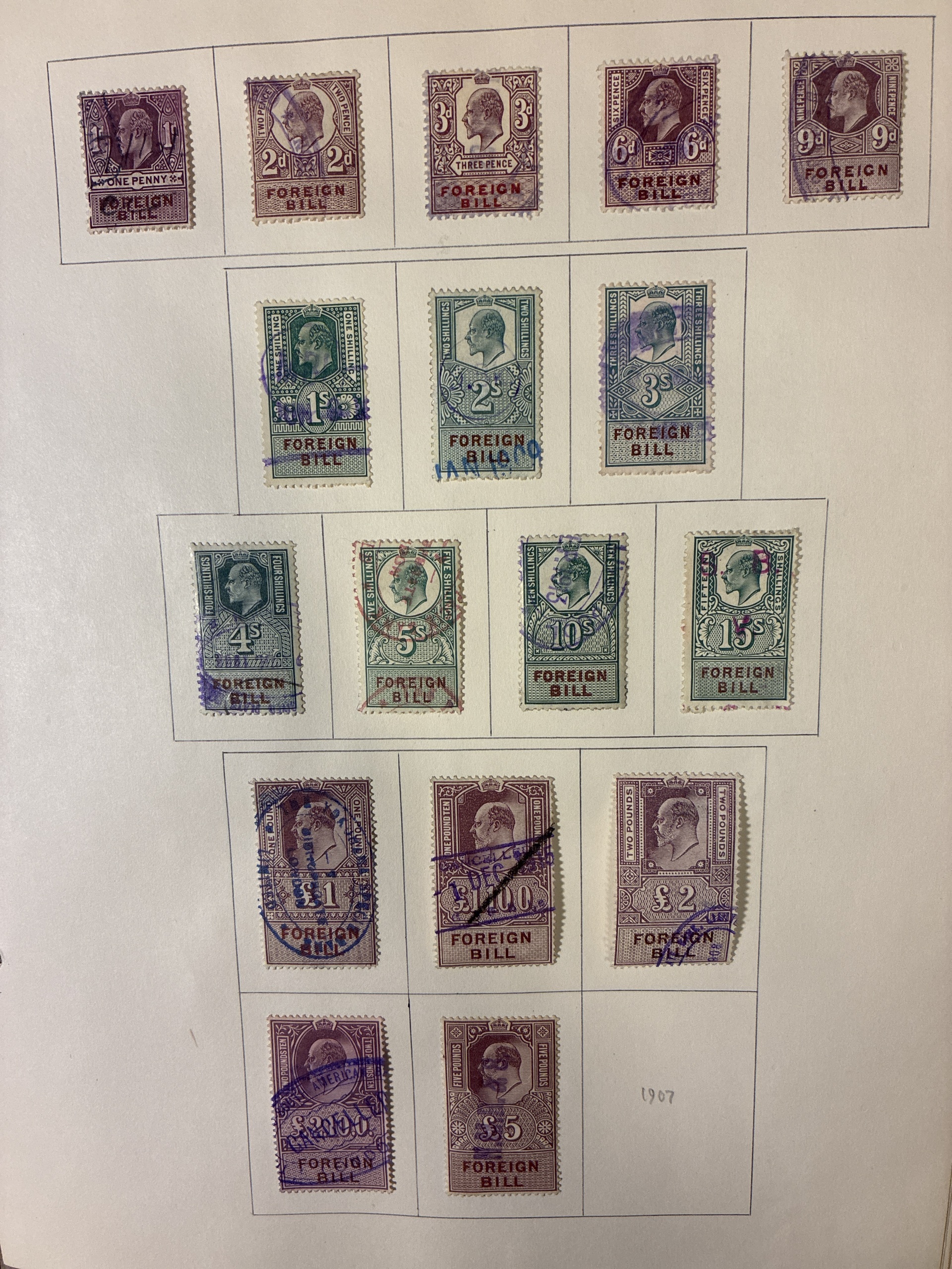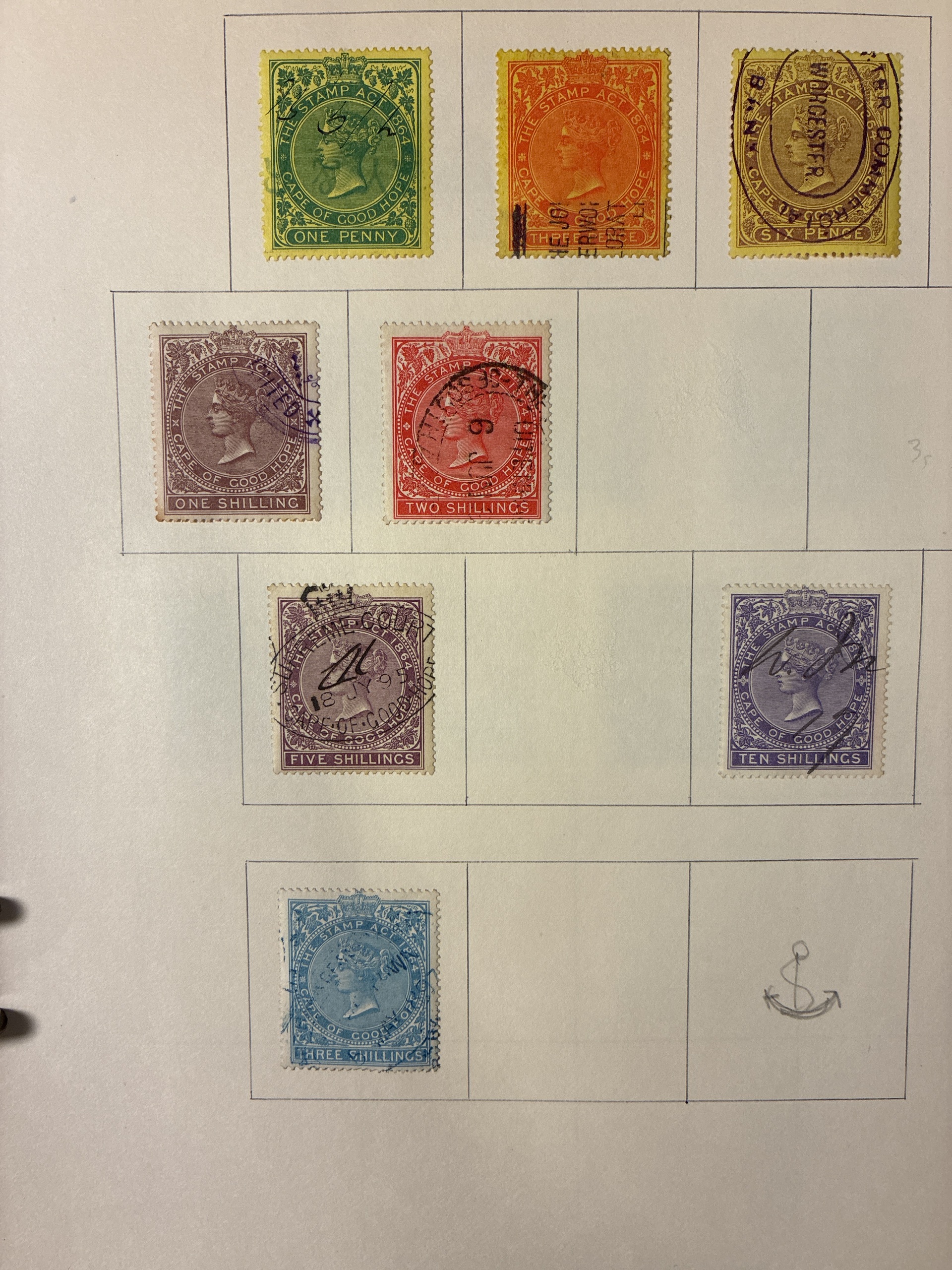 ALL WORLD. Revenues, collection 1750–1930s in box. Revenue stamps GB, Empire, USA in seven albums. Nice collection. Please see a selection of scans at www.philea.se. Somewhat mixed quality. Approx. 7 kg. (>1000)