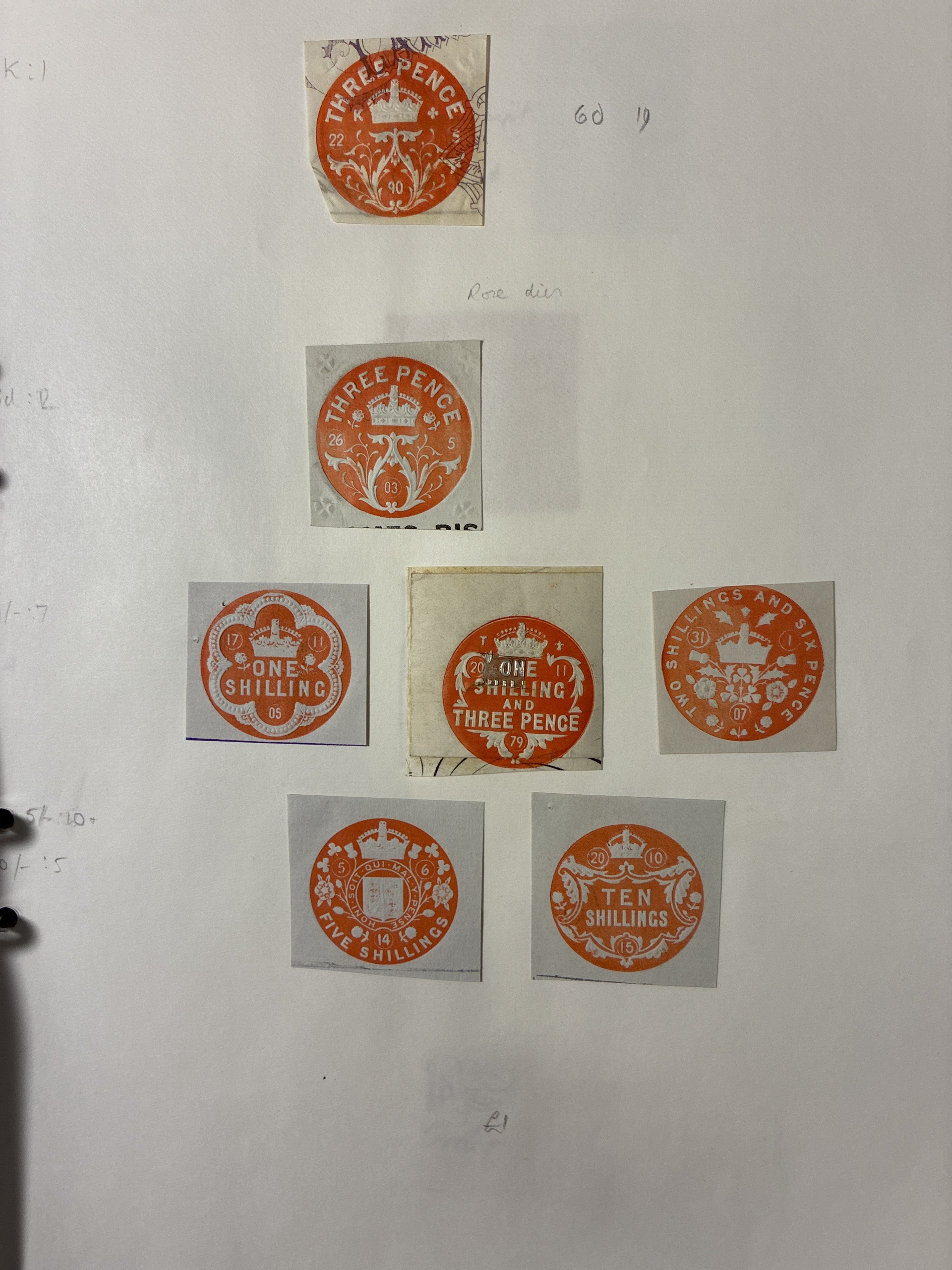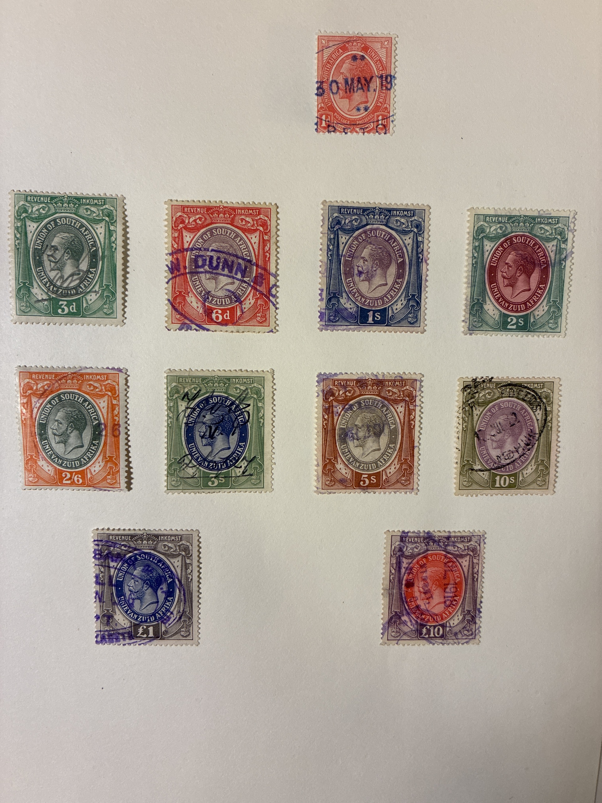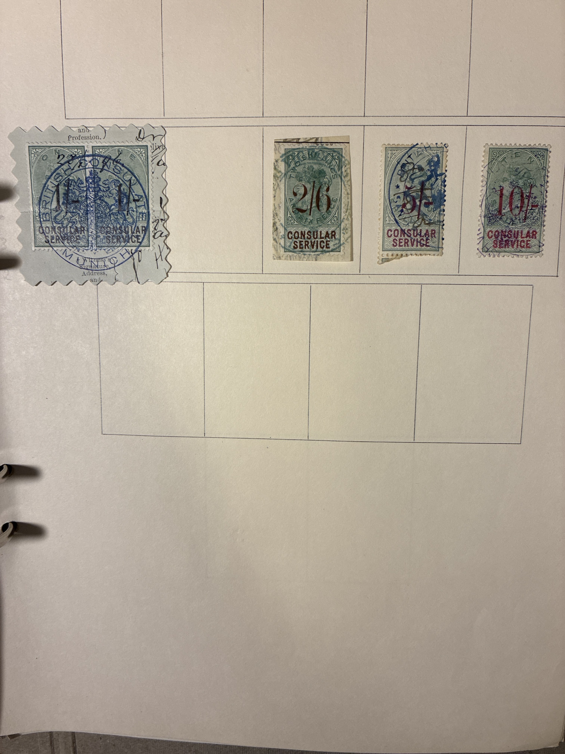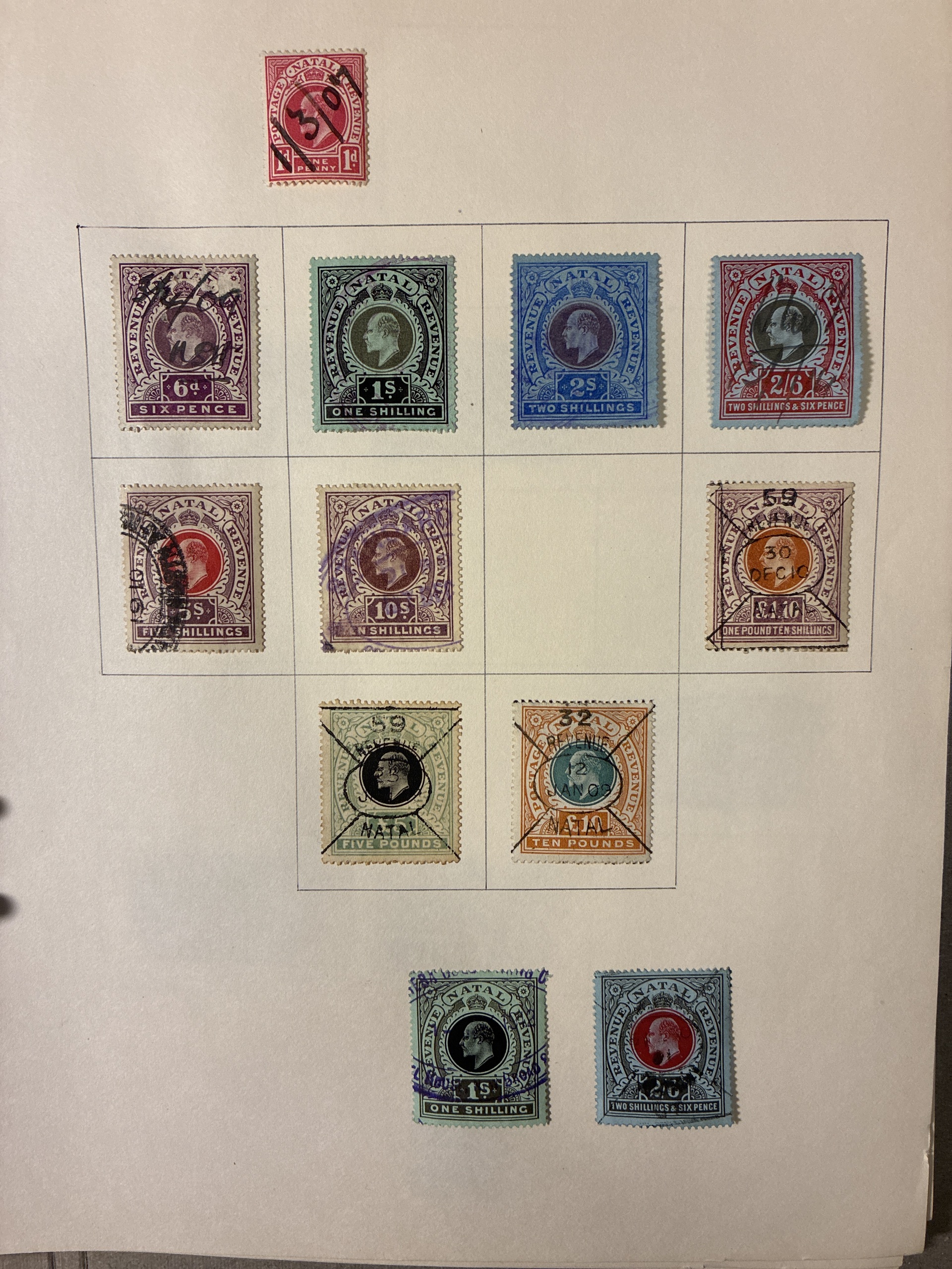 ALL WORLD. Revenues, collection 1750–1930s in box. Revenue stamps GB, Empire, USA in seven albums. Nice collection. Please see a selection of scans at www.philea.se. Somewhat mixed quality. Approx. 7 kg. (>1000)