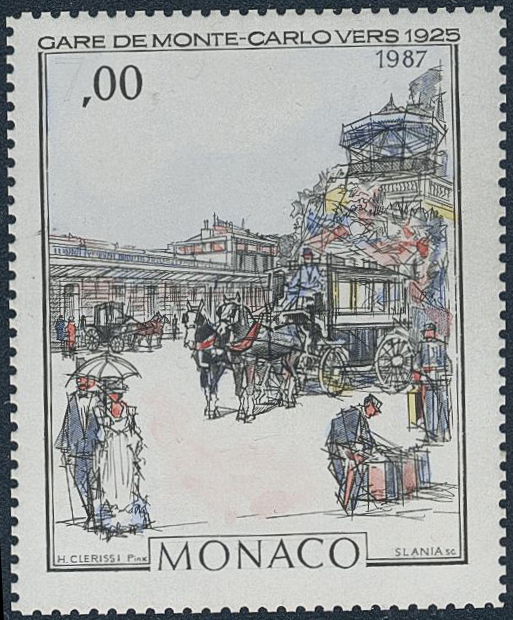 Thematics, Slania, Monaco. Michel 1842. (★). 1987 Belle Epoque VI 7 Fr. First digit in value visible only as a silhouette. Stamp proof hand-coloured by Slania. Unique item!
