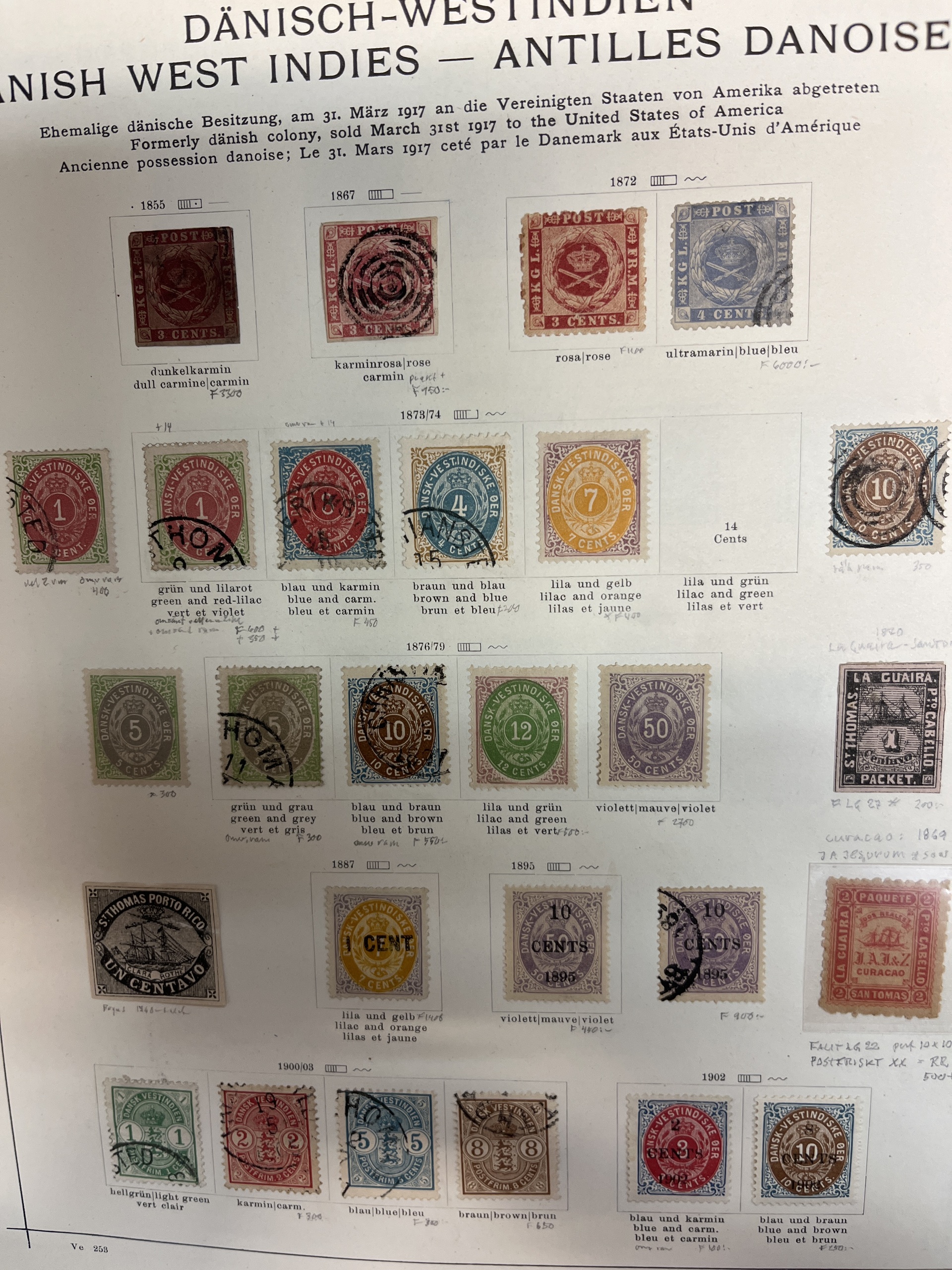 Danish West Indies. Collection ★/⊙ 1855–1915 on leaves. Several better. The entire lot is presented at www.philea.se. Mostly fine quality.