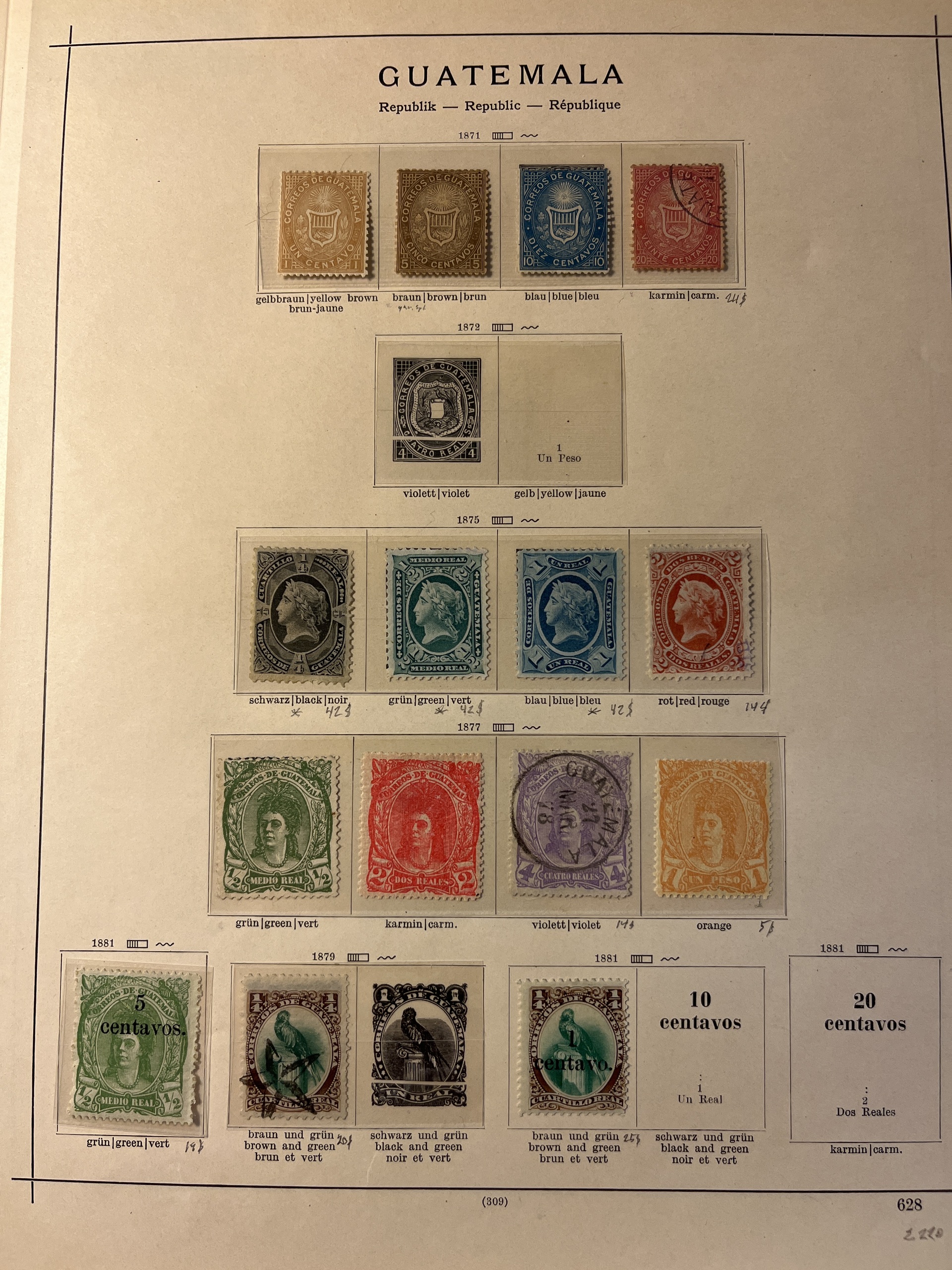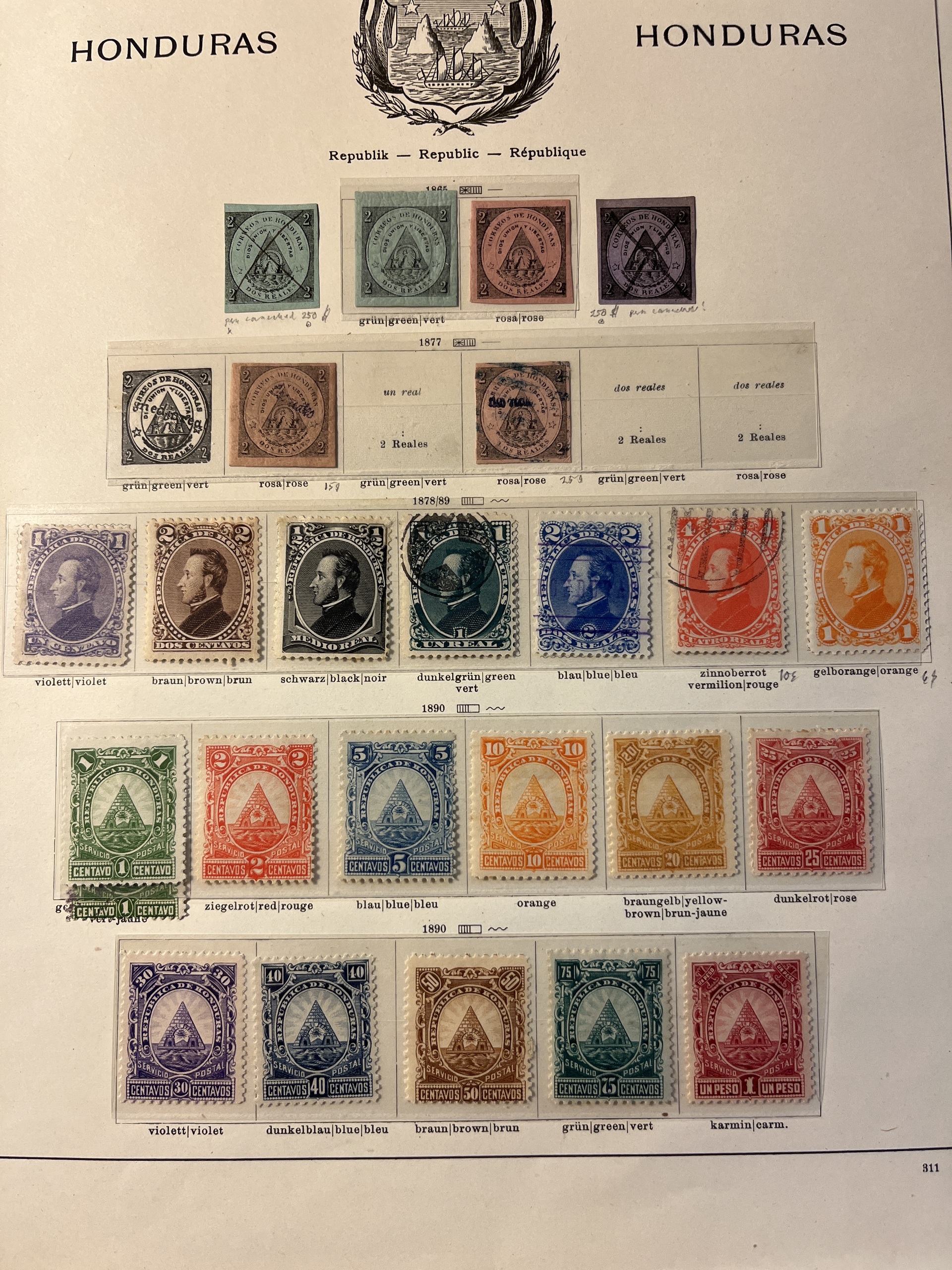 ALL WORLD, SOUTH AMERICA. Collection ★/⊙ 1853–1935 on leaves. Costa Rica, Guatemala and Honduras. Several better. Not complete, but not so many emty spaces here. High catalogue value. Please see a selection of scans at www.philea.se. Mostly fine quality.