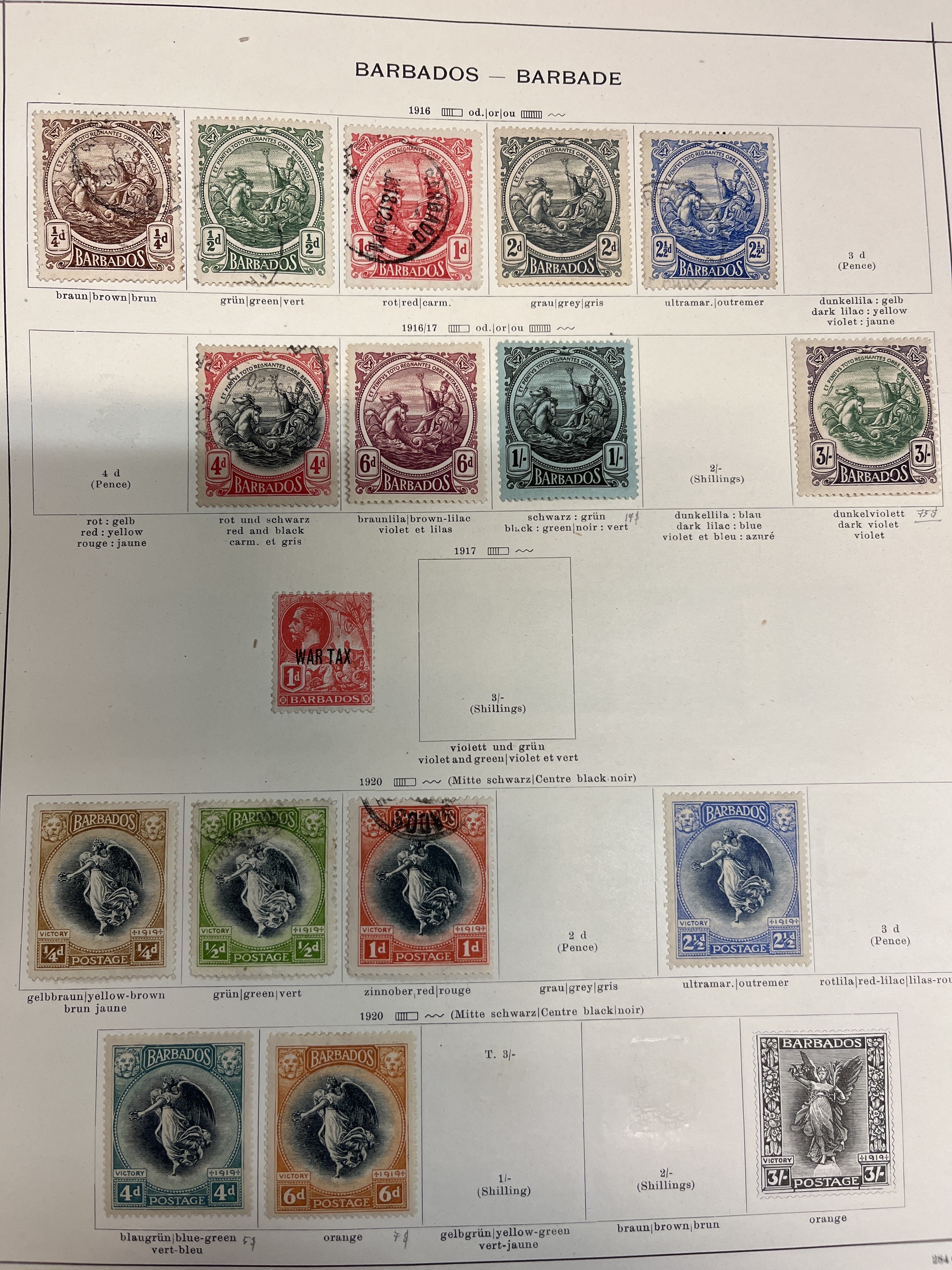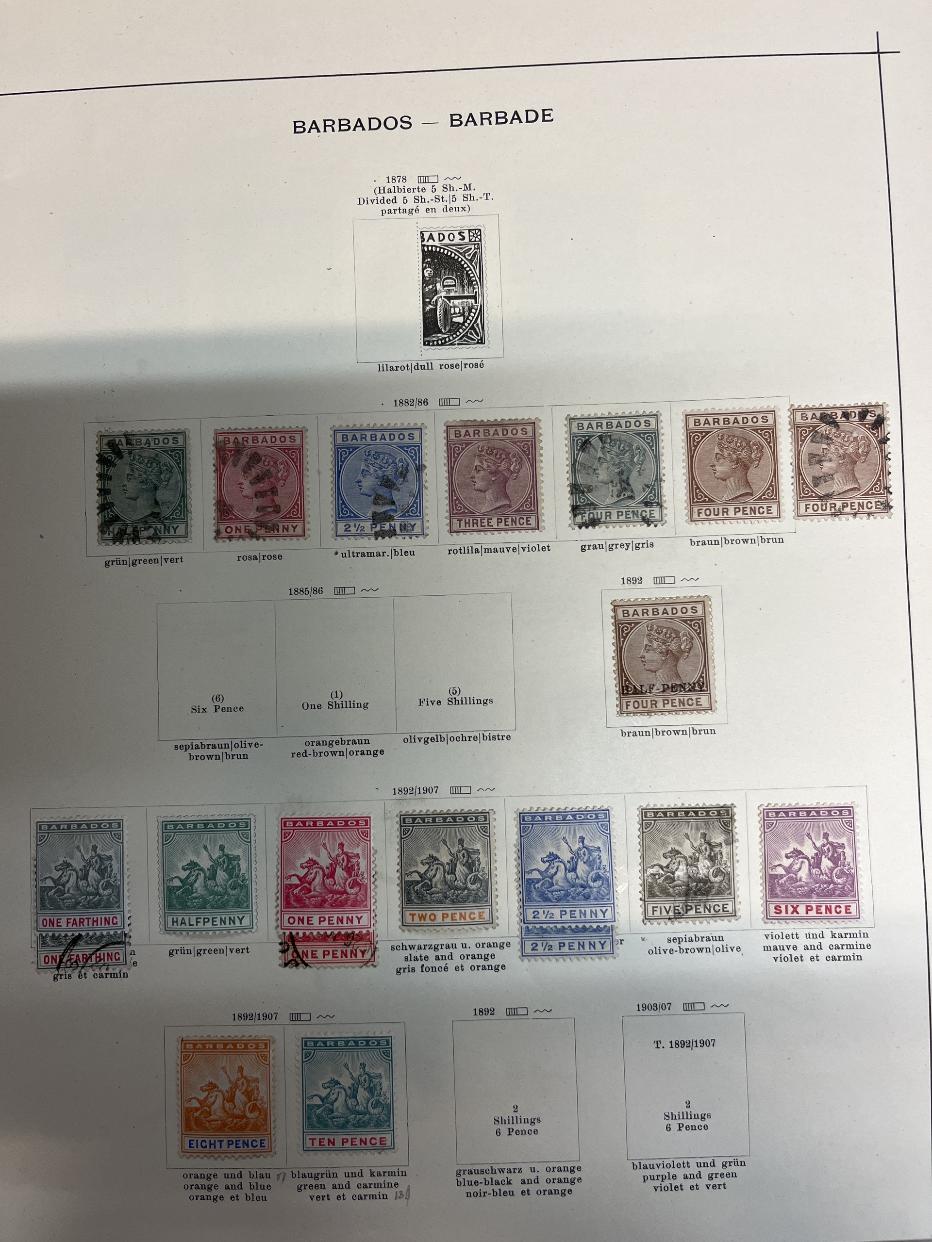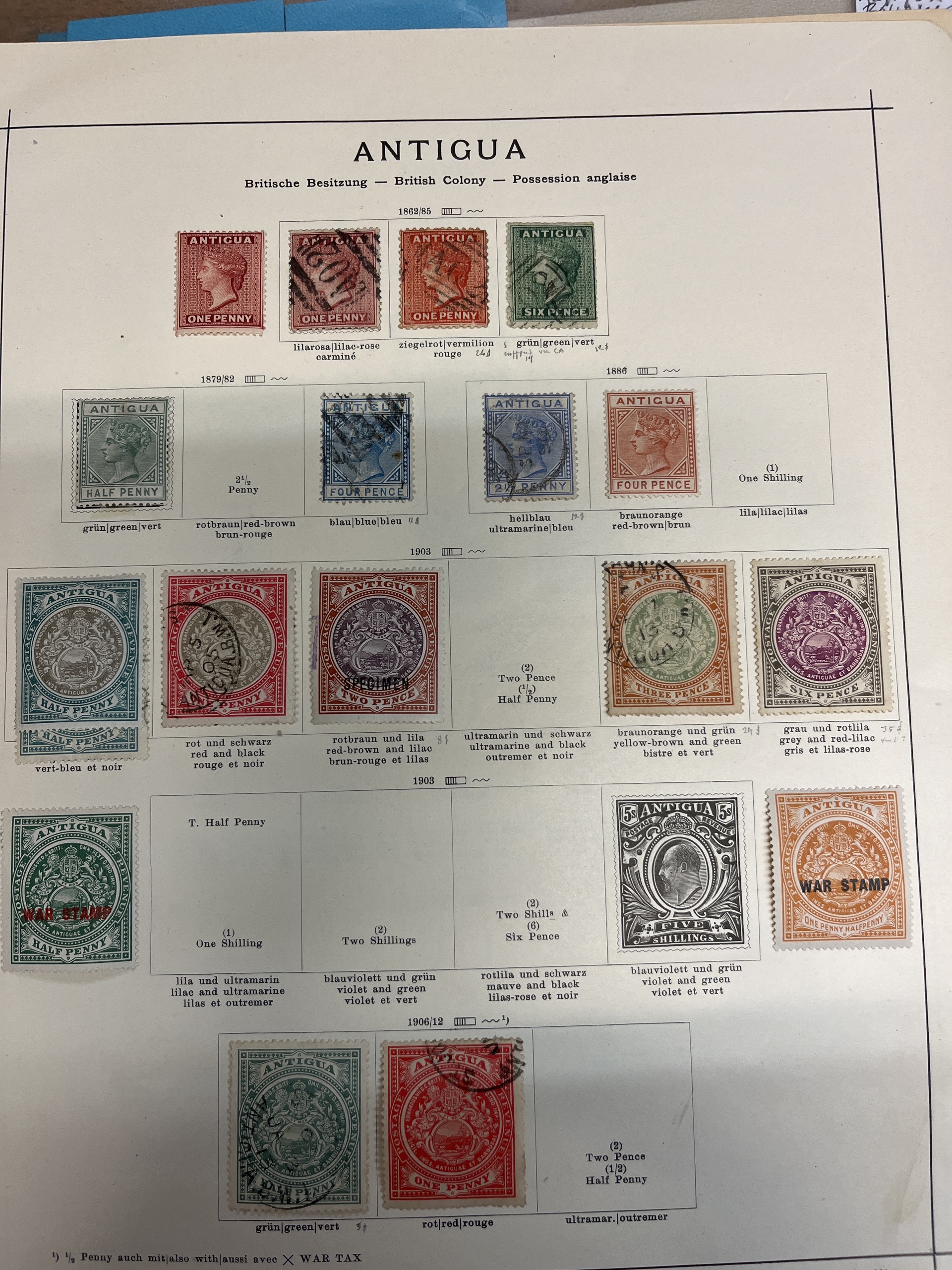 Antigua. Collection ★/⊙ 1858–1937 on leaves. Also Bahamas and Barbados. Several a bit better. Please see a selection of scans at www.philea.se. Mostly fine quality.