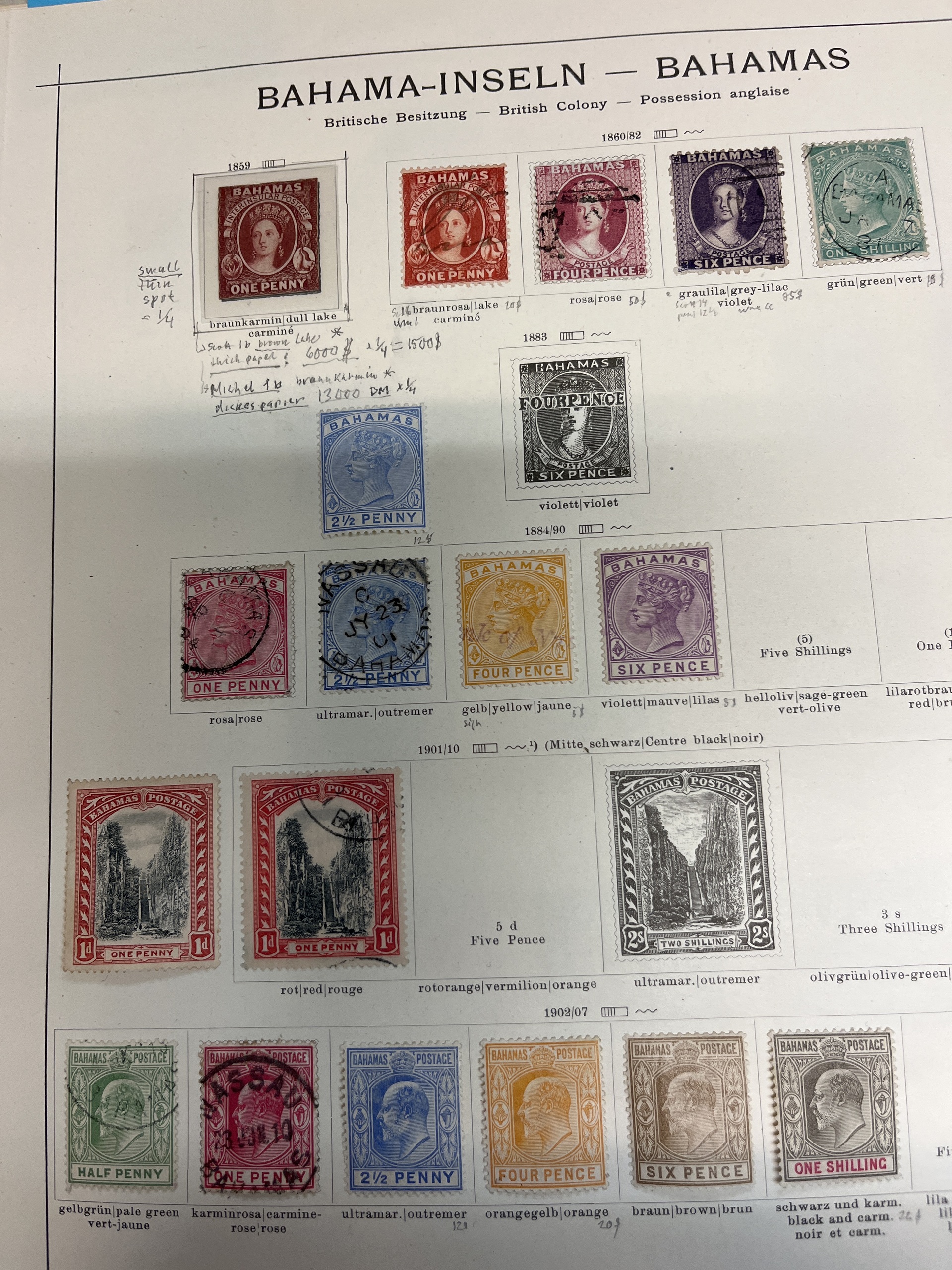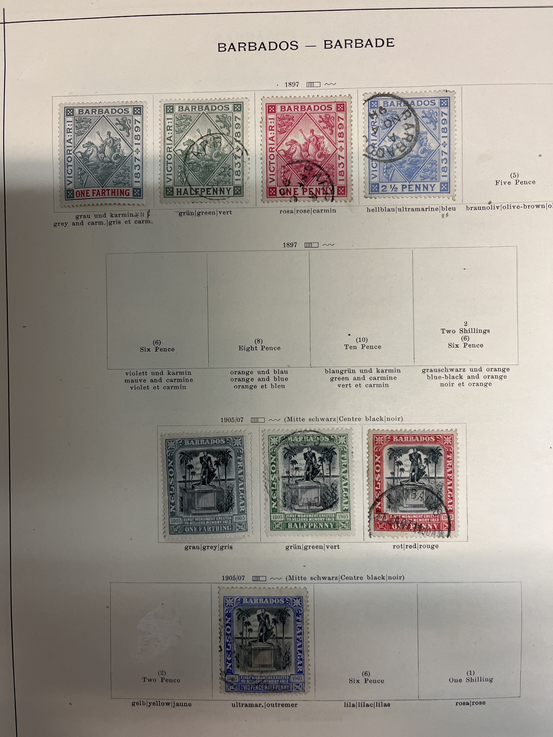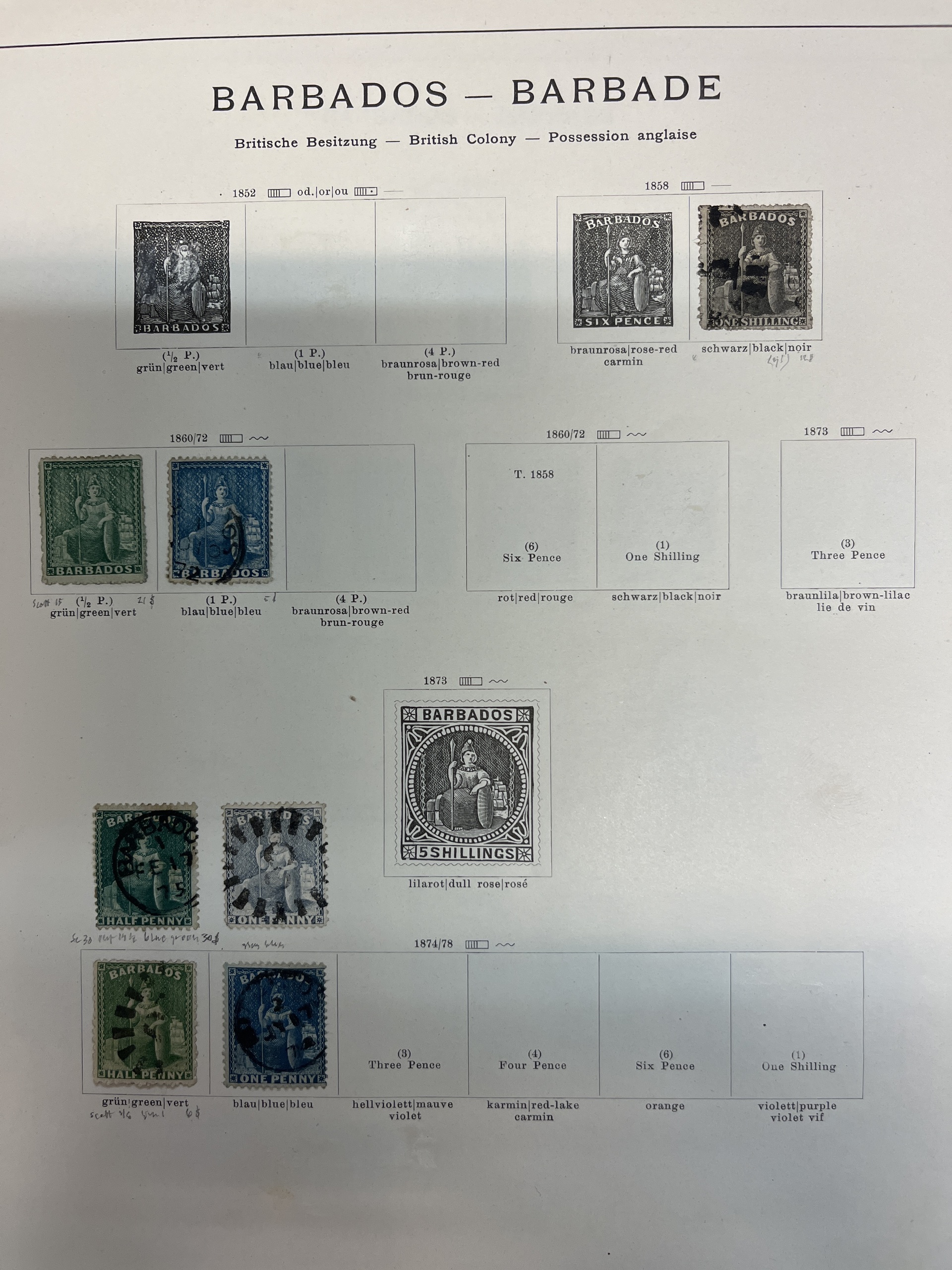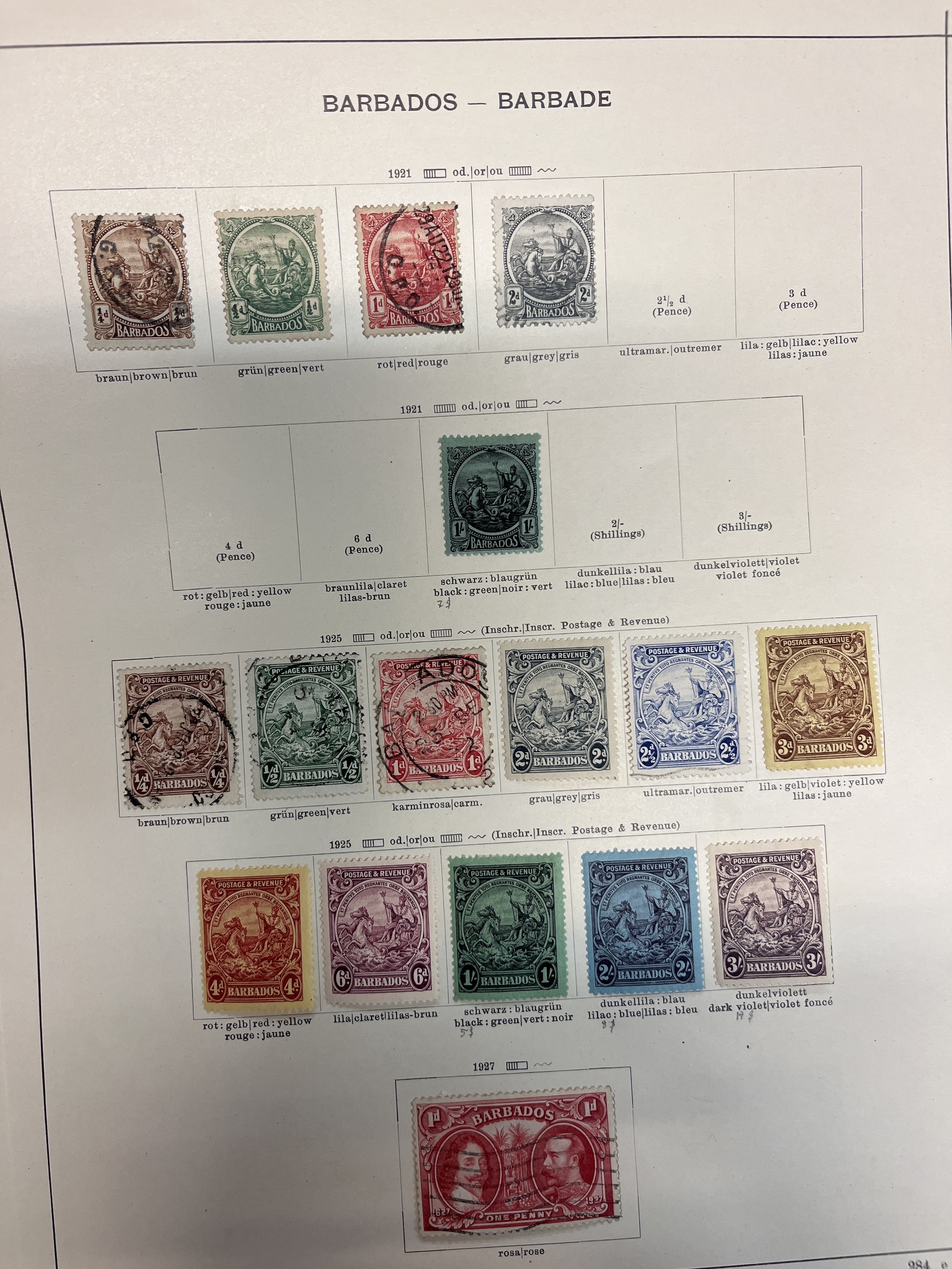 Antigua. Collection ★/⊙ 1858–1937 on leaves. Also Bahamas and Barbados. Several a bit better. Please see a selection of scans at www.philea.se. Mostly fine quality.