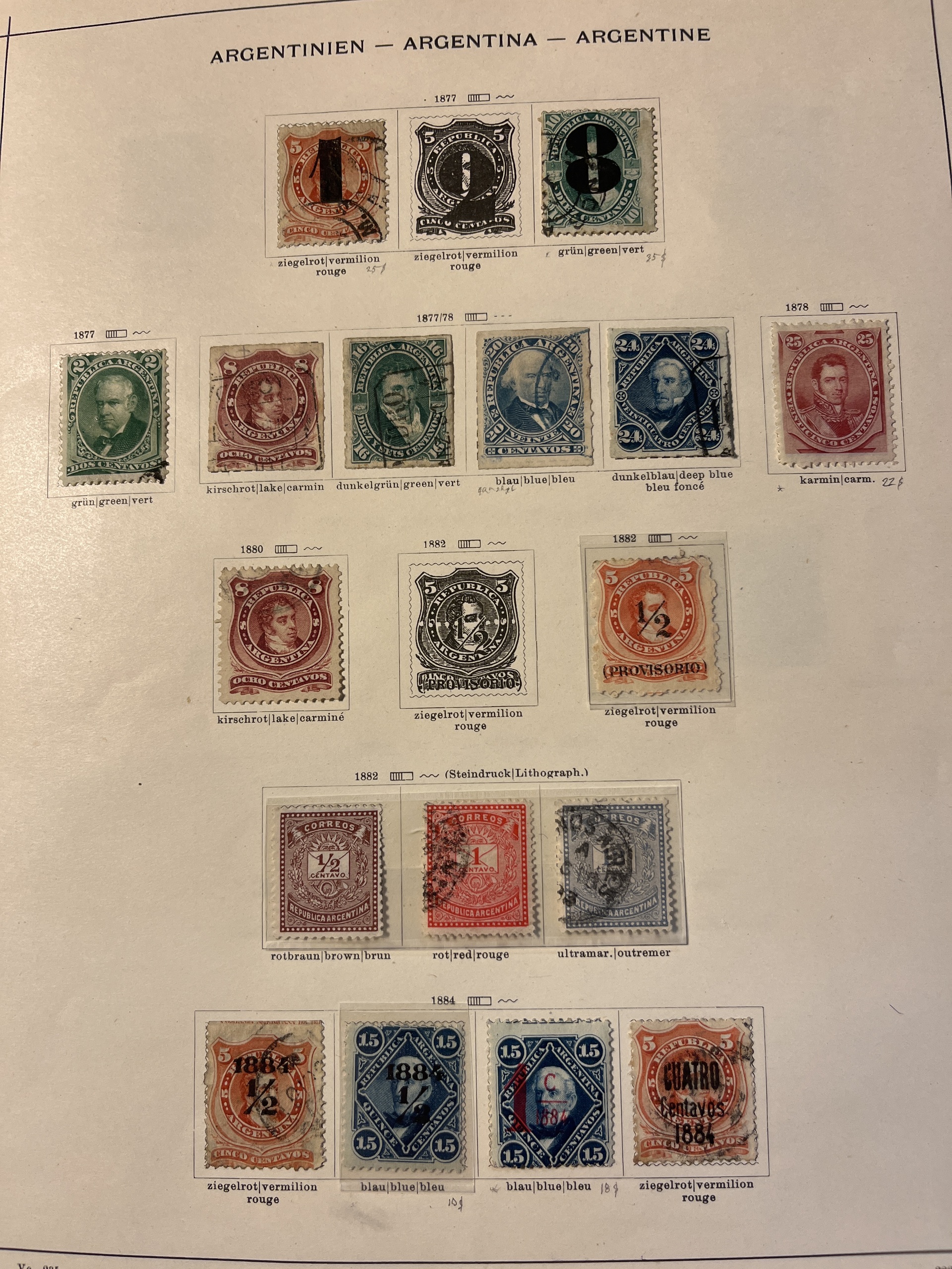 Argentina. Collection ★/⊙ 1858–1935 on leaves. Some better, please see a selection of scans at www.philea.se. Mostly fine quality.