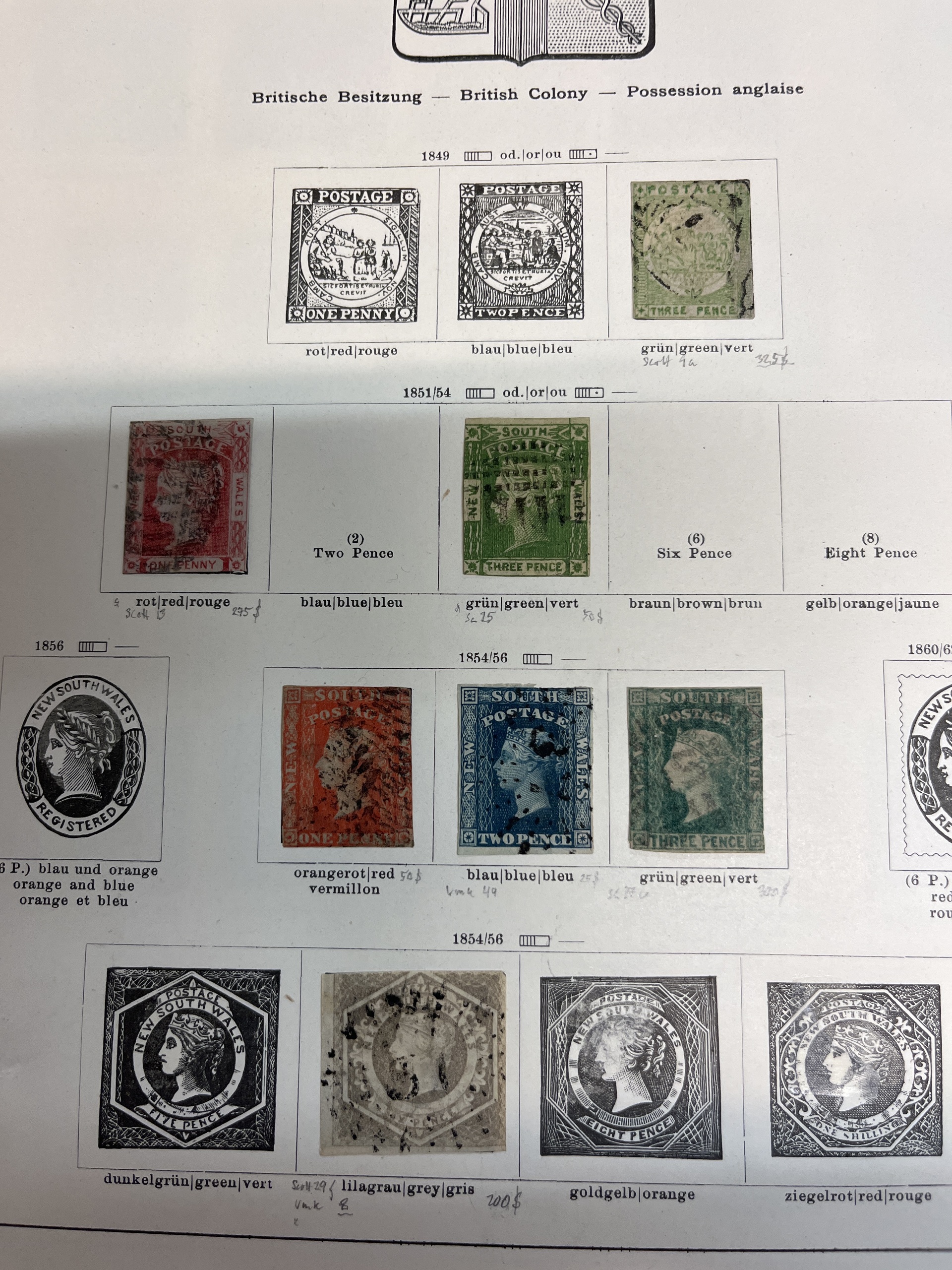 Australia, New South Wales. Collection used 1849–1903 on leaves. Some better, The entire lot is presented at www.philea.se. In the beginning mixed quality, later fine. (53)