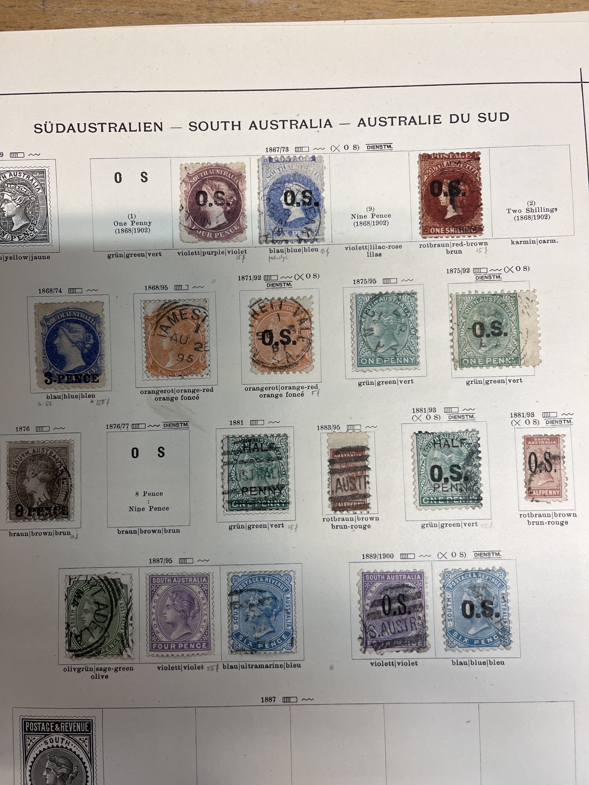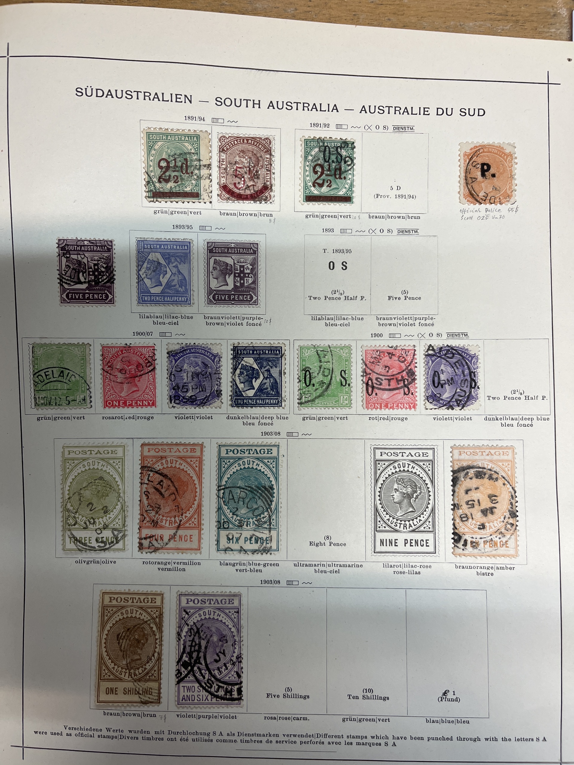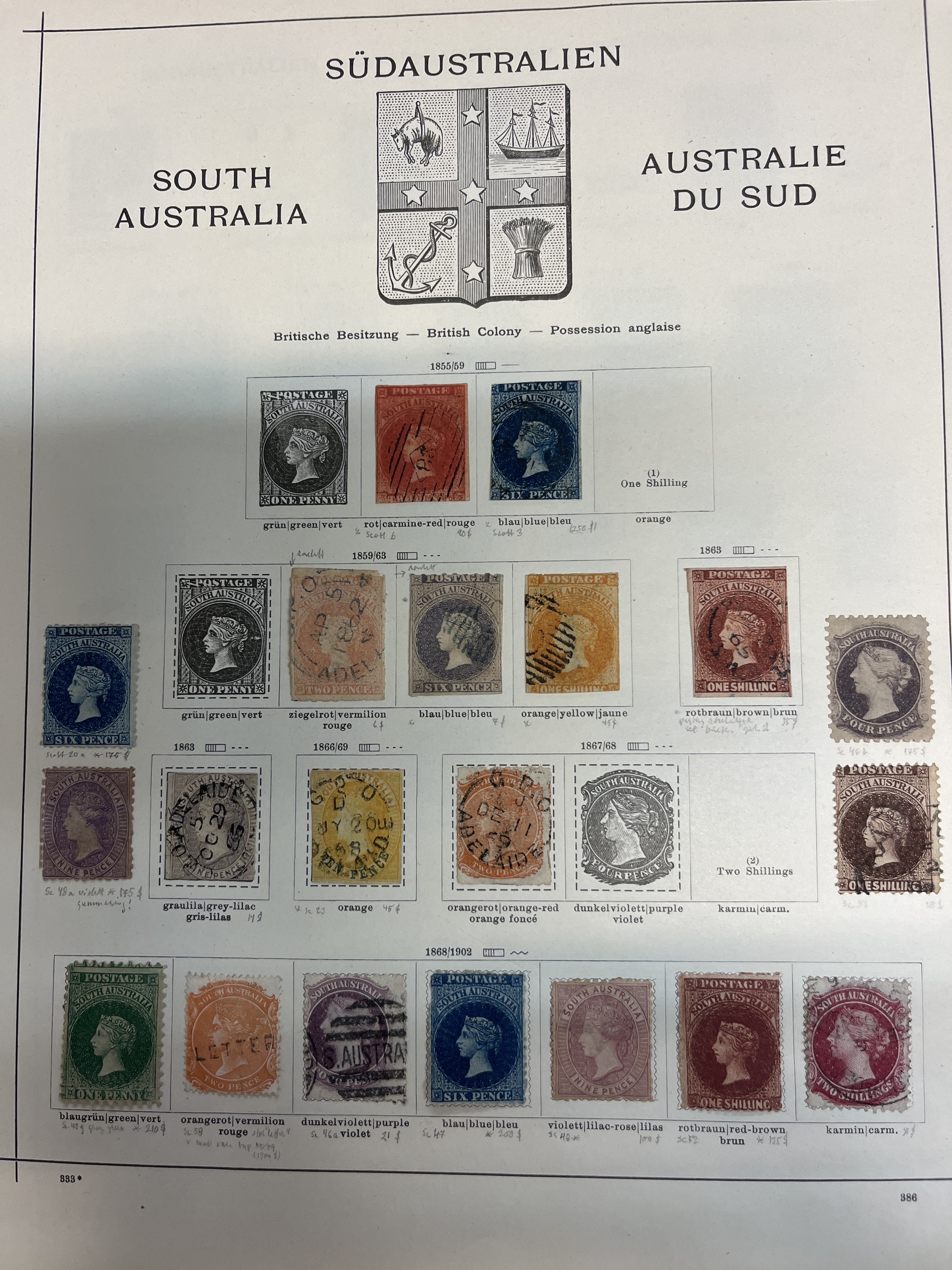 Australia, South Australia. Collection mostly used on leaves. Several better. The entire lot is presented at www.philea.se. Mostly fine quality. (58)