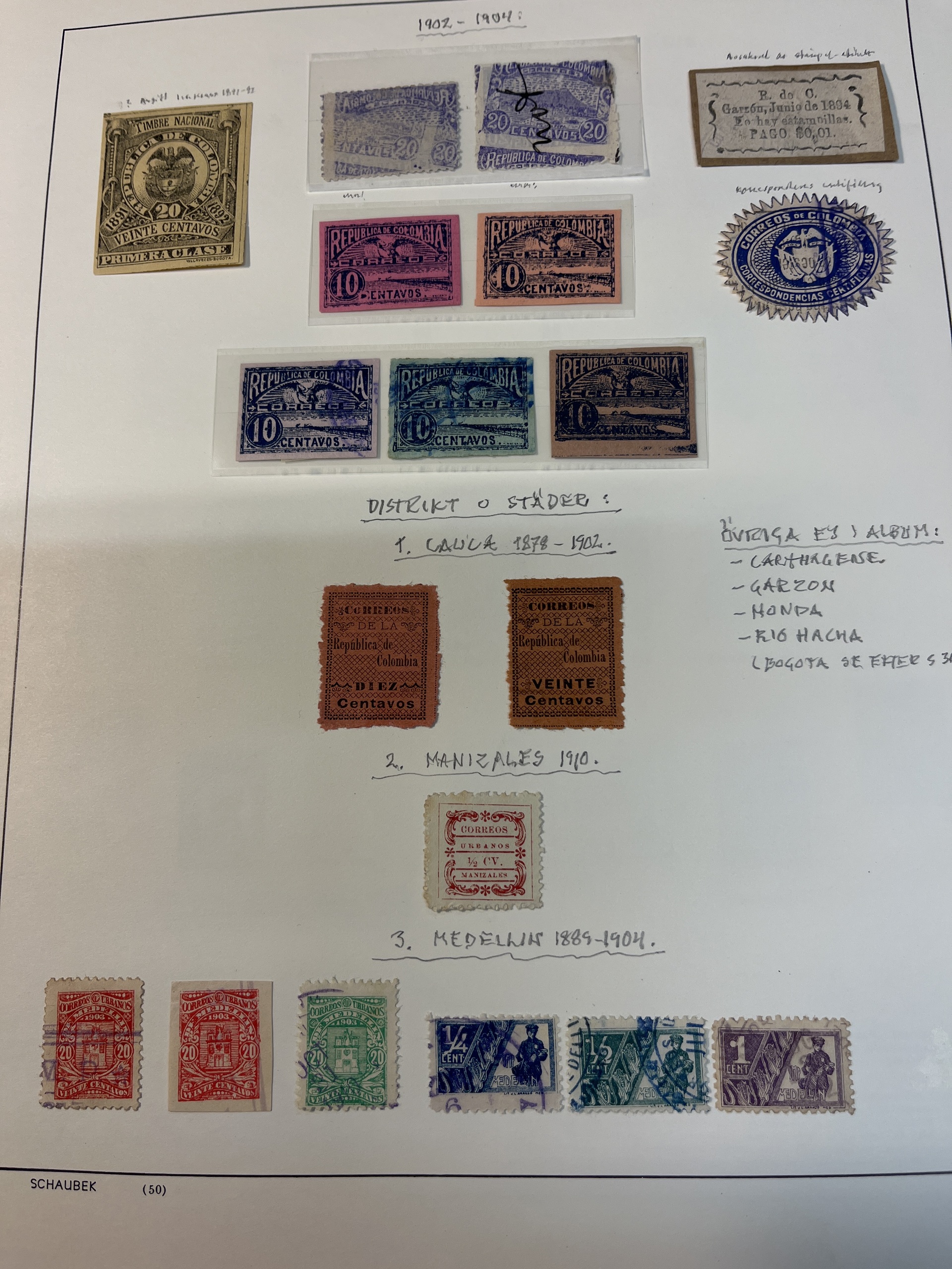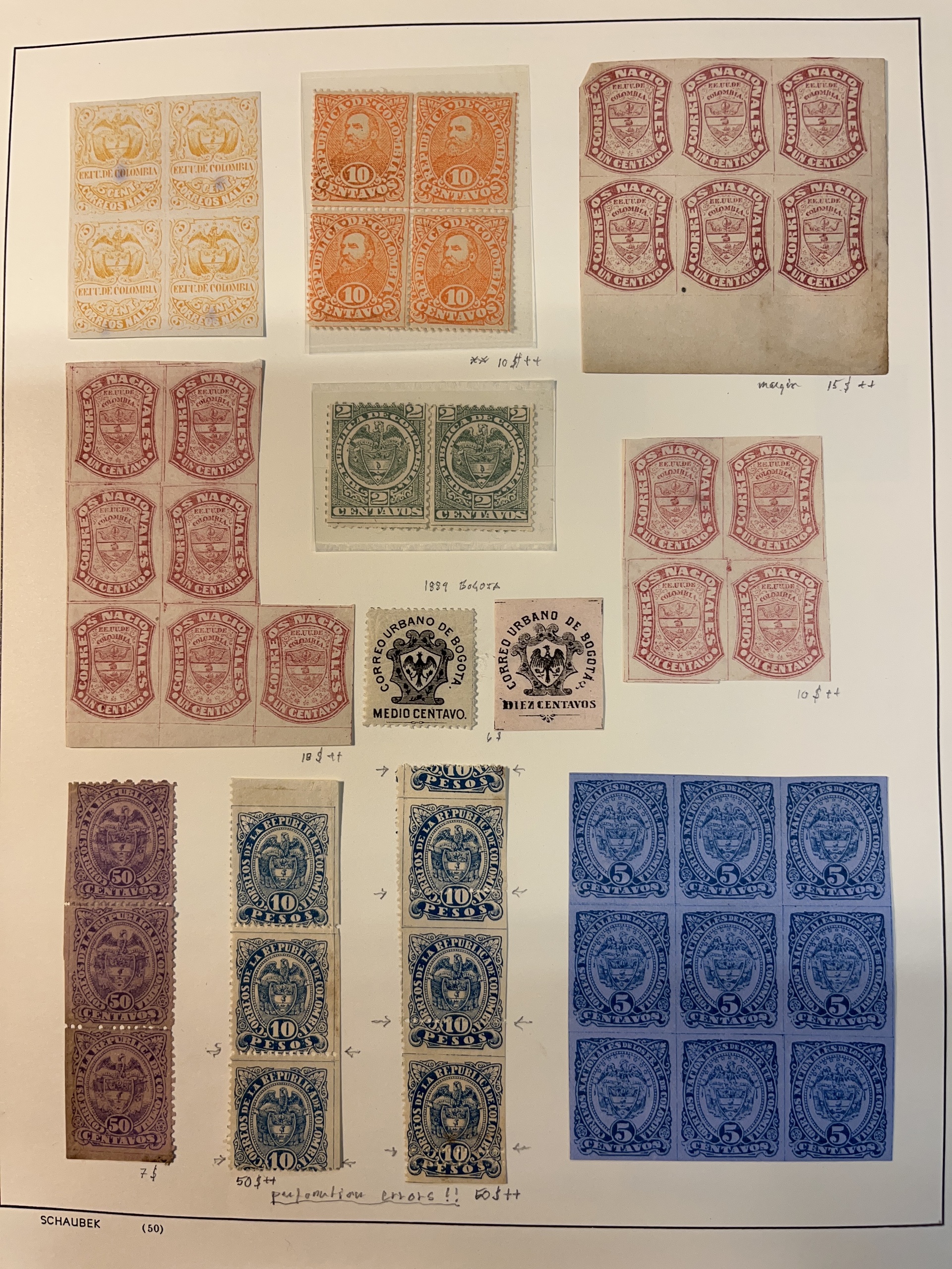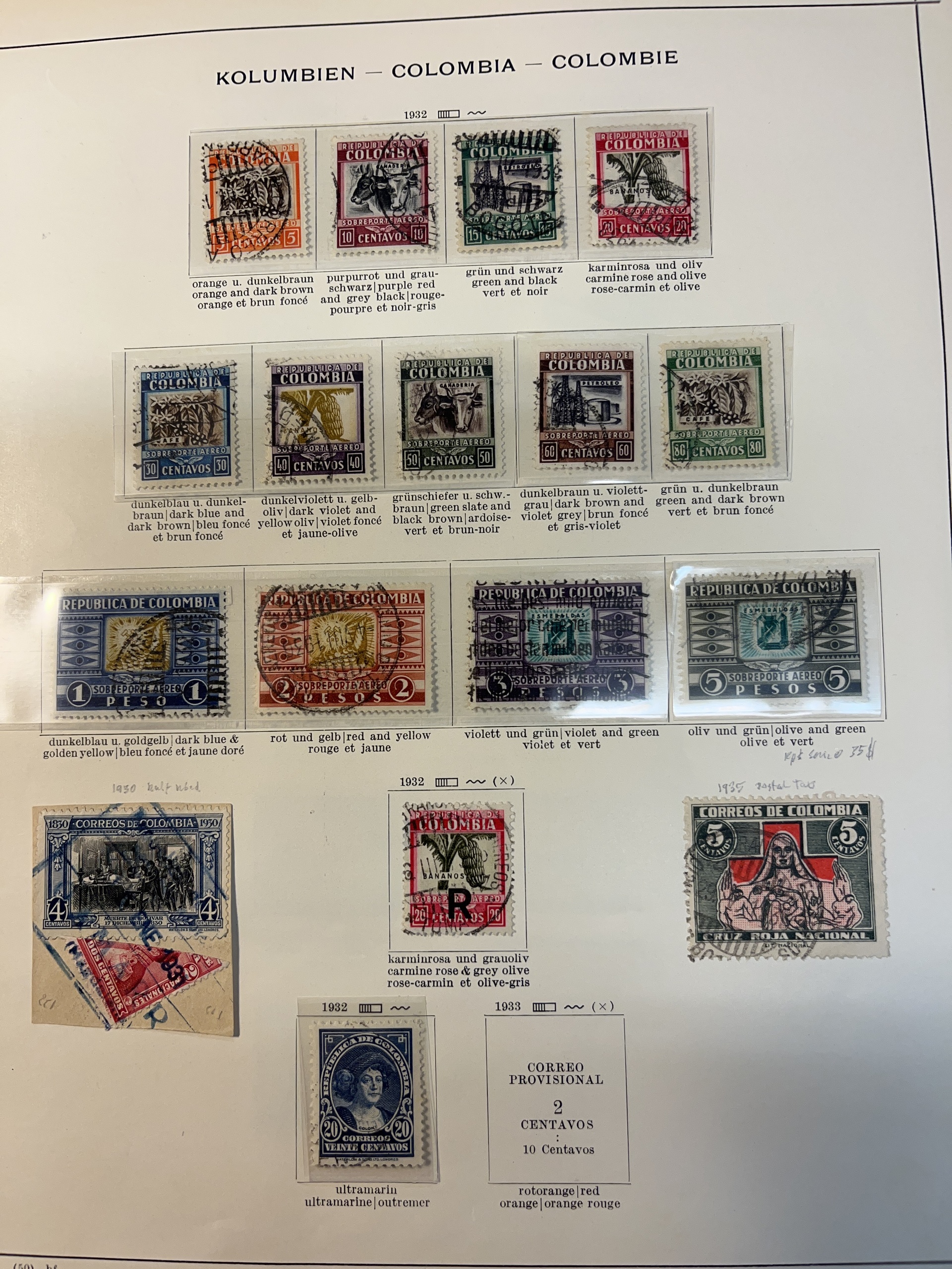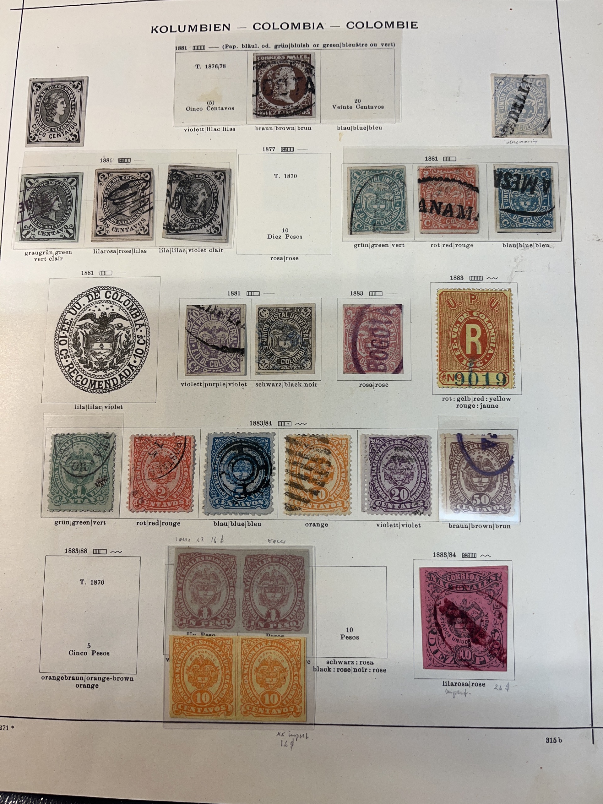 Colombia. Collection ★/⊙ 1859–1935 on leaves. Unusual well collected with many stamps, only the most valuable missing. High catalogue value! Please see a selection of scans at www.philea.se. In the beginning mixed quality, later fine.