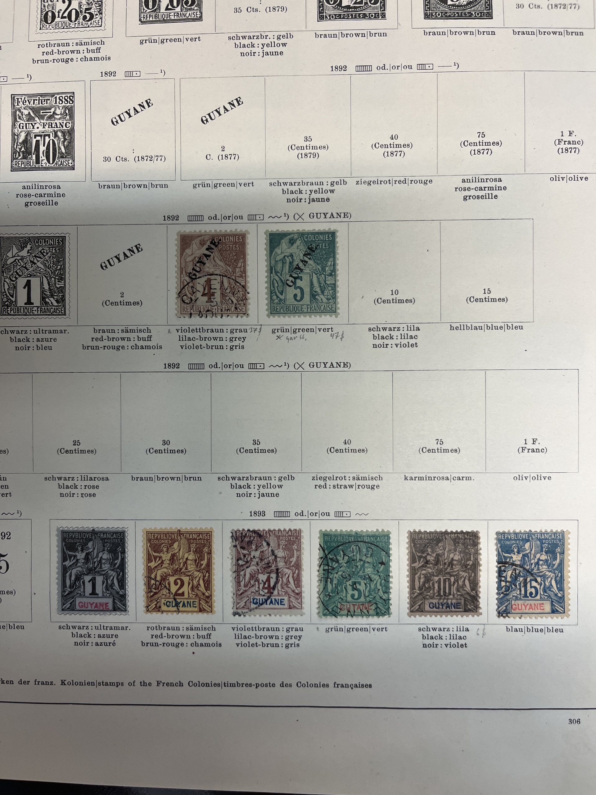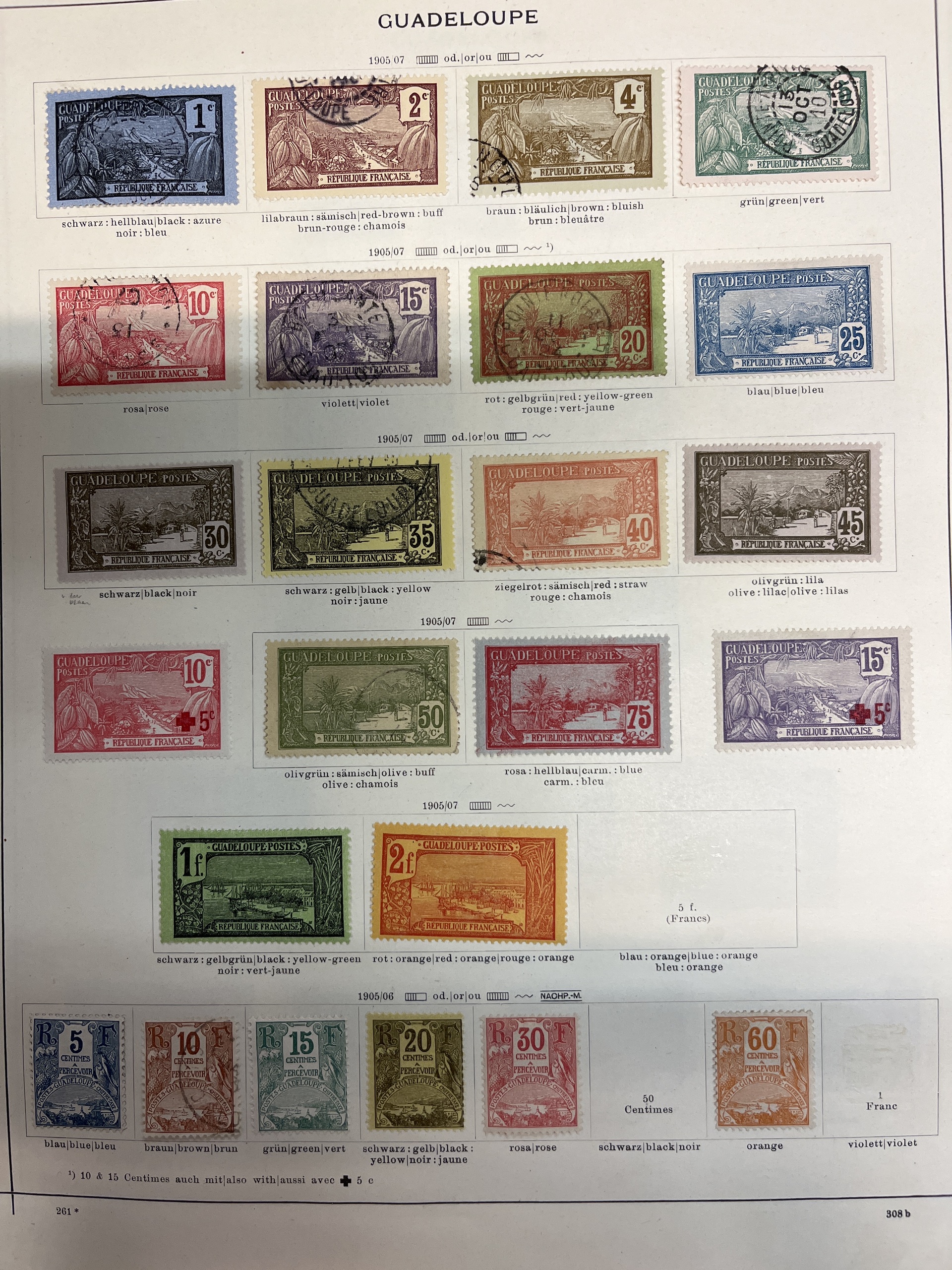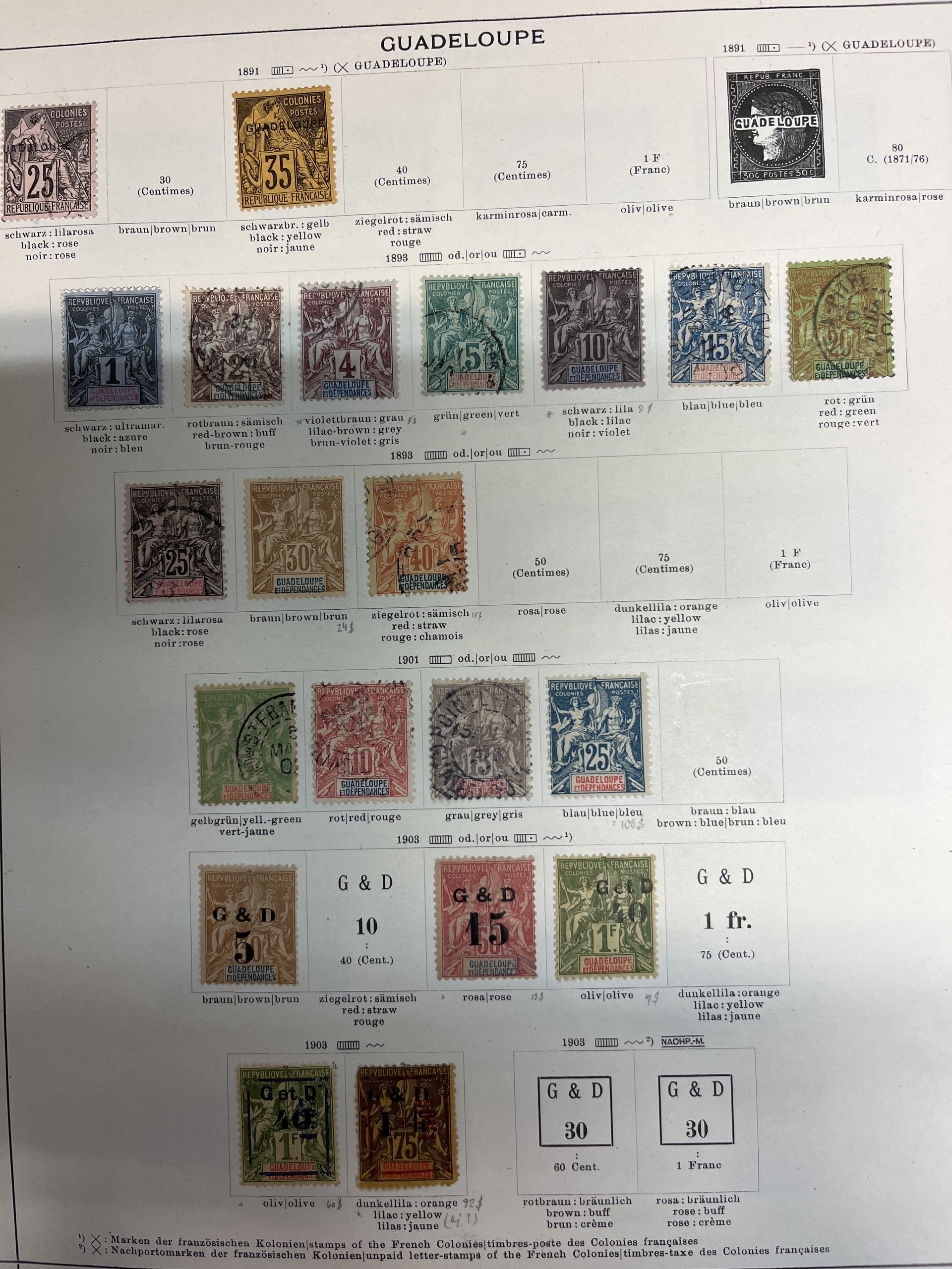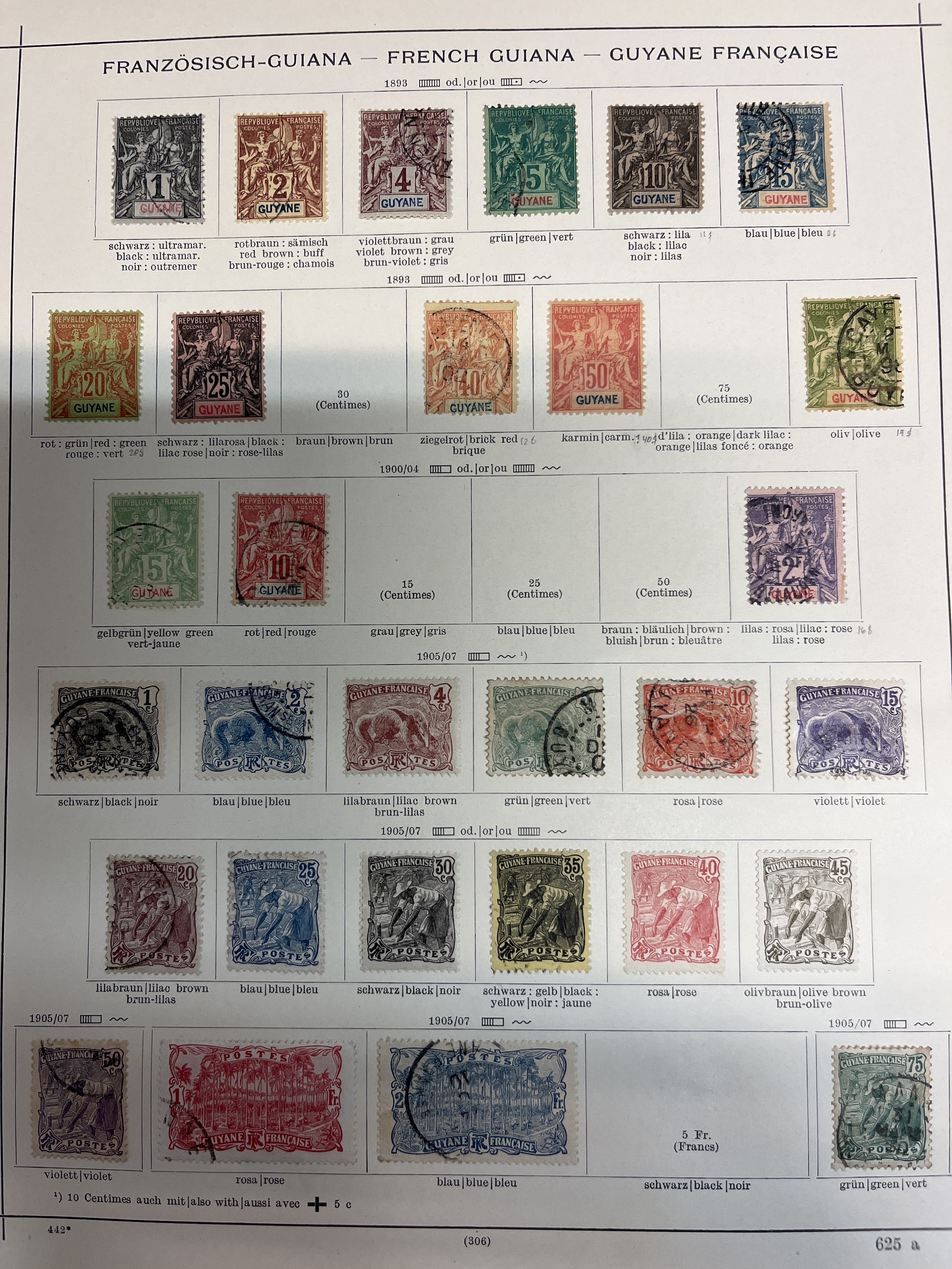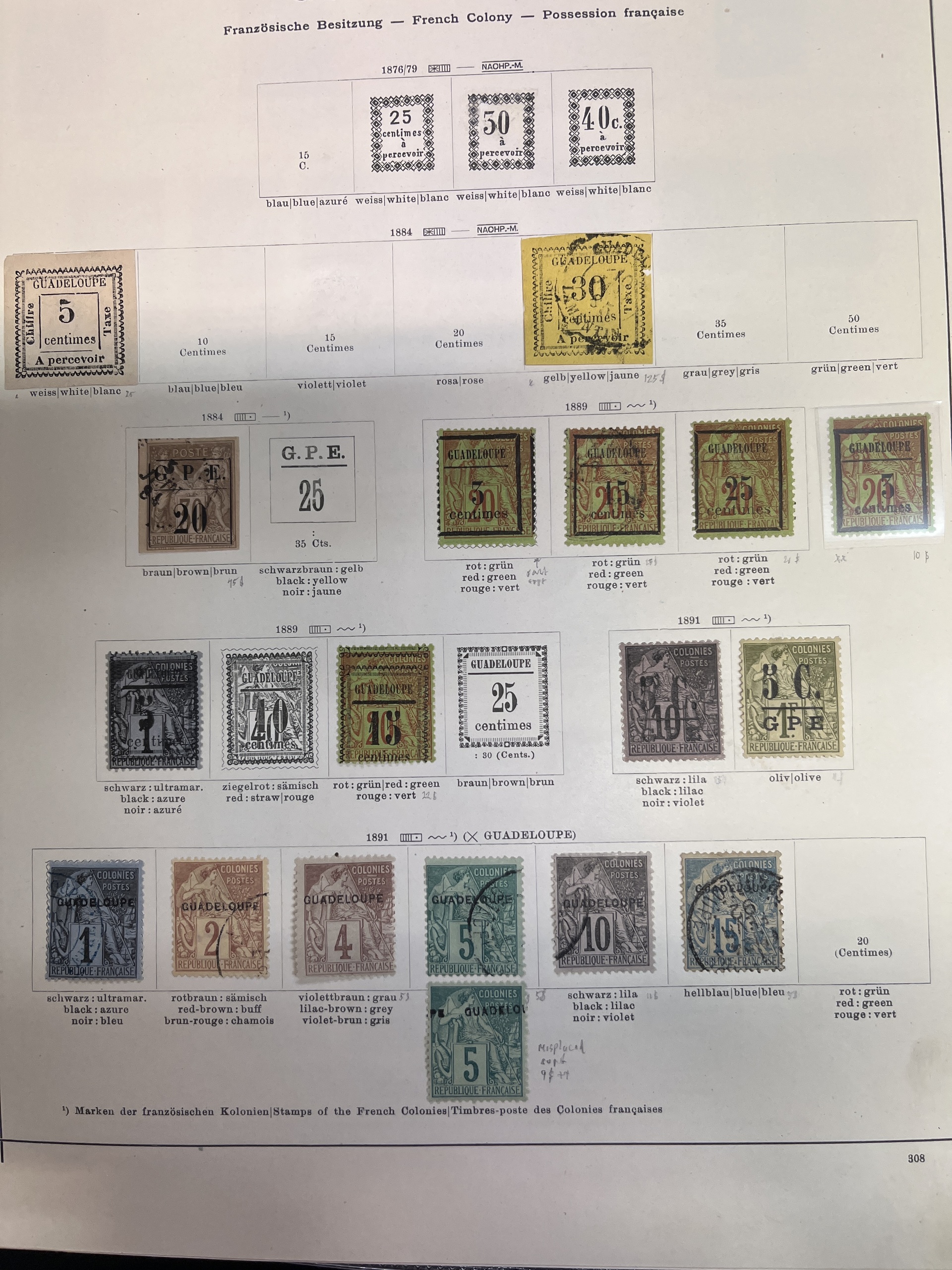 Guadeloupe. Collection ★/⊙ 1884–1935 on leaves. Also French Guiana. Several better. Please see a selection of scans at www.philea.se. Mostly fine quality.