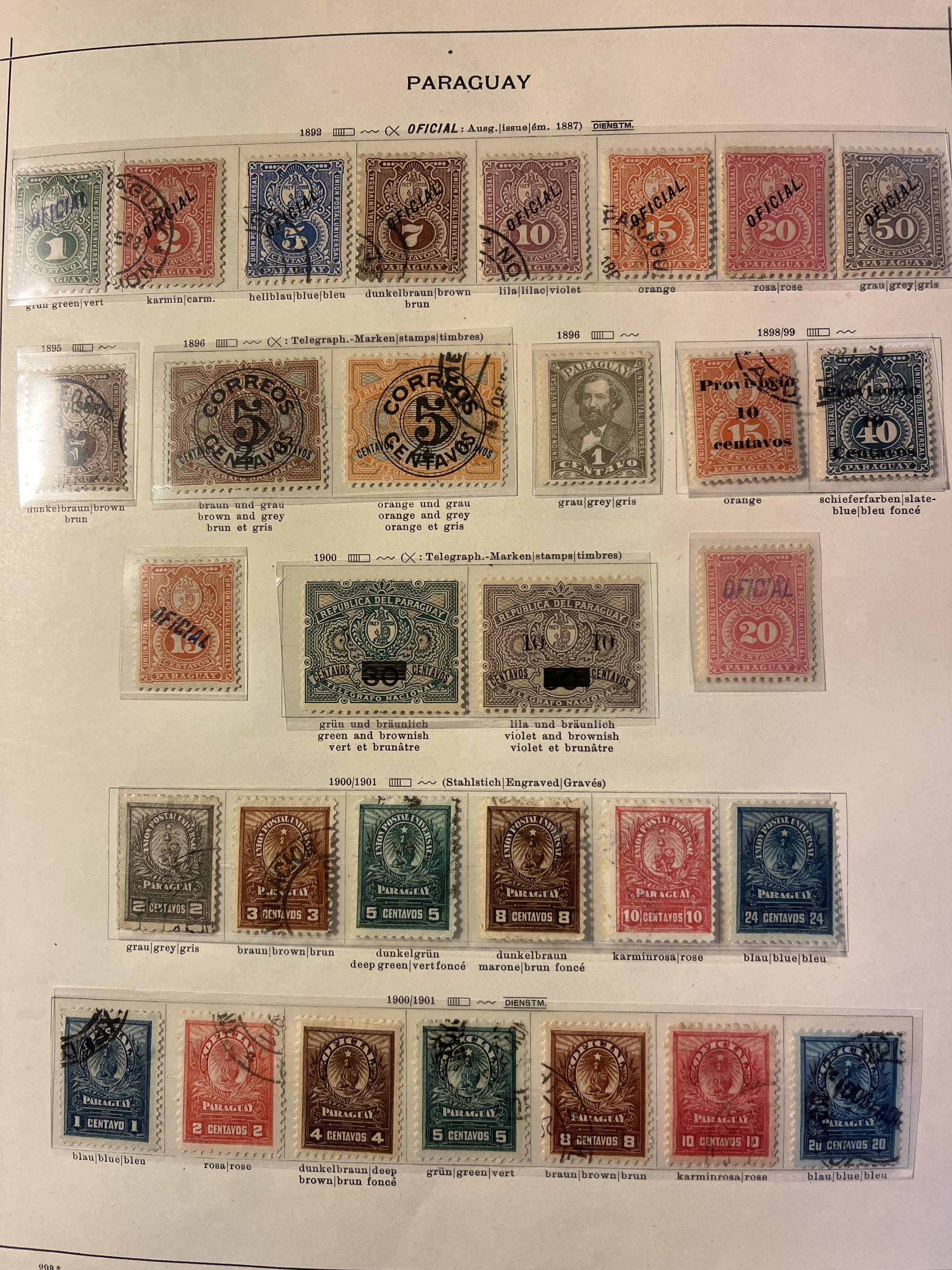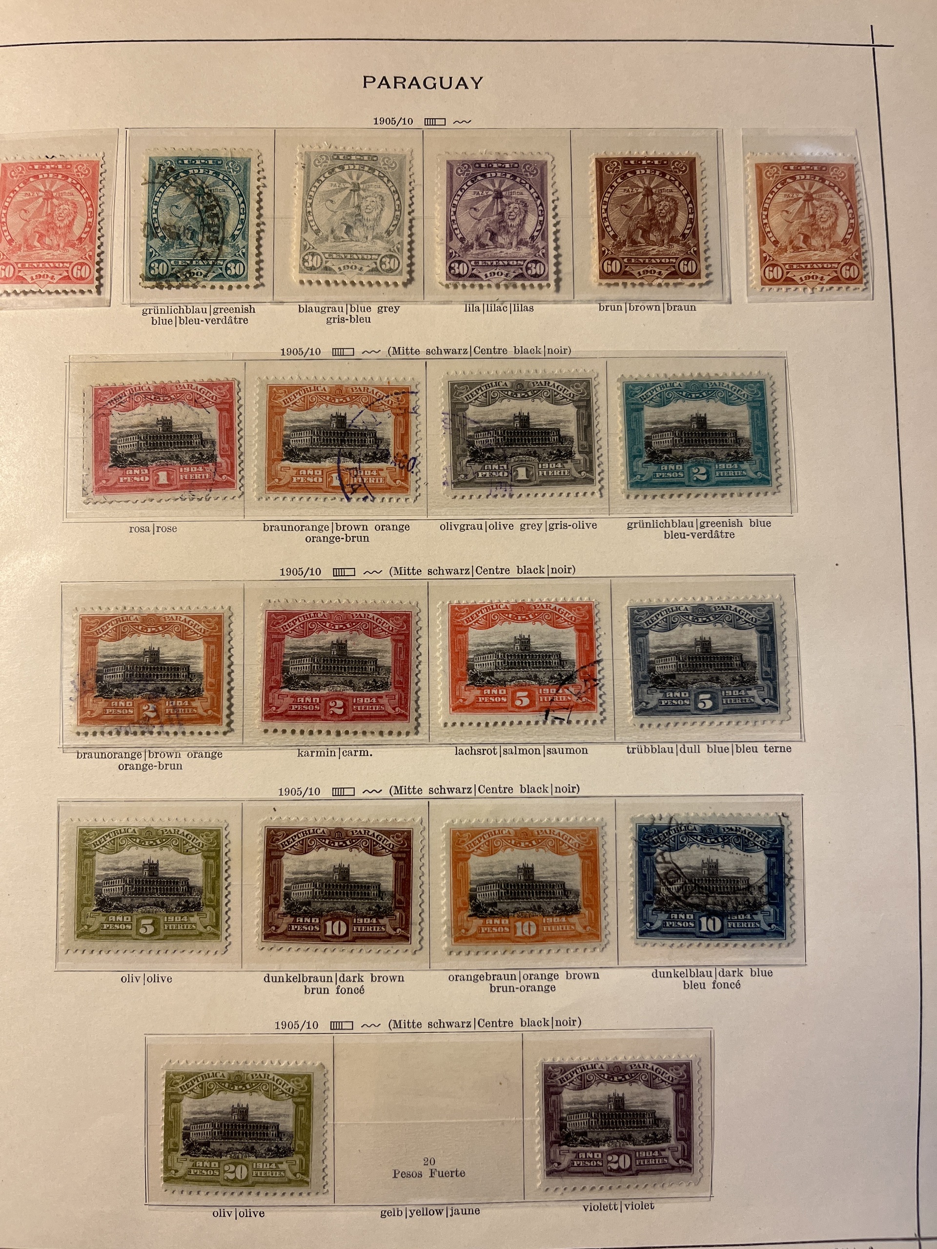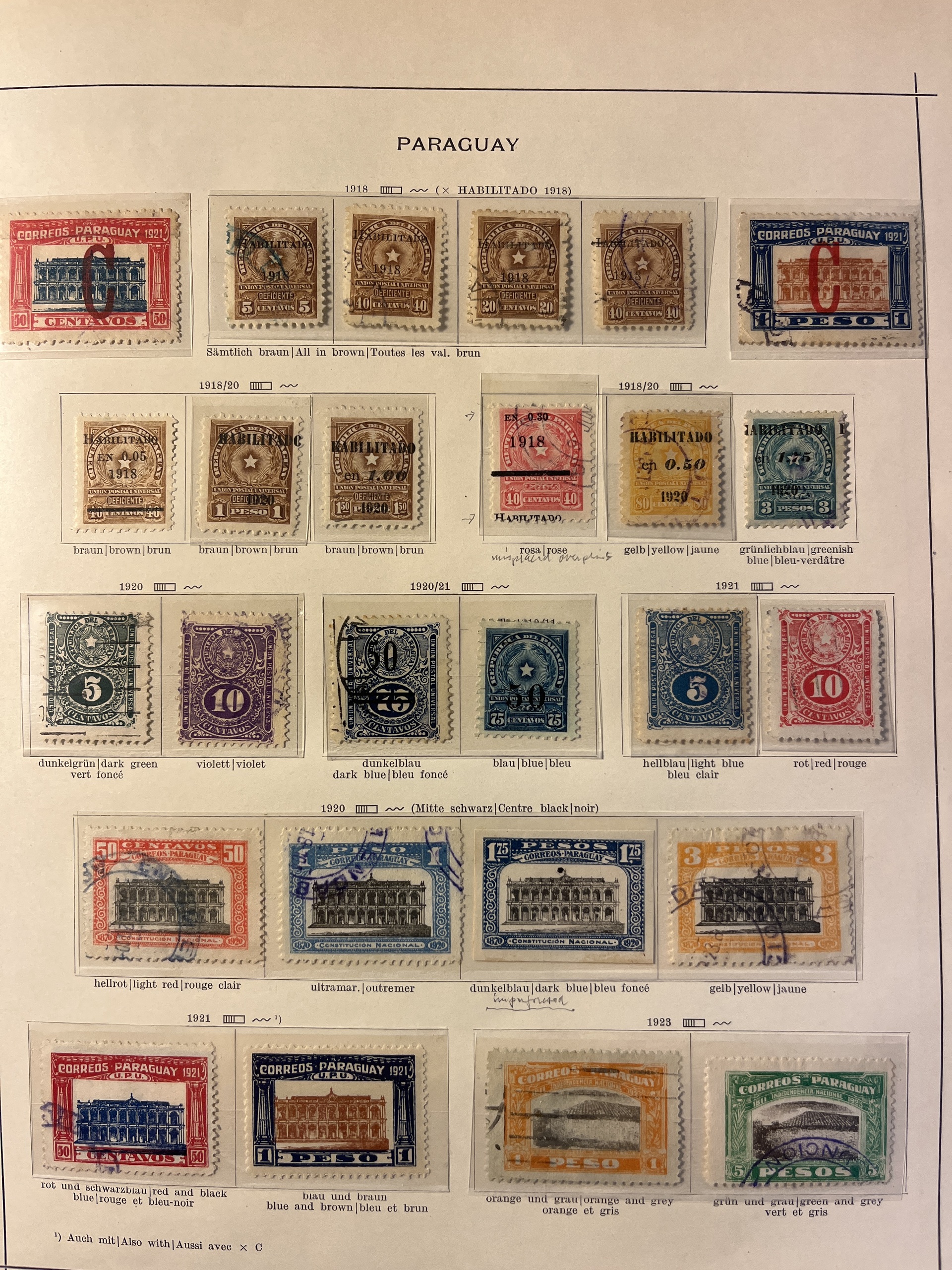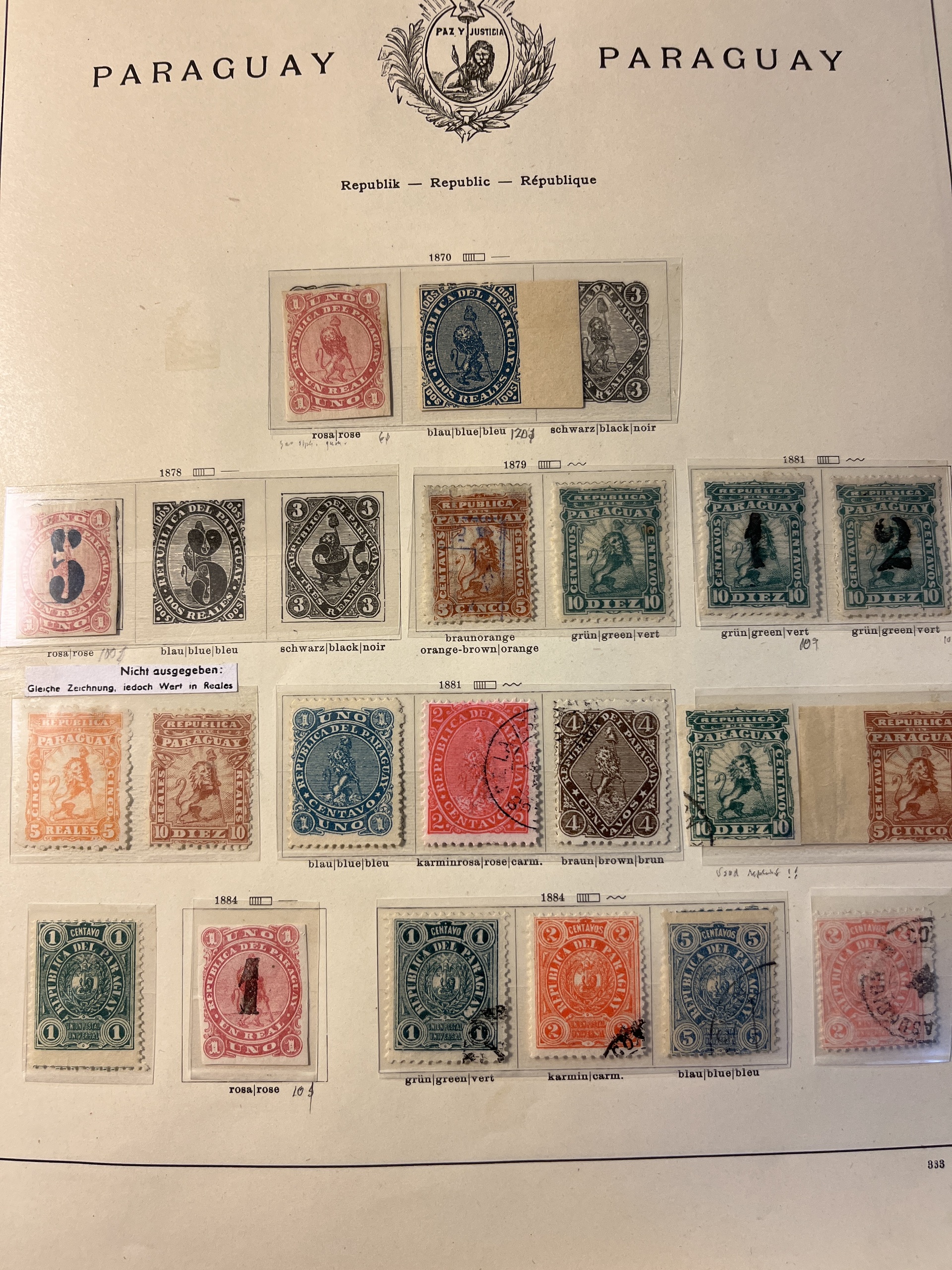 Paraguay. Collection ★/⊙ 1862–1935 on leaves. Also Nicaragua and Panama. Interesting with some a bit better and many varieties, Please see a selection of scans at www.philea.se. Mostly fine quality.