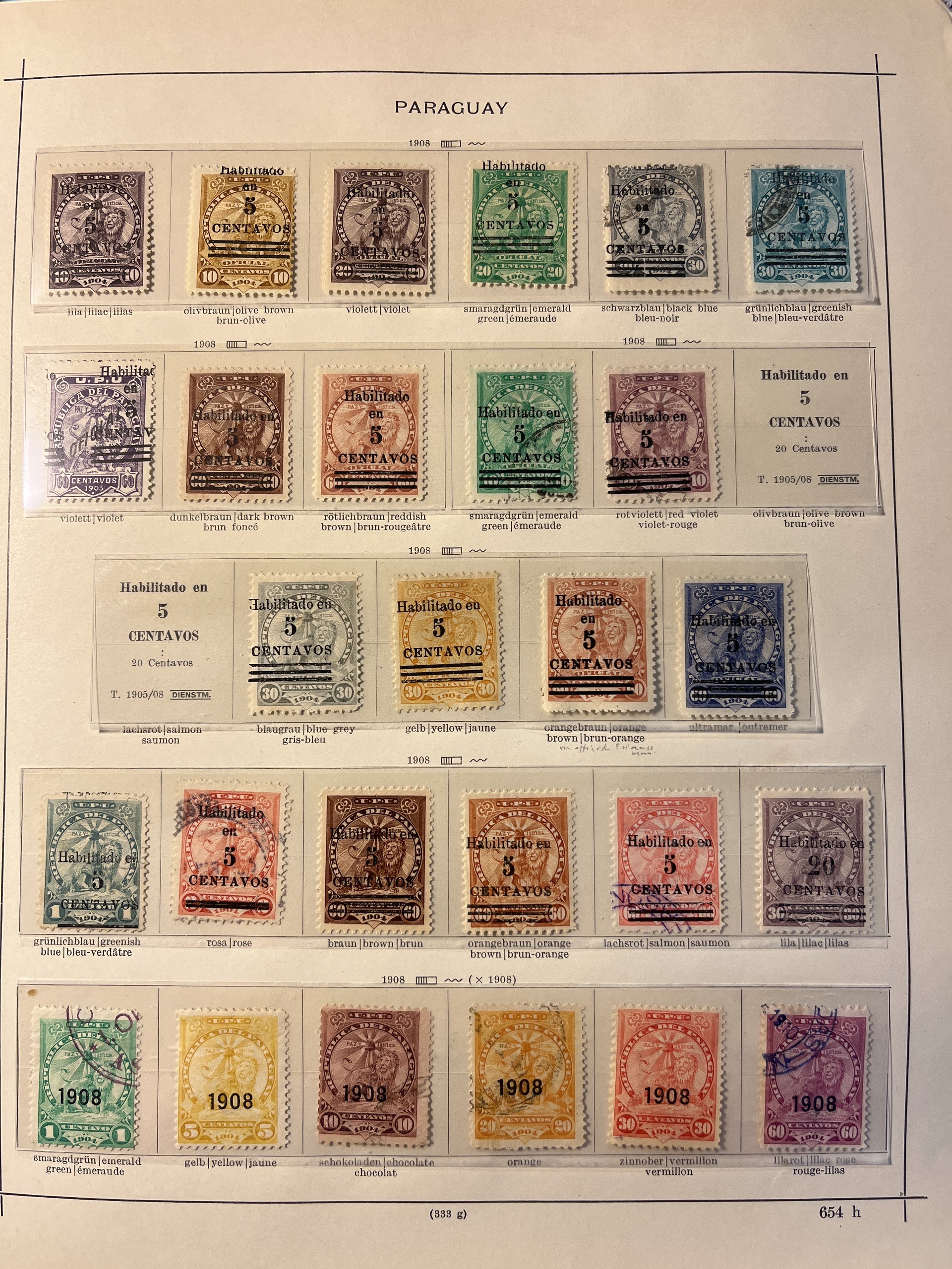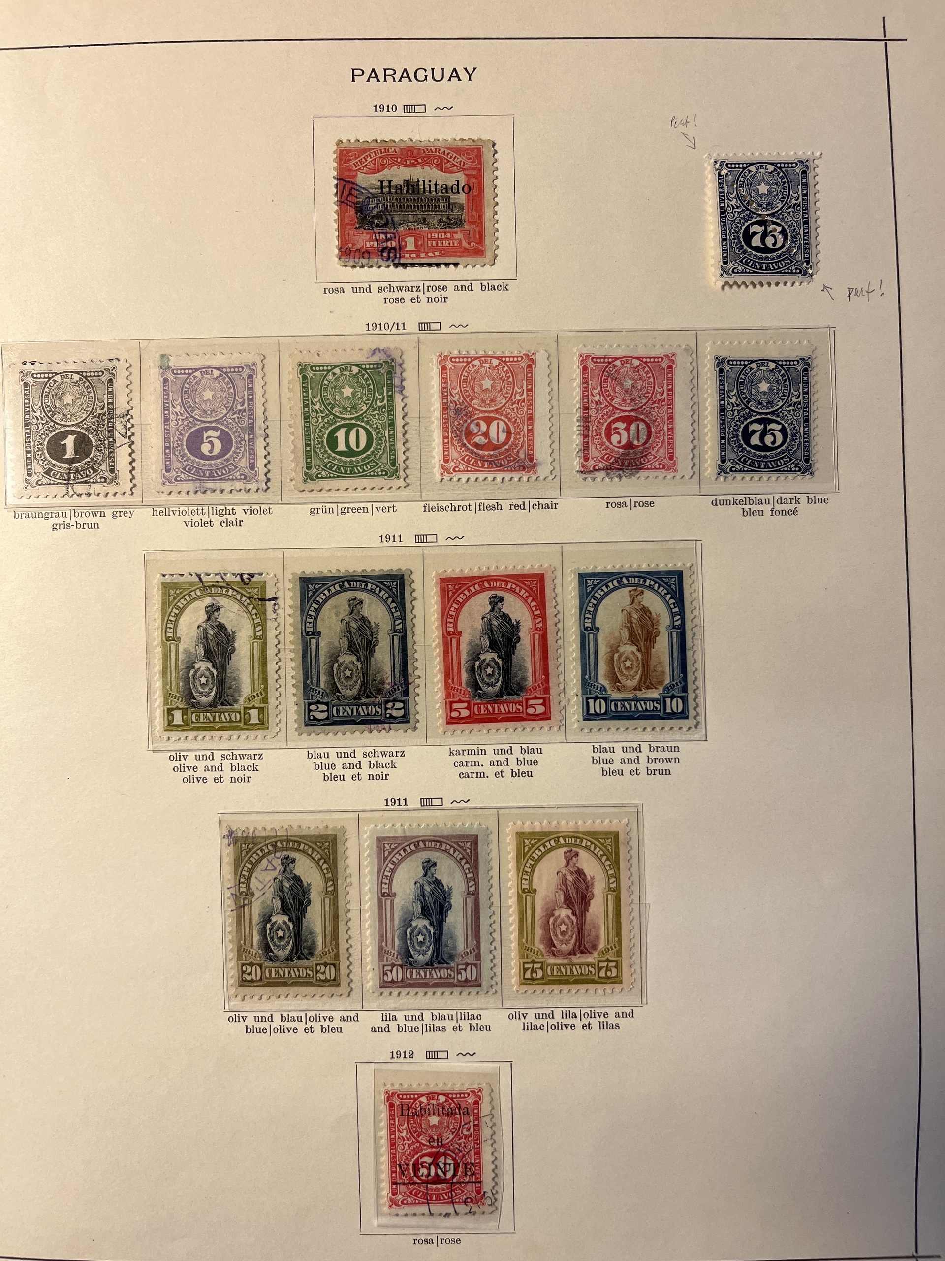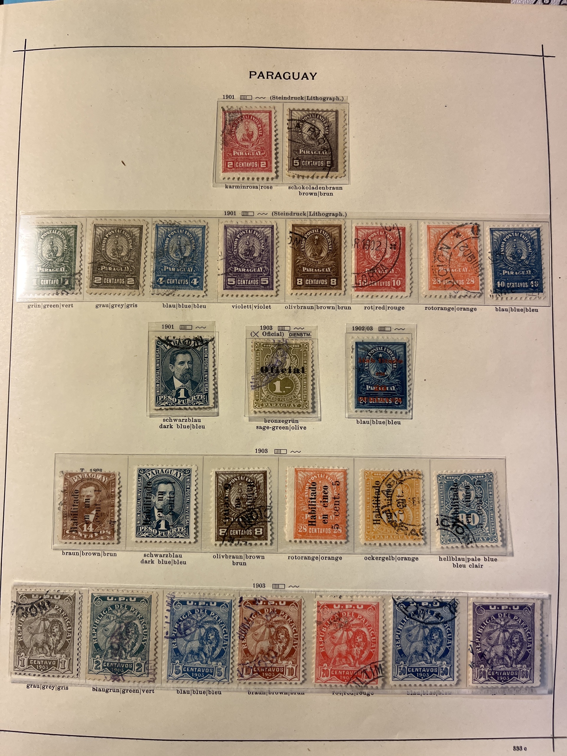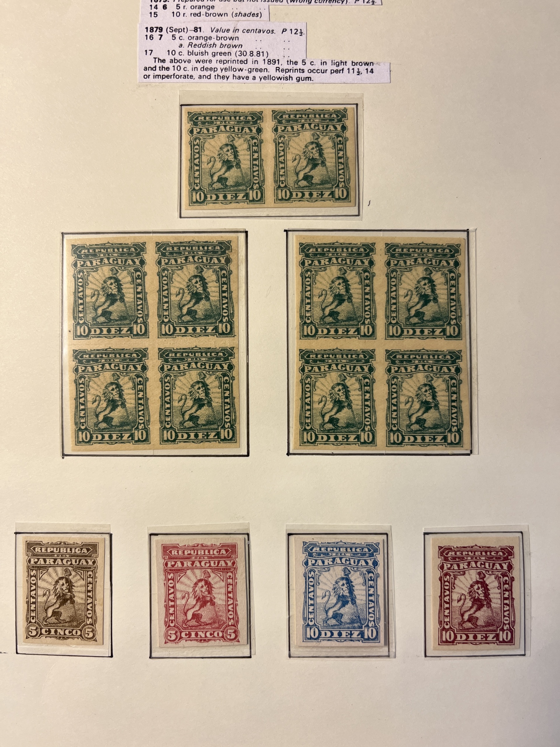 Paraguay. Collection ★/⊙ 1862–1935 on leaves. Also Nicaragua and Panama. Interesting with some a bit better and many varieties, Please see a selection of scans at www.philea.se. Mostly fine quality.