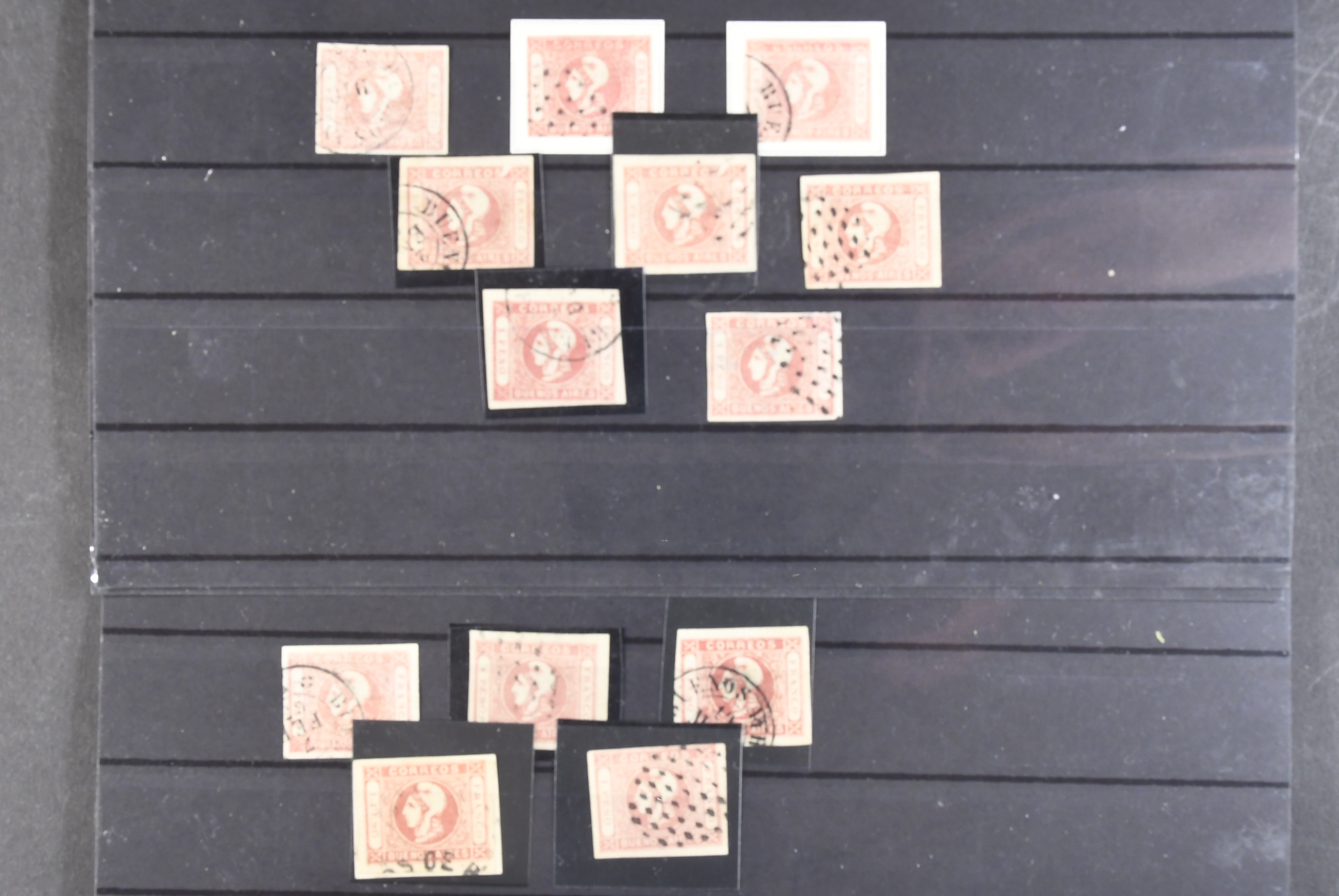 Argentina, Buenos Aires. Mostly used. A Study of the Liberty Head issues incl. superb 1 peso blue on cover and the superb different types 1 peso bluex15, 1 peso rosex12 and also the 4 reales greenx4 + block of four black proof and axtraordinary 4 reales wing marginal in blue. Tip-top quality!