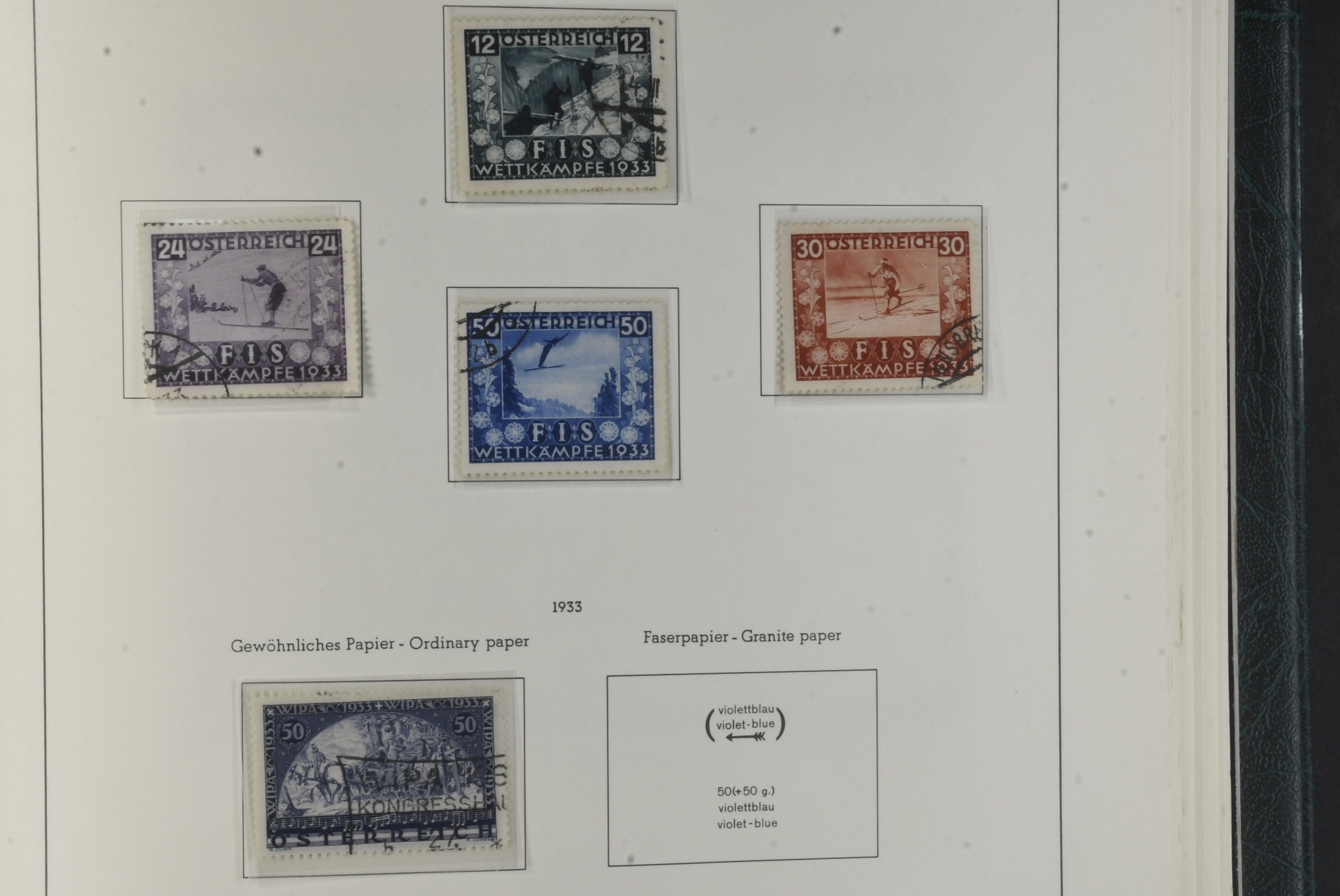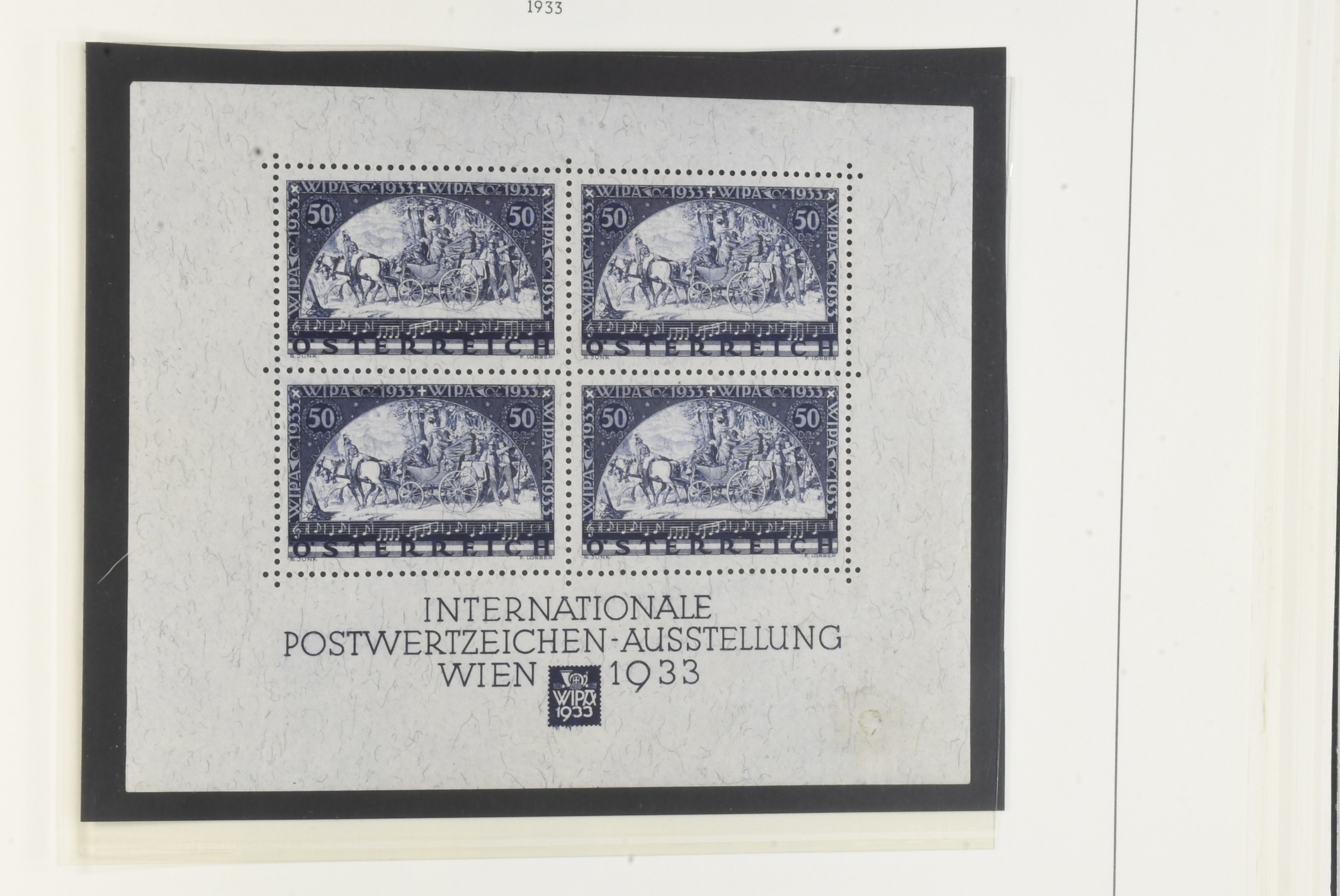 Austria. Collection ★★/★/⊙ 1850–1937 in Leuchtturm album. Strong collection with a lot of better stamps. The classic part include some different perforations and cancels. 1908 used set and 1910 mint set. The 1930s almost complete incl. Dolfuss used on piece and Wipa M/S mh. Some mint stamps from the period are NH and some are no gum. Back of the book incl. Bosnia & Herzegovina and other areas. Please see a selection of scans at www.philea.se. Somewhat mixed quality. (800–900)