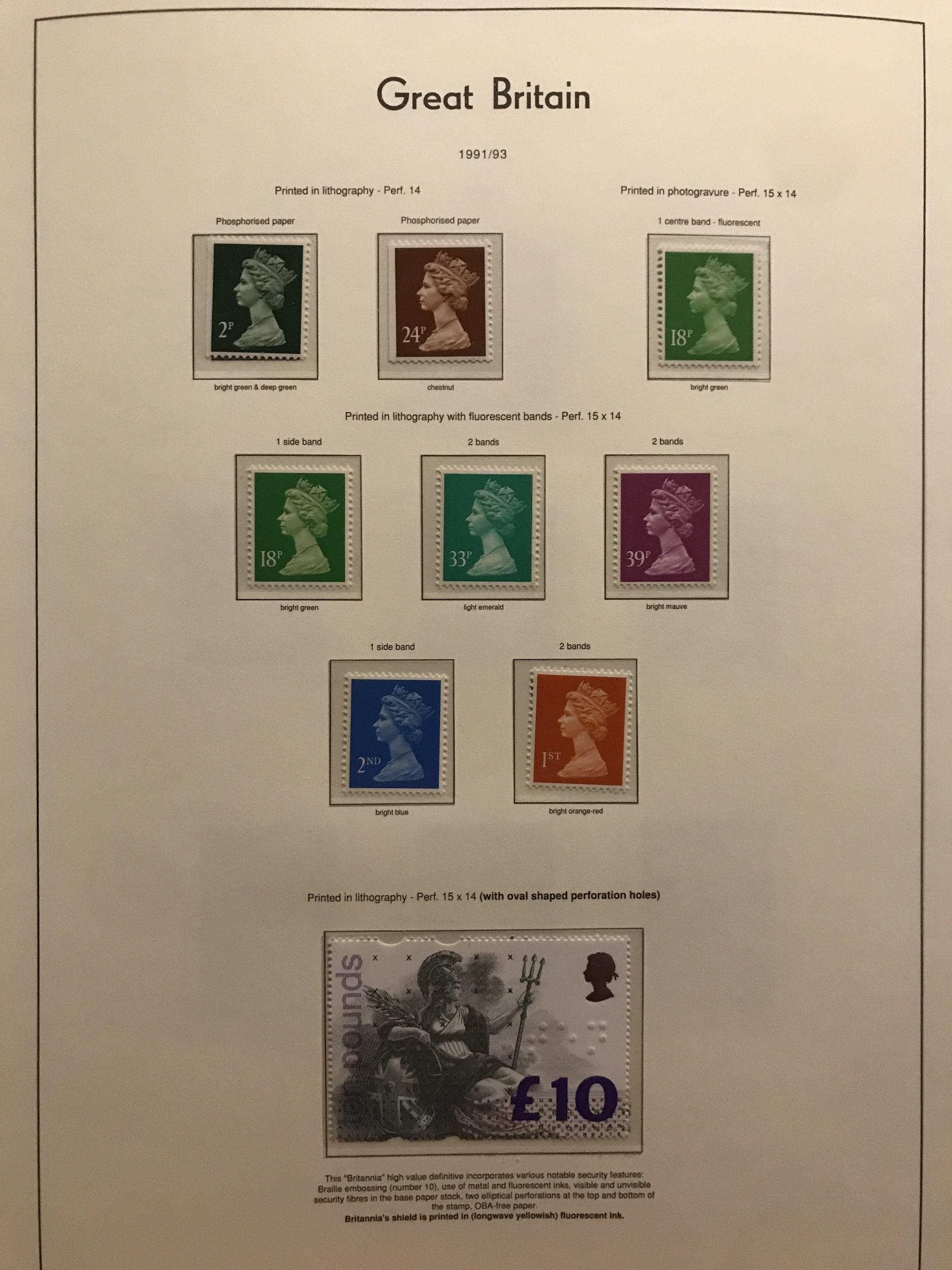 Britain. ★★. Collection 1971–2011 in four Leuchtturm albums with slip cases. Face value approx. £640.- + 688 'First Class' + 79 '2nd Class' and 30 'E'. Also many regional issues and postage due stamps. Please see a selection of scans at www.philea.se. Approx. 12 kg.