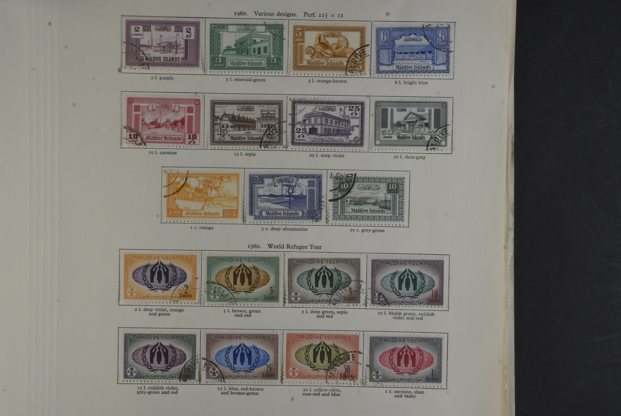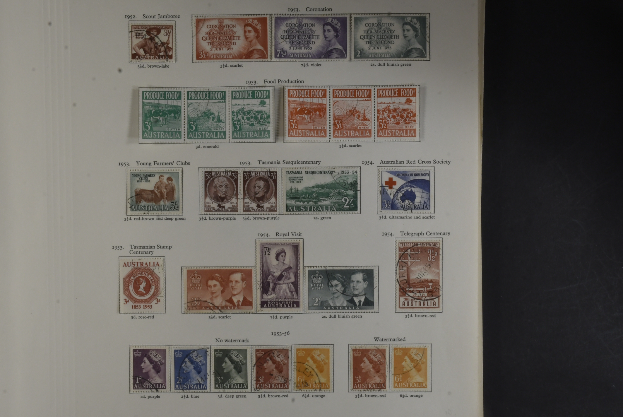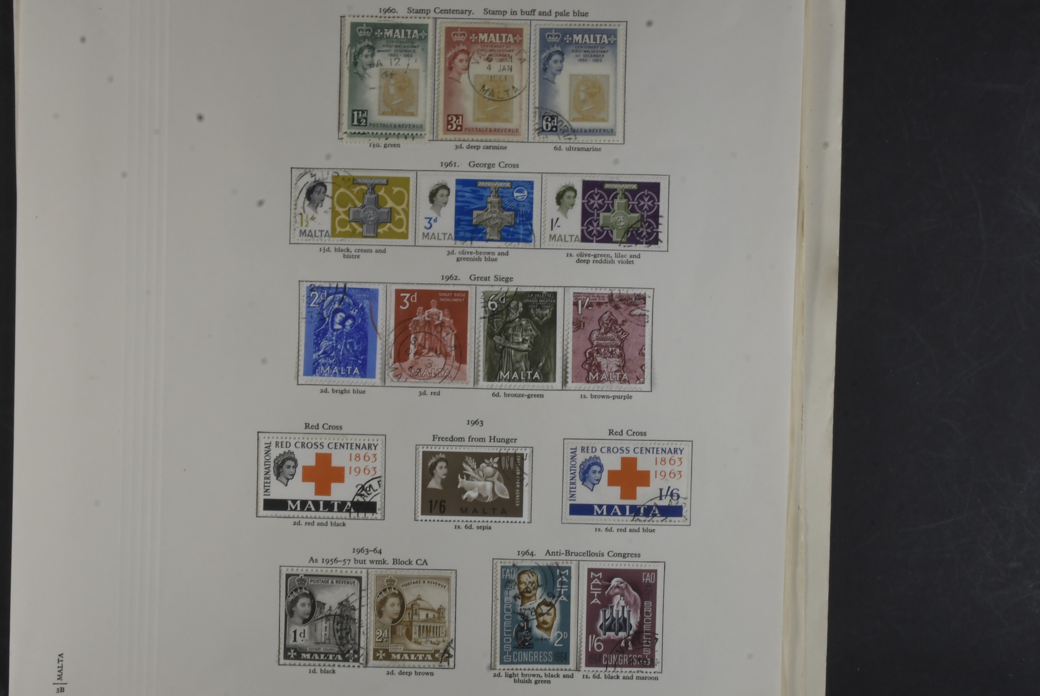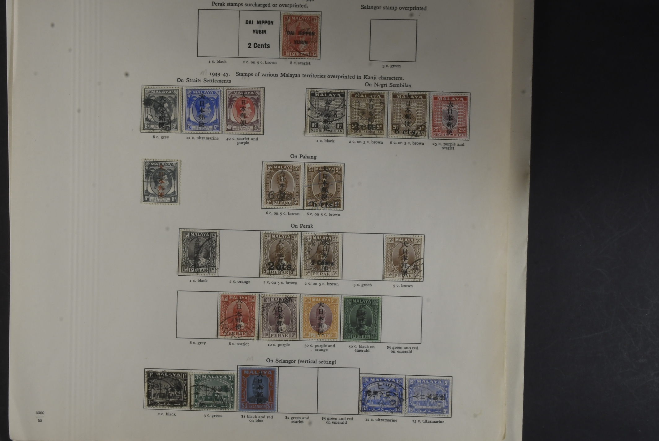 British commonwealth. Used 1940s–1970s on leaves. Outstanding used QEII collection in tip-top quality from Aden all the way through to Zambia, virtually every page well filled. Completely uncatalogued including many better countries including a useful range of Japanese occupation of Malaya, KGVI. 3.8 kg. Spend some time on this one.