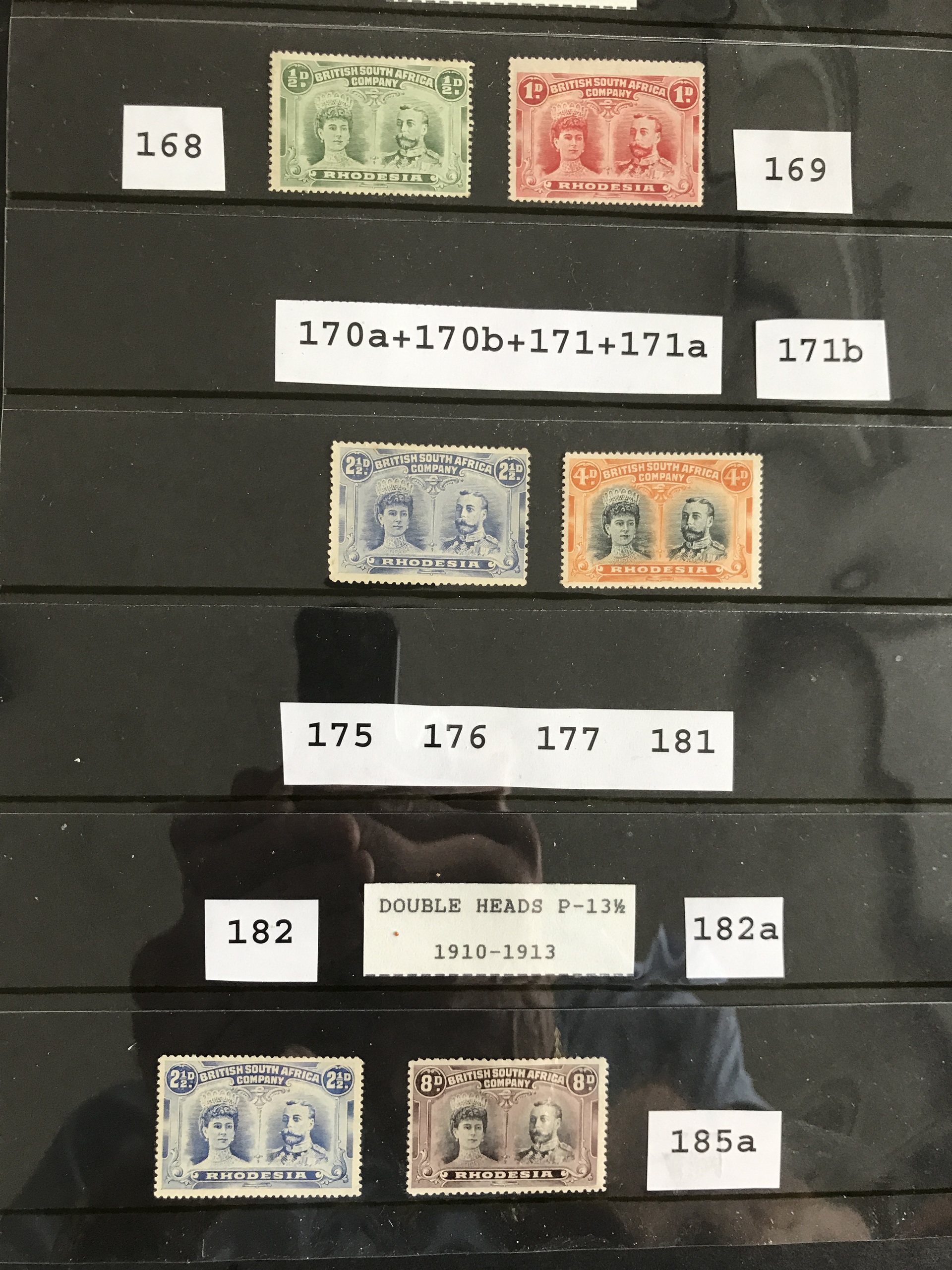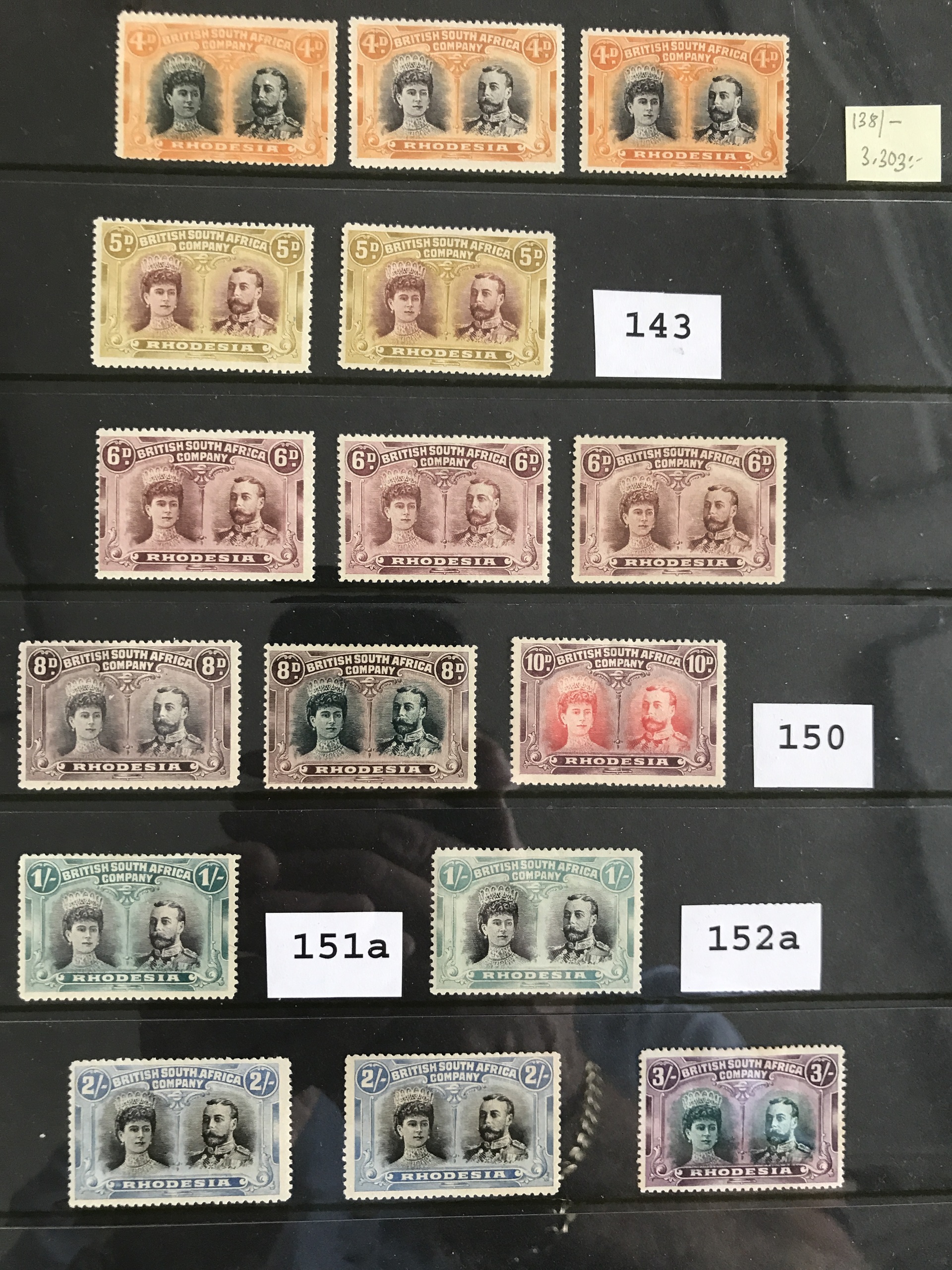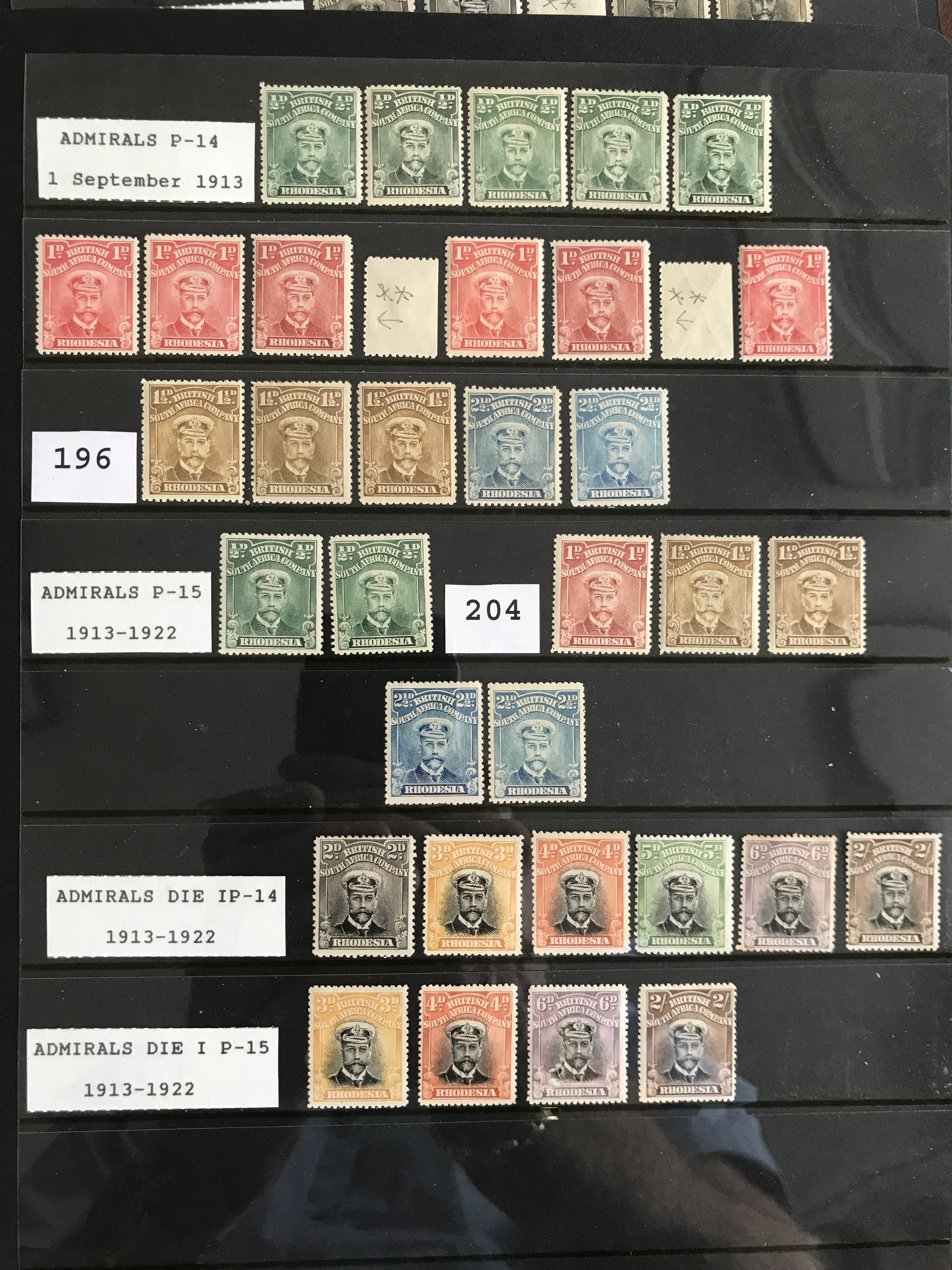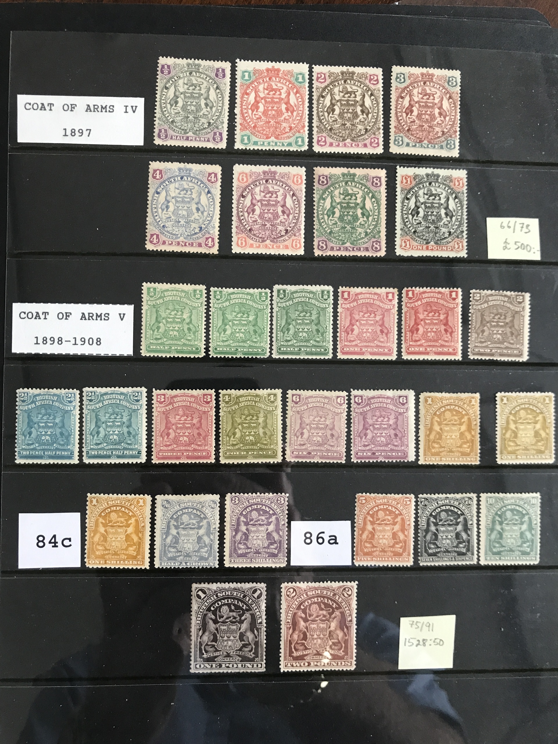 British South Africa Company. ★. Collection 1892–1917 incl. shades and types. Containing e.g. Mi1–9, 25–38I+II, 41–72, 76–95, 97–112 and 119–36, etc. Mi approx. 11500 Euro. The entire lot is presented at www.philea.se. (250)
