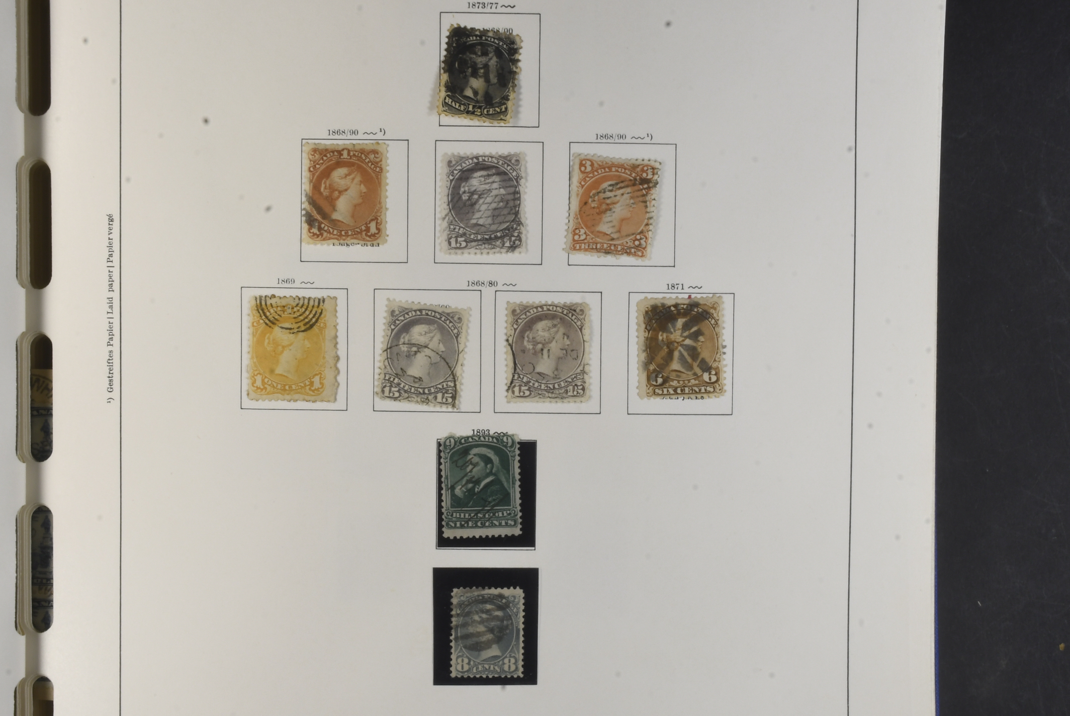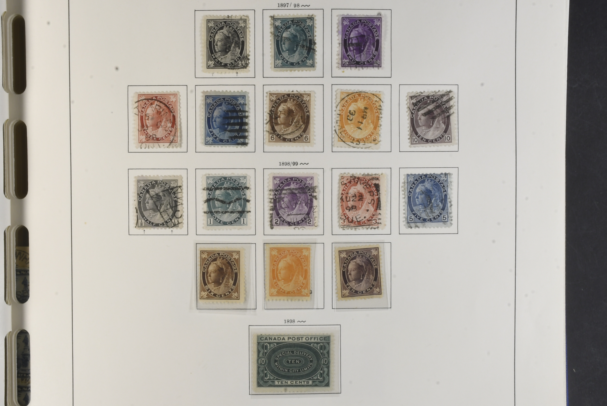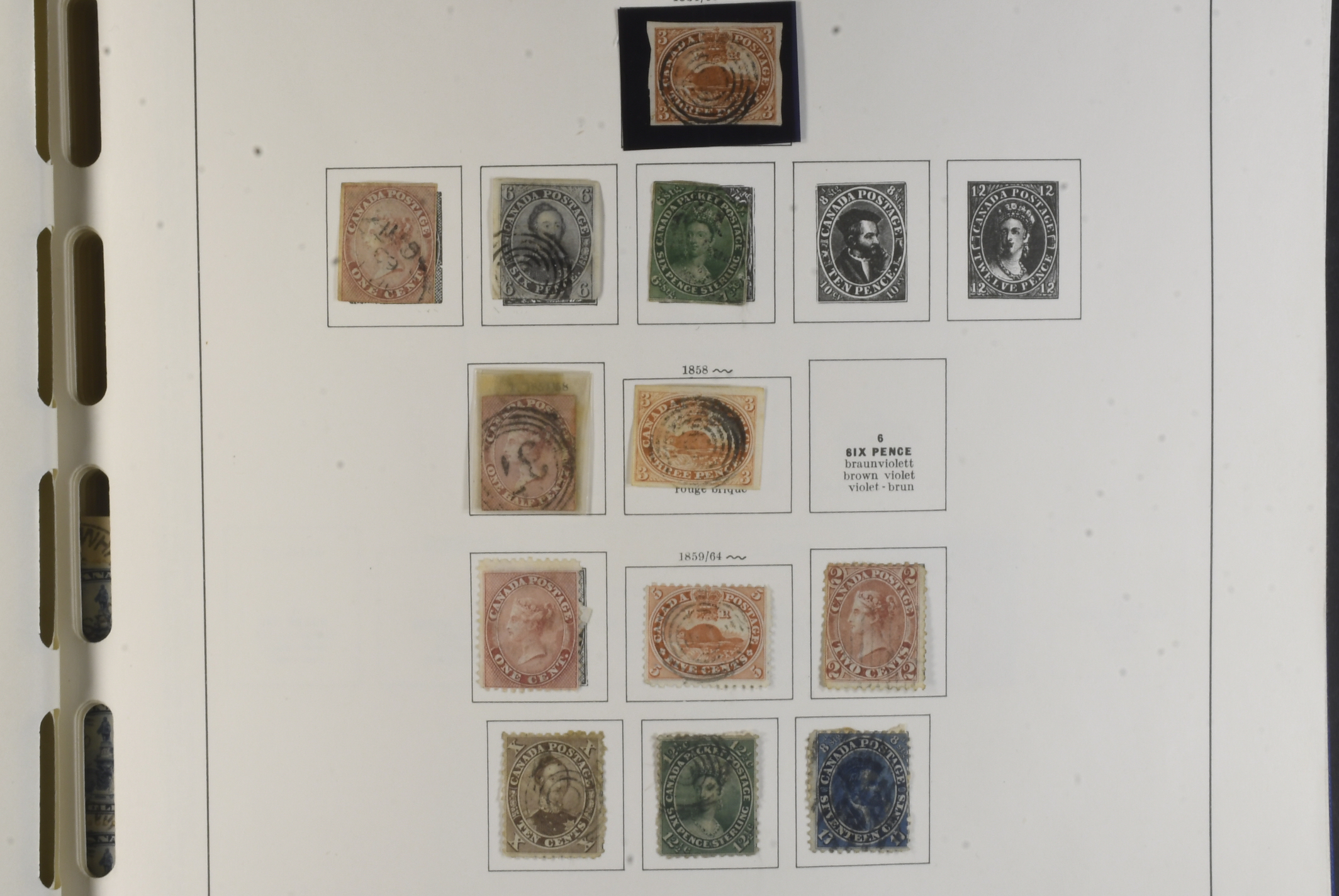Canada. Collection ★/⊙ 1851–1980s in Schaubek album. Oldest part in mixed condition but with several good stamps incl. Colony of Canada SG5, 7, 9 (three margins) and 43, several shades of 10 c etc. 15 large QV heads. 1897 set complete but with faults, later issues with many complete sets. Inspection is recommended. Please see a selection of scans at www.philea.se. Mostly good quality. (700+)