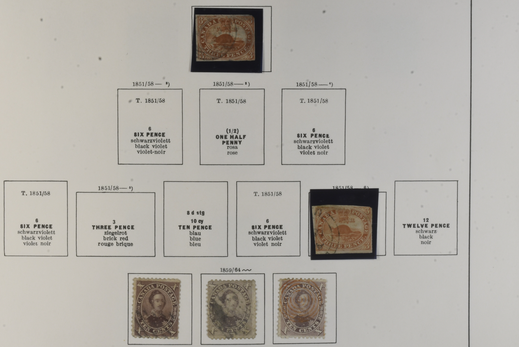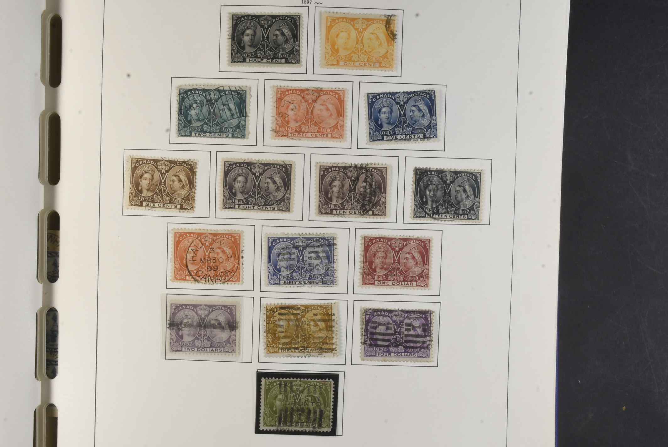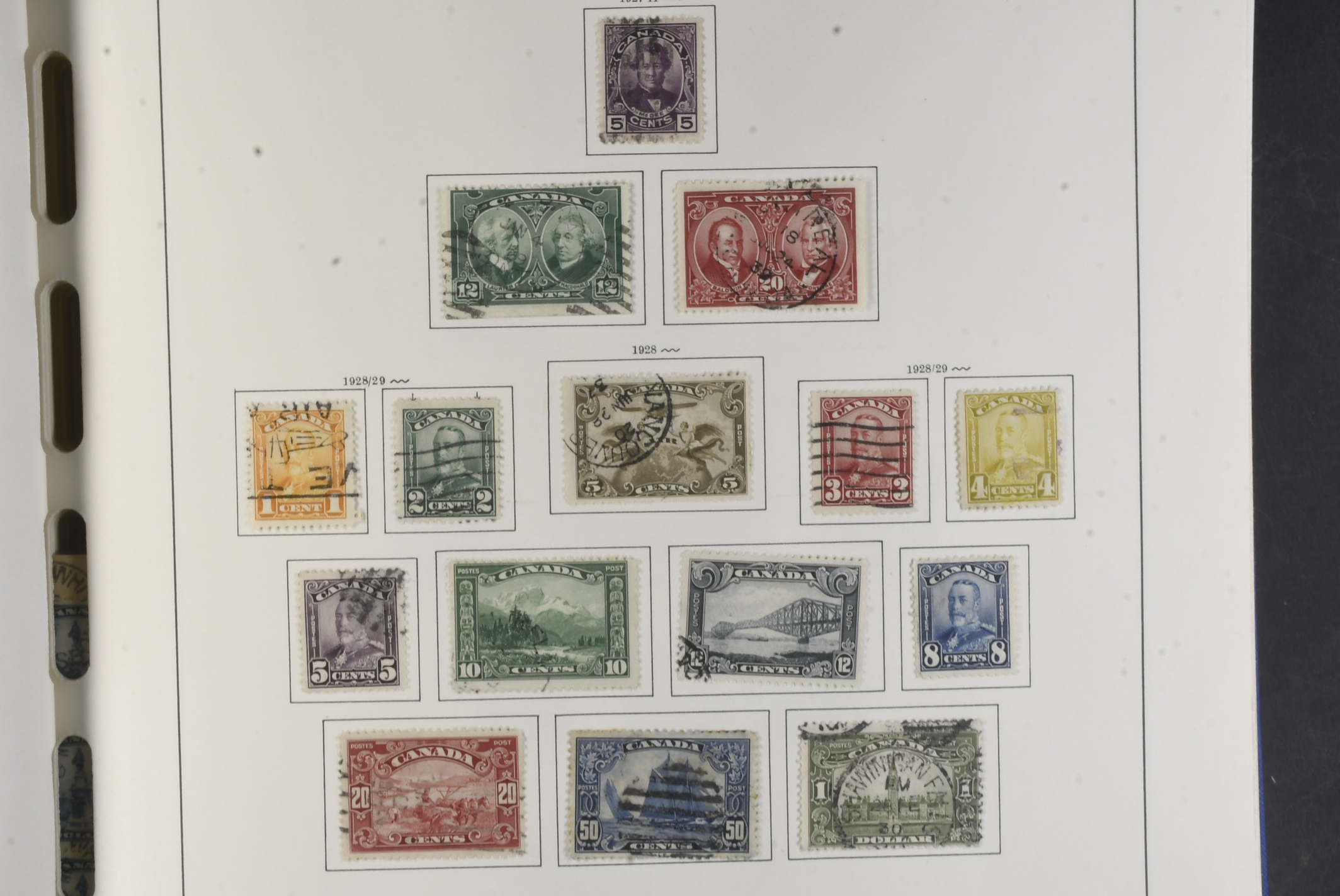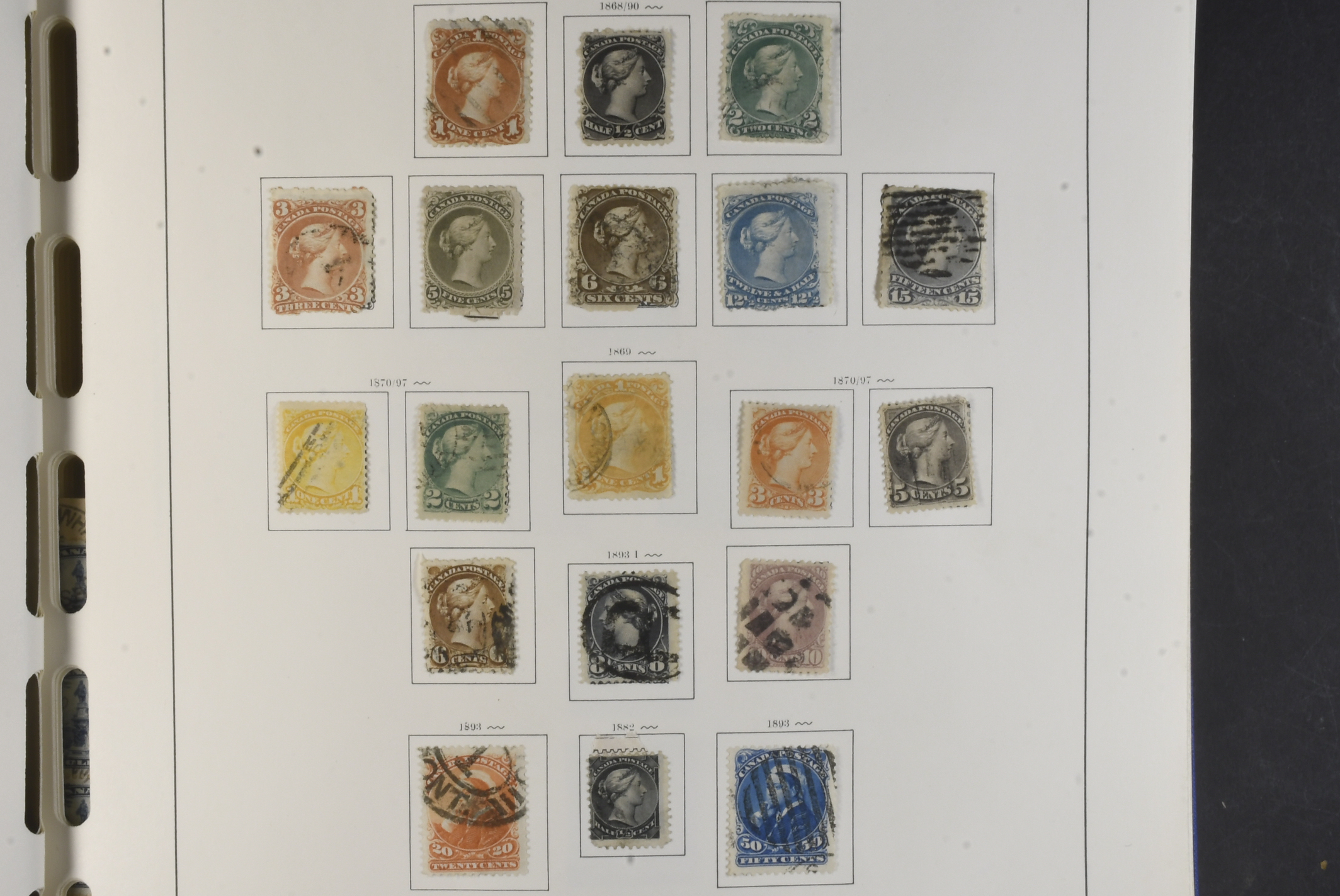Canada. Collection ★/⊙ 1851–1980s in Schaubek album. Oldest part in mixed condition but with several good stamps incl. Colony of Canada SG5, 7, 9 (three margins) and 43, several shades of 10 c etc. 15 large QV heads. 1897 set complete but with faults, later issues with many complete sets. Inspection is recommended. Please see a selection of scans at www.philea.se. Mostly good quality. (700+)