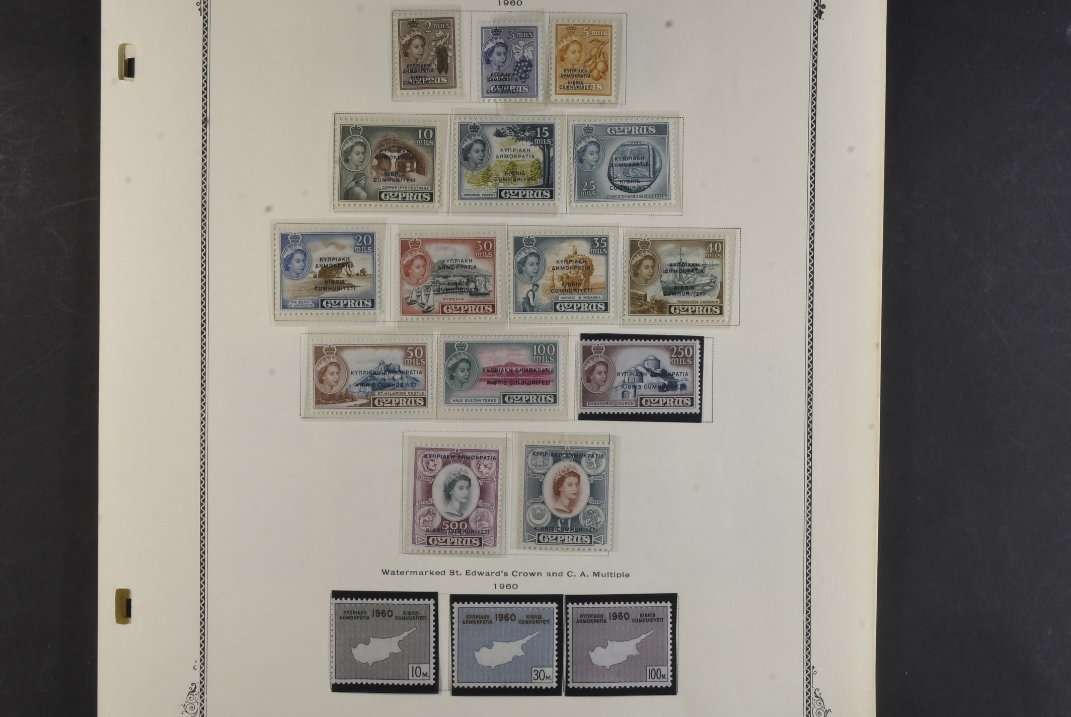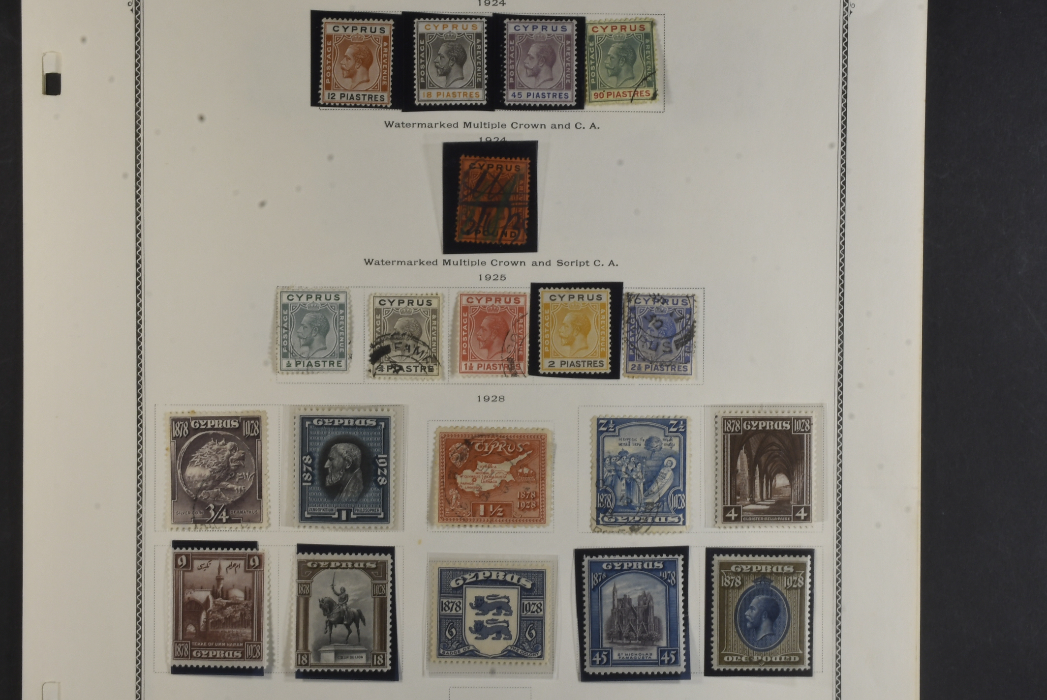 Cyprus. Collection ★★/★/⊙ 1880–1967 on Scott leaves. Well filled the earliest in mixed condition incl better stamps e.g. SG4 lh, 5 round corner. 6 thin, 10, 21 *, 49, 58–59 *, 71 *, 99 *, 116 *, 117 ¤, 132 *, 143 *, 161–163 *, 186–187 **. From 1960–1967 complete incl. M/S mint nh. Viewing is recommended. Please see a selection of scans at www.philea.se. Mostly good quality. (c200)