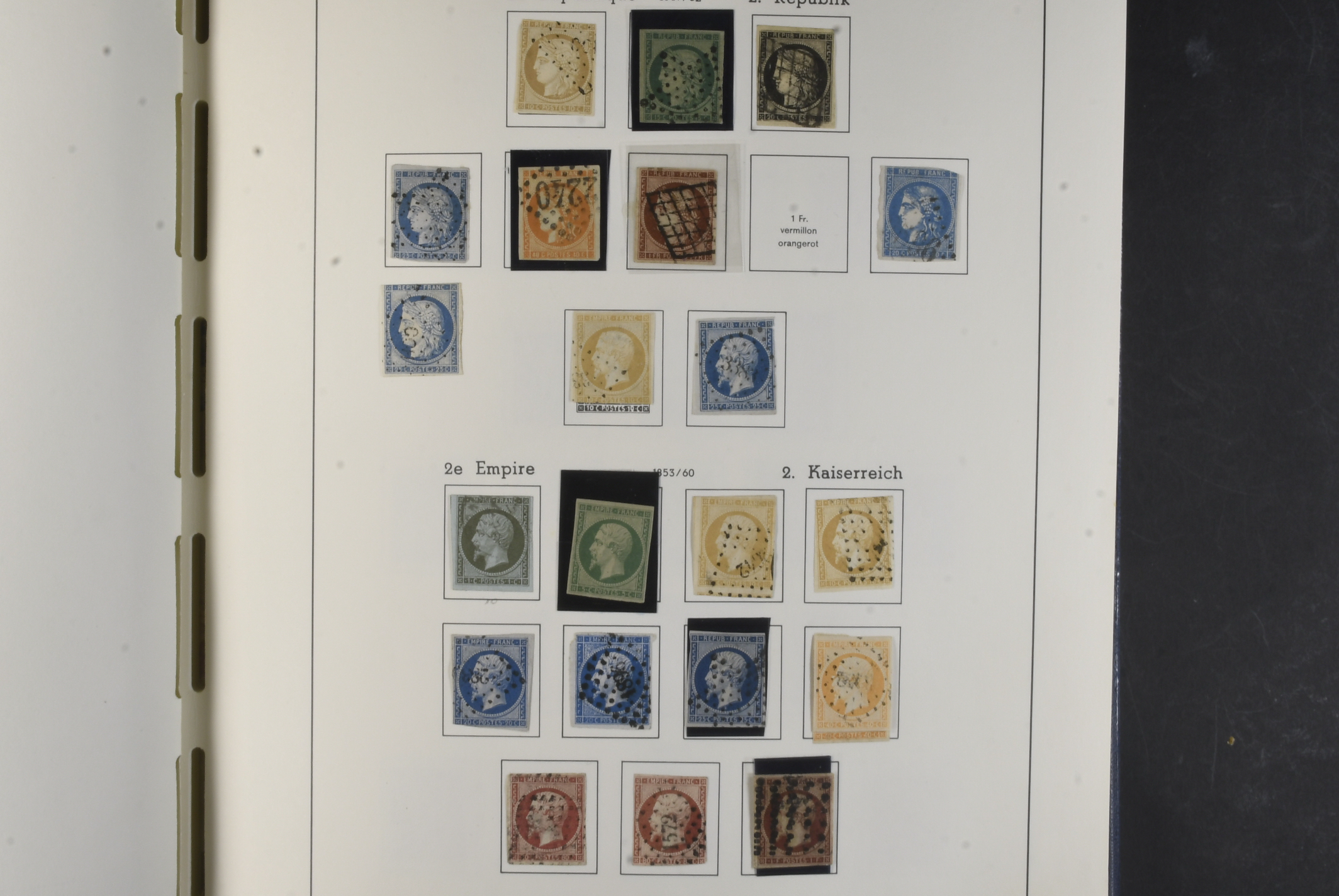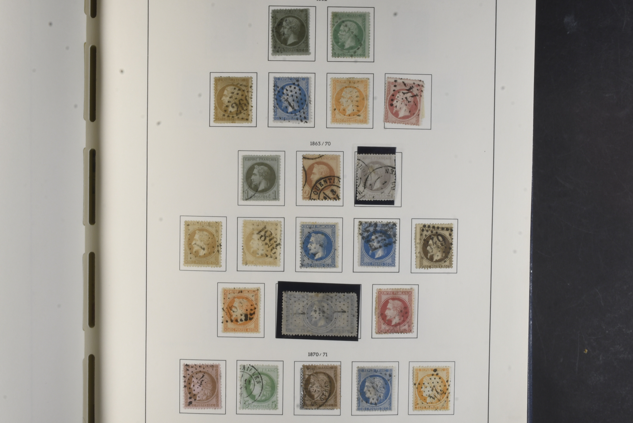 France. Collection ★★/★/⊙ 1849–1969 in Leuchtturm album. Good early part but many with quality issues better stamps include Mi 7, 11 (*), 17 (thin and pinhole), 133–134 and 327 from ca. 1940 very well filled mixed mint and used. Please see a selection of scans at www.philea.se. Somewhat mixed quality. (ca. 1400)