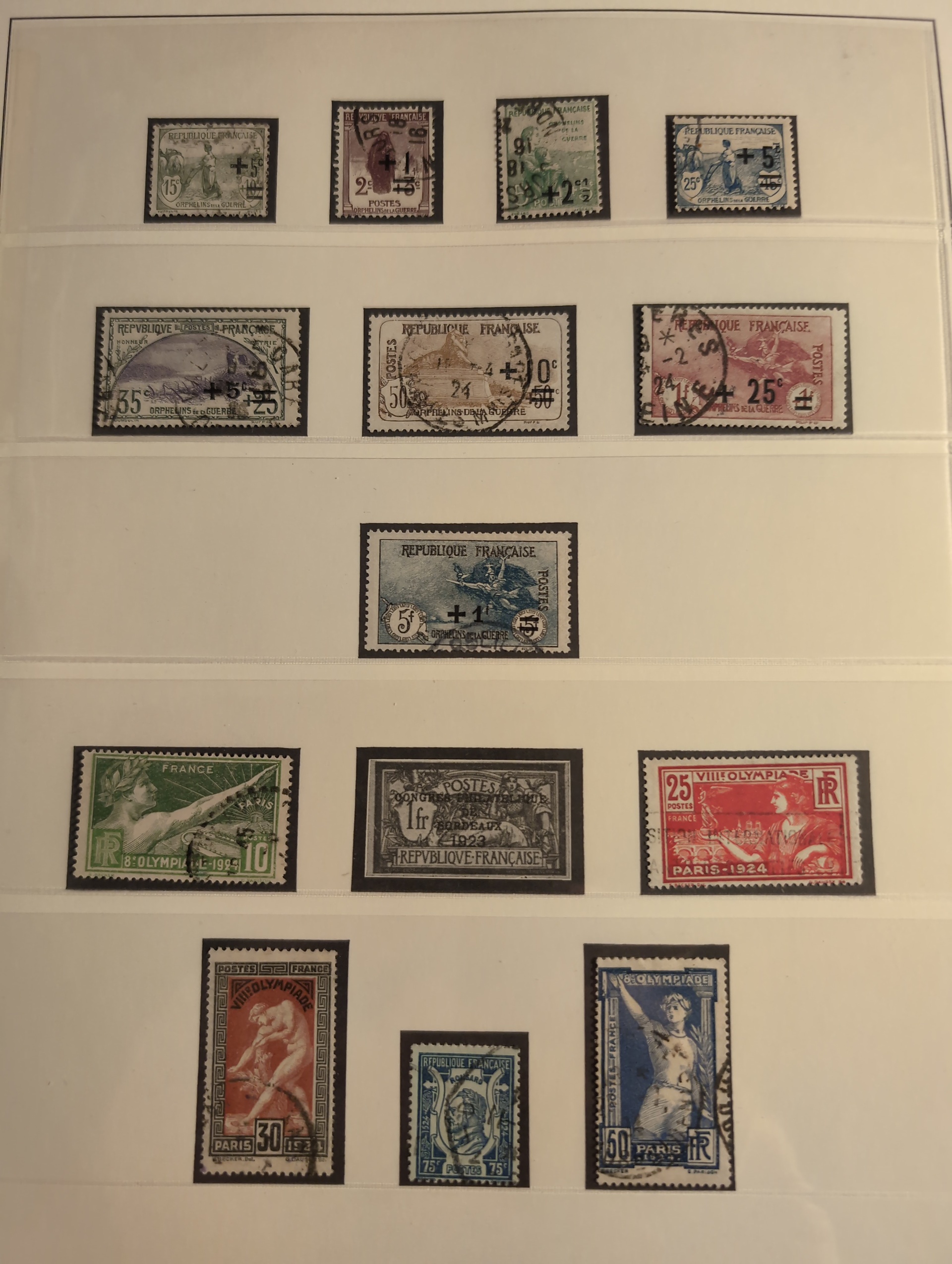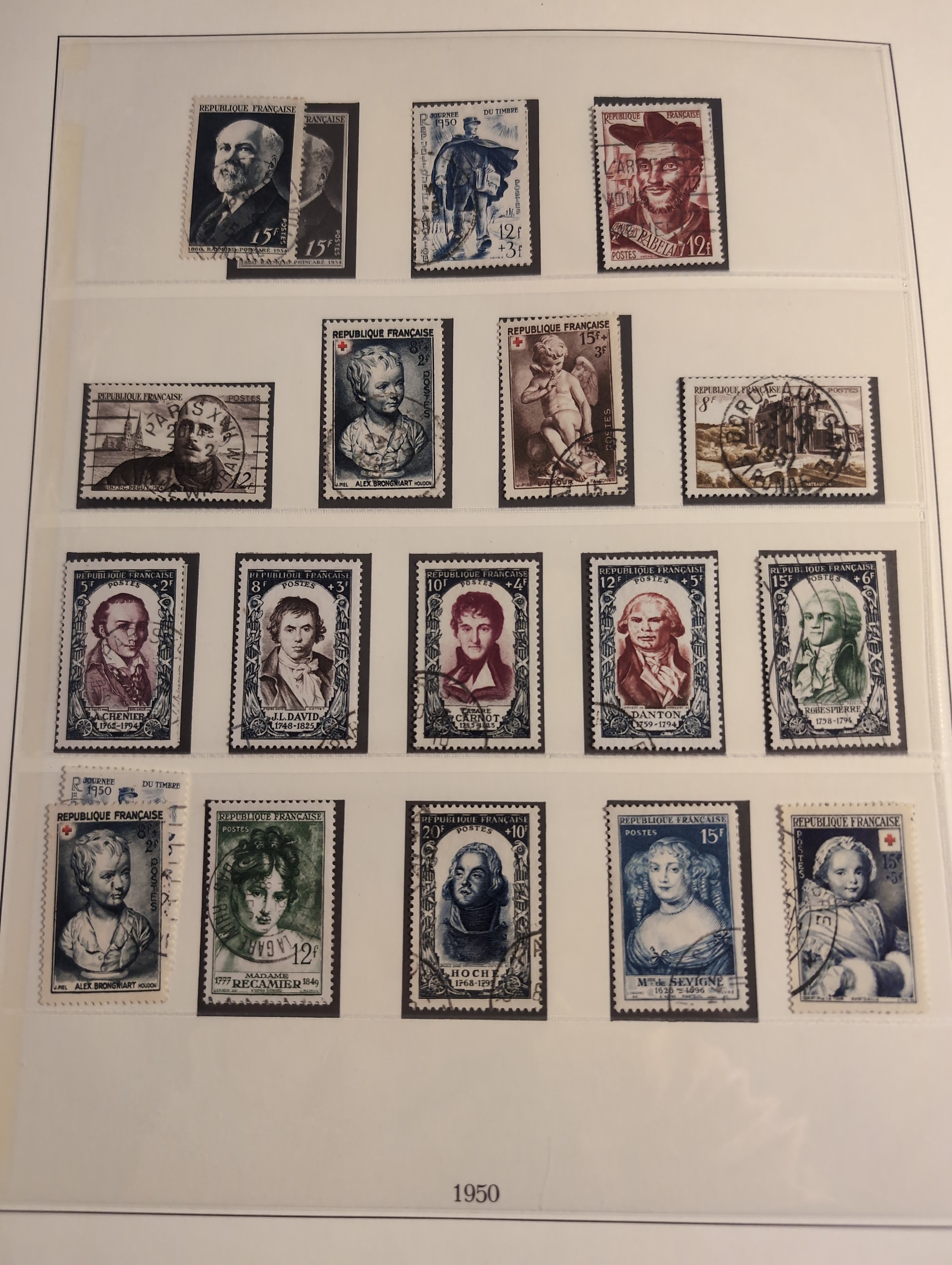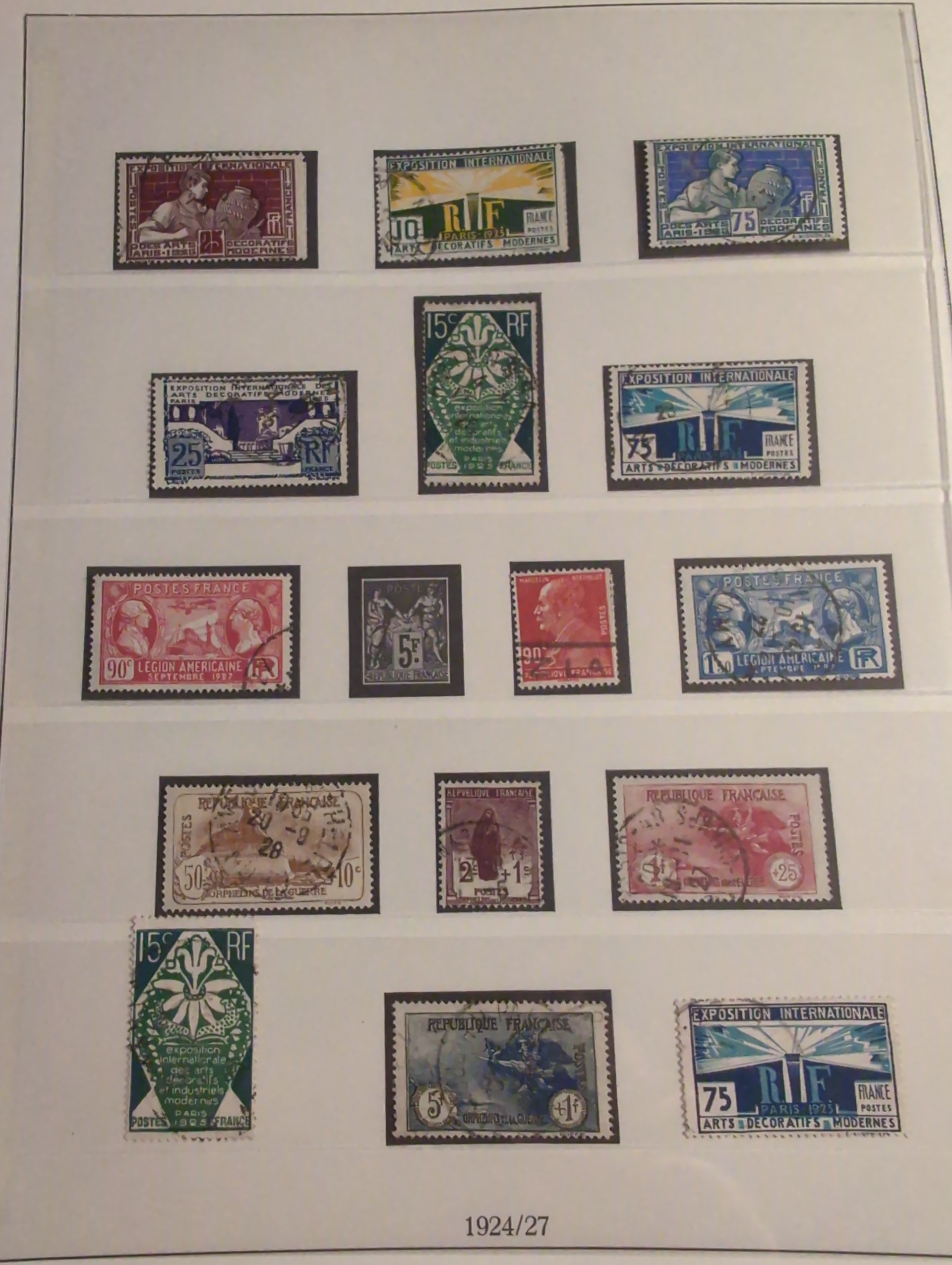 France. Collection mostly used 1849–1981 in box. Six Lindner T albums with usefull collection incl. some duplicates, better early stamps in mixed condition and some better sets incl War orphans 1922, 1926 sets and Airmail 1936 with both 50 fr. Also one visiralbum with mint stamps. Please see a selection of scans at www.philea.se. Somewhat mixed quality. Approx. 14 kg.