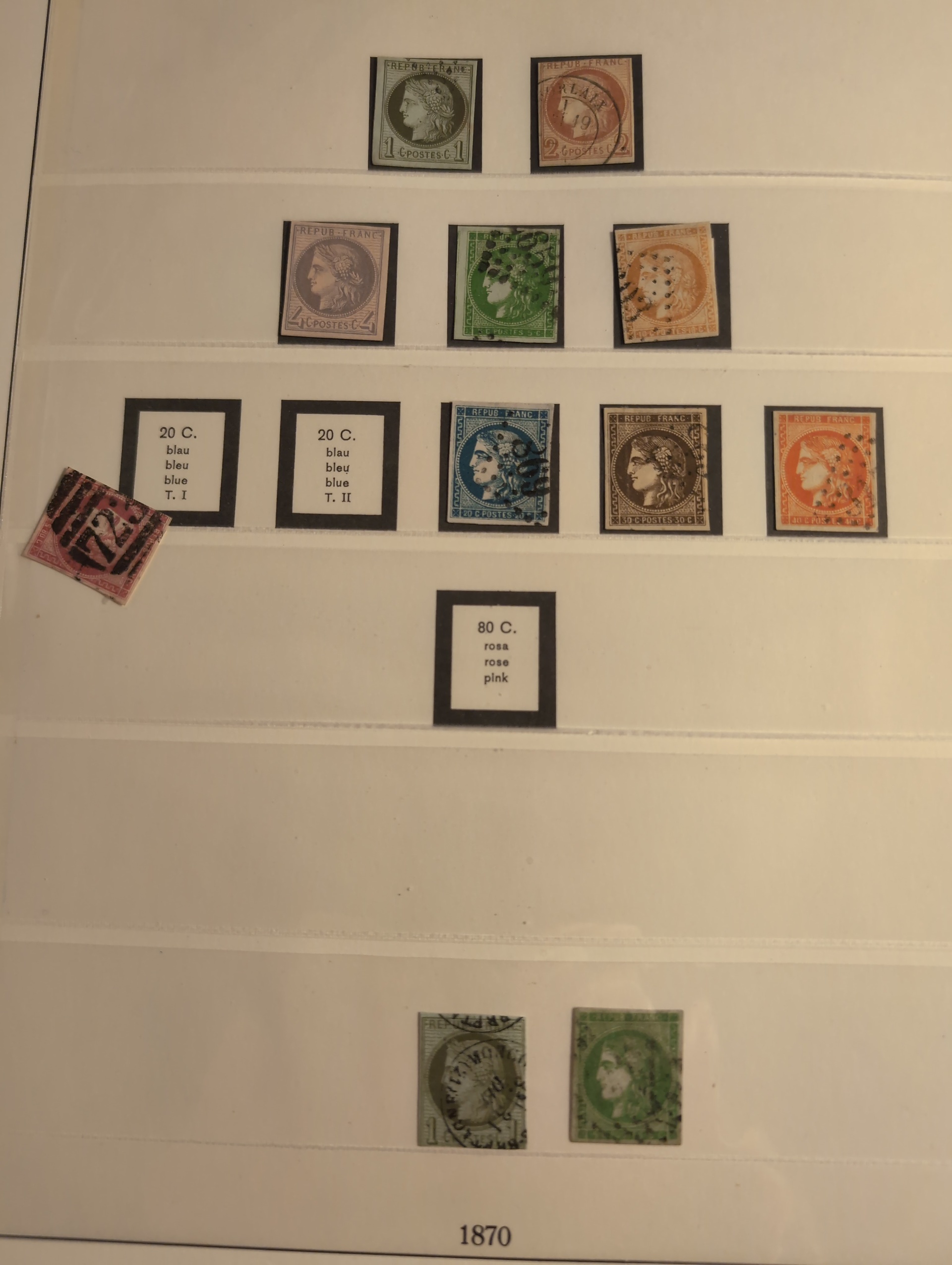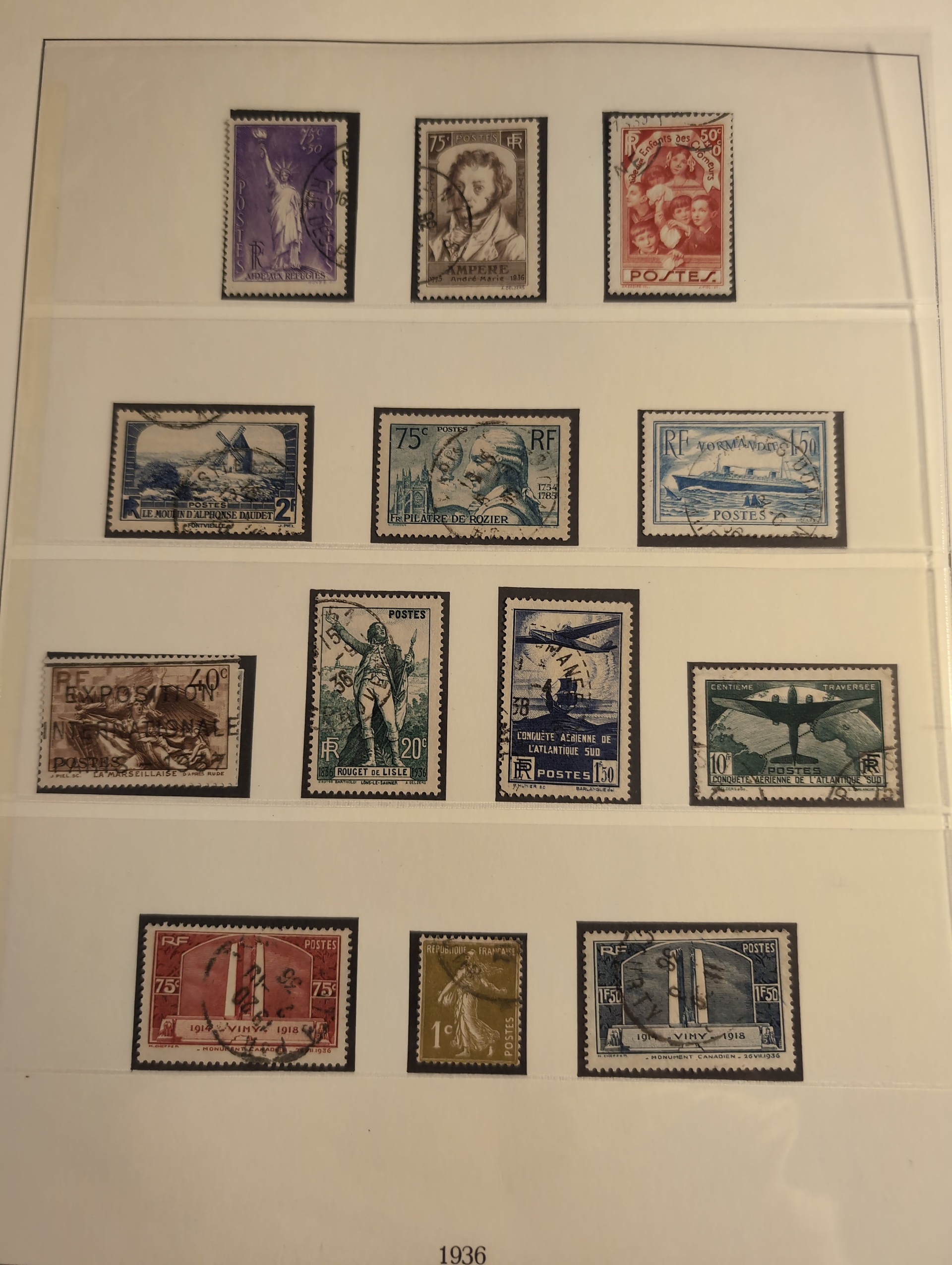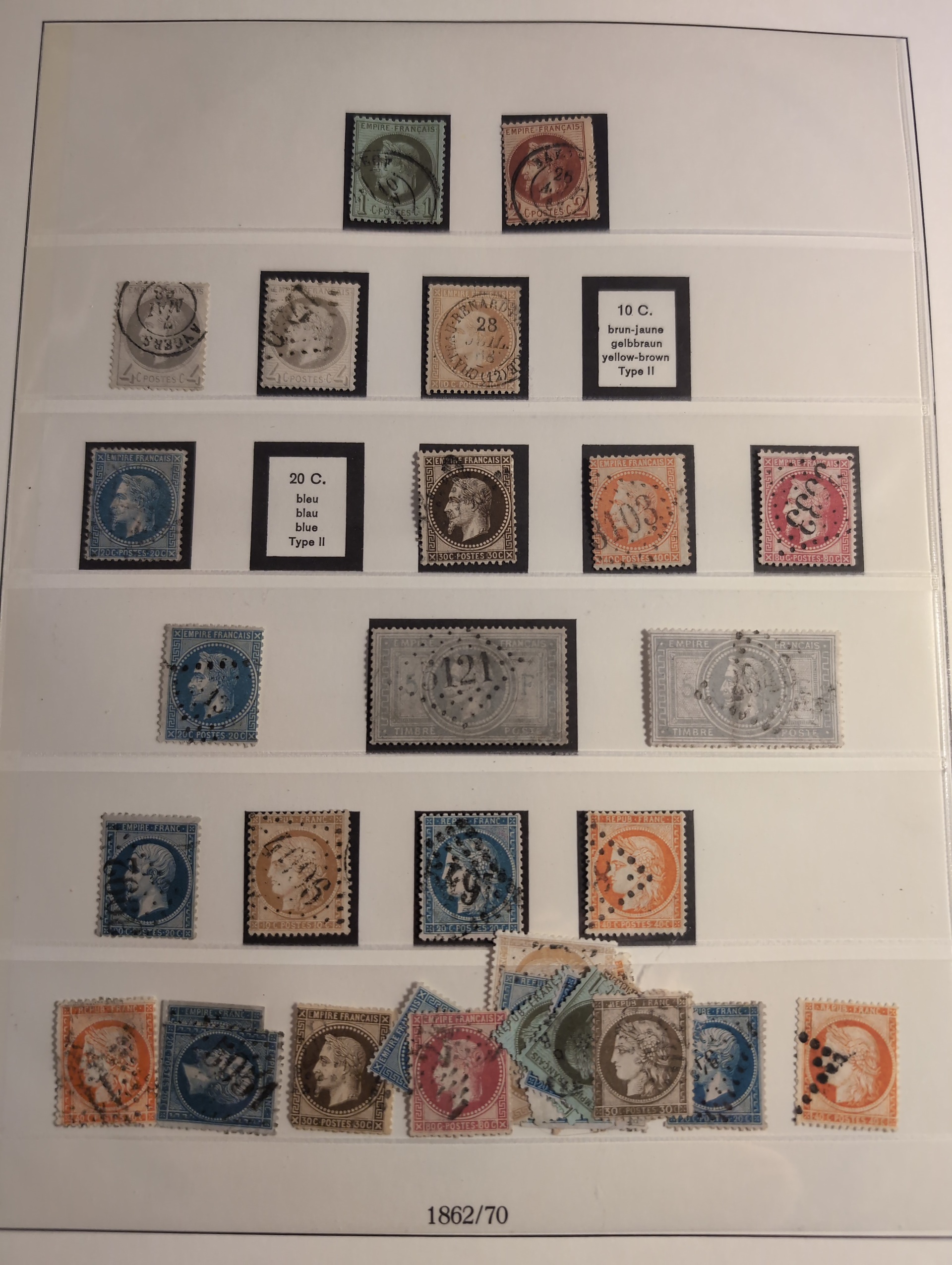 France. Collection mostly used 1849–1981 in box. Six Lindner T albums with usefull collection incl. some duplicates, better early stamps in mixed condition and some better sets incl War orphans 1922, 1926 sets and Airmail 1936 with both 50 fr. Also one visiralbum with mint stamps. Please see a selection of scans at www.philea.se. Somewhat mixed quality. Approx. 14 kg.