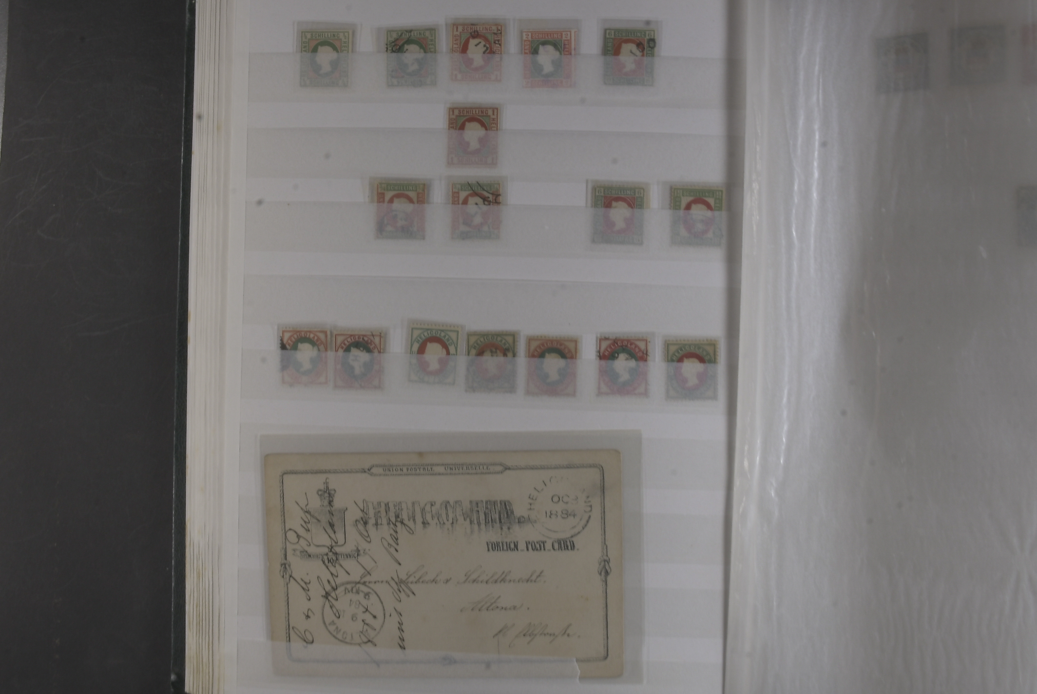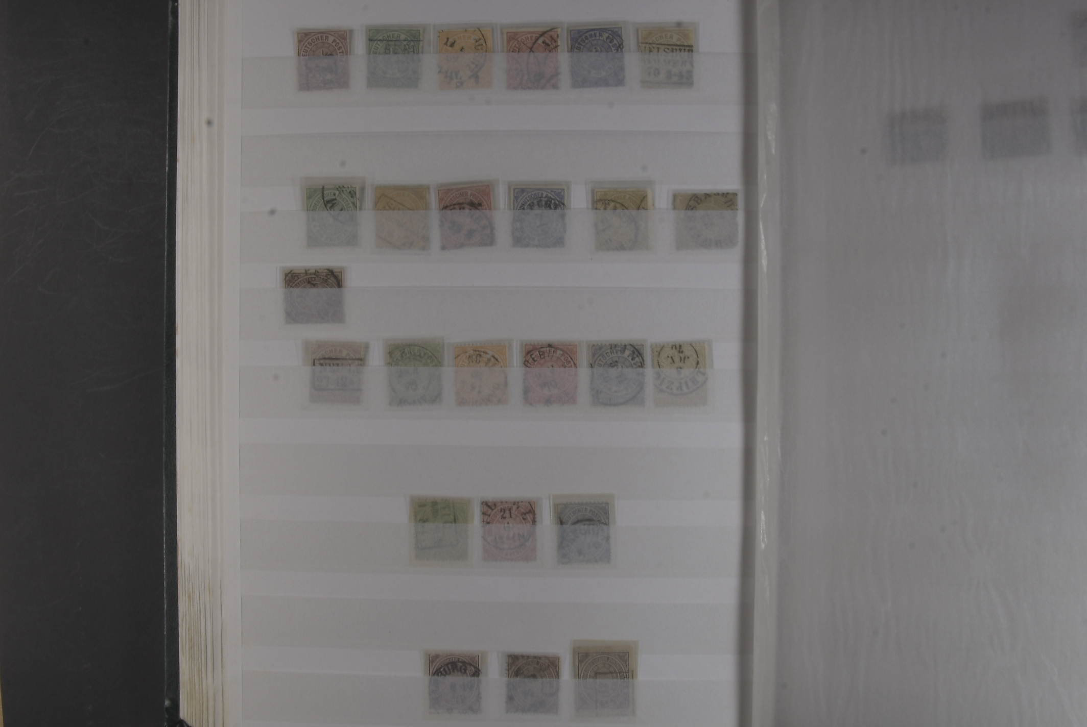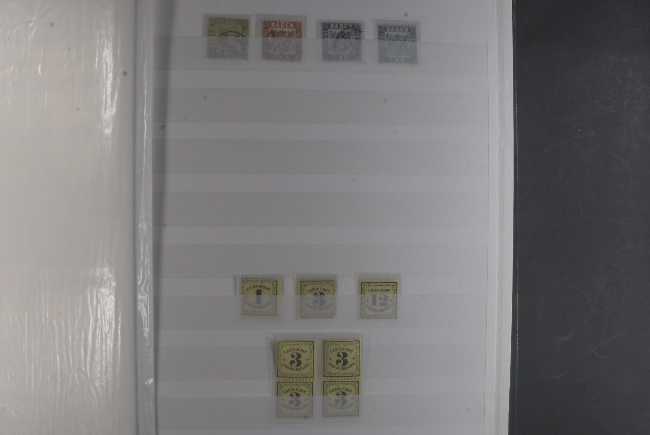 Germany, states. Collection ★★/★/⊙ 1850–1923 in large stockbook. Baden, Braunschweig, Hamburg, Hannover, Helgoland, Oldenburg Prussia and much more. Better stamps, some with signs but also falsaries and new prints. Please see a selection of scans at www.philea.se. Somewhat mixed quality.