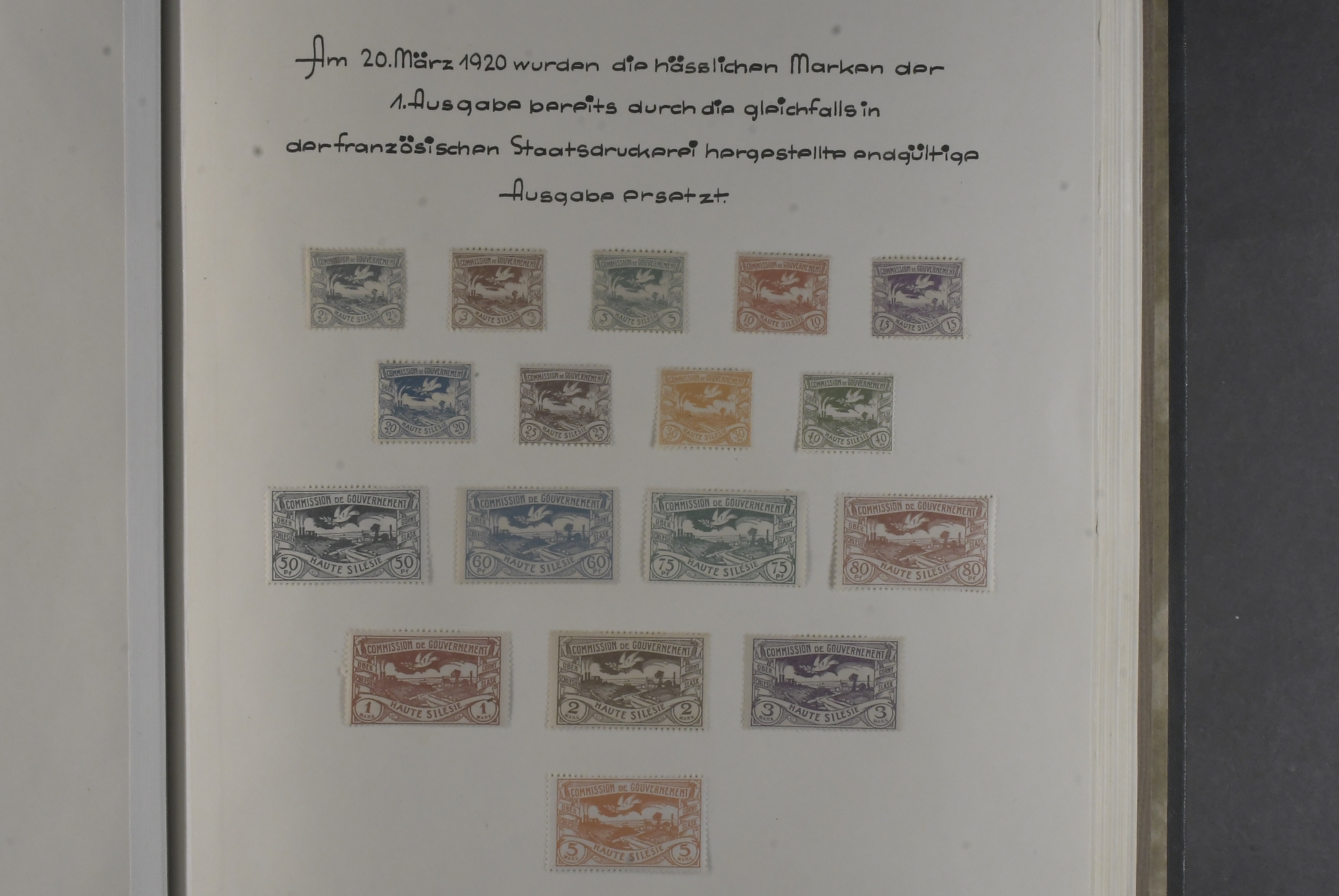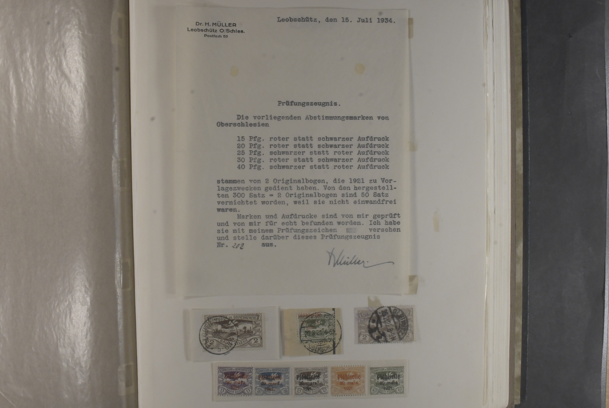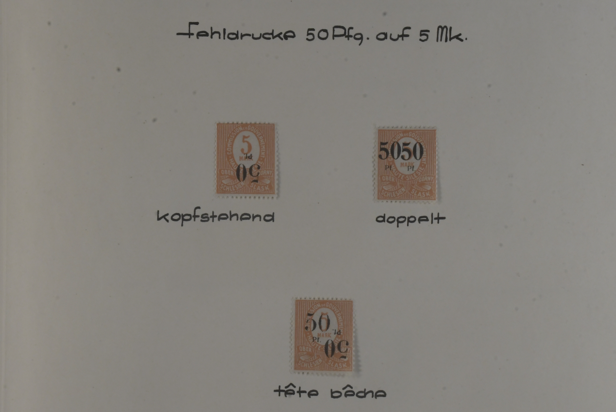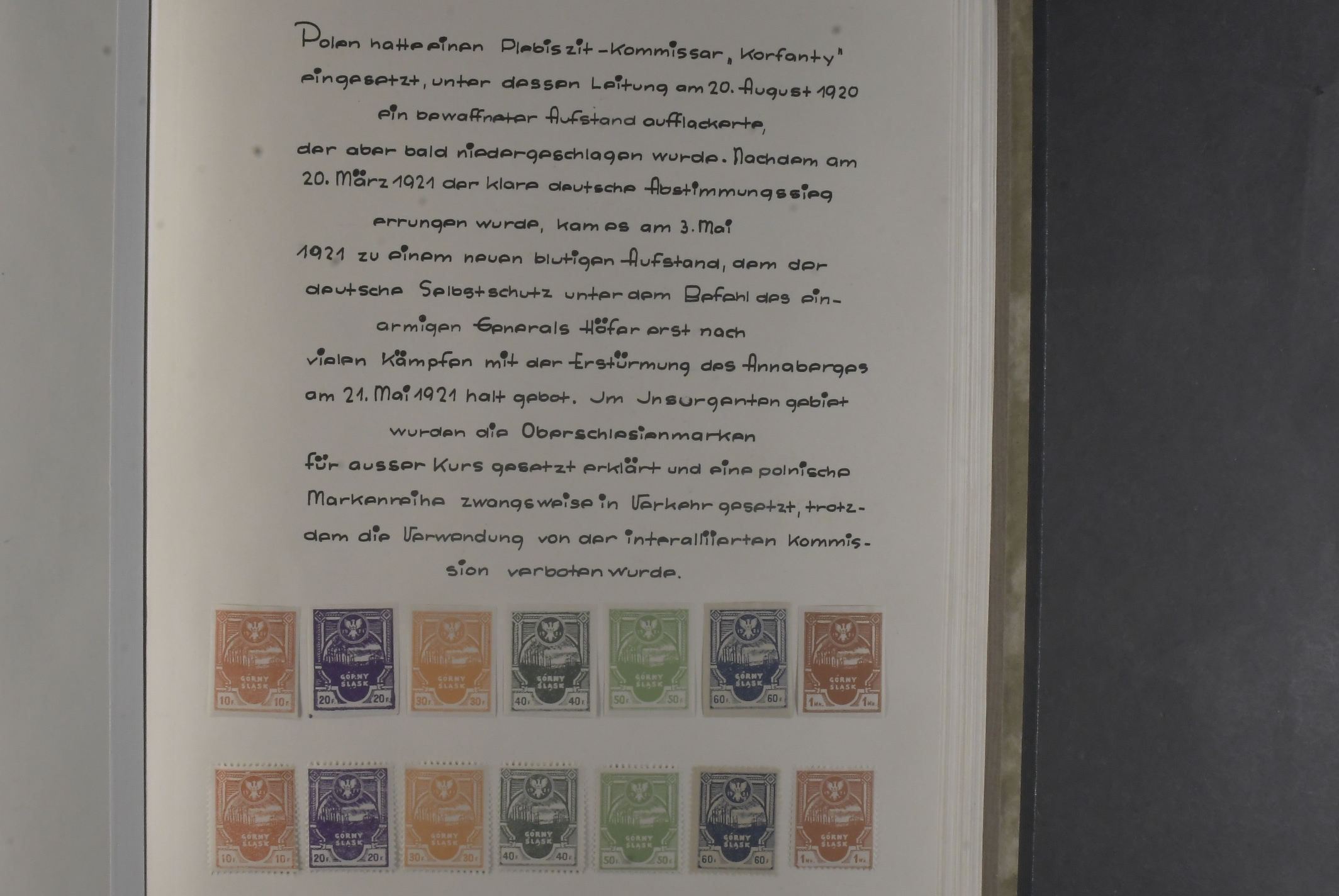 Germany, Upper Silesia. Collection ★/⊙ on very beatiful handmade leves. Seams to be complete. Many varieties as inverted and double overprints, and different types. Also some covers. Everything better signed by Müller. The entire lot is presented at www.philea.se.
