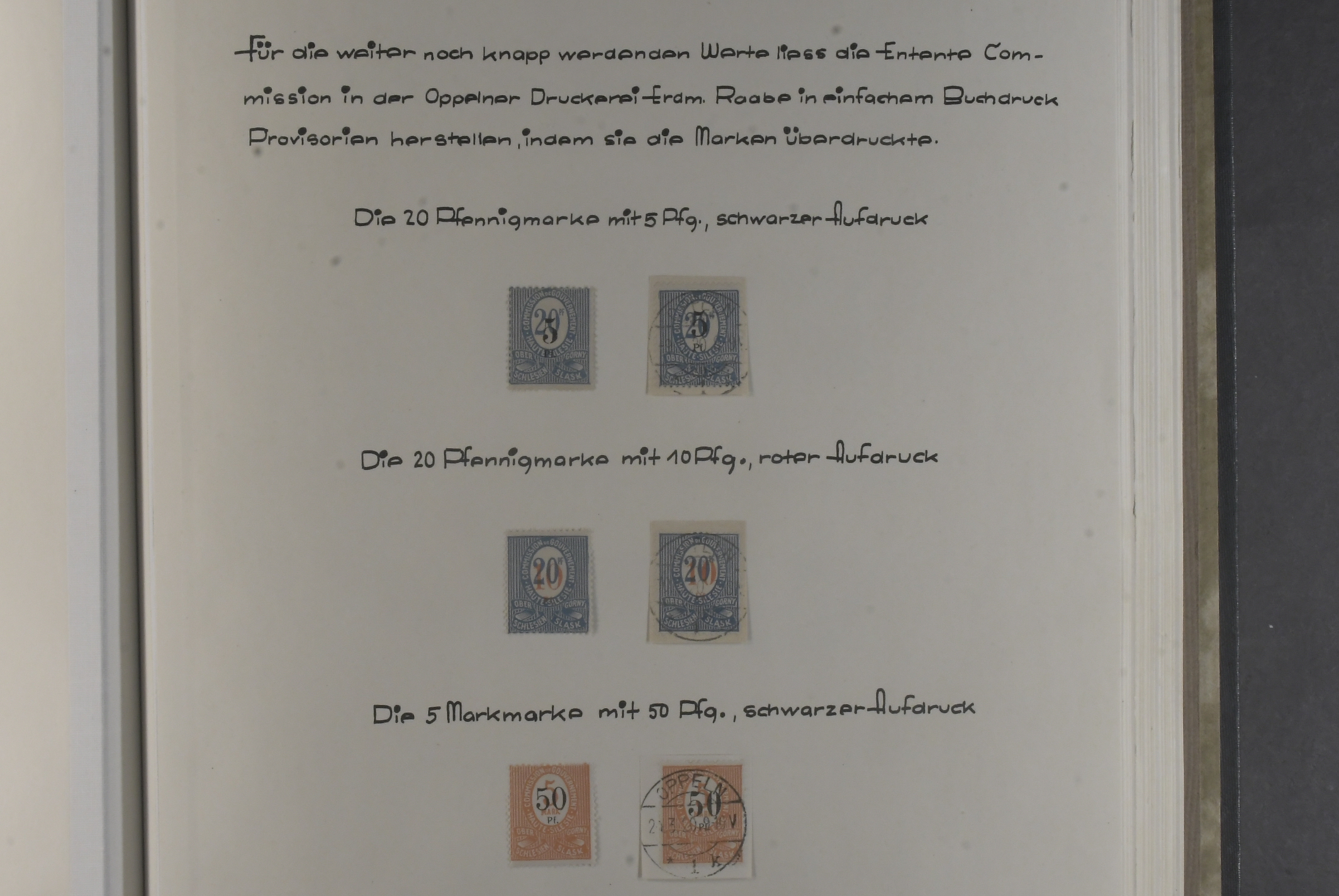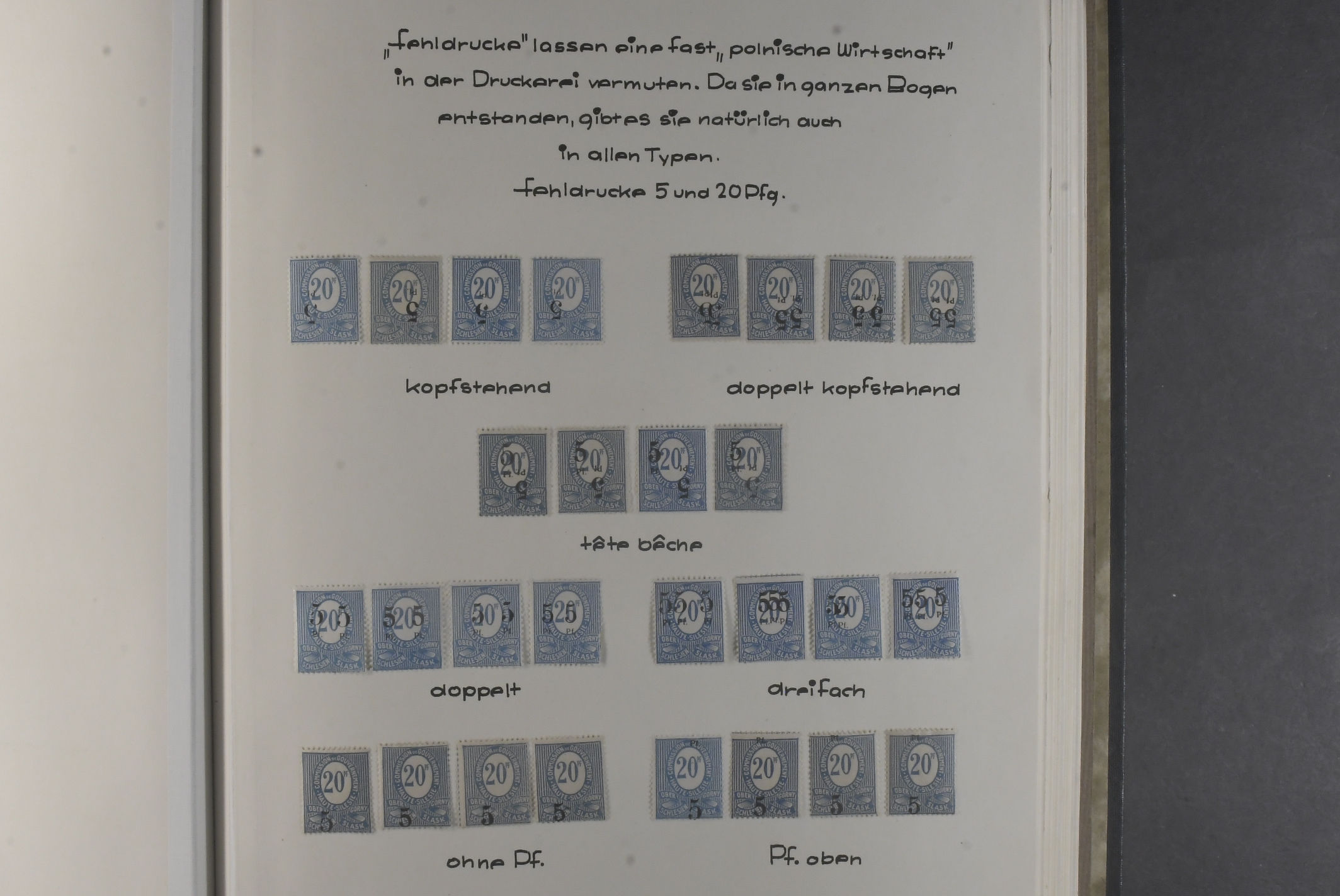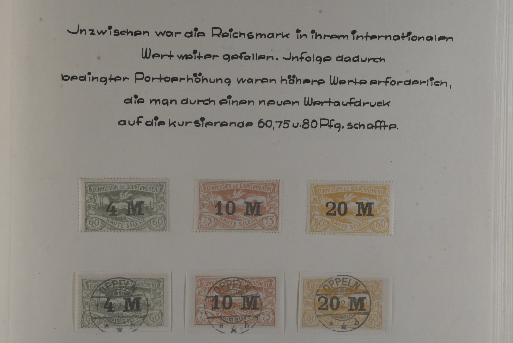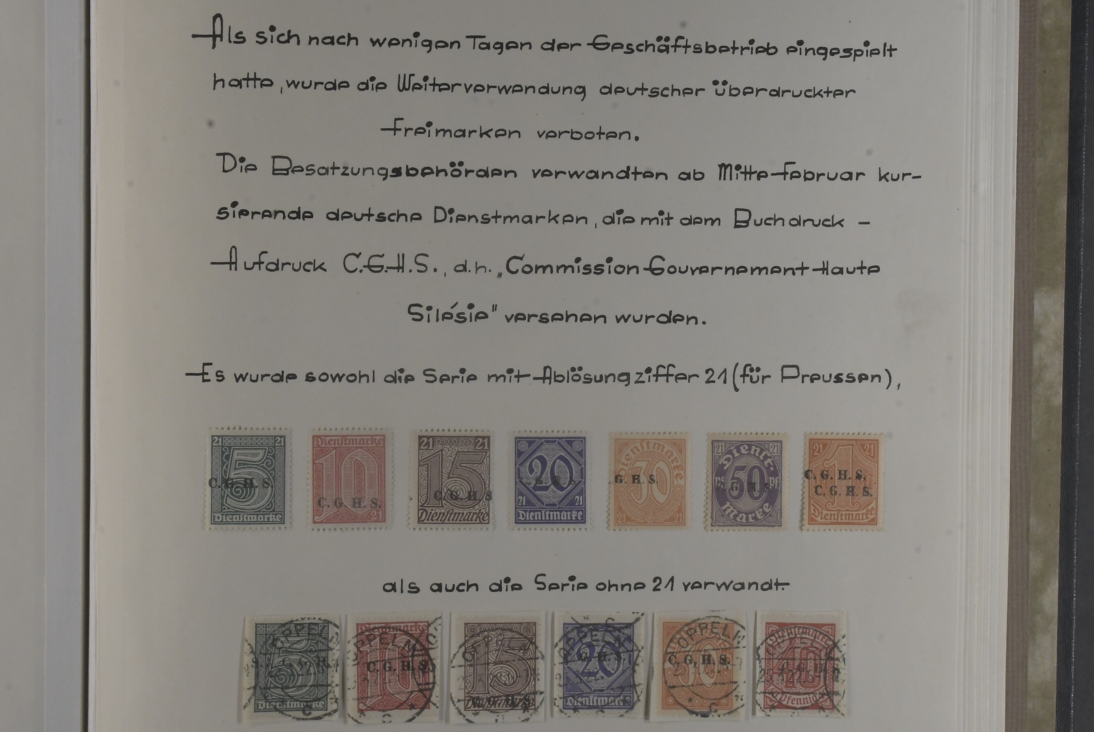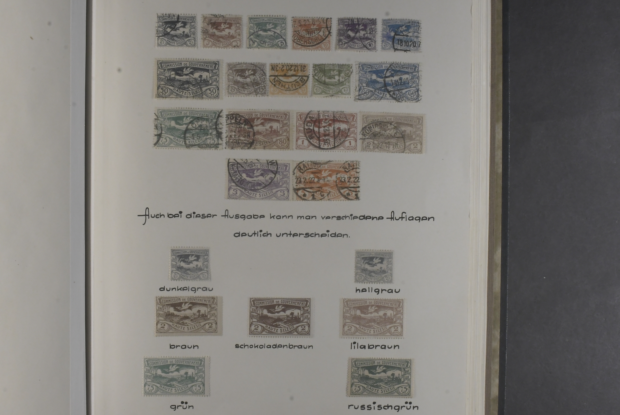 Germany, Upper Silesia. Collection ★/⊙ on very beatiful handmade leves. Seams to be complete. Many varieties as inverted and double overprints, and different types. Also some covers. Everything better signed by Müller. The entire lot is presented at www.philea.se.