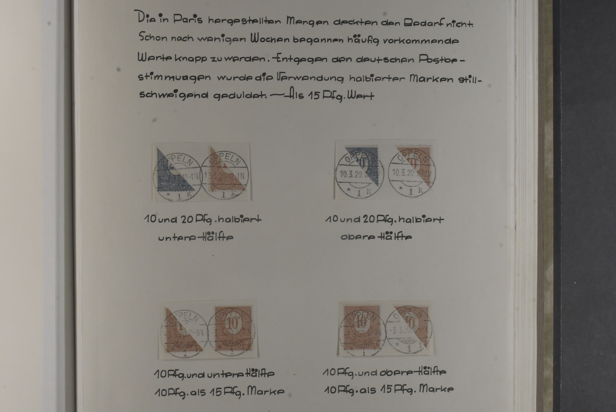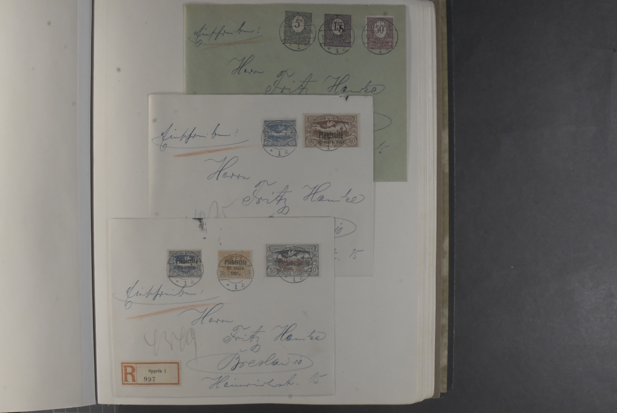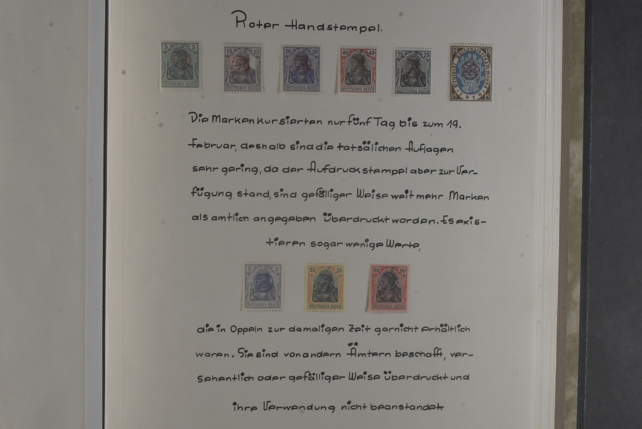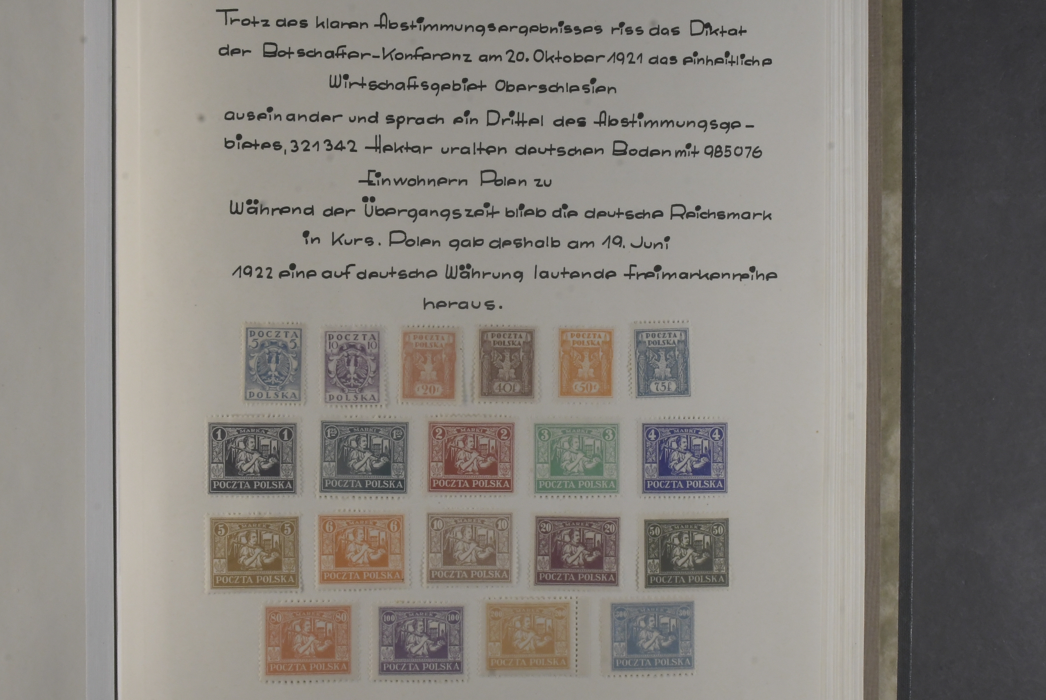 Germany, Upper Silesia. Collection ★/⊙ on very beatiful handmade leves. Seams to be complete. Many varieties as inverted and double overprints, and different types. Also some covers. Everything better signed by Müller. The entire lot is presented at www.philea.se.
