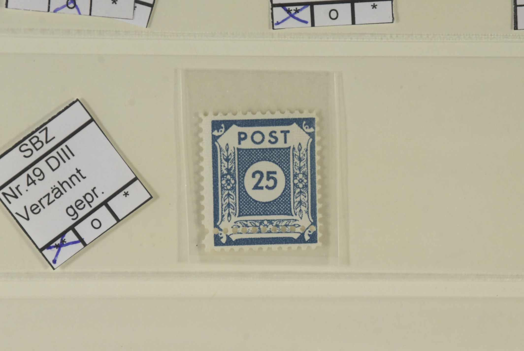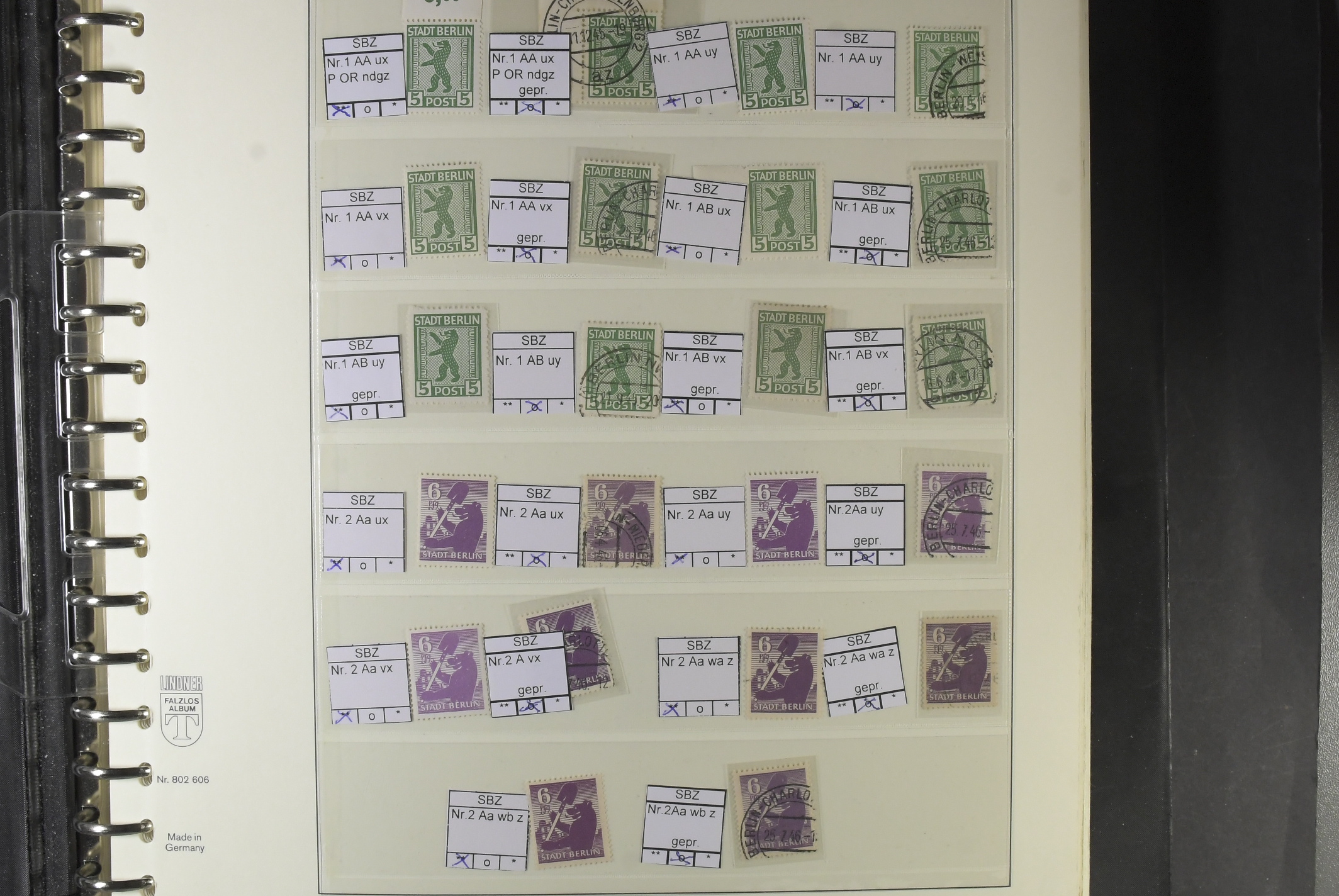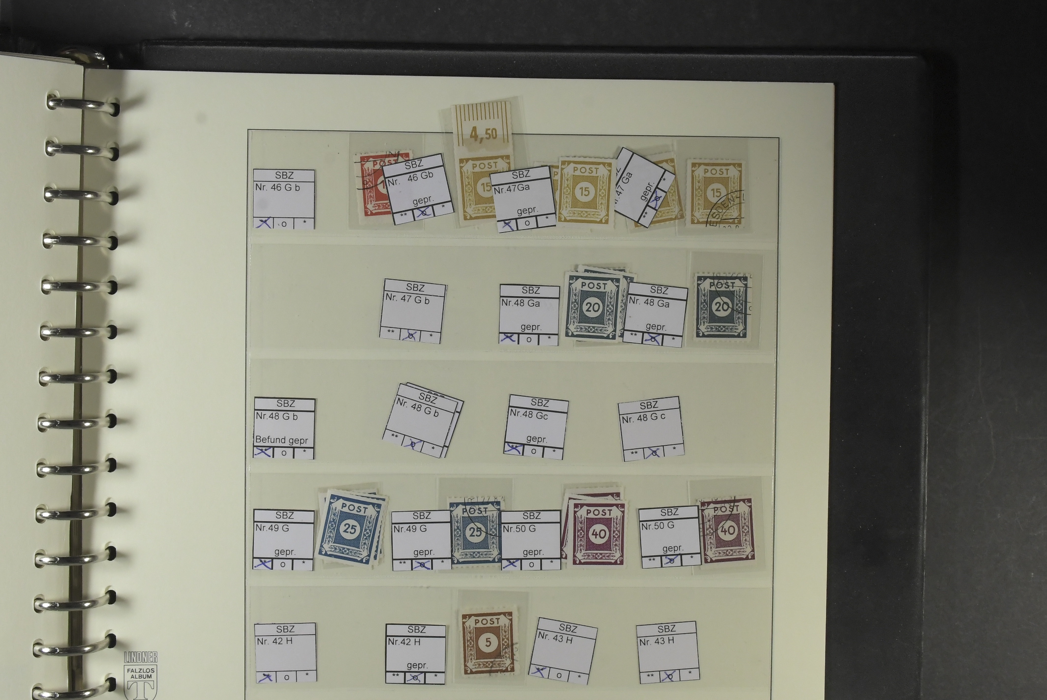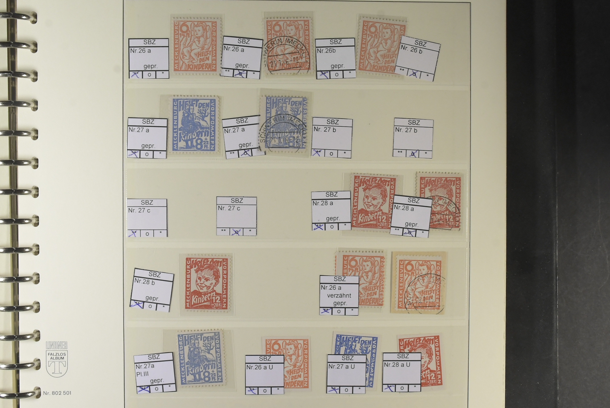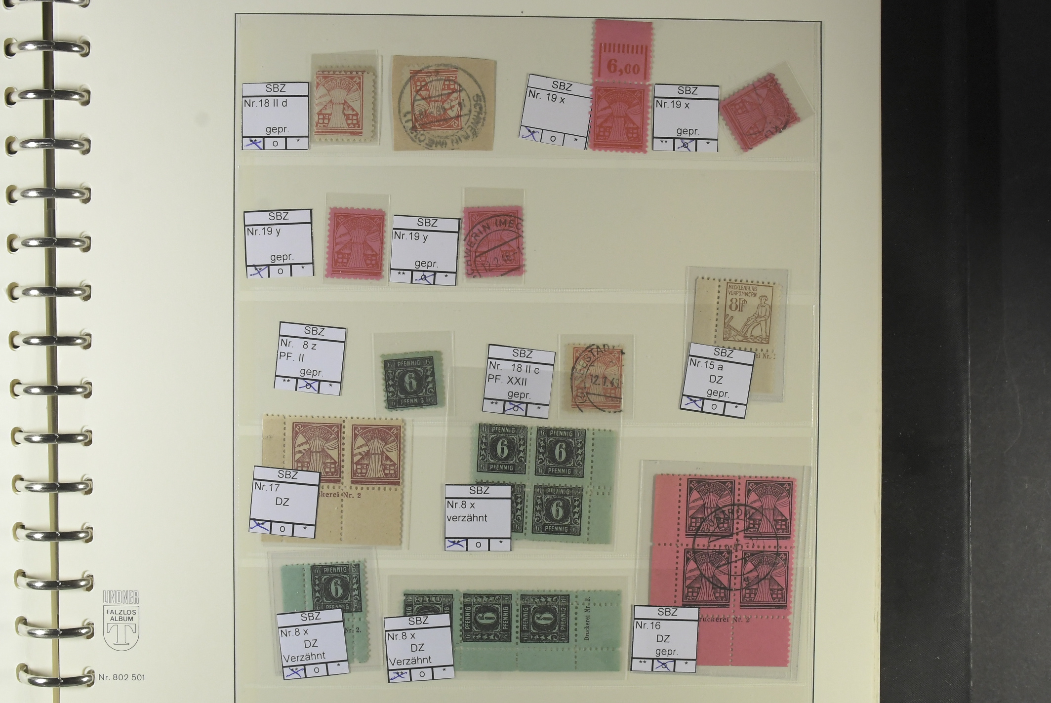 Germany, Soviet zone. Collection/accumulation ★★/⊙. Specialized study of many stamps Mi 1–50 with different shades, watermarks and specialities, all noted in detail on small paper pieces, many signed stamps also noted on the pieces. Excellent opportunity for the specialist. The entire lot is presented at www.philea.se.