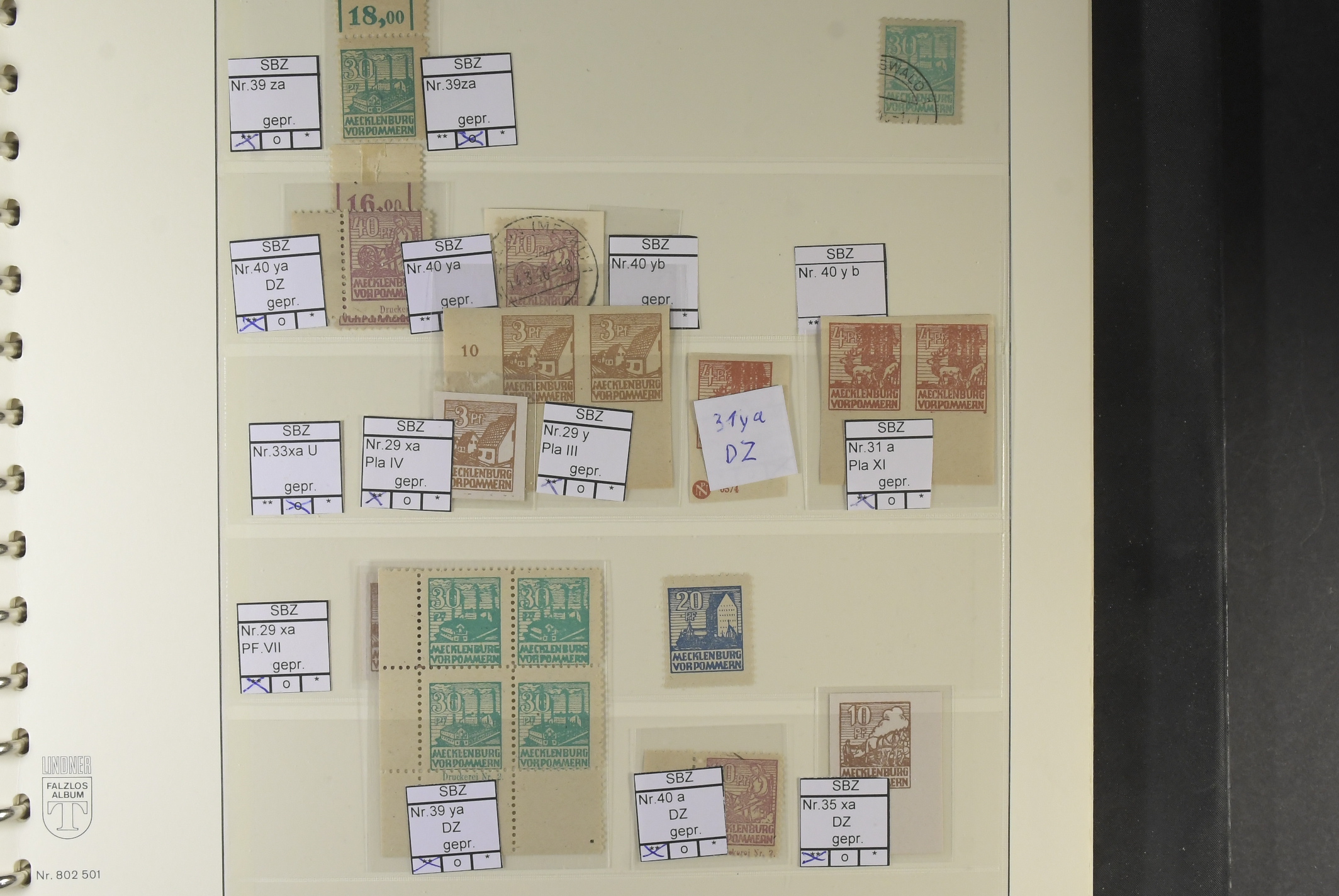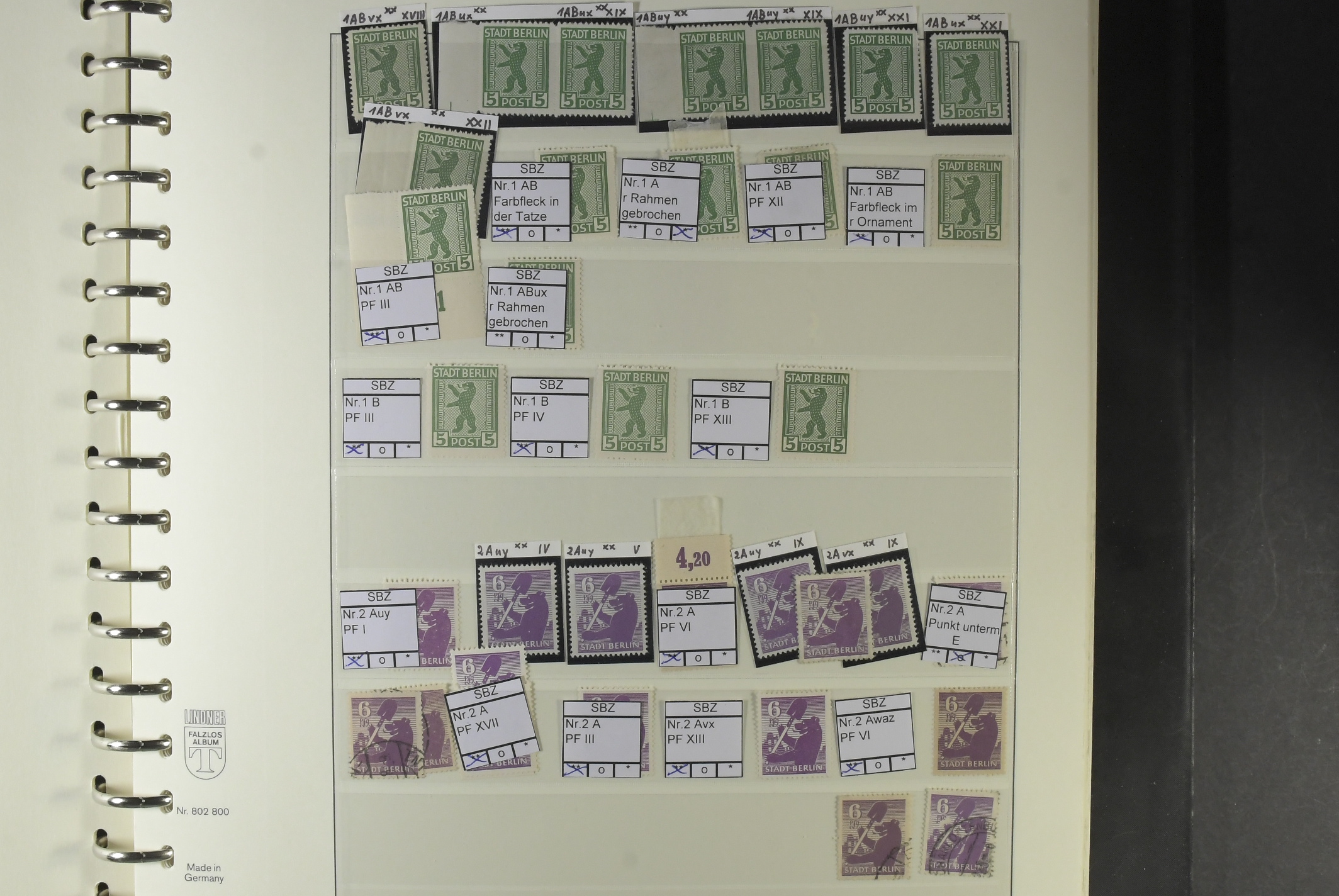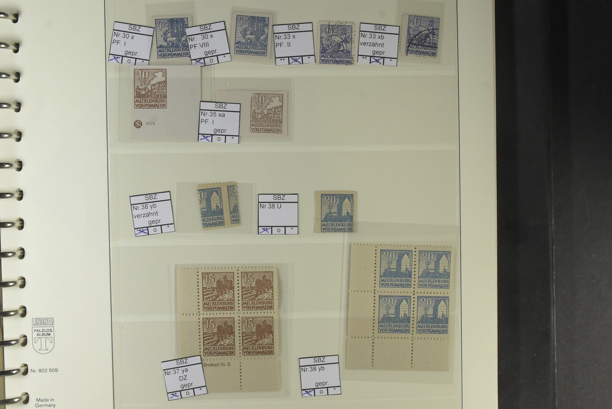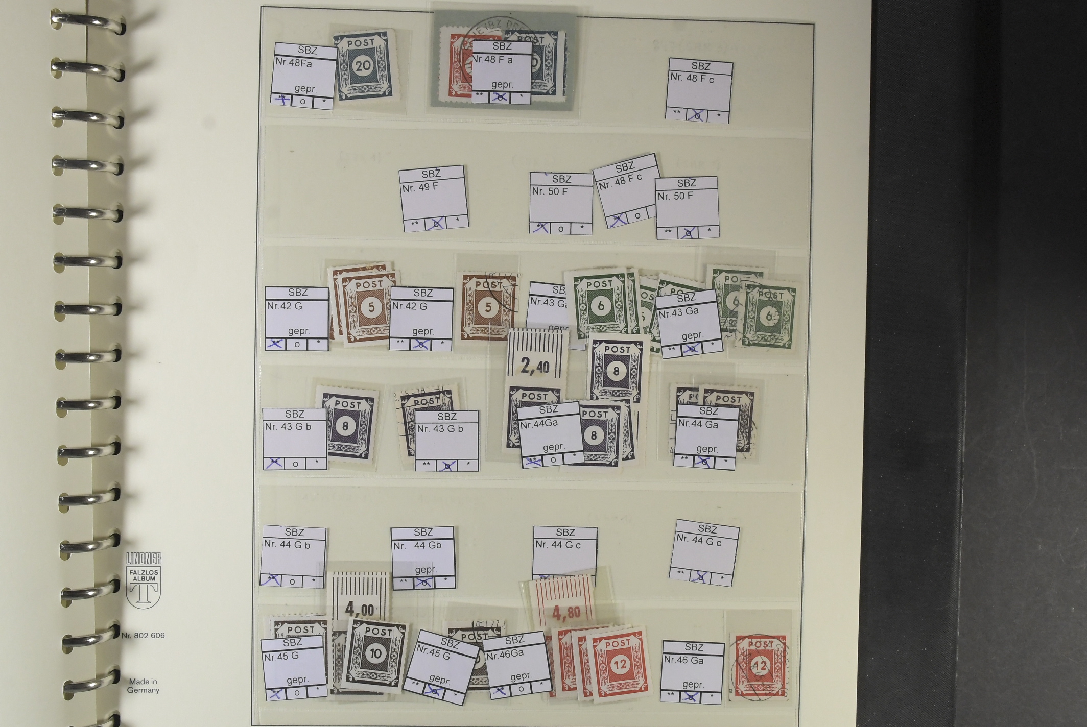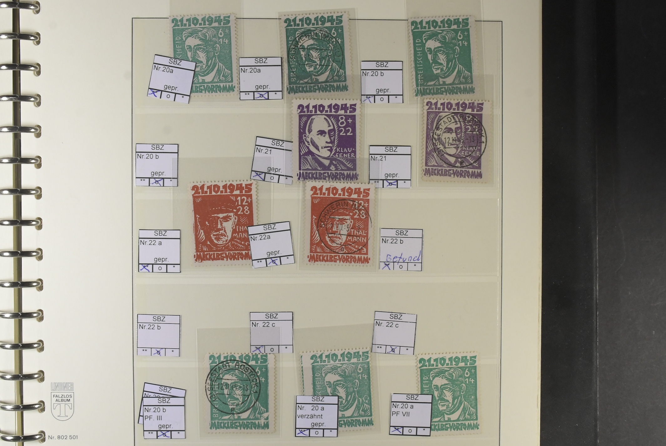 Germany, Soviet zone. Collection/accumulation ★★/⊙. Specialized study of many stamps Mi 1–50 with different shades, watermarks and specialities, all noted in detail on small paper pieces, many signed stamps also noted on the pieces. Excellent opportunity for the specialist. The entire lot is presented at www.philea.se.