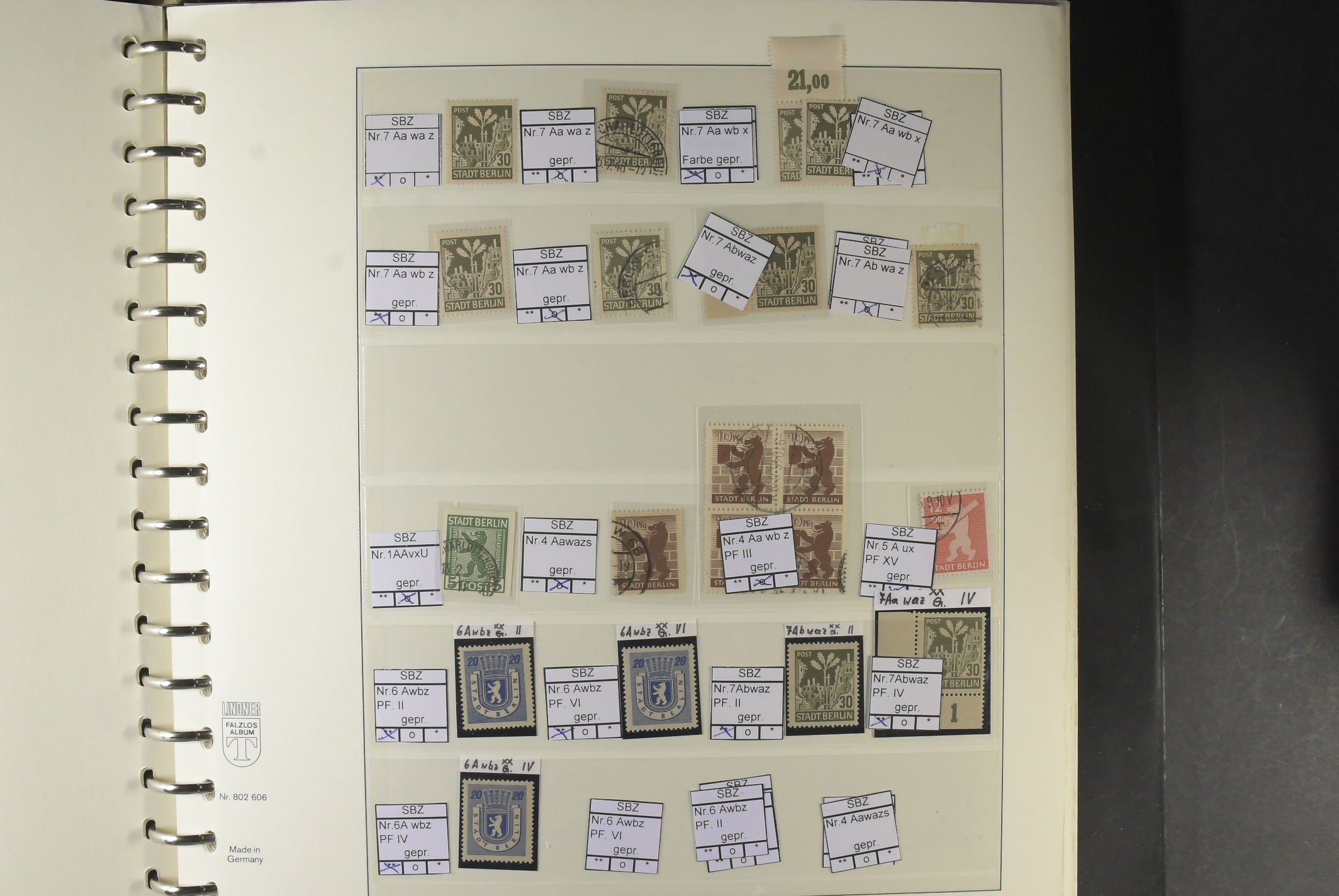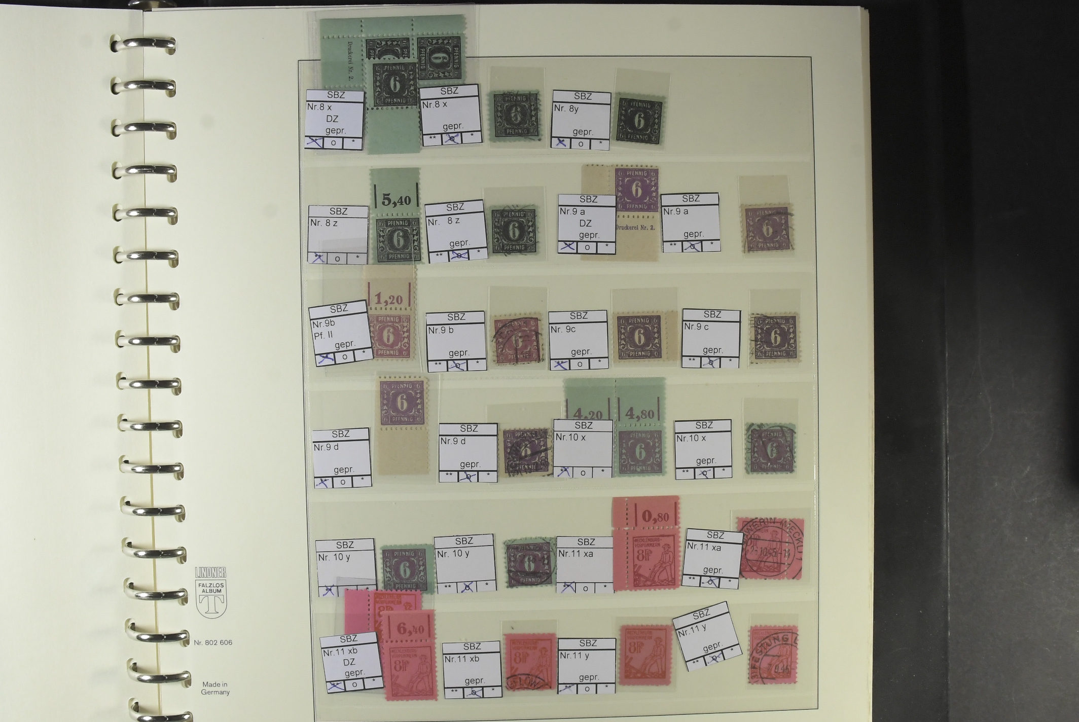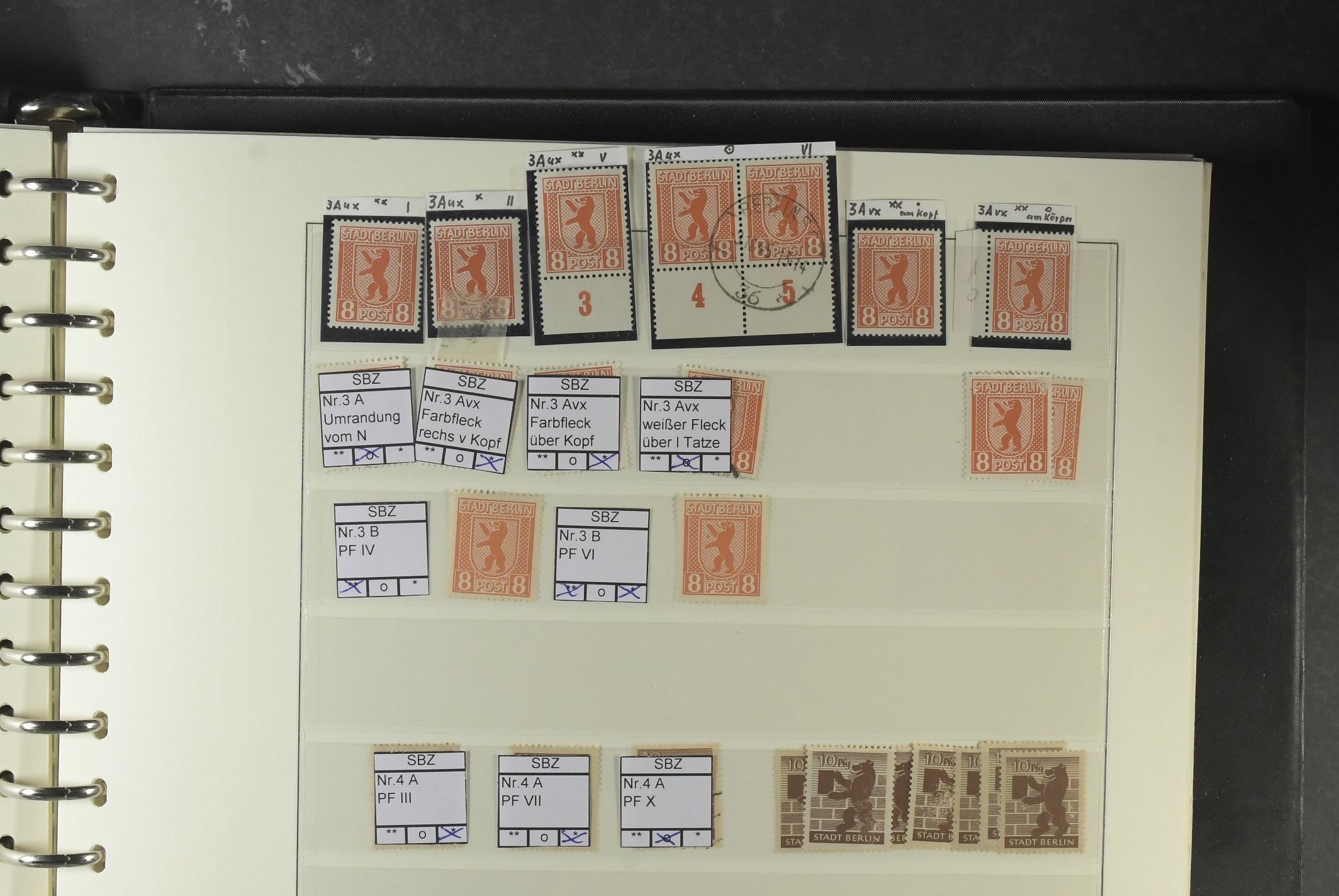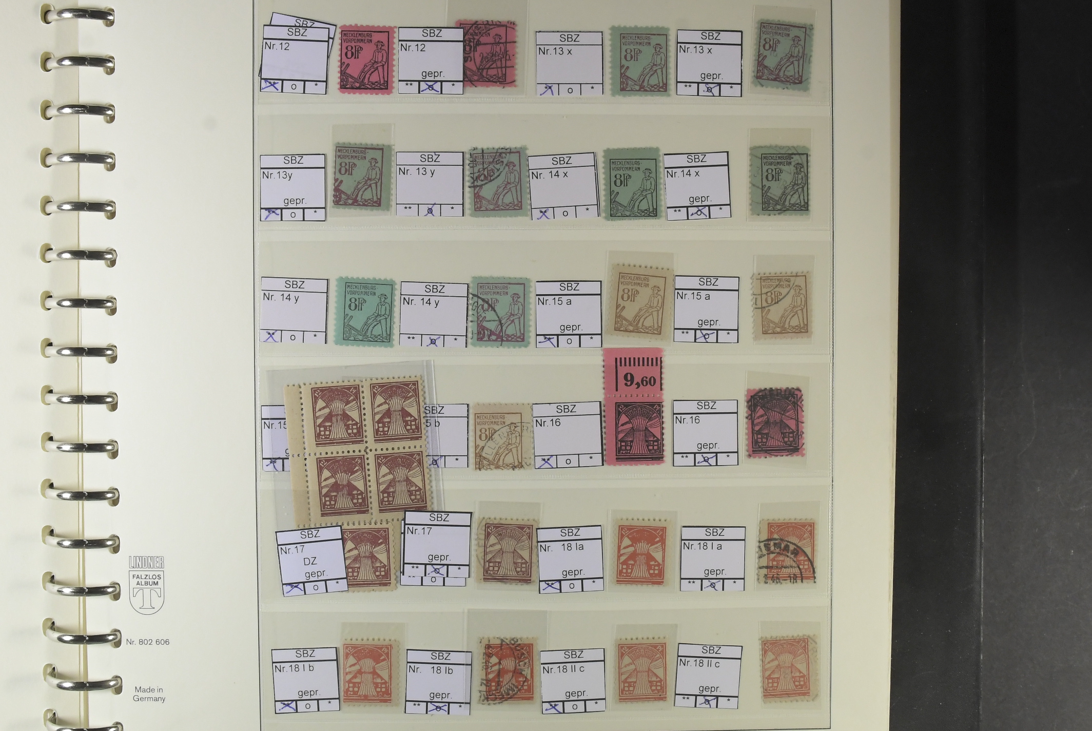 Germany, Soviet zone. Collection/accumulation ★★/⊙. Specialized study of many stamps Mi 1–50 with different shades, watermarks and specialities, all noted in detail on small paper pieces, many signed stamps also noted on the pieces. Excellent opportunity for the specialist. The entire lot is presented at www.philea.se.