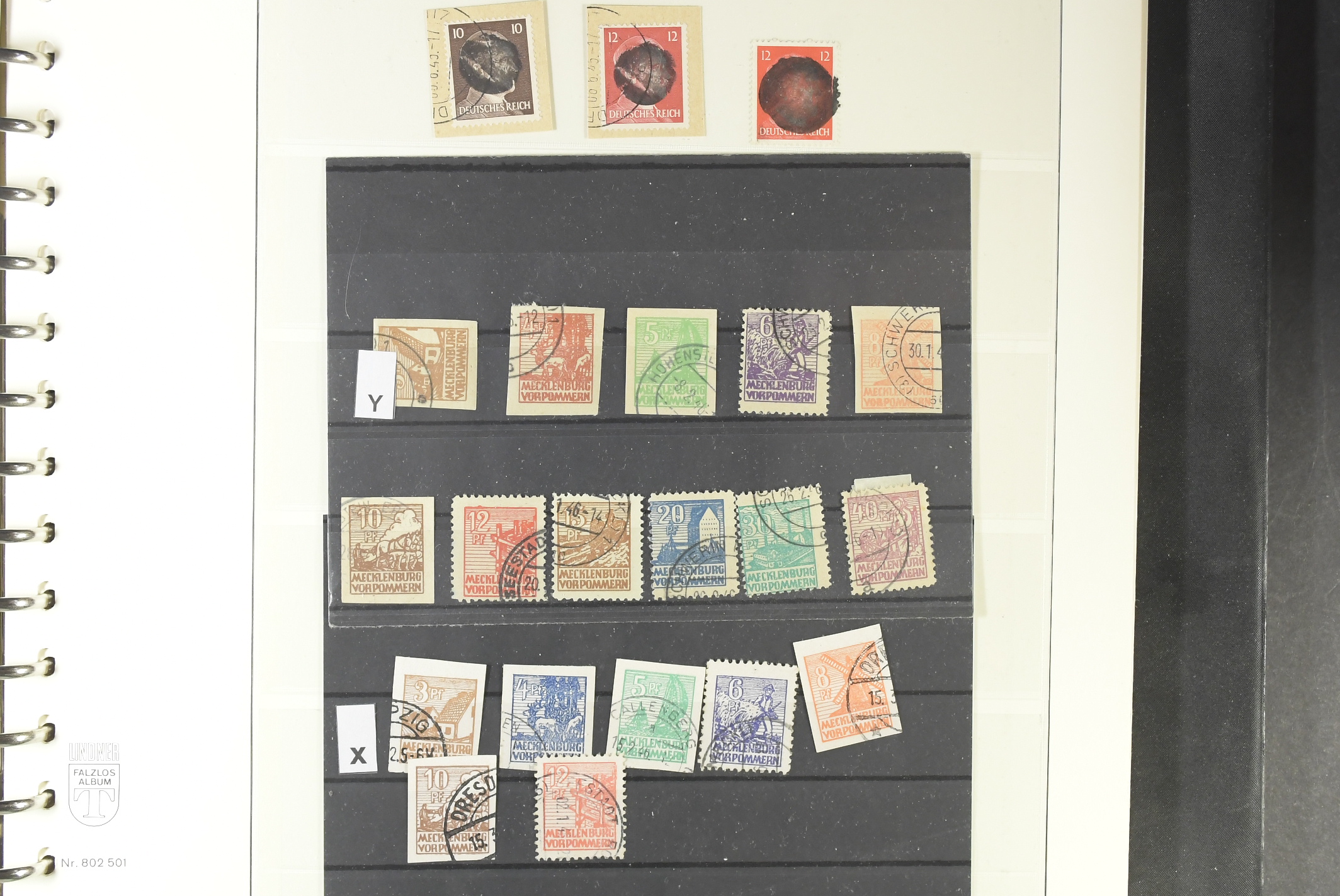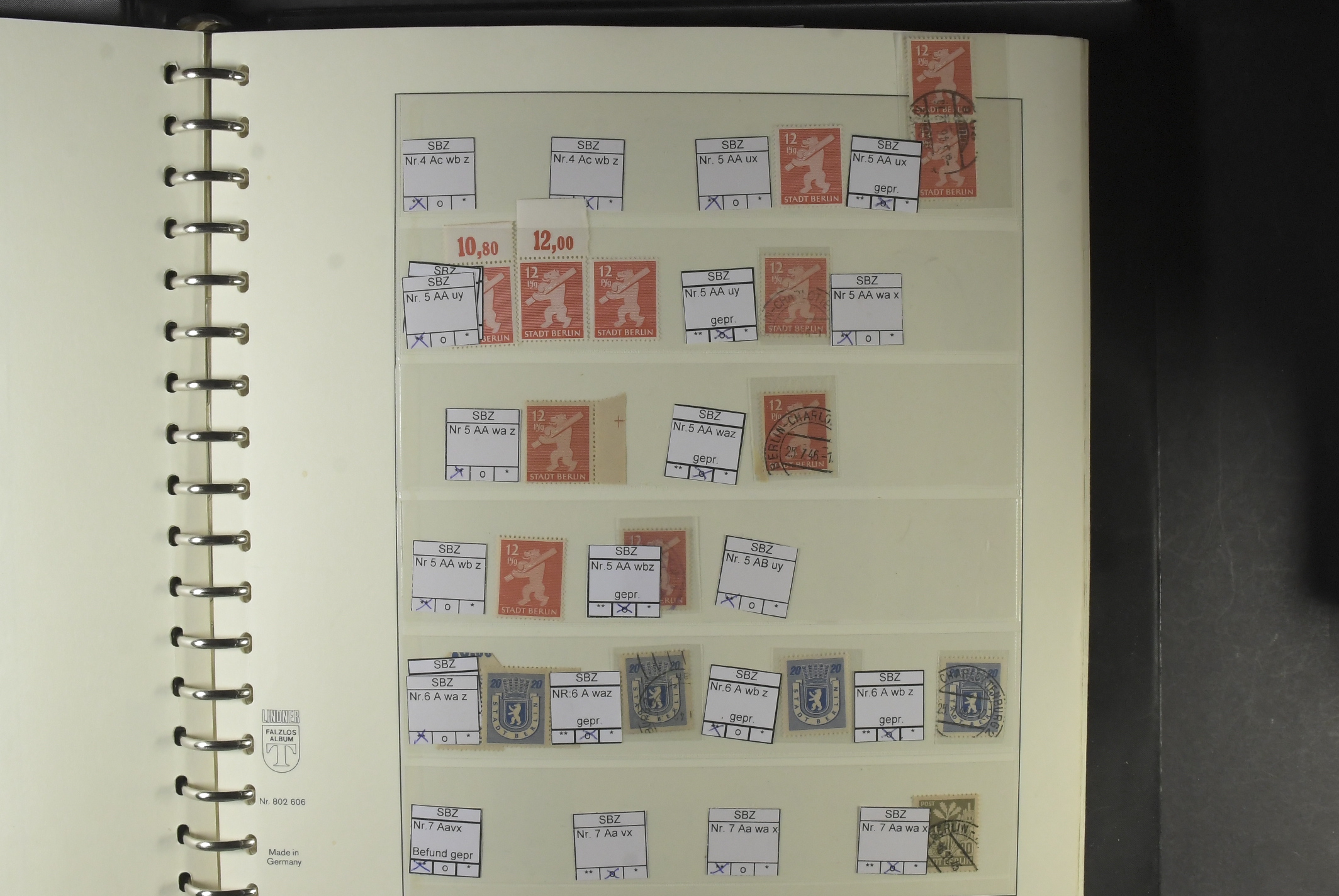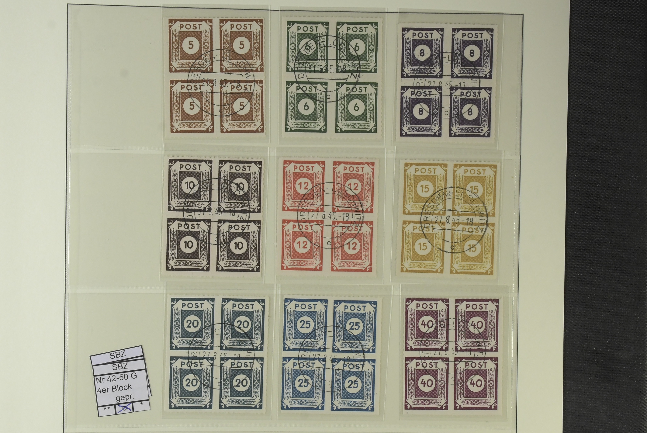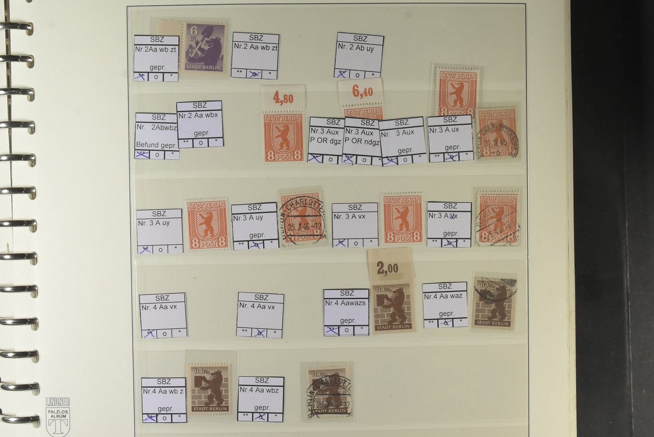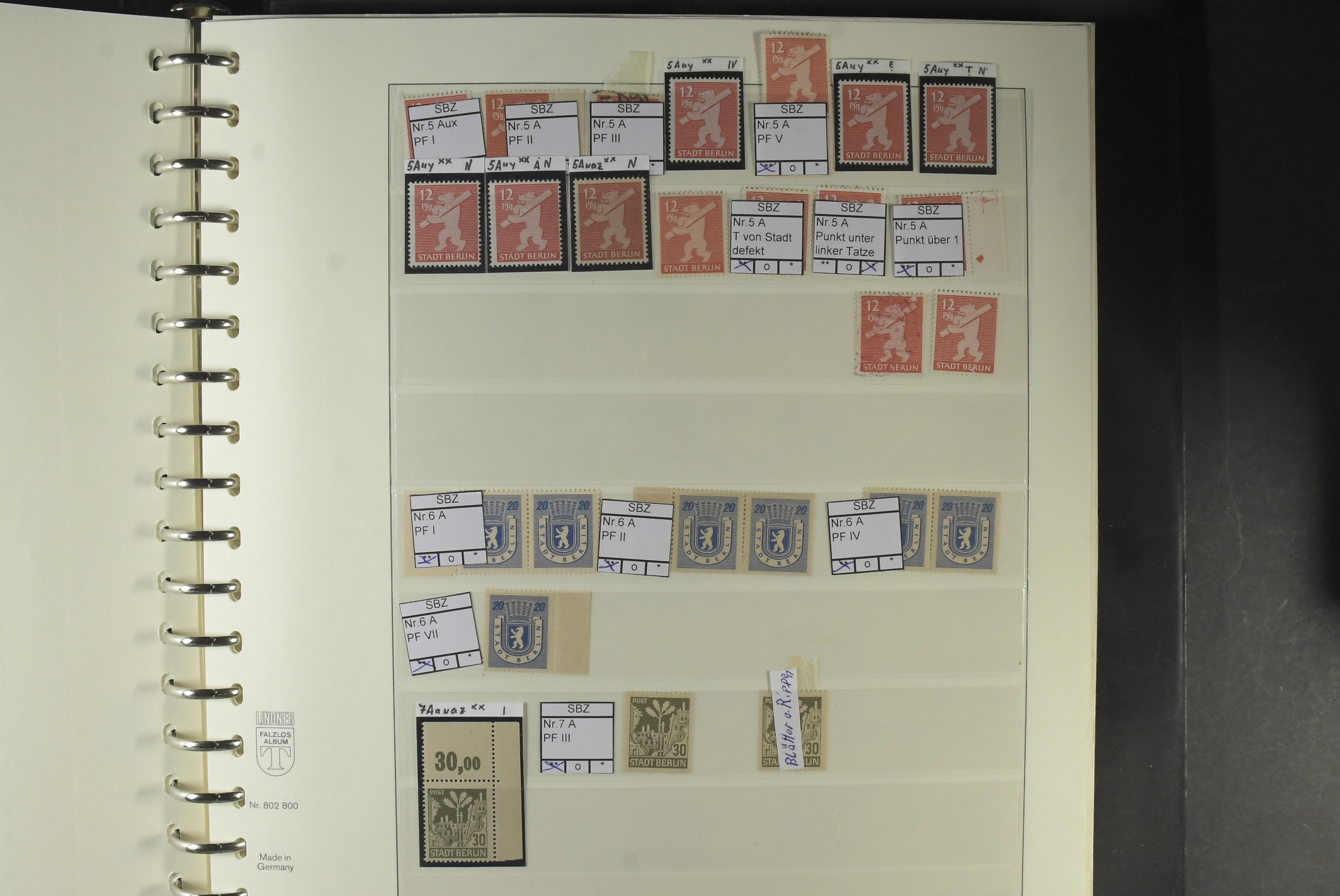 Germany, Soviet zone. Collection/accumulation ★★/⊙. Specialized study of many stamps Mi 1–50 with different shades, watermarks and specialities, all noted in detail on small paper pieces, many signed stamps also noted on the pieces. Excellent opportunity for the specialist. The entire lot is presented at www.philea.se.