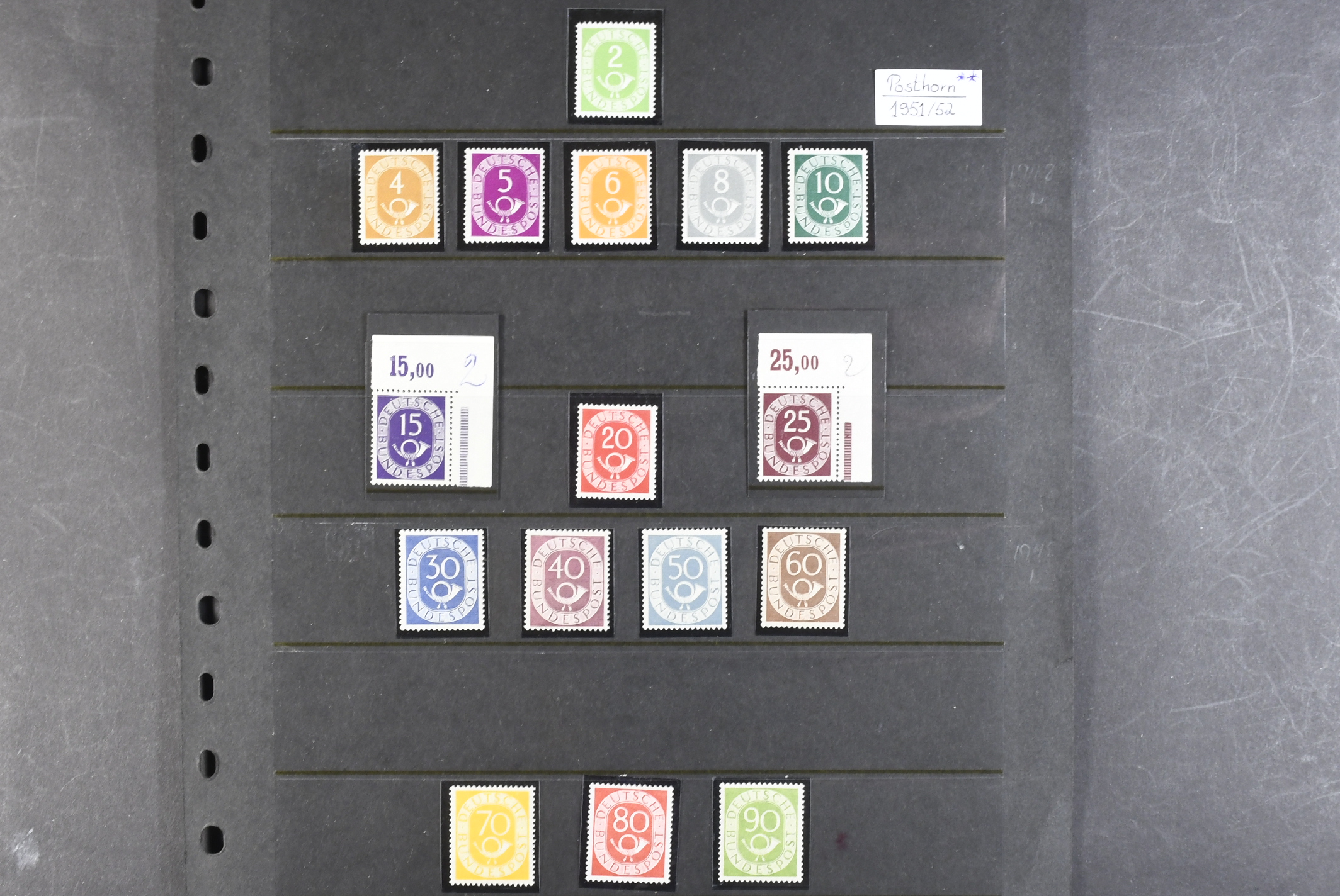 Germany, GFR (BRD). Michel 123–38 ★★, 1951 Posthorn SET (16). Very fine, 15 and 25 pf with upper right corner margin. EUR 2200