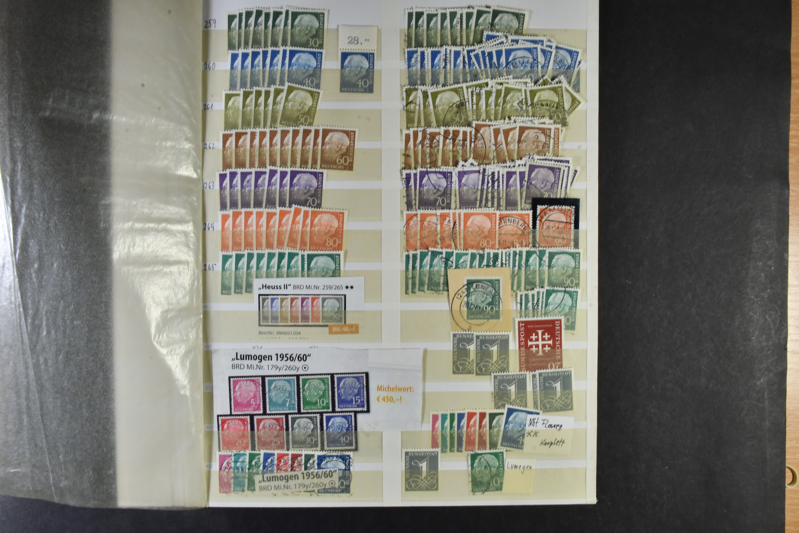 Germany, GFR (BRD). Accumulation ★★/★/⊙ 1949–ca1960 on leaves. The first years of GFR well filled with both mint (mostly **) and used stamps with many better stamps and sets in numbers. Please see a selection of scans at www.philea.se. Good quality. (1000s)