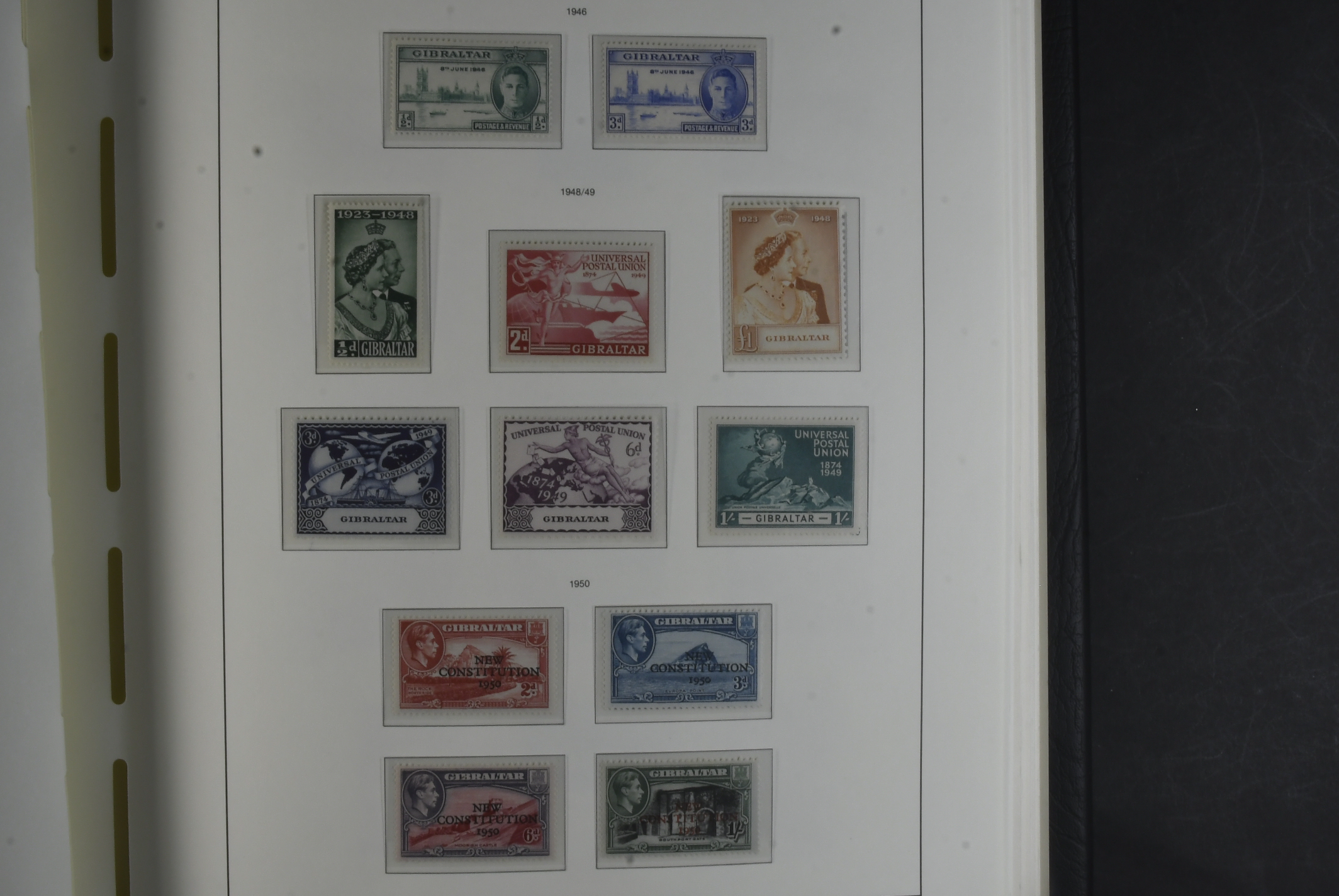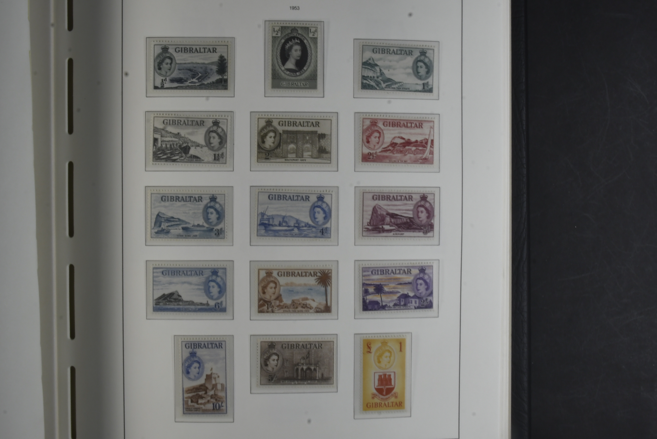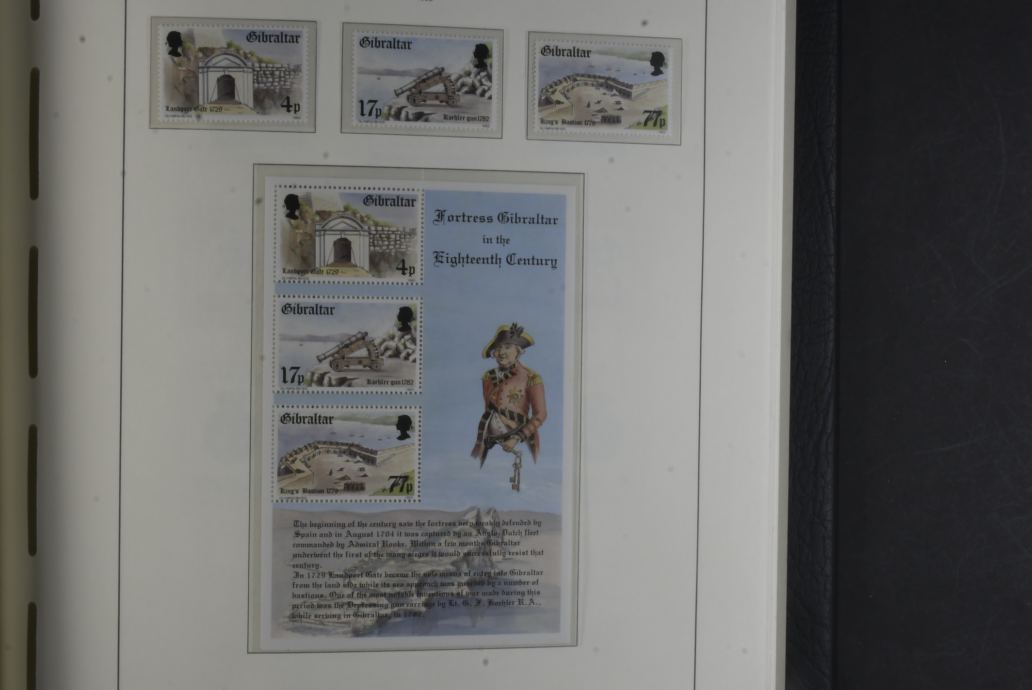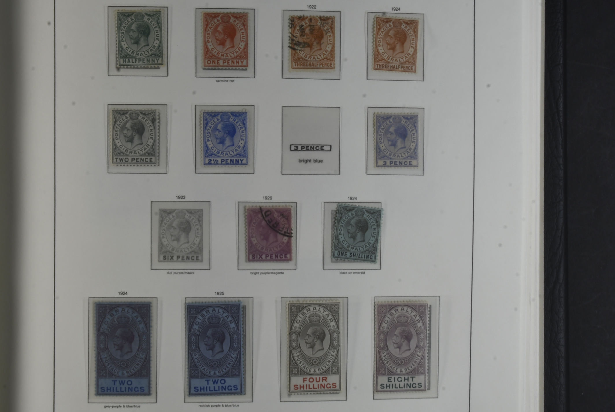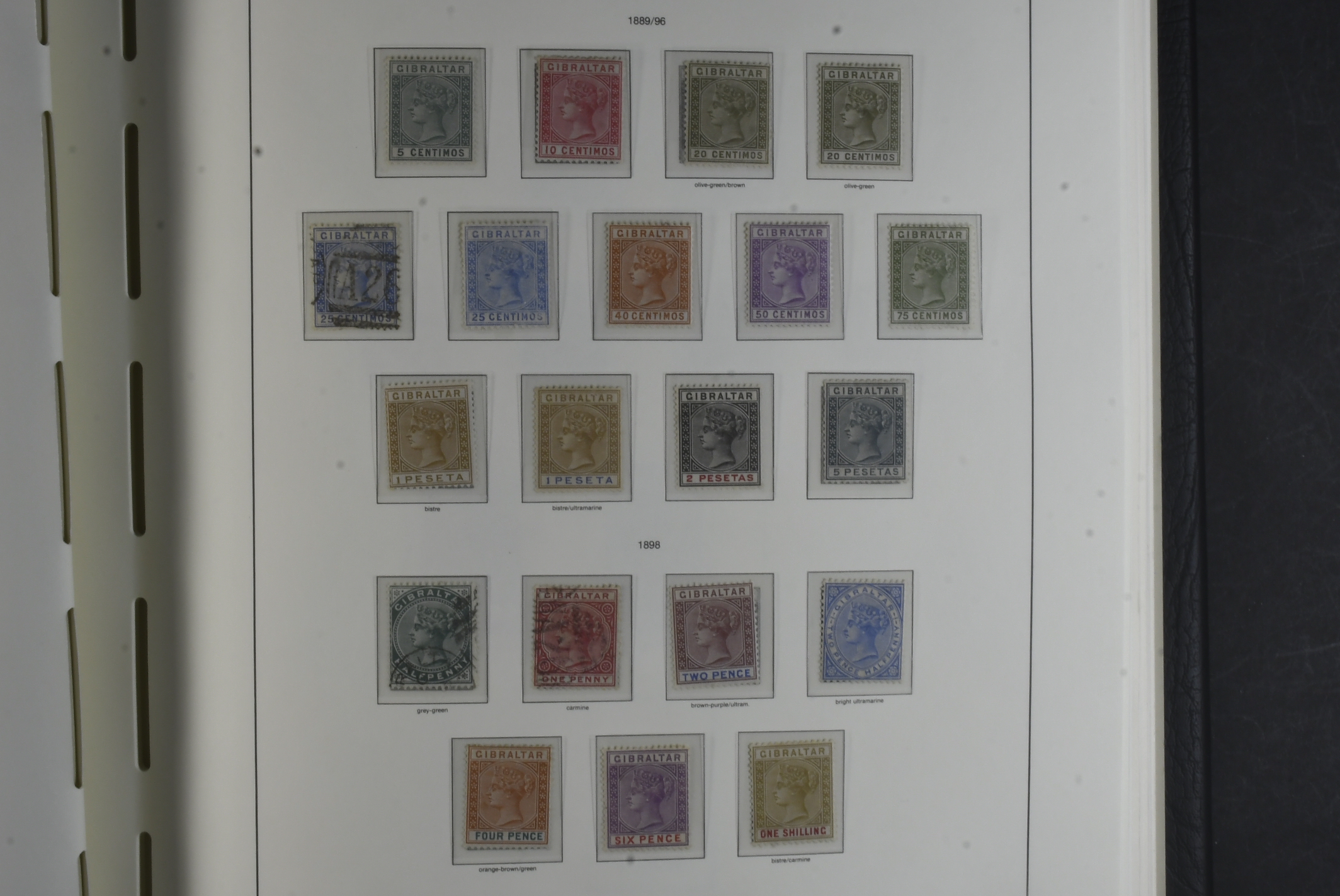 Gibraltar. Collection ★★/★/⊙ 1886–1993 in Leuchtturm album with stamp mounts. Well filled before 1971 mostly mint with some used after 1971 mostly UM incl. better stamps e.g. SG 6*, 12–14*, 19–20*, 21¤, 22–33*, 41–45*, 52–53*, 99–101*. 107*, 122–131*, 135, 145–148*. Please see a selection of scans at www.philea.se. Good quality.