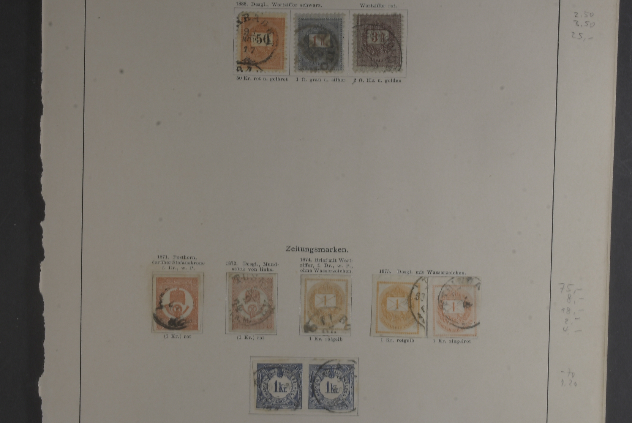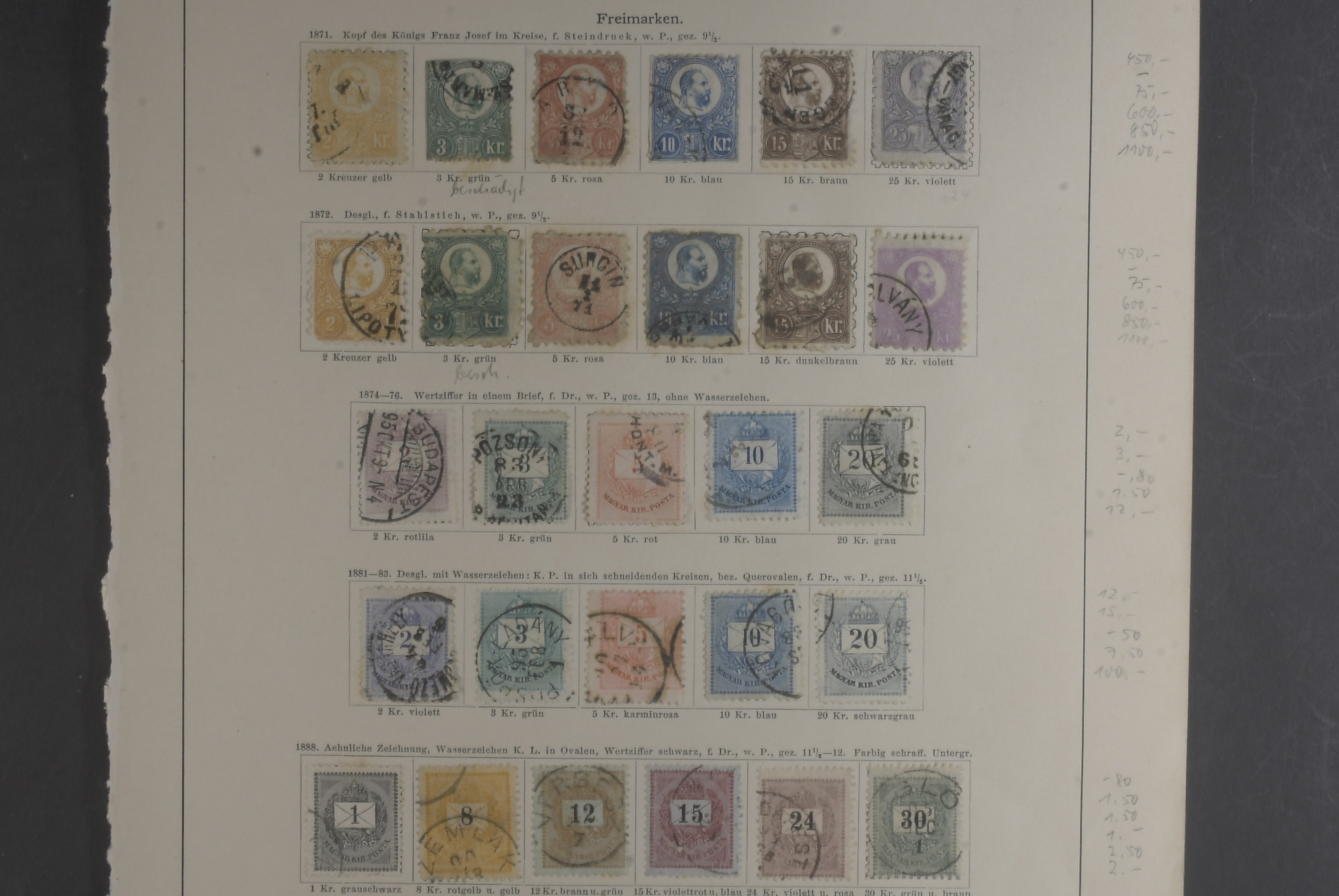 Hungary. Accumulation used 1871–1888 on two old leaves. All stamps here but in mixed quality.