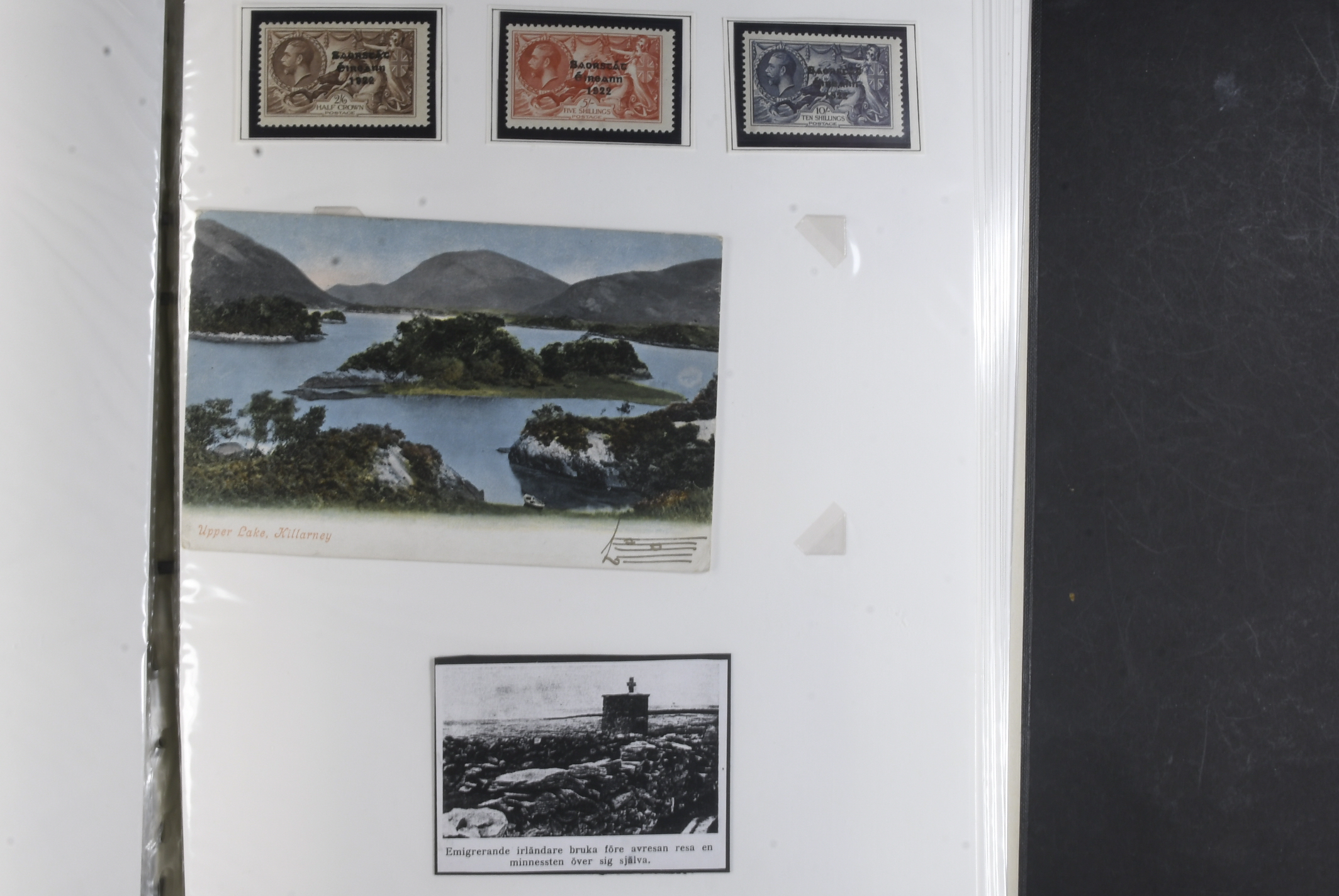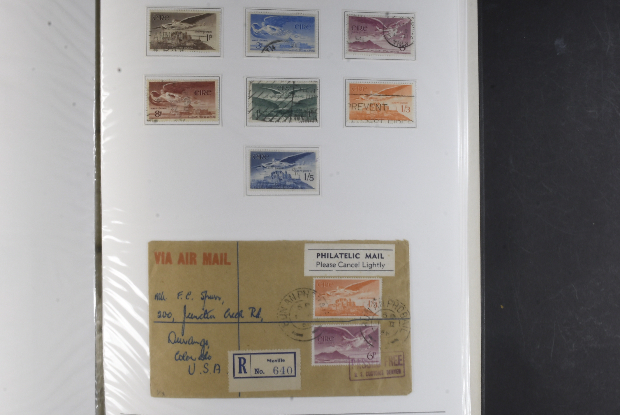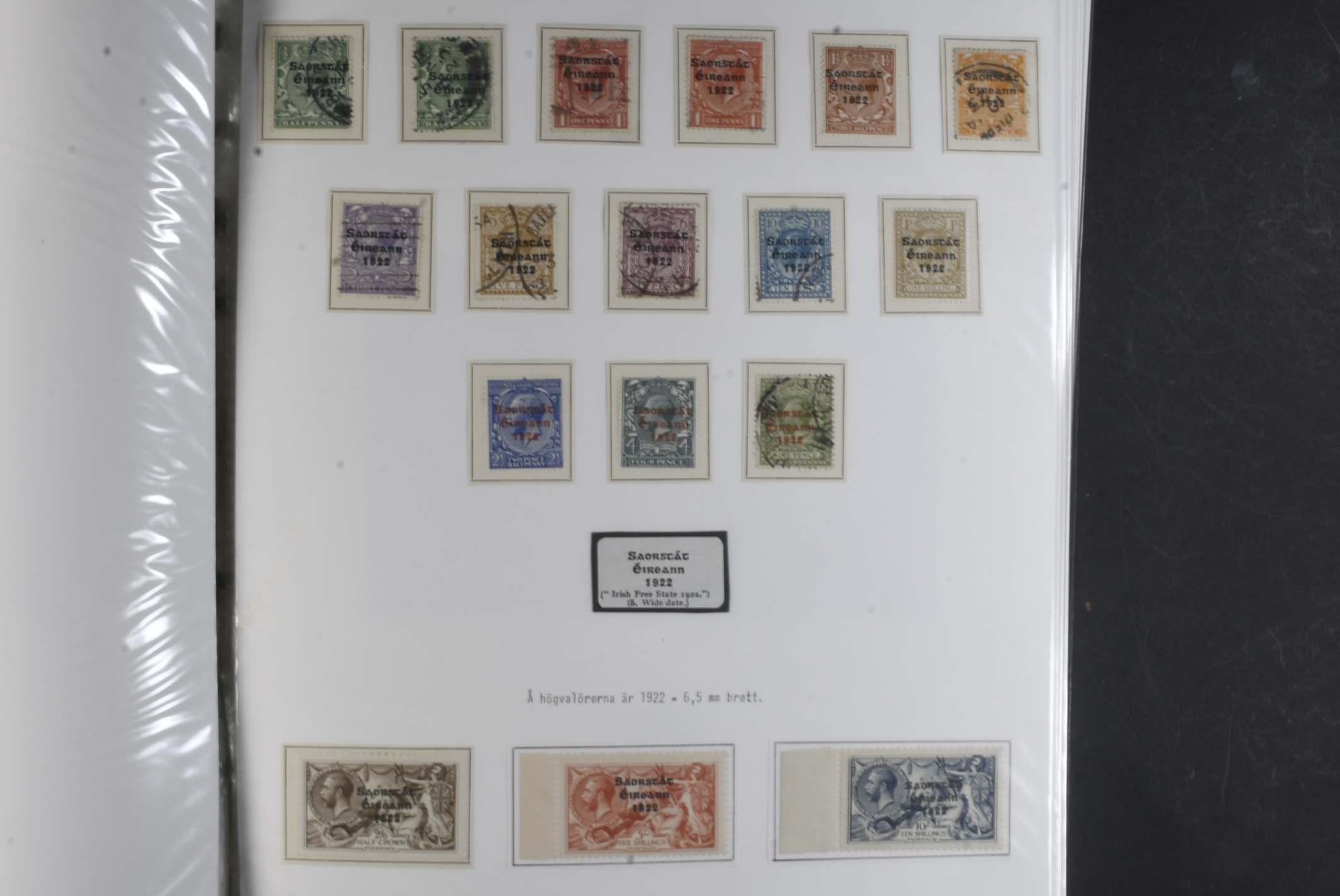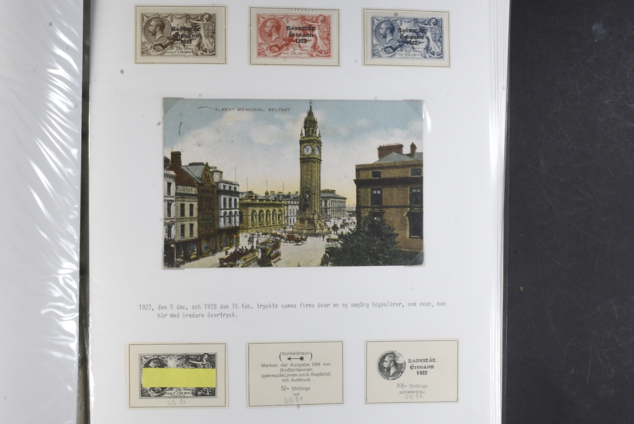 Ireland. Collection ★★/★/⊙ 1841–1972 in two albums. Nicely written up. Starts with 5 QV entires and one postal card and then eight postcards from the KEVII and KGV period. Ireland stamp period well filled with many high value stamps and on every page there is also one cover/card from the same issue. Inspection is recommended. Please see a selection of scans at www.philea.se. Mostly fine quality. (250 stamps + 200 covers/cards)