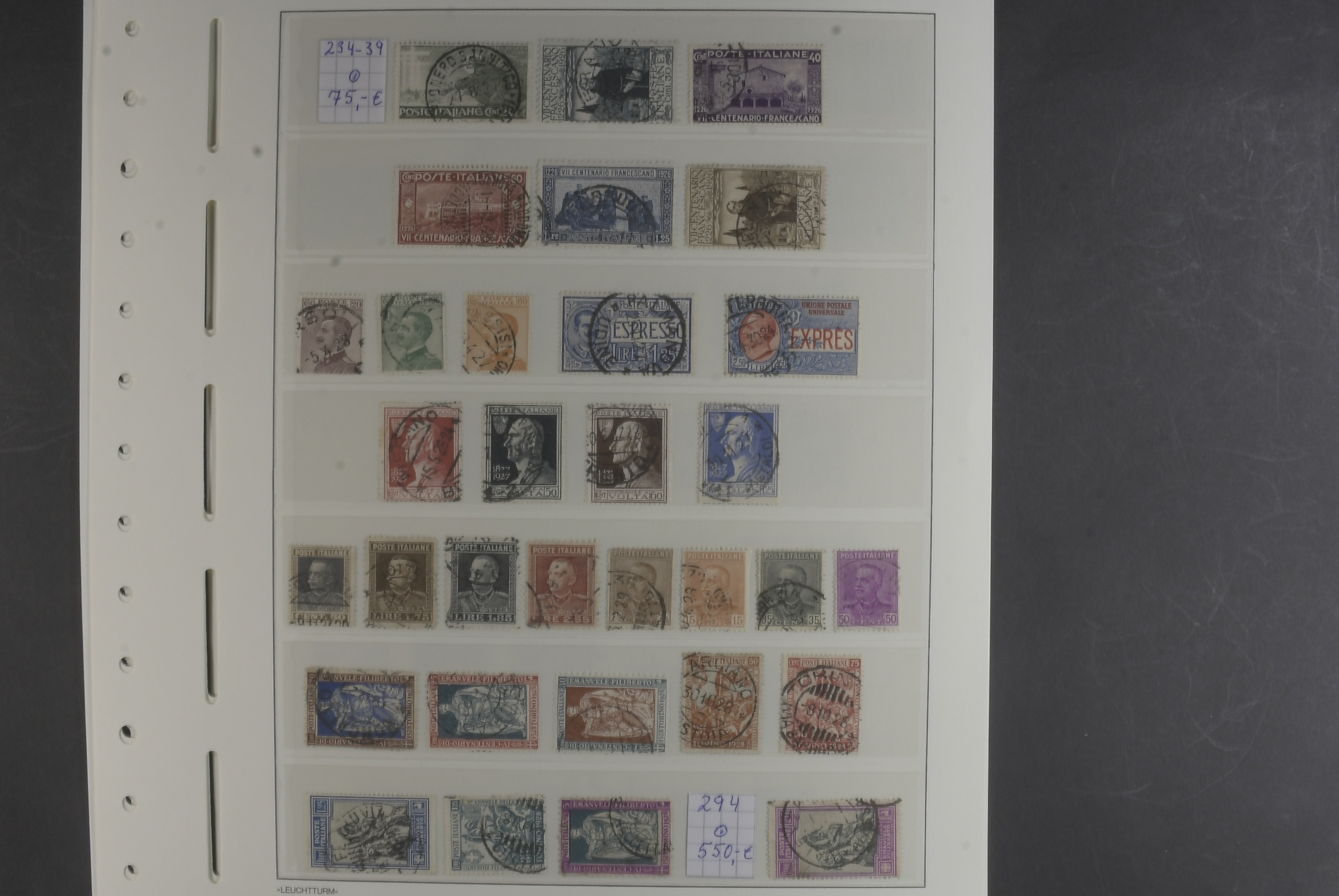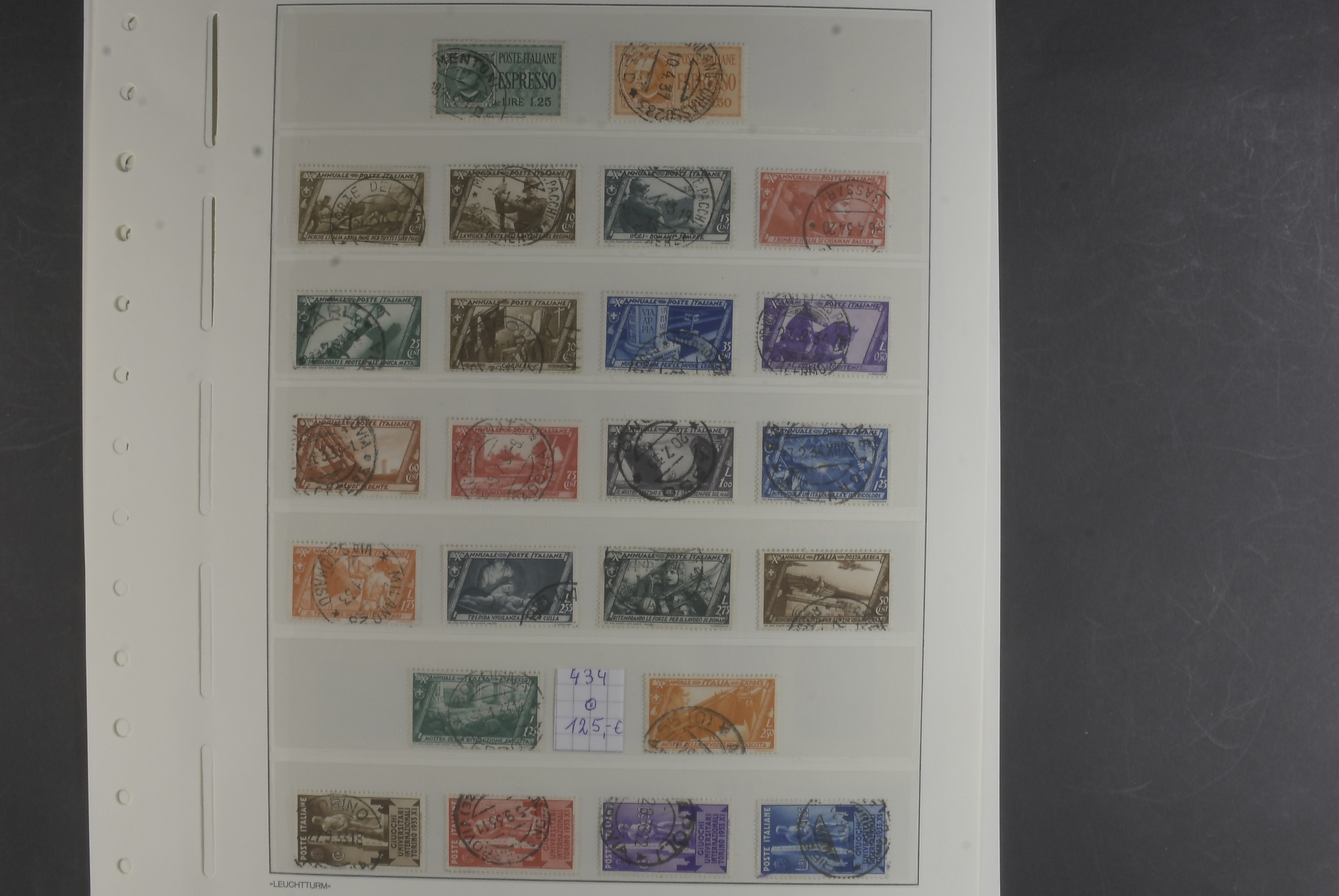Italy. Accumulation used classic–1954 on 17 leaves. Several better stamps here. Please see a selection of scans at www.philea.se. Mostly fine quality.
