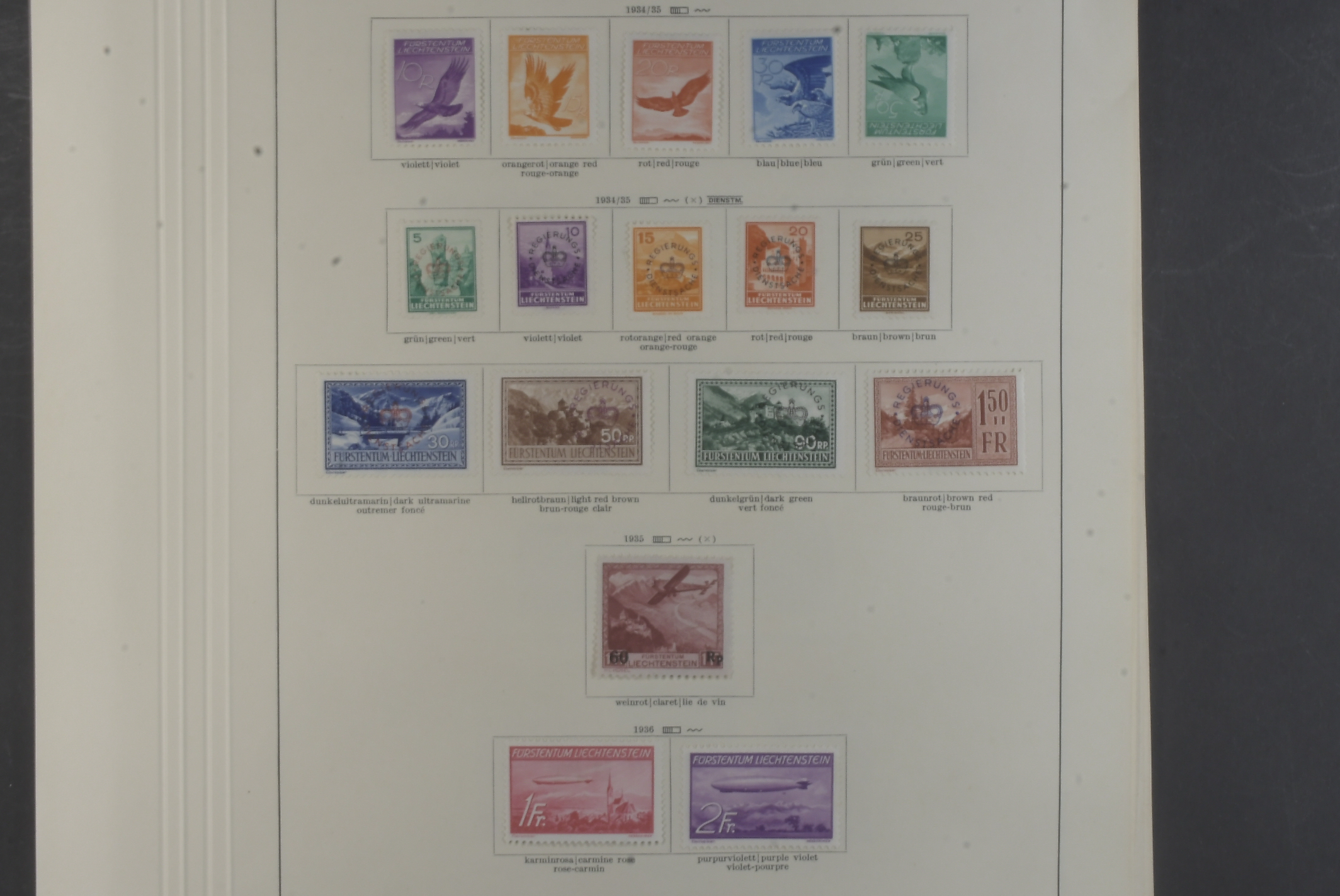 Liechtenstein. Collection ★/⊙ 1912–56 on Schaubek leaves. Almost complete mixed used and mint missing only one s/s. Very high catalogue value with e.g. Mi 1–3, 523–60 used, 71–93 *, 94–117 used/*, 108–115 partly pasting, 119–21 used, 140–42 *, 141 used. Also S/S 5 **. Please see a selection of scans at www.philea.se. Mostly fine quality.