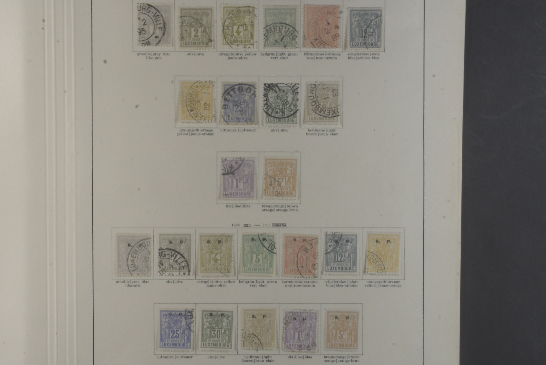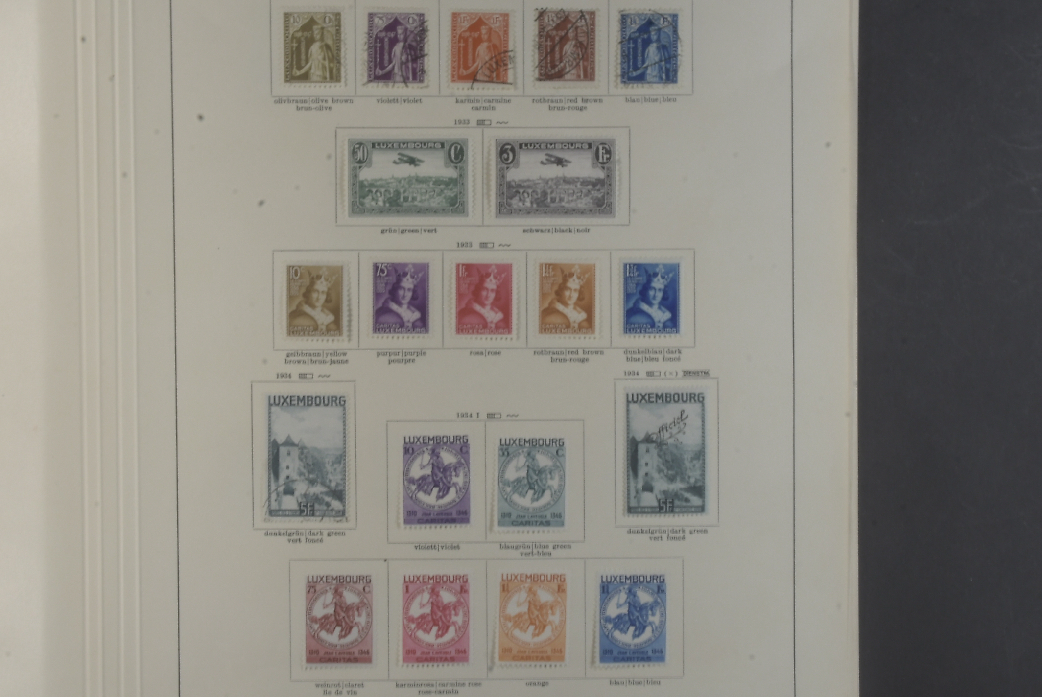 Luxembourg. Collection ★/⊙ 1852–1956 on Schaubek leaves. Many better stamps here, e.g. Mi 1–2, 4, 10, 14 (2), 16–23, 26, 45–46, 82–83, 148-51 fine used and s/s 3 **. Also a good part officials with e.g. 8 II * signed. Not many emmty spaces! Recomended. Mostly fine quality.