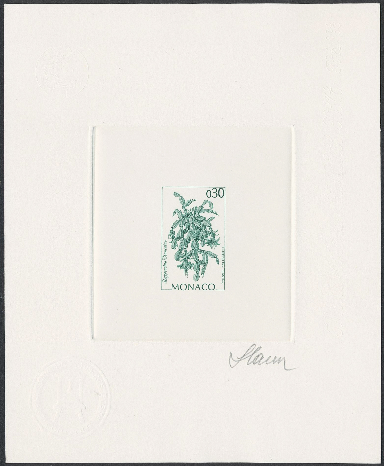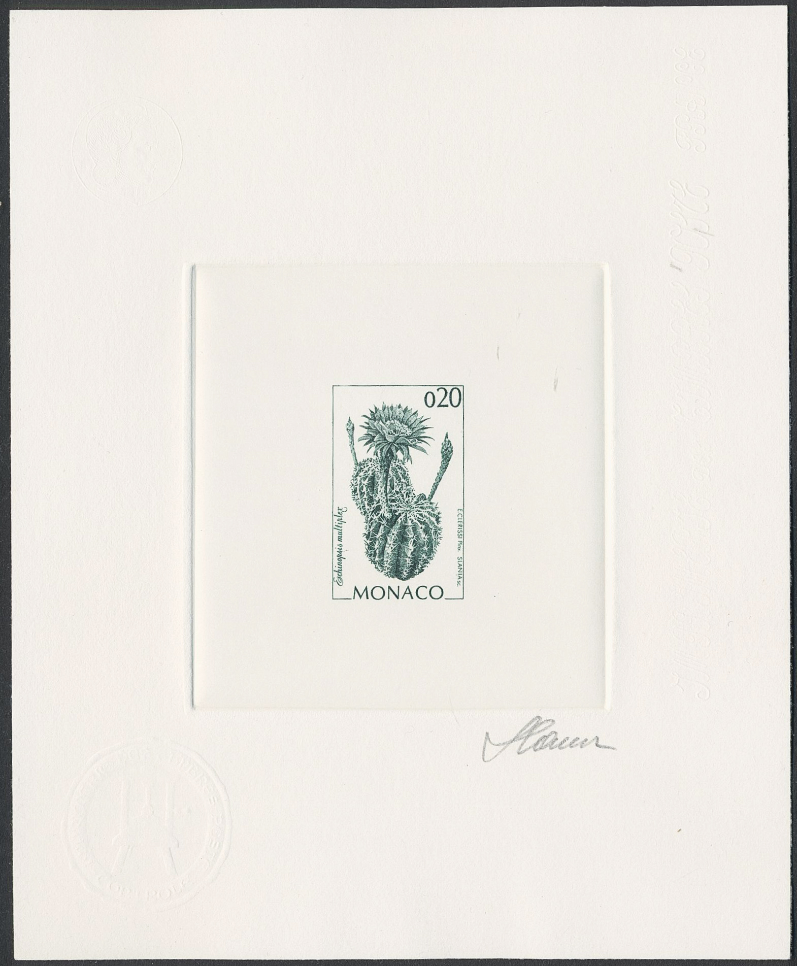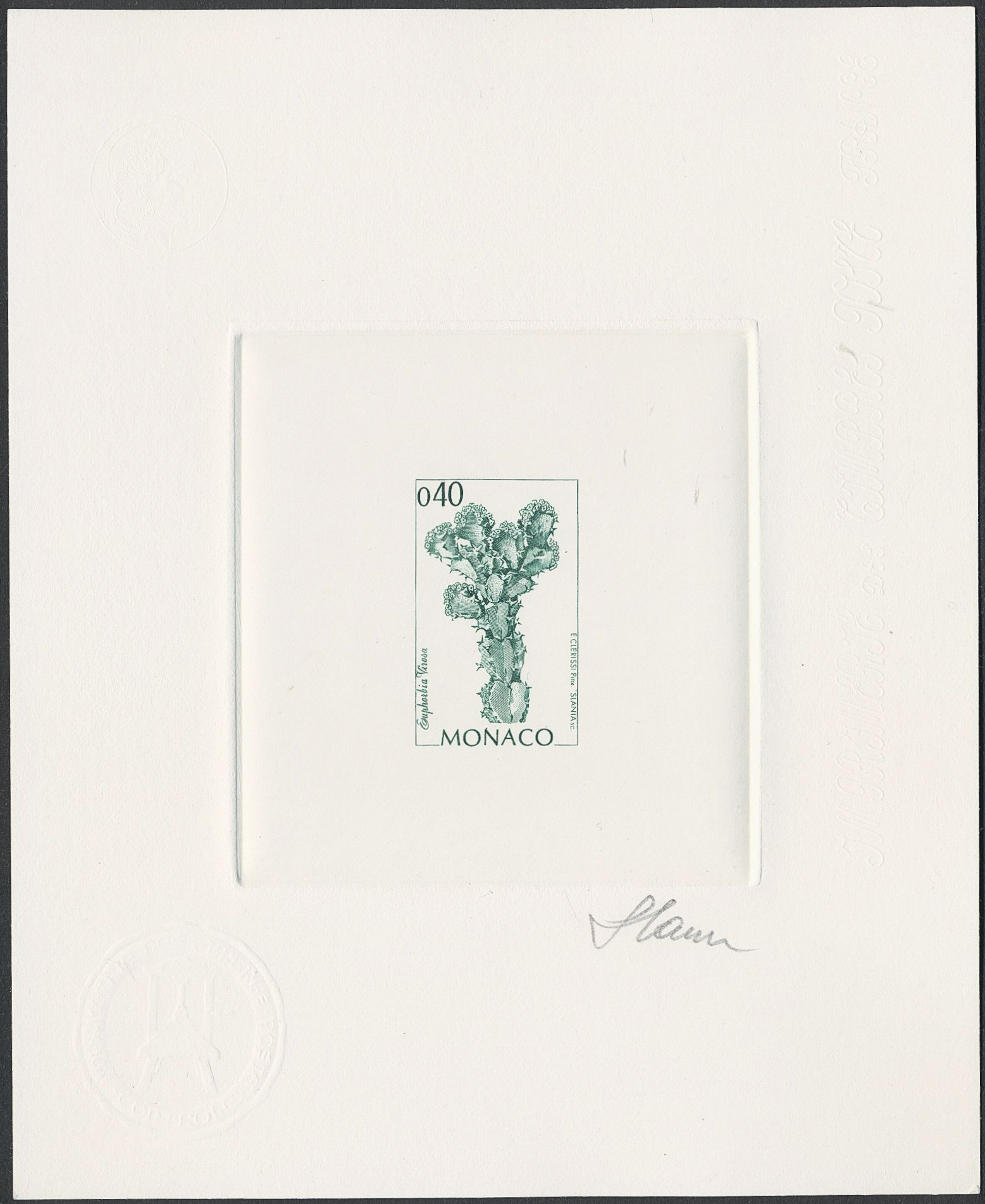Monaco. Michel 2158–61 (★), 1994 Succulents SET (4). Plate proofs in green. All signed "Slania".