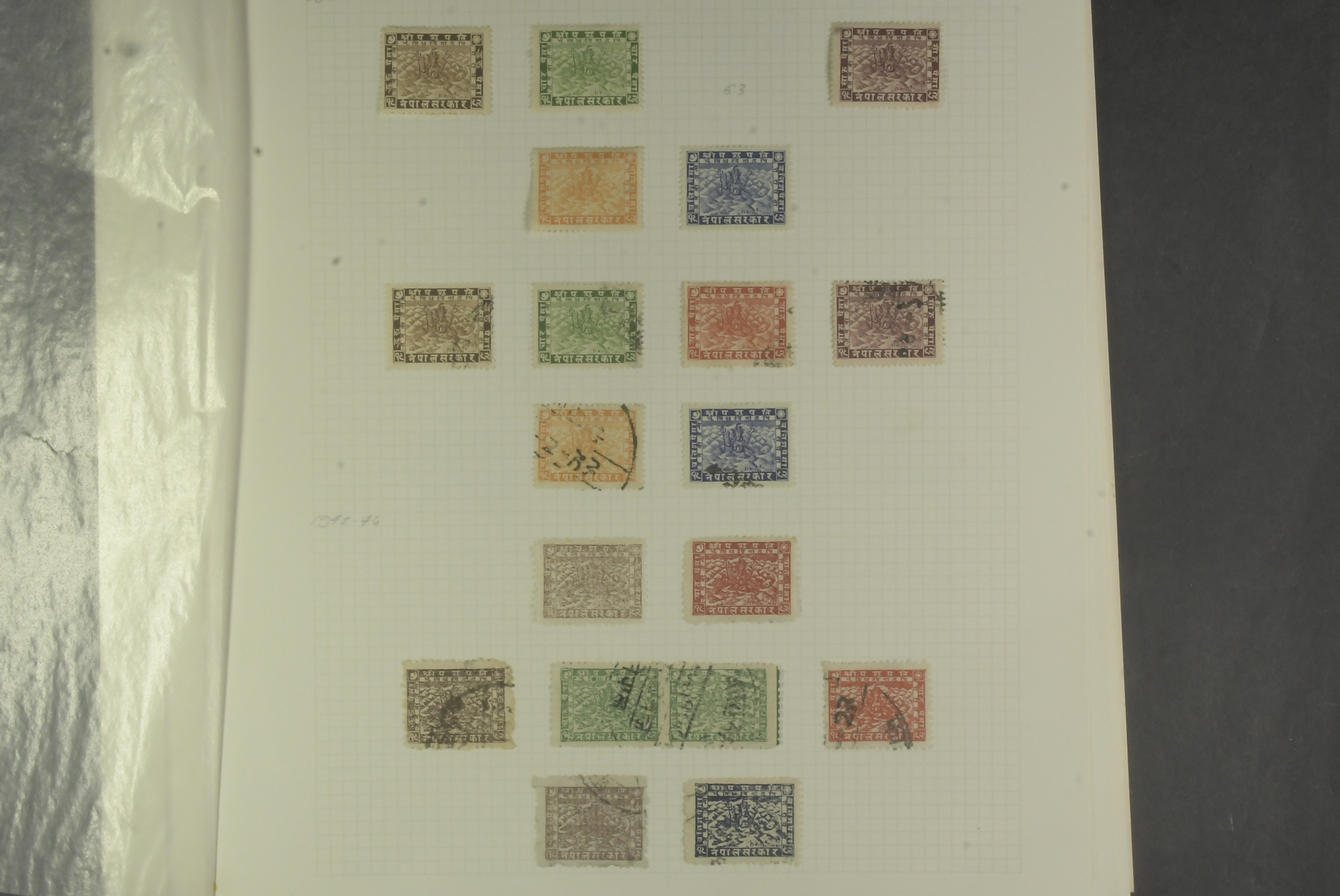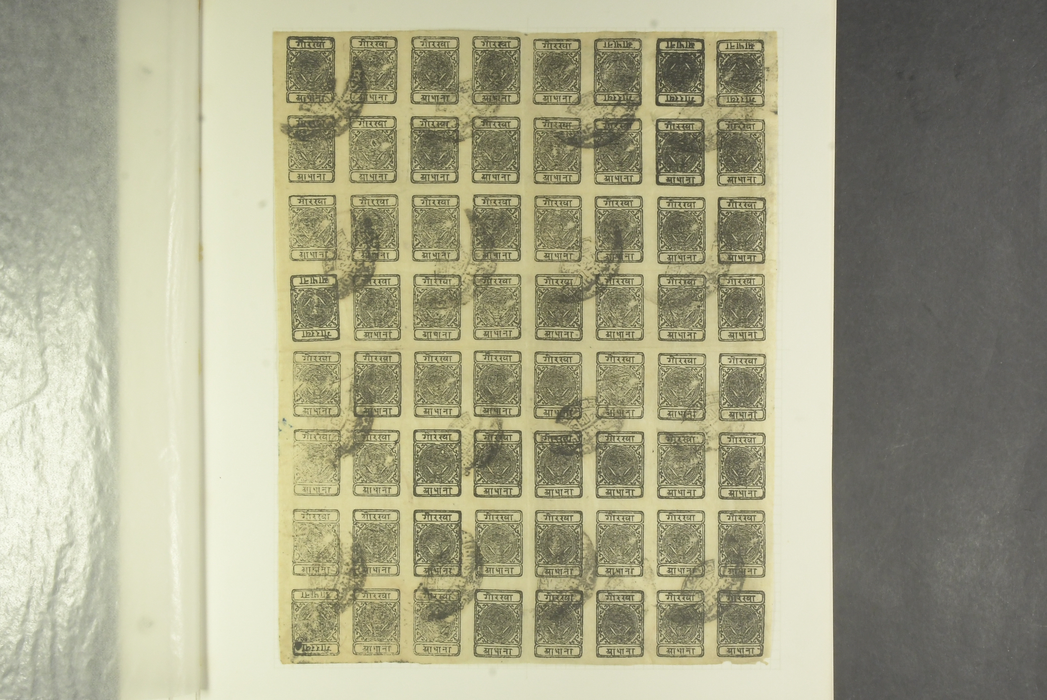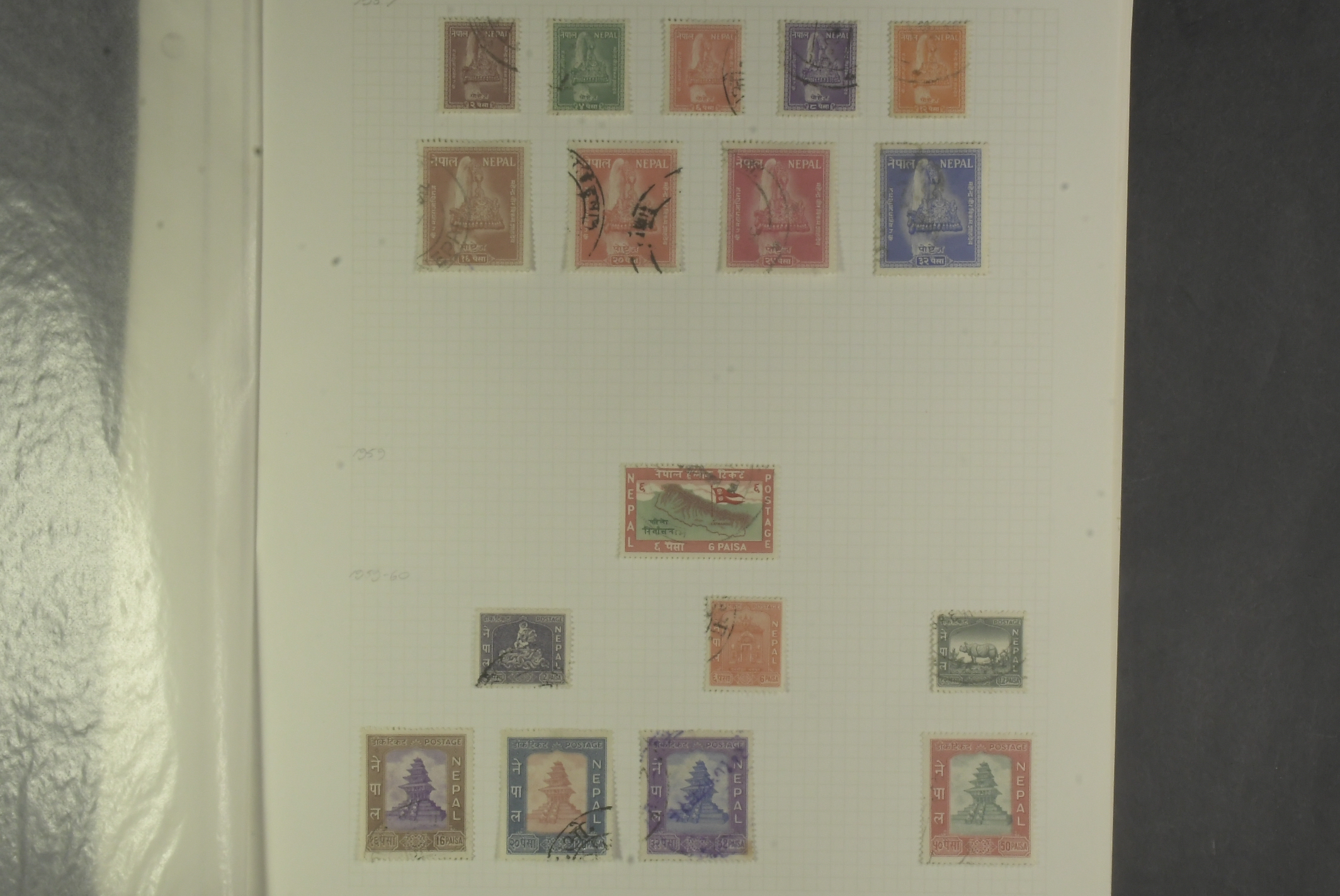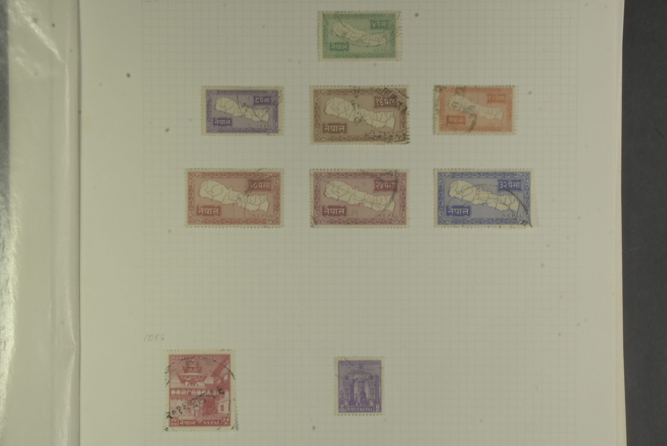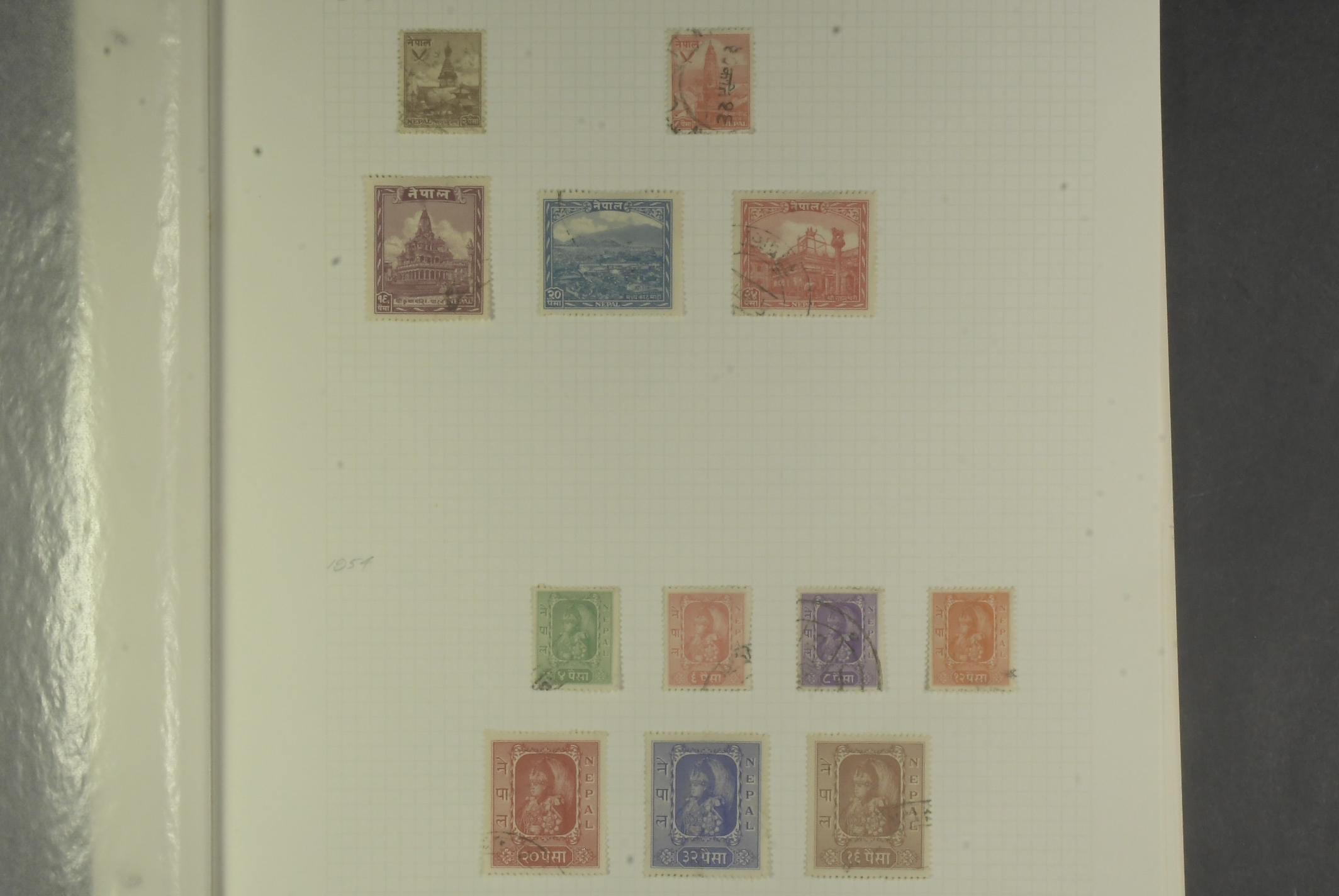 Nepal. ★/⊙. A good old time collection housed on quadrille album leaves, mint and used. The first page sets the pace with 28 examples of the cut squares imperf, all with generous margins, quite probably all one a kind with at least 10 mint. The next page consists of multiples of these issues including used blocks of four and pairs tete-beche, yet further imperfs require classification, followed by a sheet of 64 used of the rectangular black definitives, leading onto various diffferent types of high values etc., etc. There are many very scarce items here especially in the first three pages. We have not had a chance to study these properly and the collection is offered as received, an outstanding opportunity with many potential individual items present.