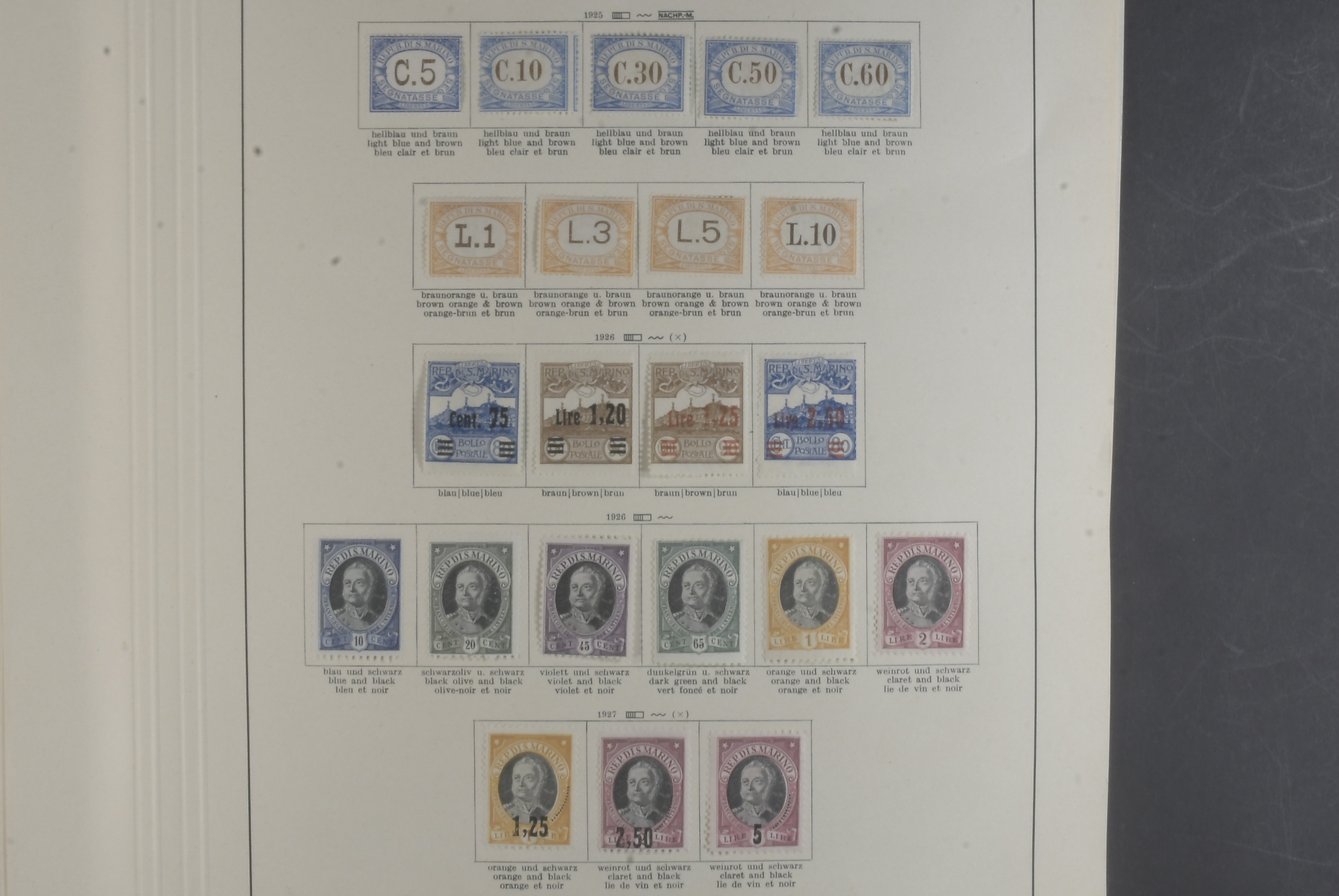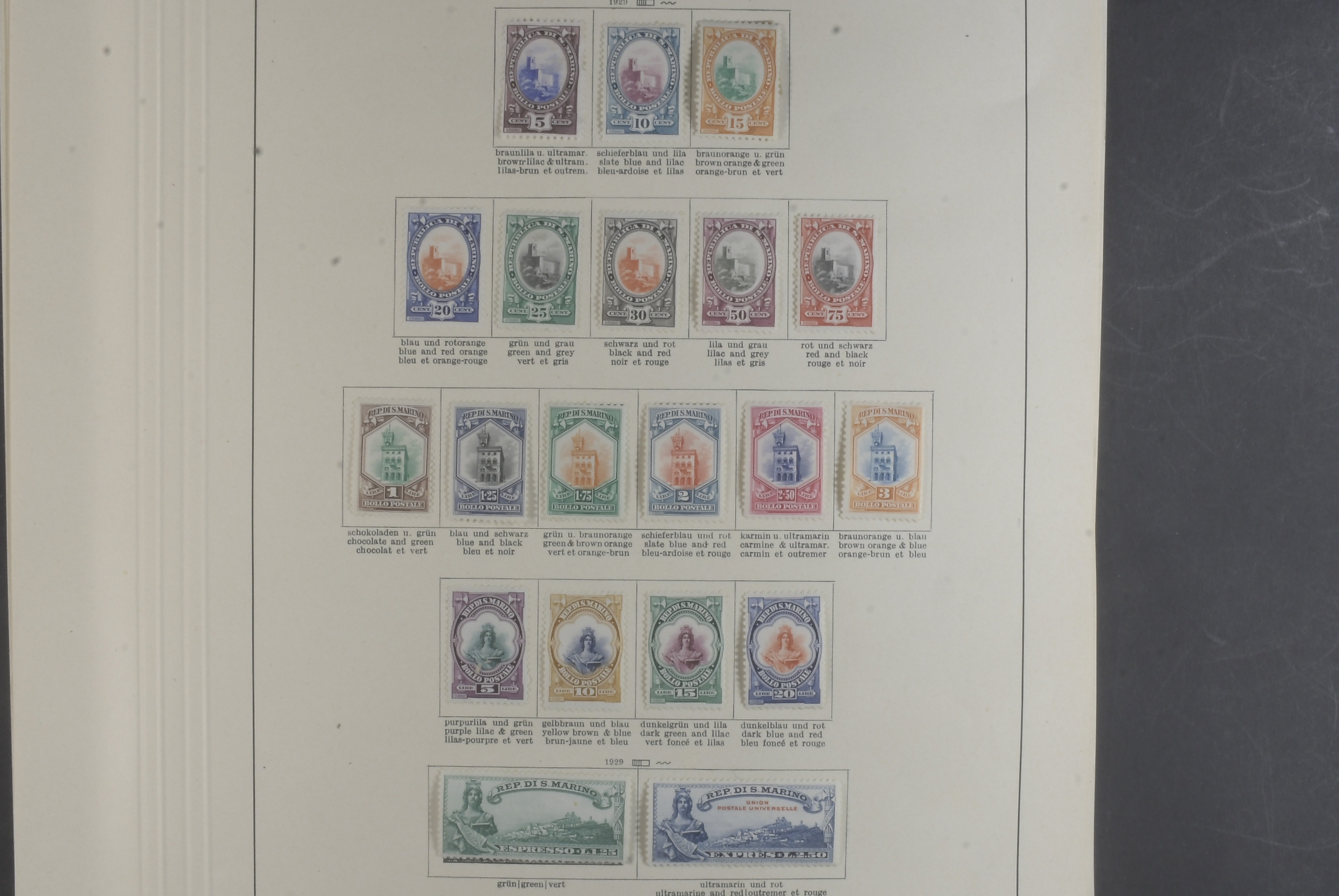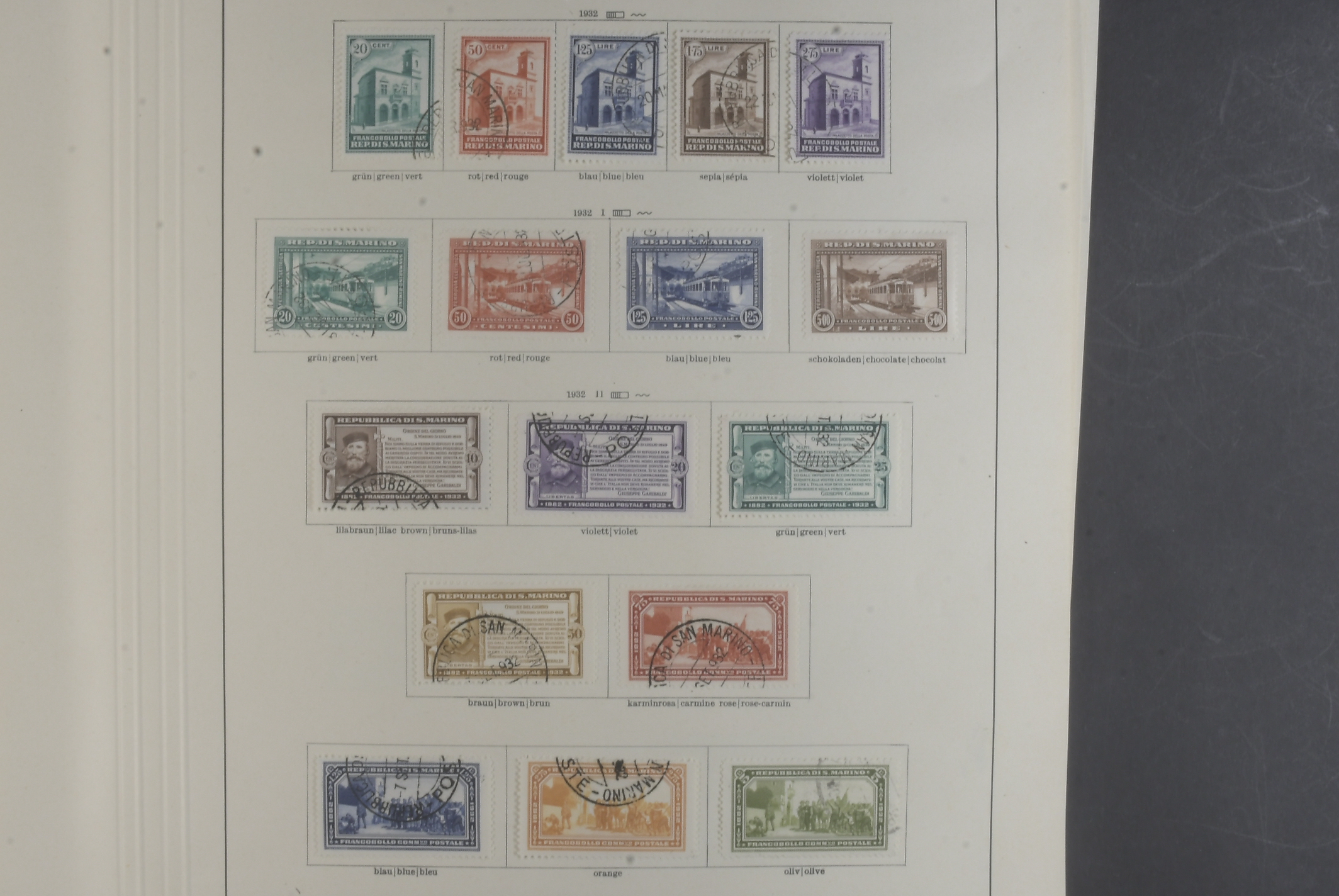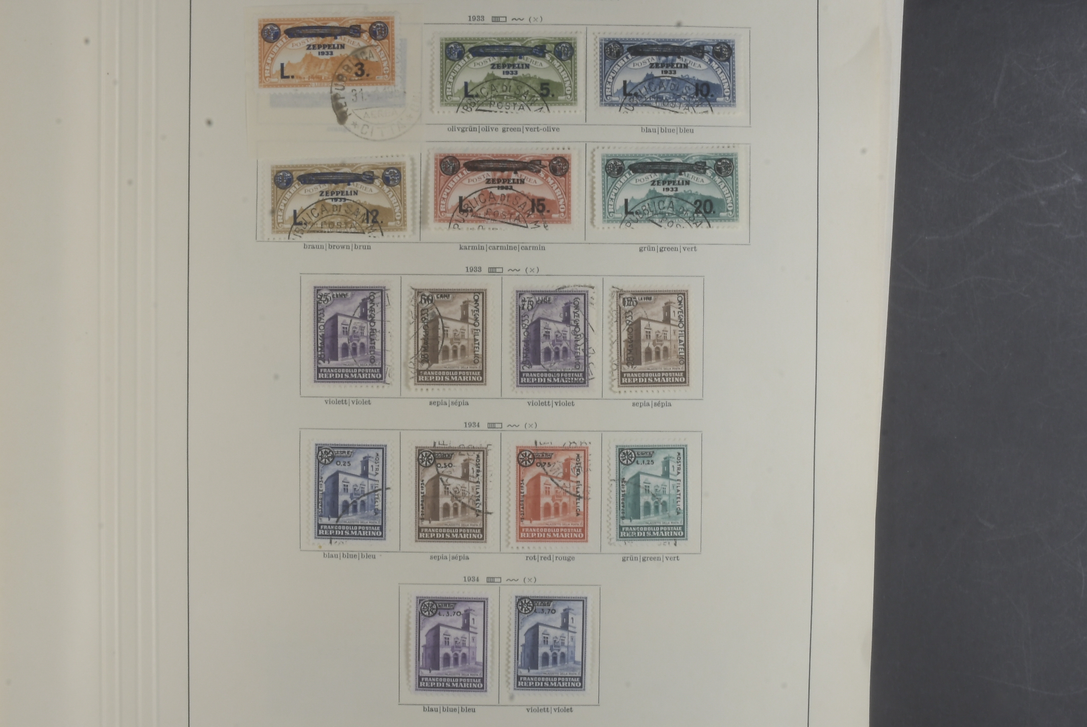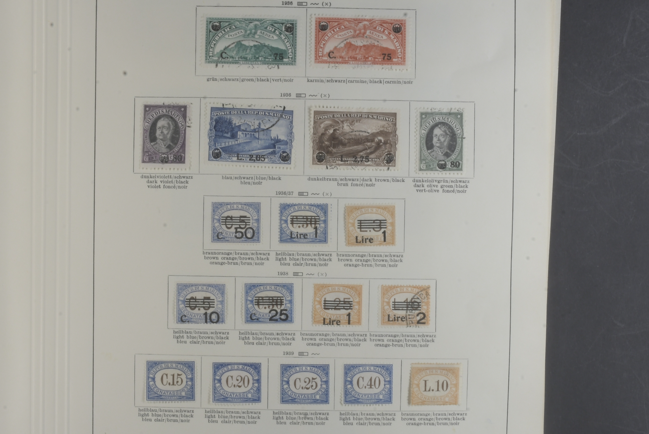 San Marino. Collection ★ 1877–1955 on leaves. Almost complete used and mint mixed with many better stamps. E.g. Mi 4–5, 7, 12–22, 31, 44–45, 133–74 mint *, 175–205 used, due 10–18 and 19–30 * used. Somewhat mixed quality.